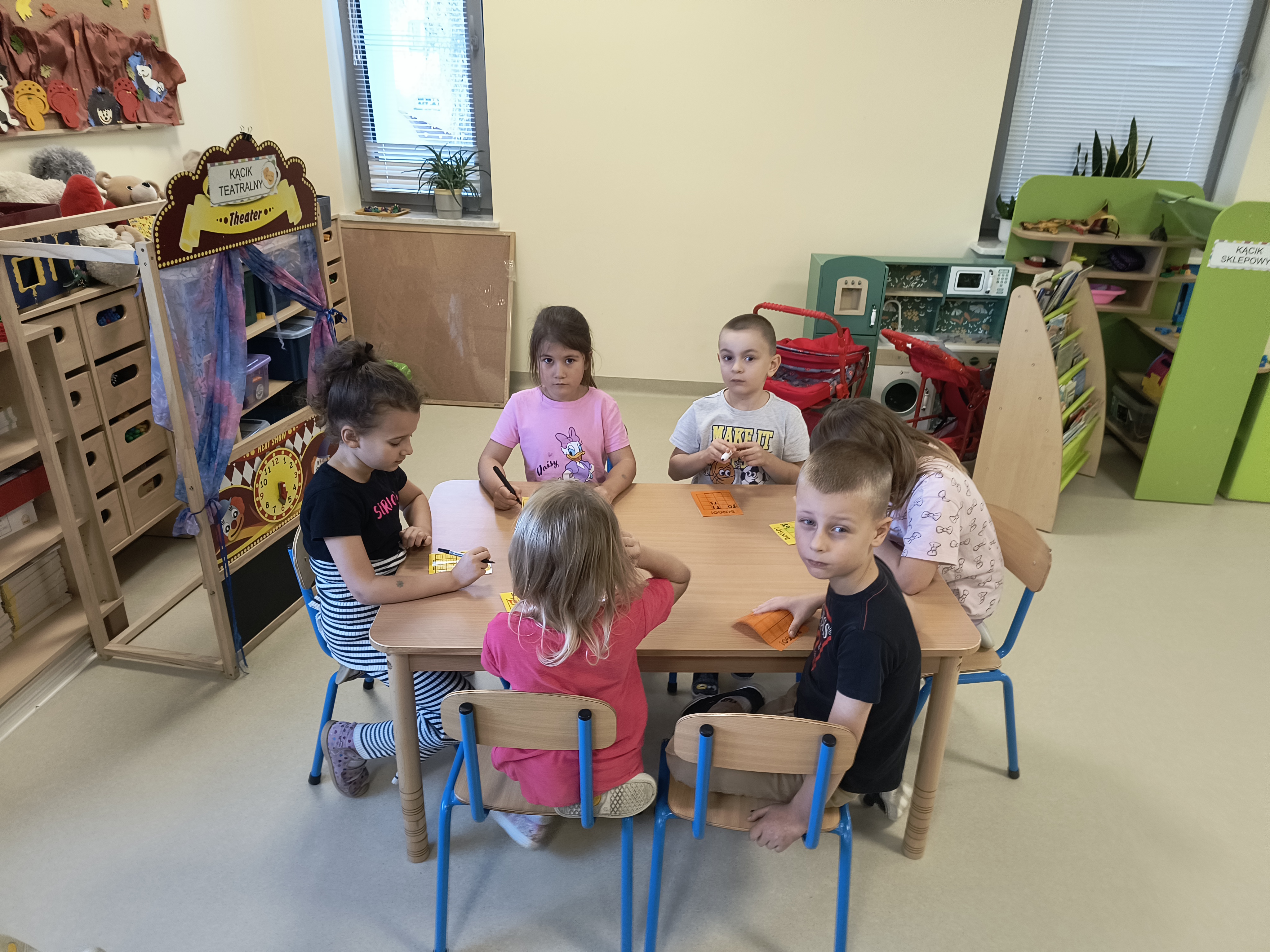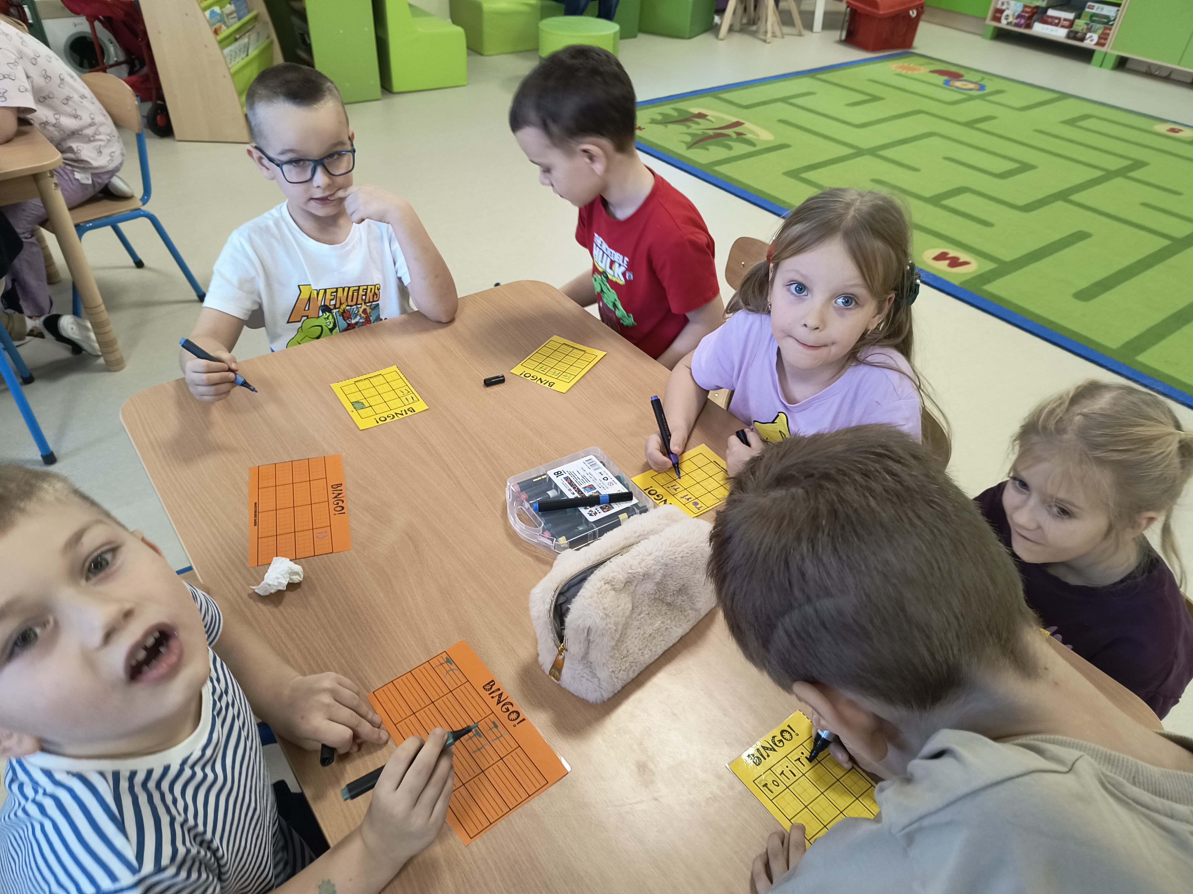 Popołudnia w naszej grupie bywają również ciekawe pomimo jesiennej aury. Tym razem dzieci grały i uczyły się jednocześnie.Gra Bingo pozwoliła na utrwalanie sylab z nową poznana litera i dobra zabawa. Emocji tych pozytywnych było dużo i niejednokrotnie padło Bingo.