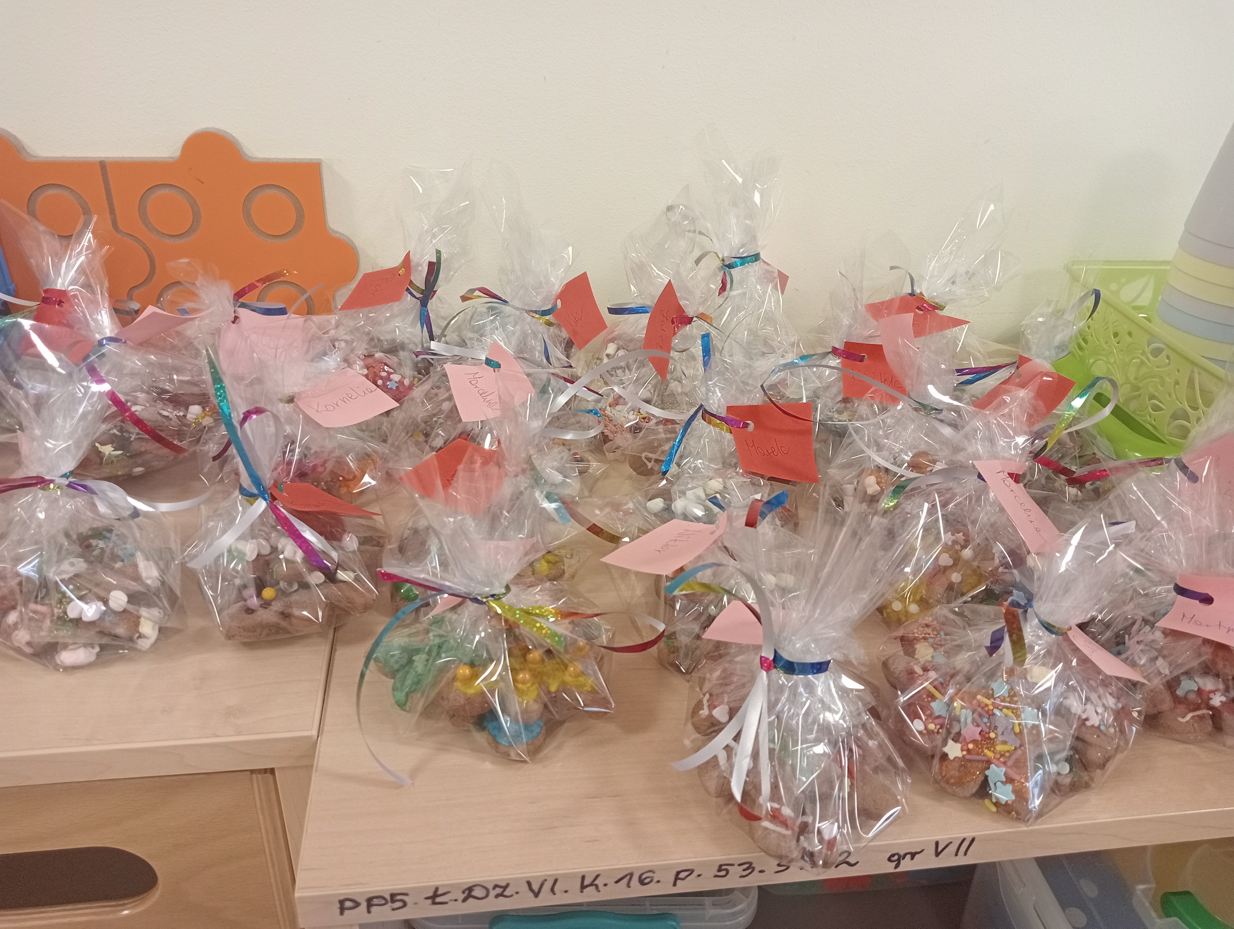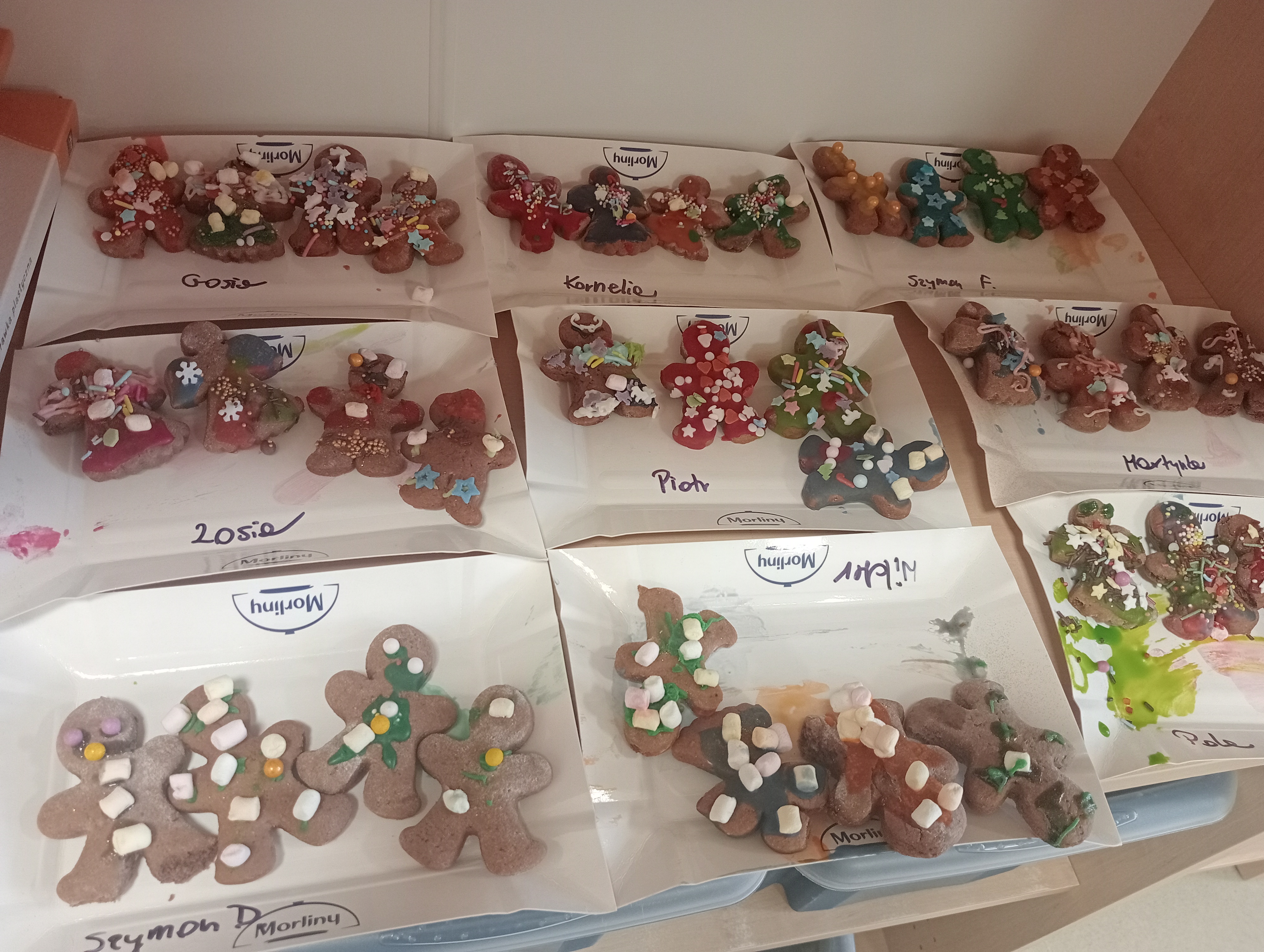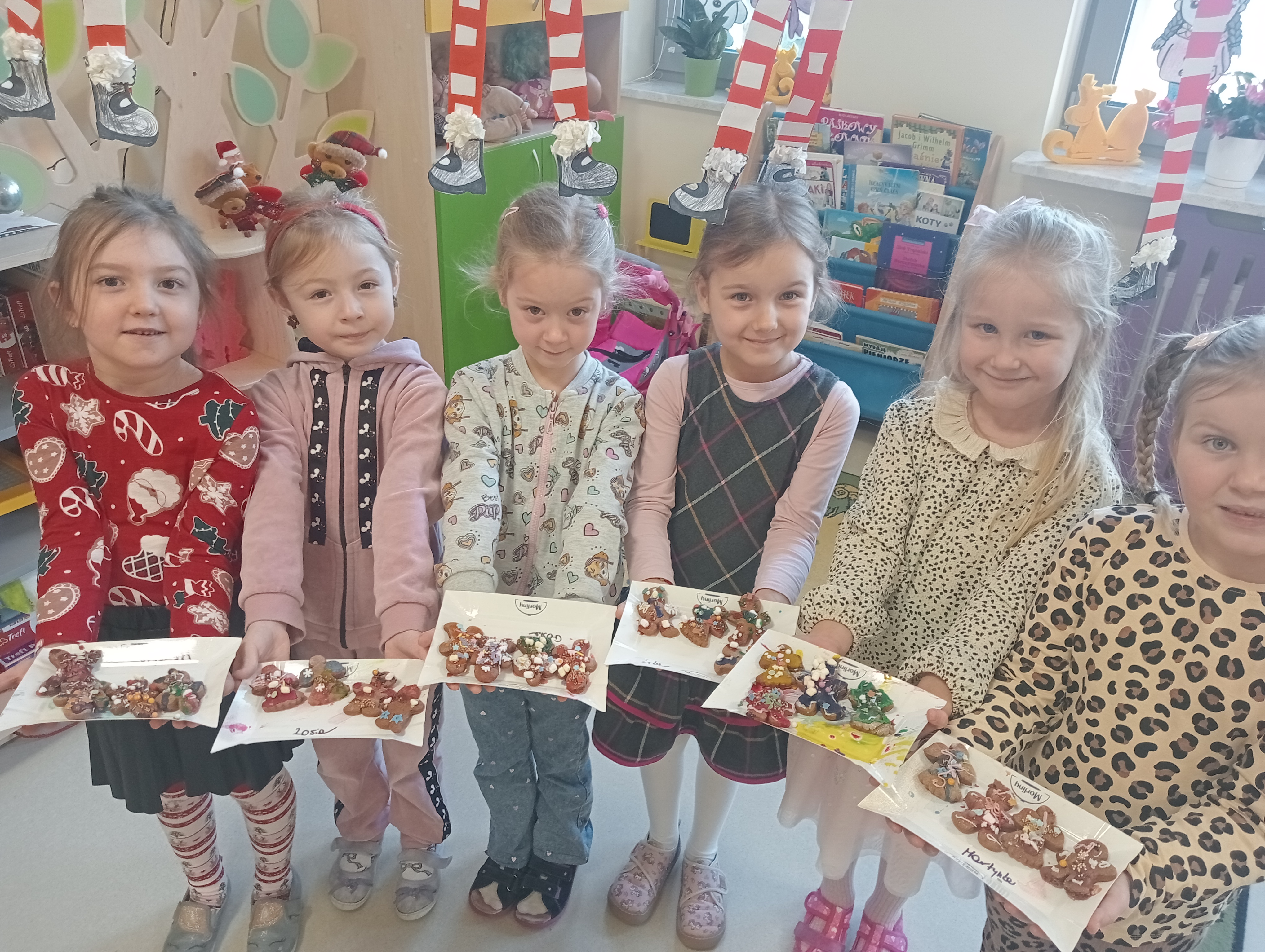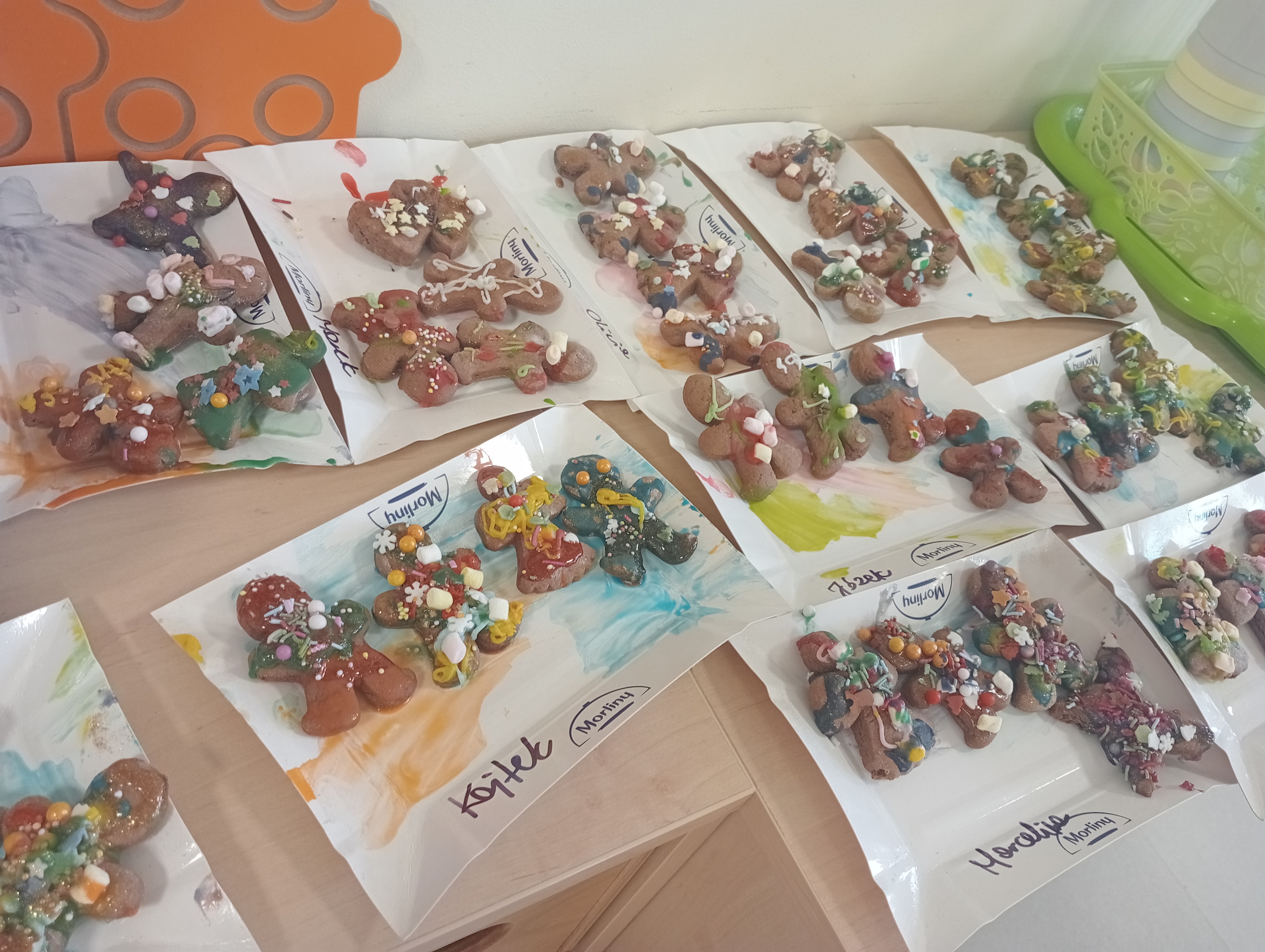 W czwartek 11 grudnia przedszkolaki z naszej grupy dekorowały pierniczki, które upiekła mama Oliwki i Marka. Tego dnia stoliki zapełniły się miseczkami z lukrem, kolorowymi posypkami, ozdobami cukierniczymi i, oczywiście, pierniczkami. Każdy wyglądał inaczej, był wyjątkowy i niepowtarzalny. Na koniec wszystkie pierniczki spakowaliśmy w celofan i dzieci zabrały dla swoich najbliższych. Był to bardzo słodki dzień.