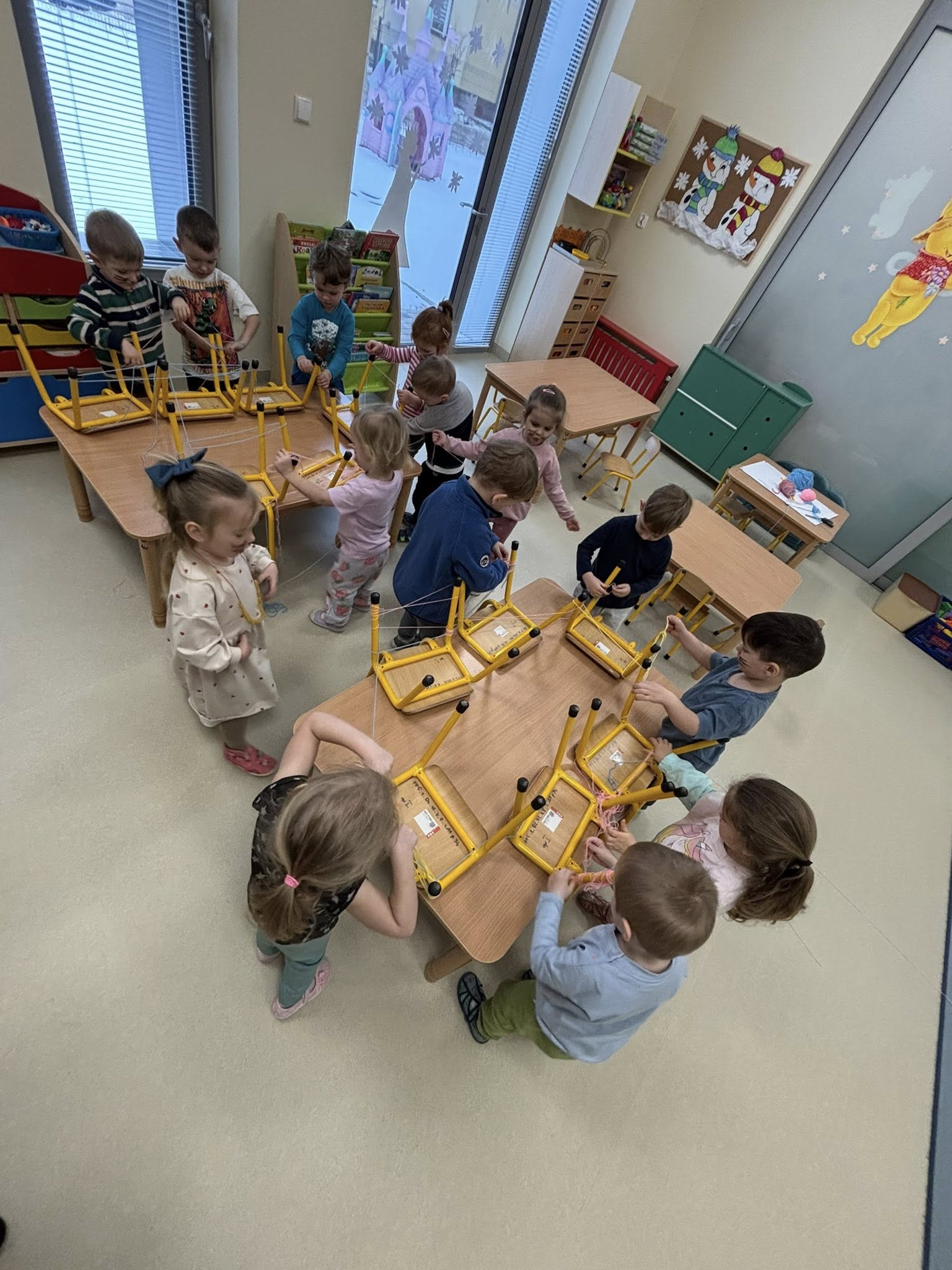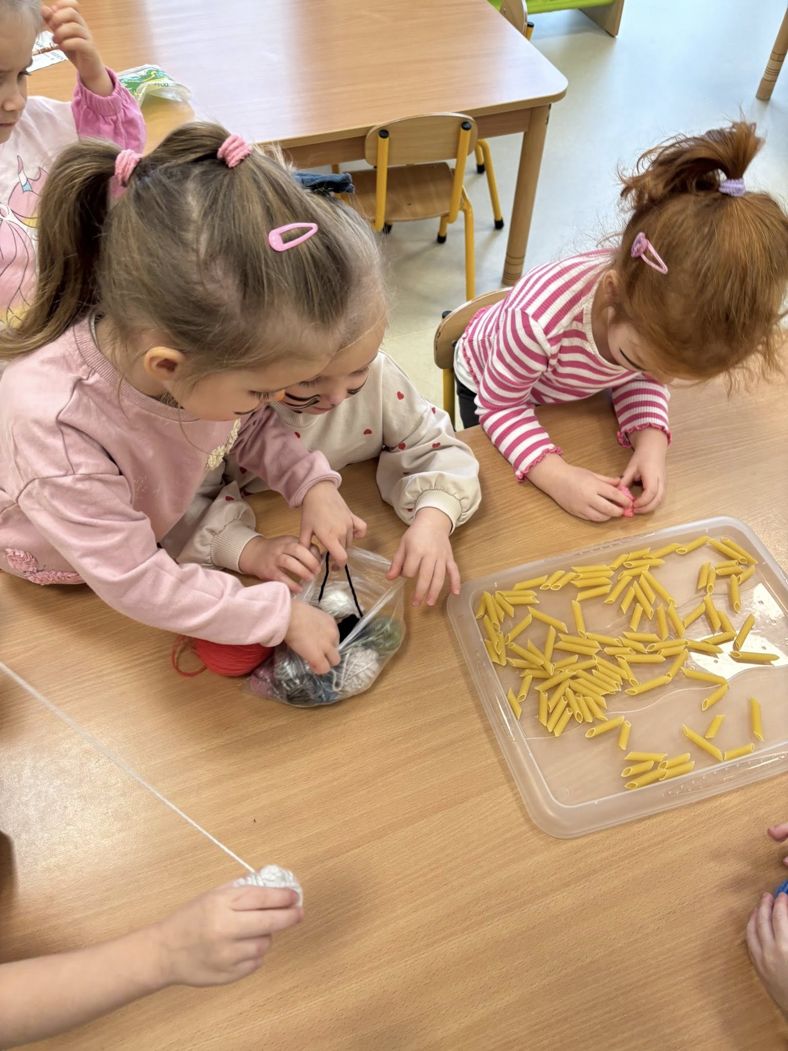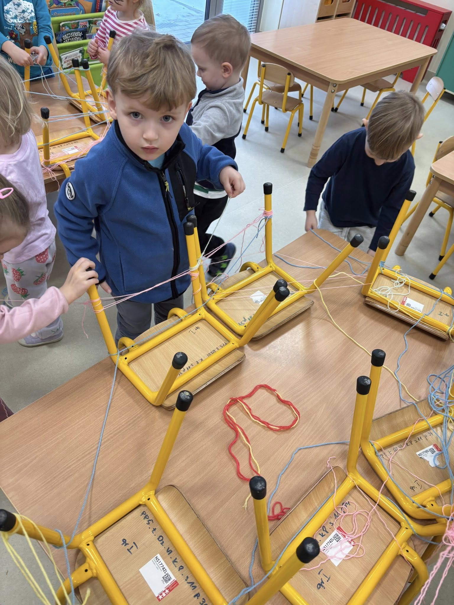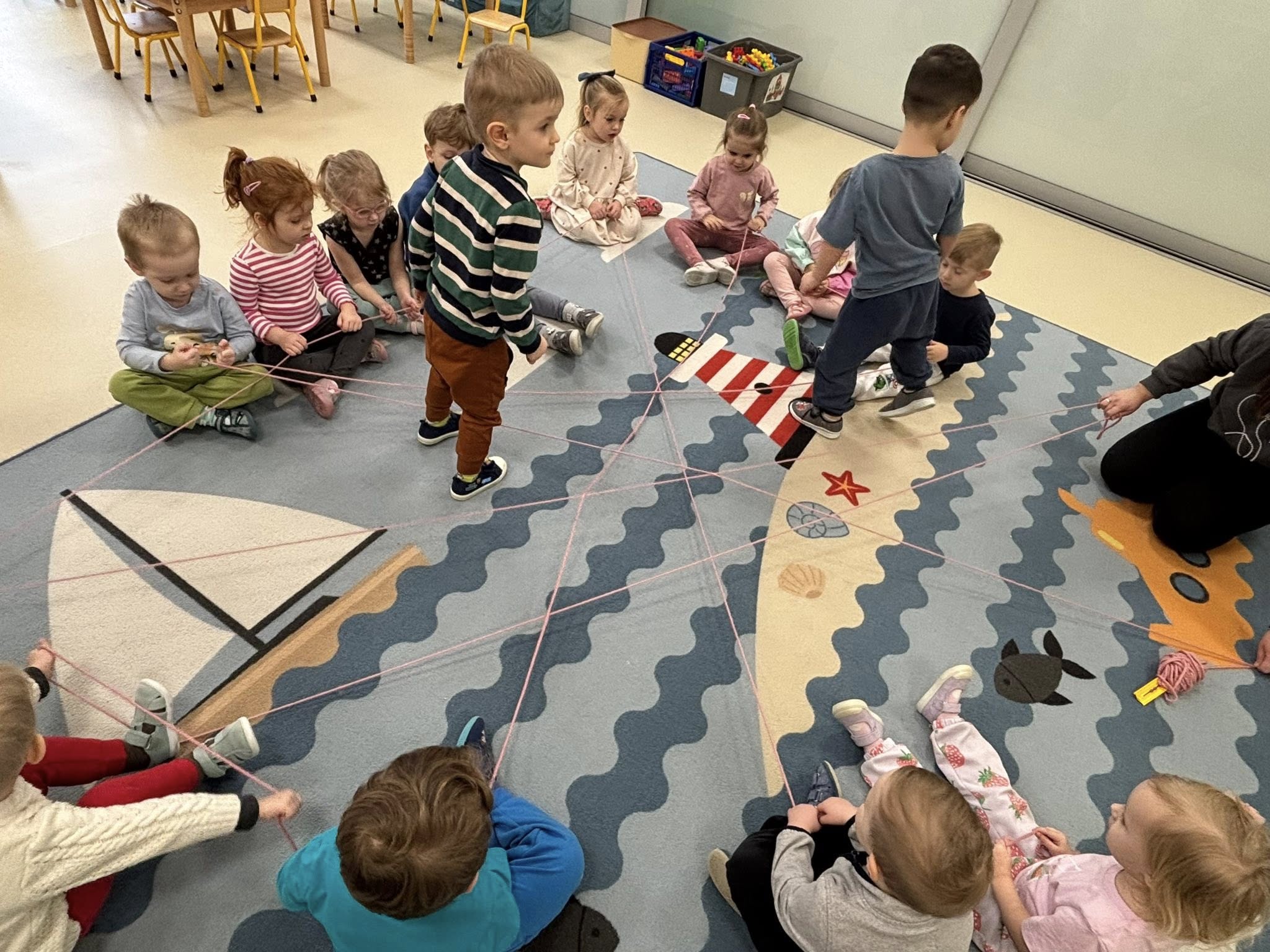 Były też „kocie” zabawy z włóczką ? – nawlekanie, przewlekanie, tworzenie motków i rozróżnianie kolorów, a także układanie puzzli. To był dzień pełen radości i nauki!