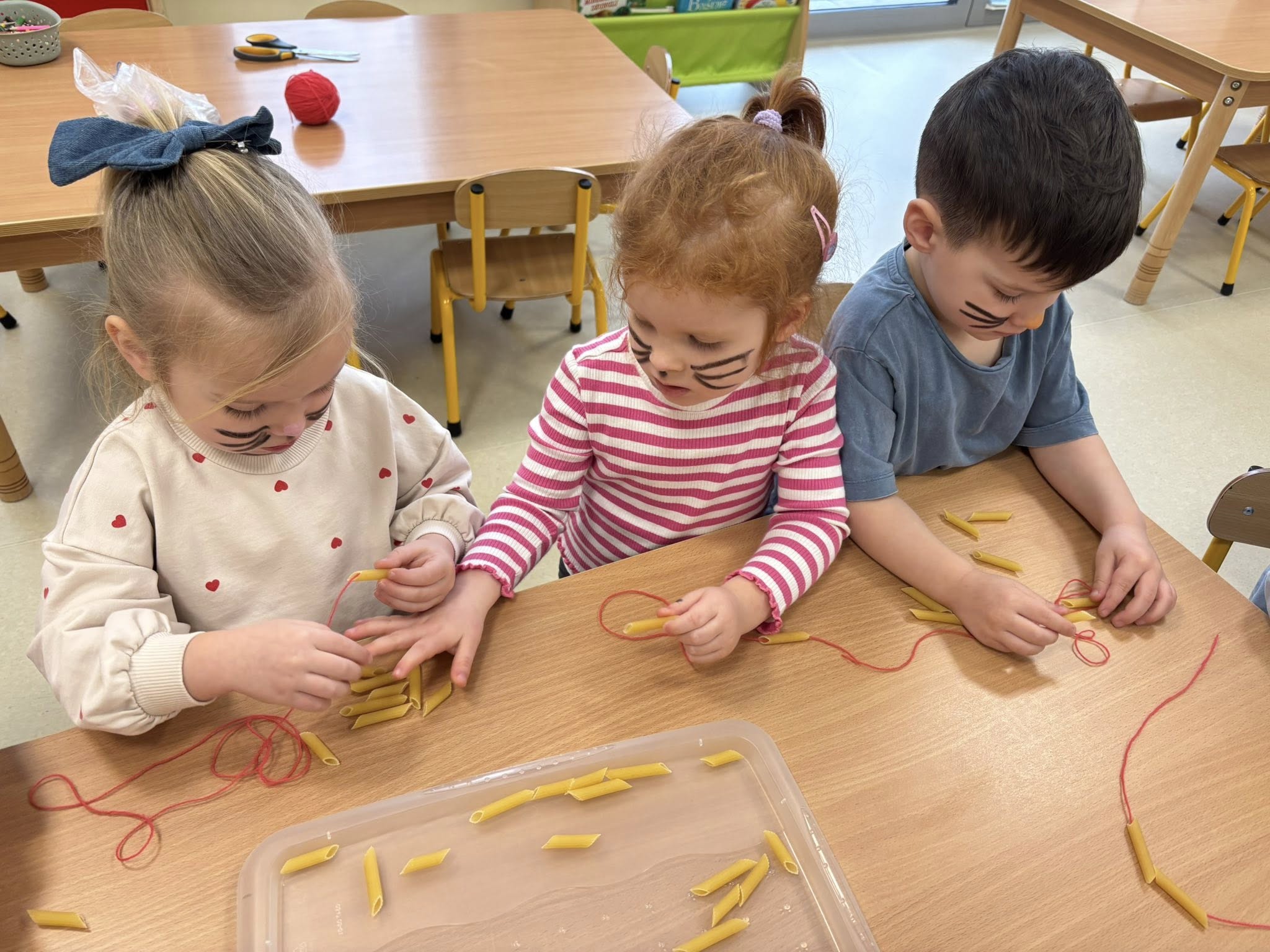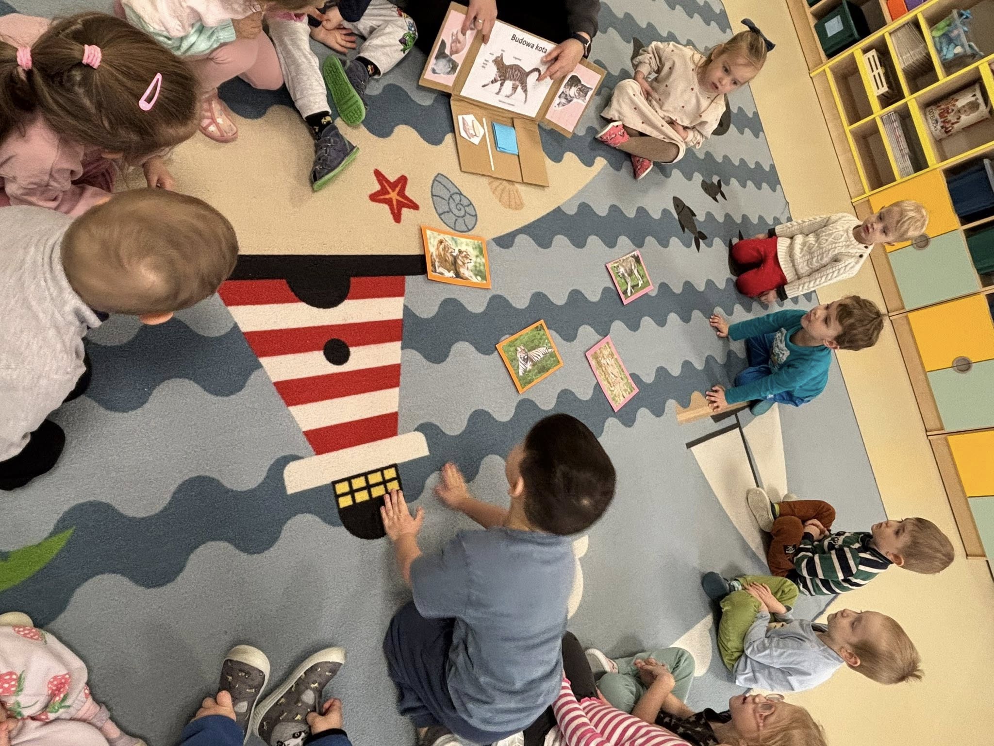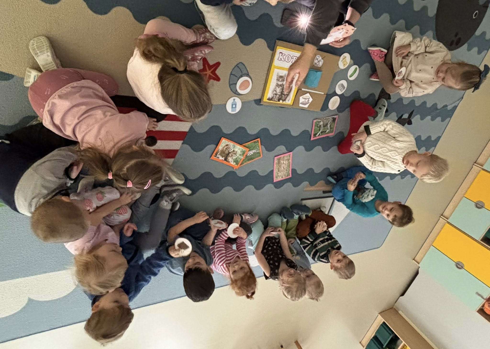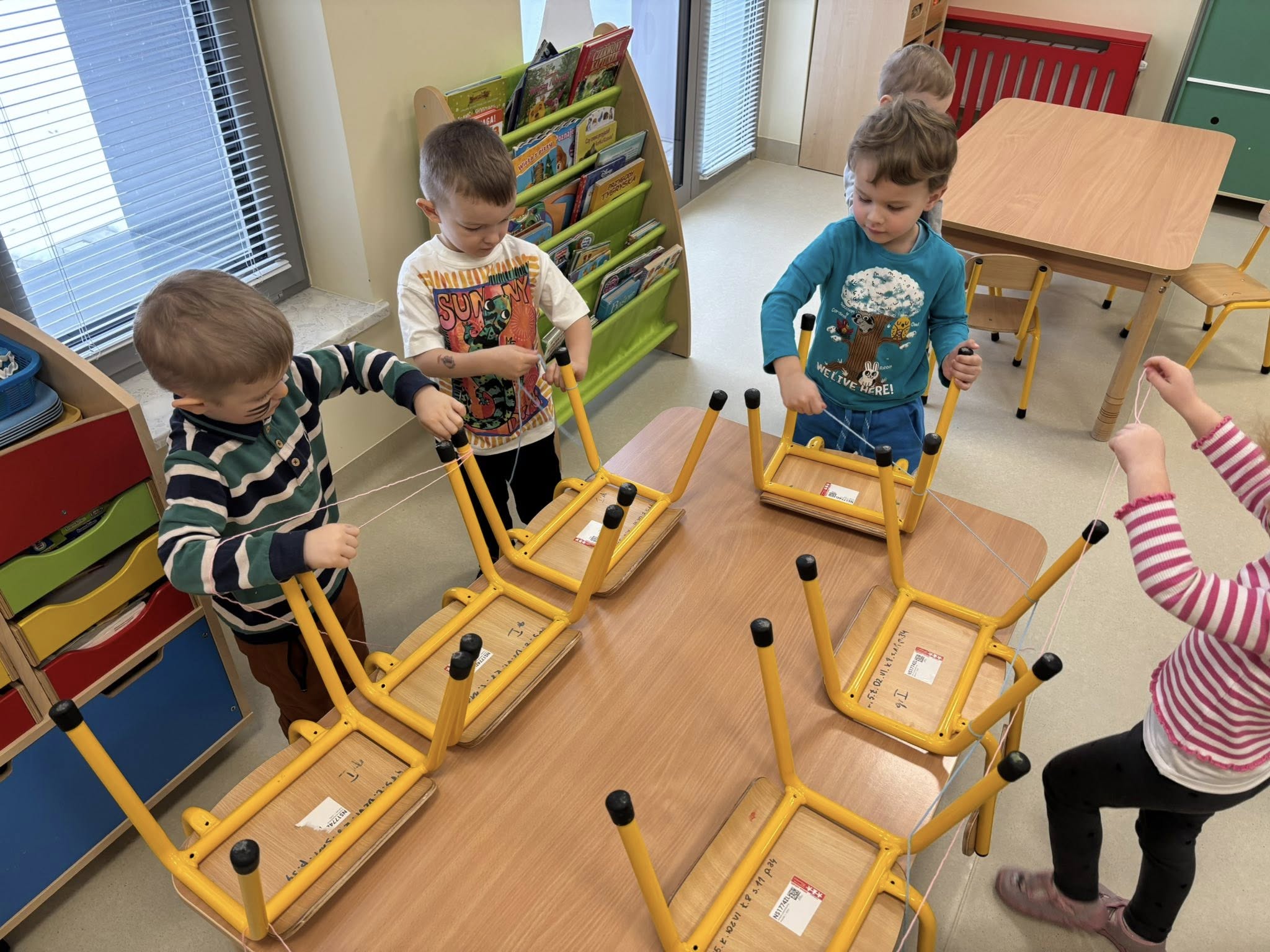 Były też „kocie” zabawy z włóczką ? – nawlekanie, przewlekanie, tworzenie motków i rozróżnianie kolorów, a także układanie puzzli. To był dzień pełen radości i nauki!