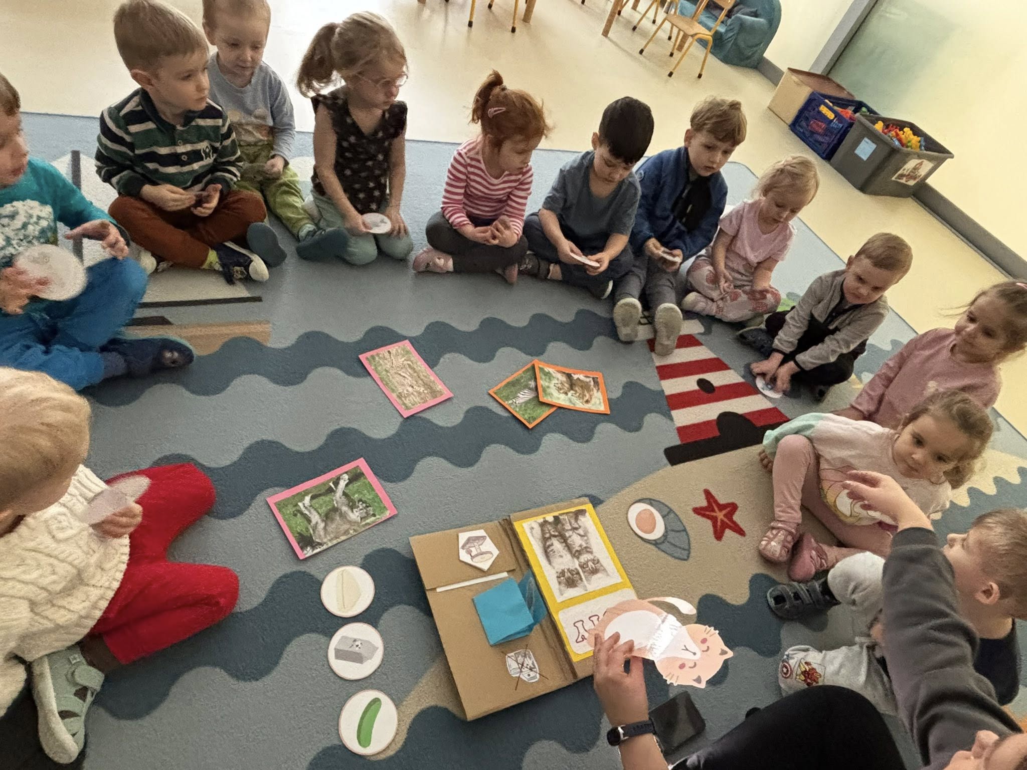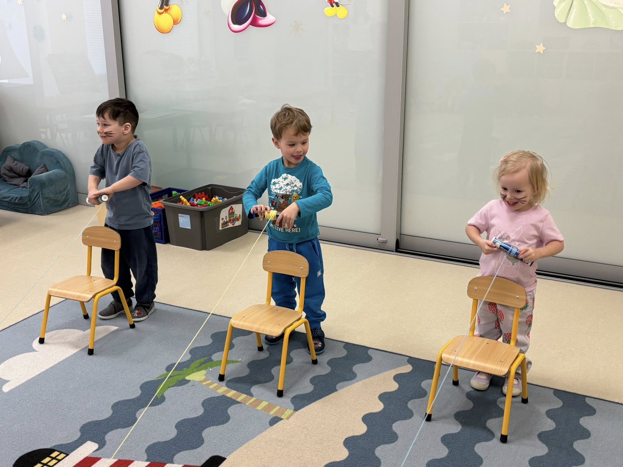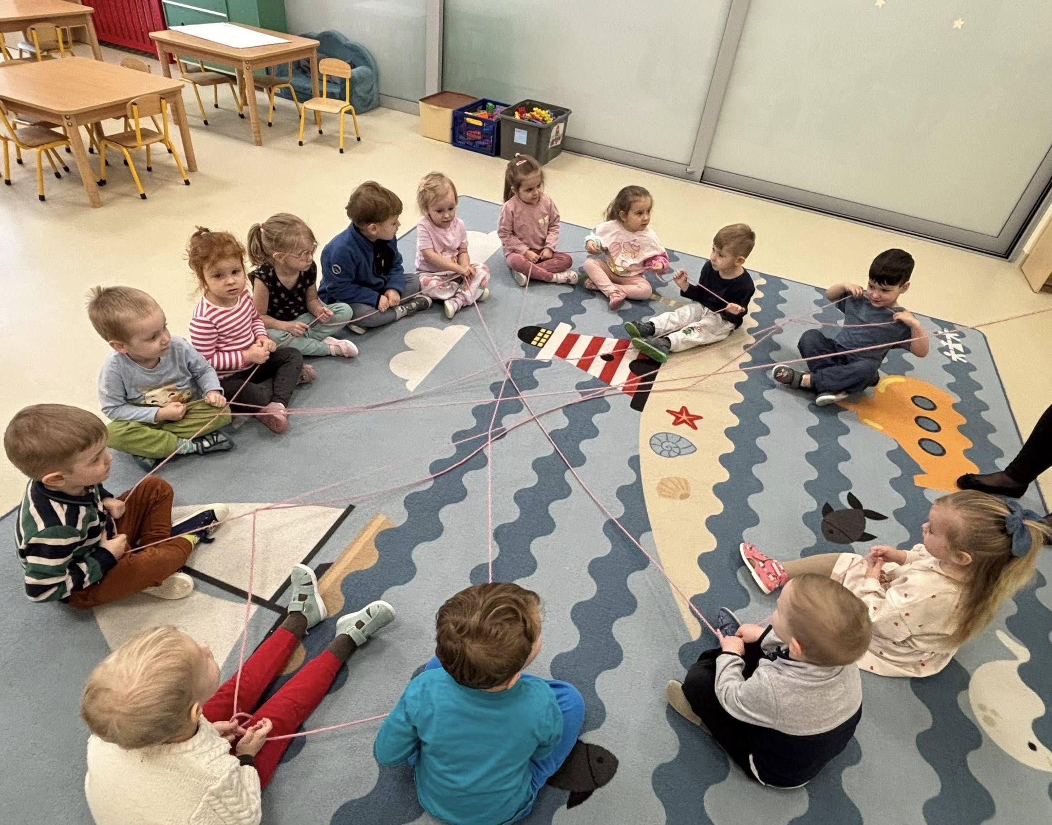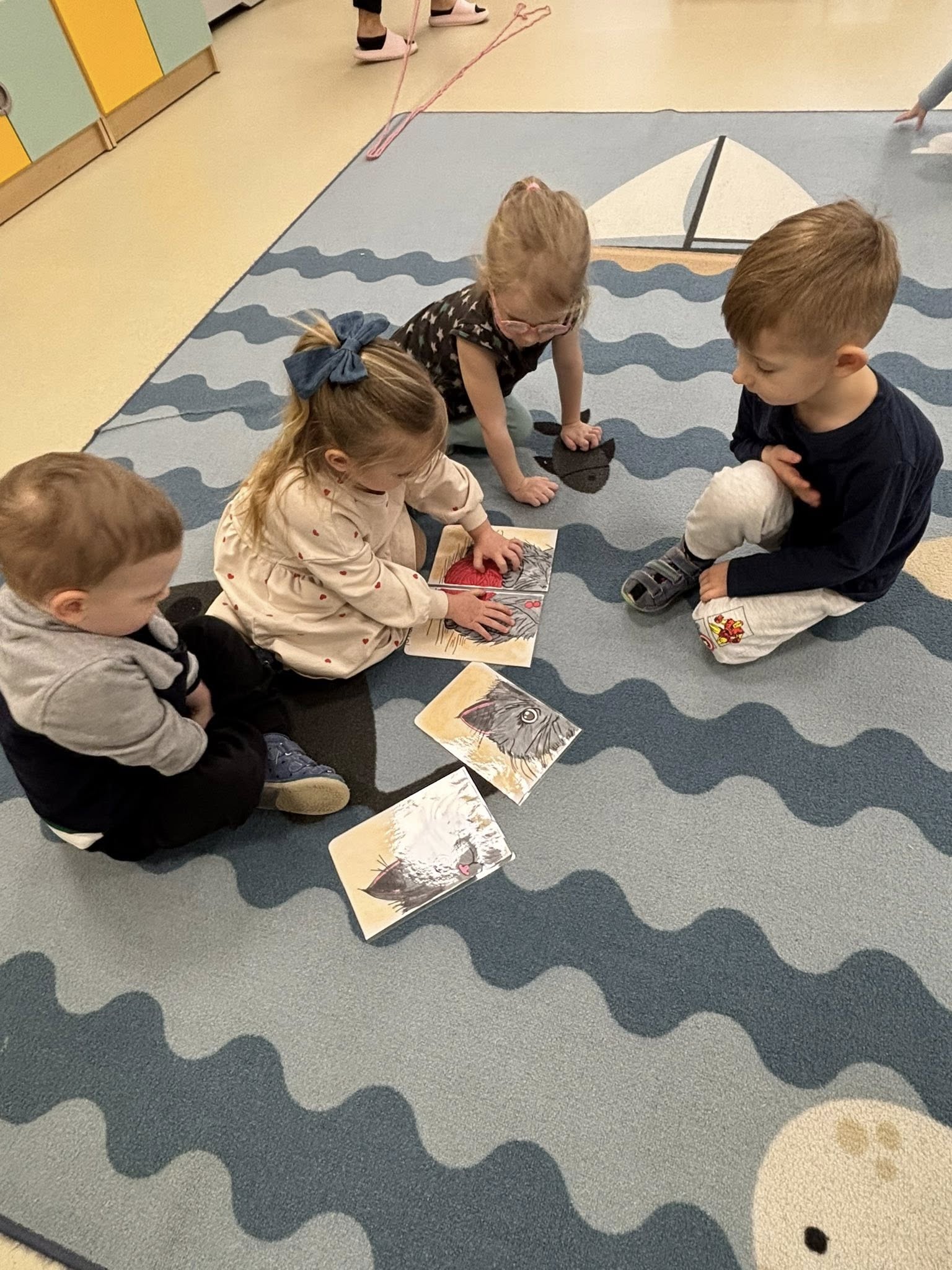 Były też „kocie” zabawy z włóczką ? – nawlekanie, przewlekanie, tworzenie motków i rozróżnianie kolorów, a także układanie puzzli. To był dzień pełen radości i nauki!