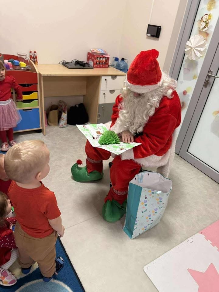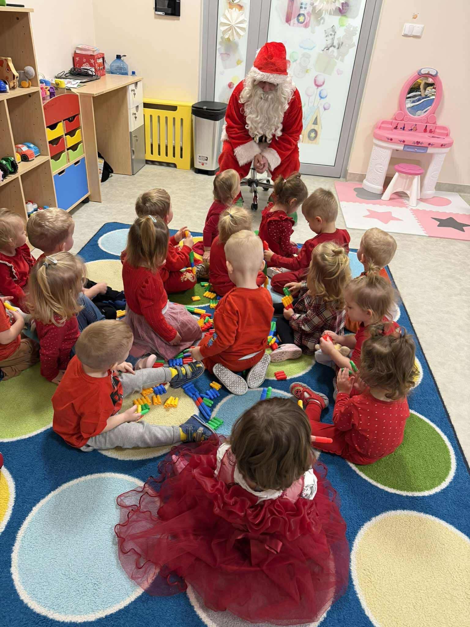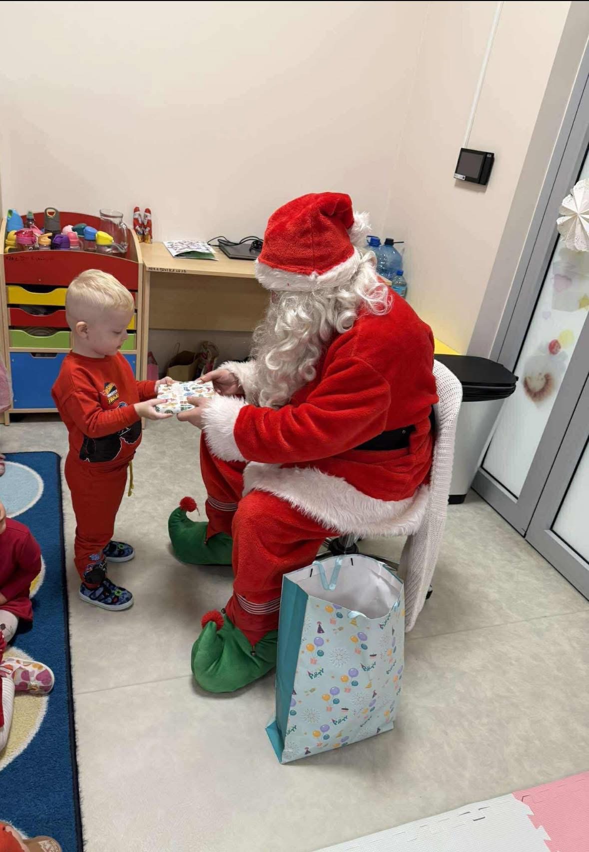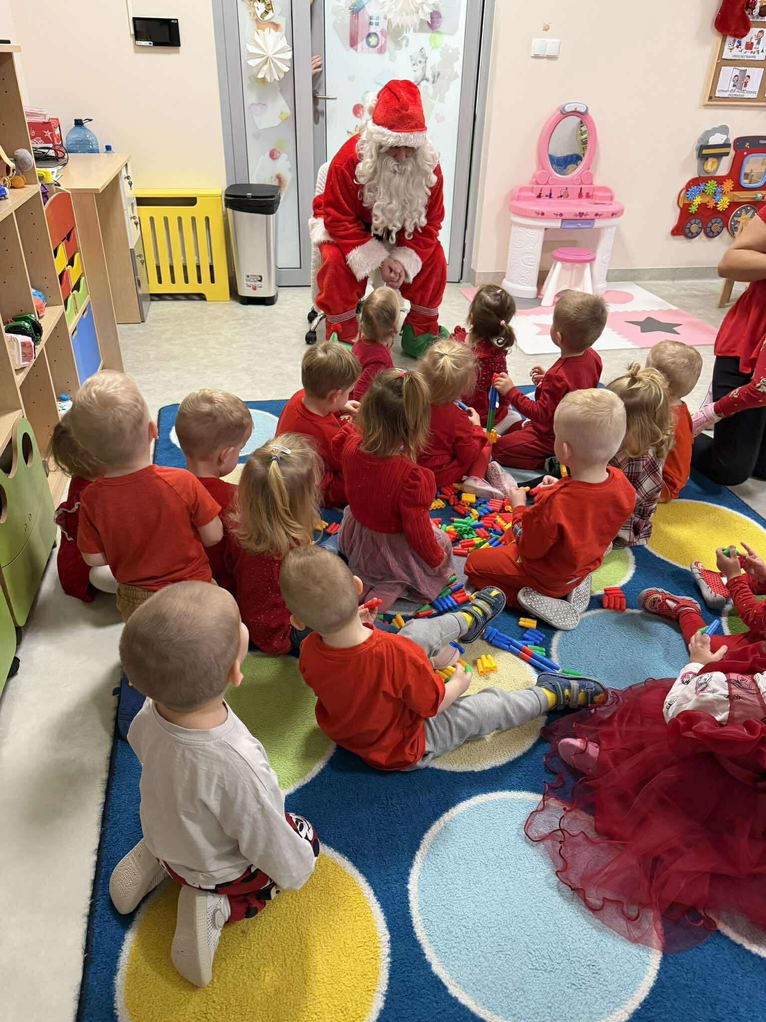 Dziś odwiedził nas Mikołaj z prezentami. Dzieci przygotowały dla niego własnoręcznie wykonaną kartkę, wykonaliśmy także piękne zdjęcia. Na koniec wspólnie z rodzicami miło spędziliśmy czas podczas świątecznych warsztatów.