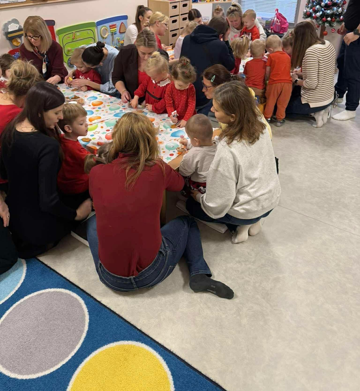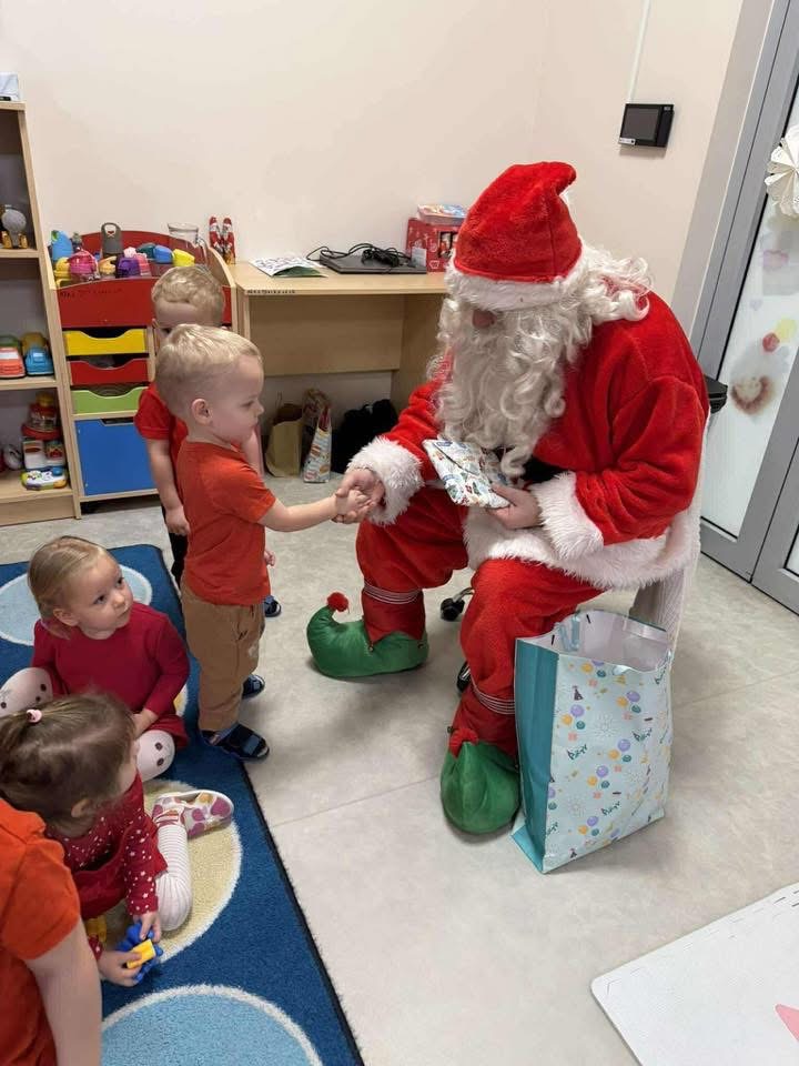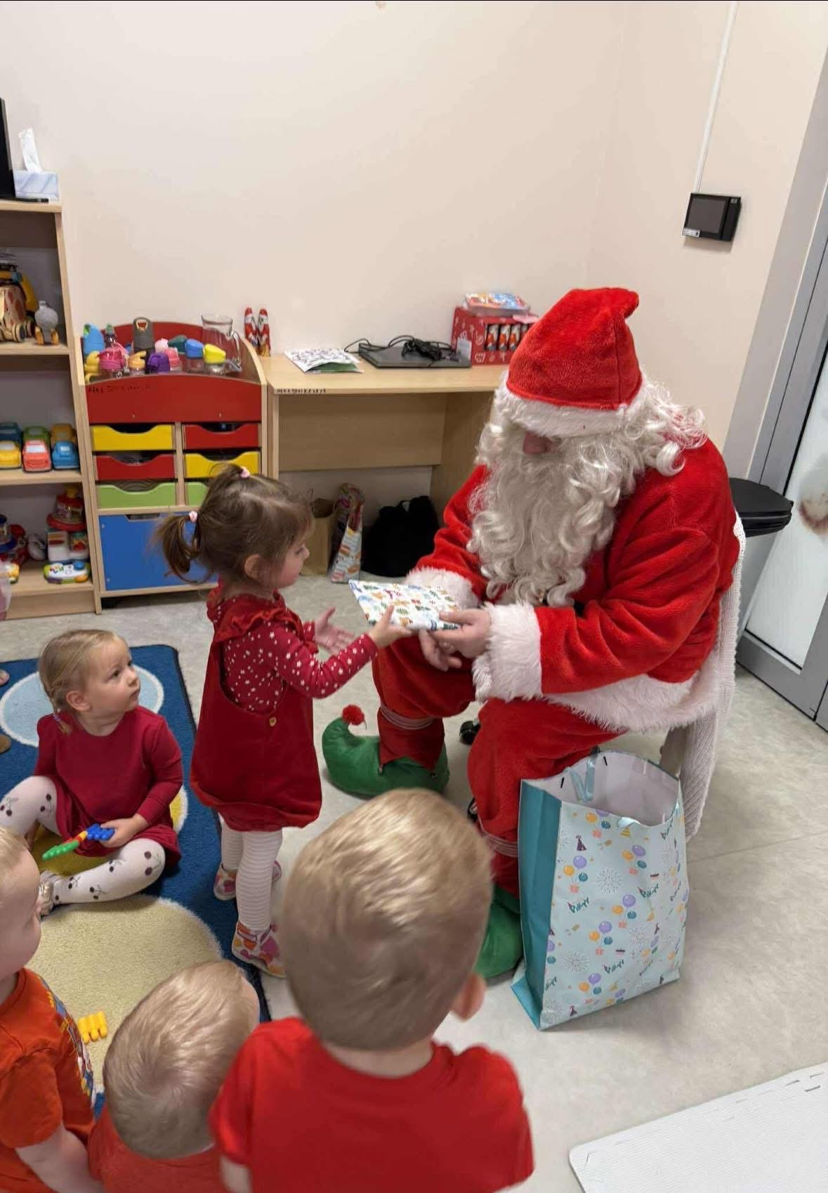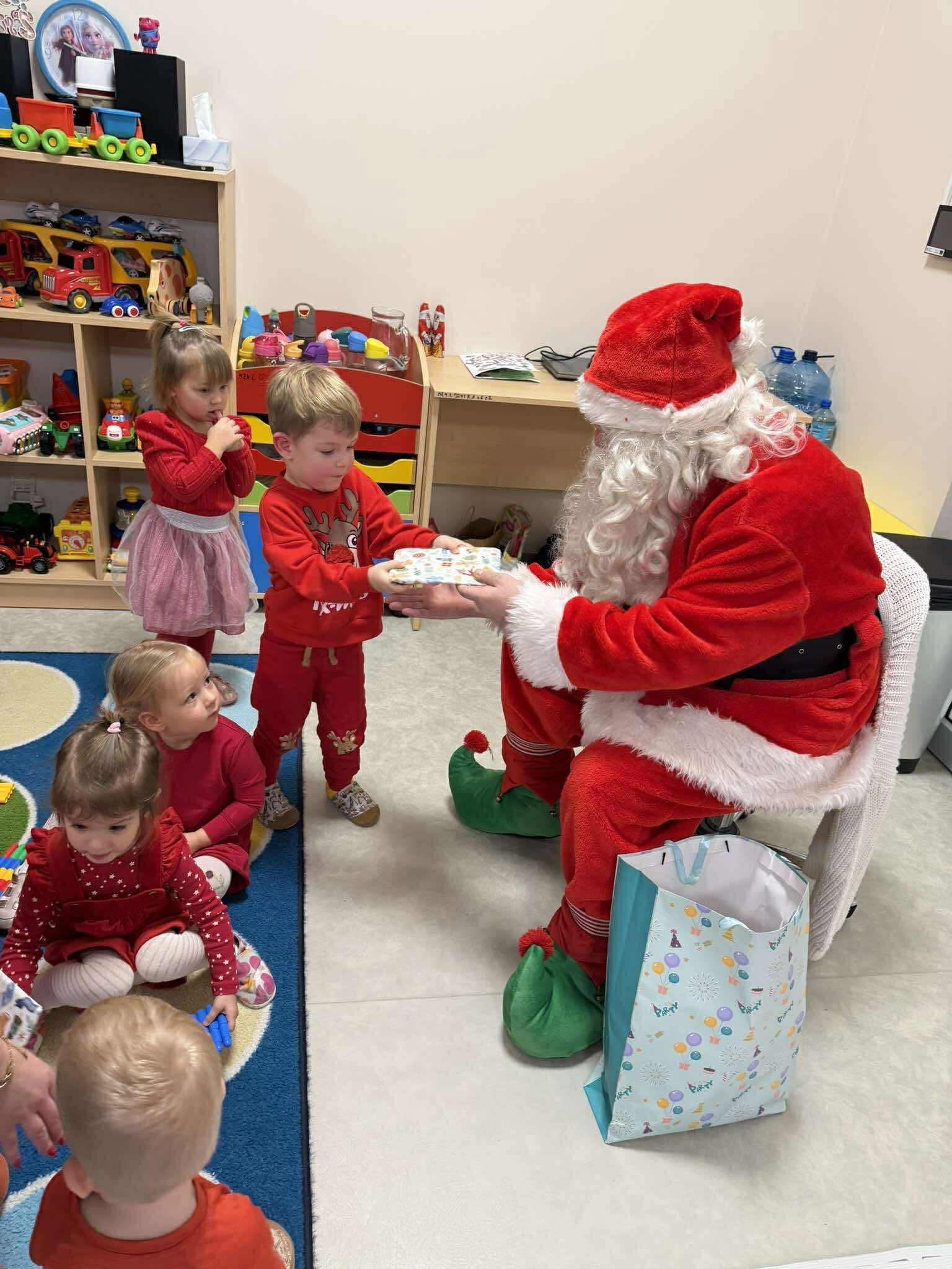 Dziś odwiedził nas Mikołaj z prezentami. Dzieci przygotowały dla niego własnoręcznie wykonaną kartkę, wykonaliśmy także piękne zdjęcia. Na koniec wspólnie z rodzicami miło spędziliśmy czas podczas świątecznych warsztatów.