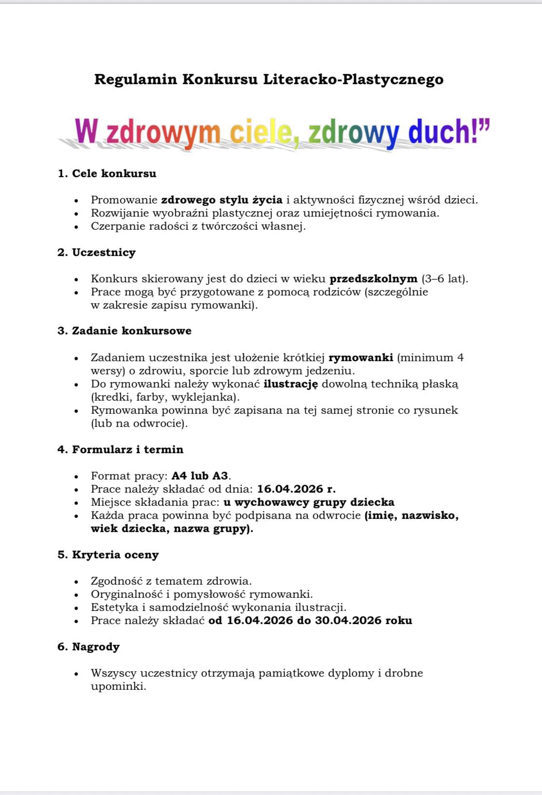 Konkurs literacko-plastyczny ''W zdrowym ciele, zdrowy duch!''