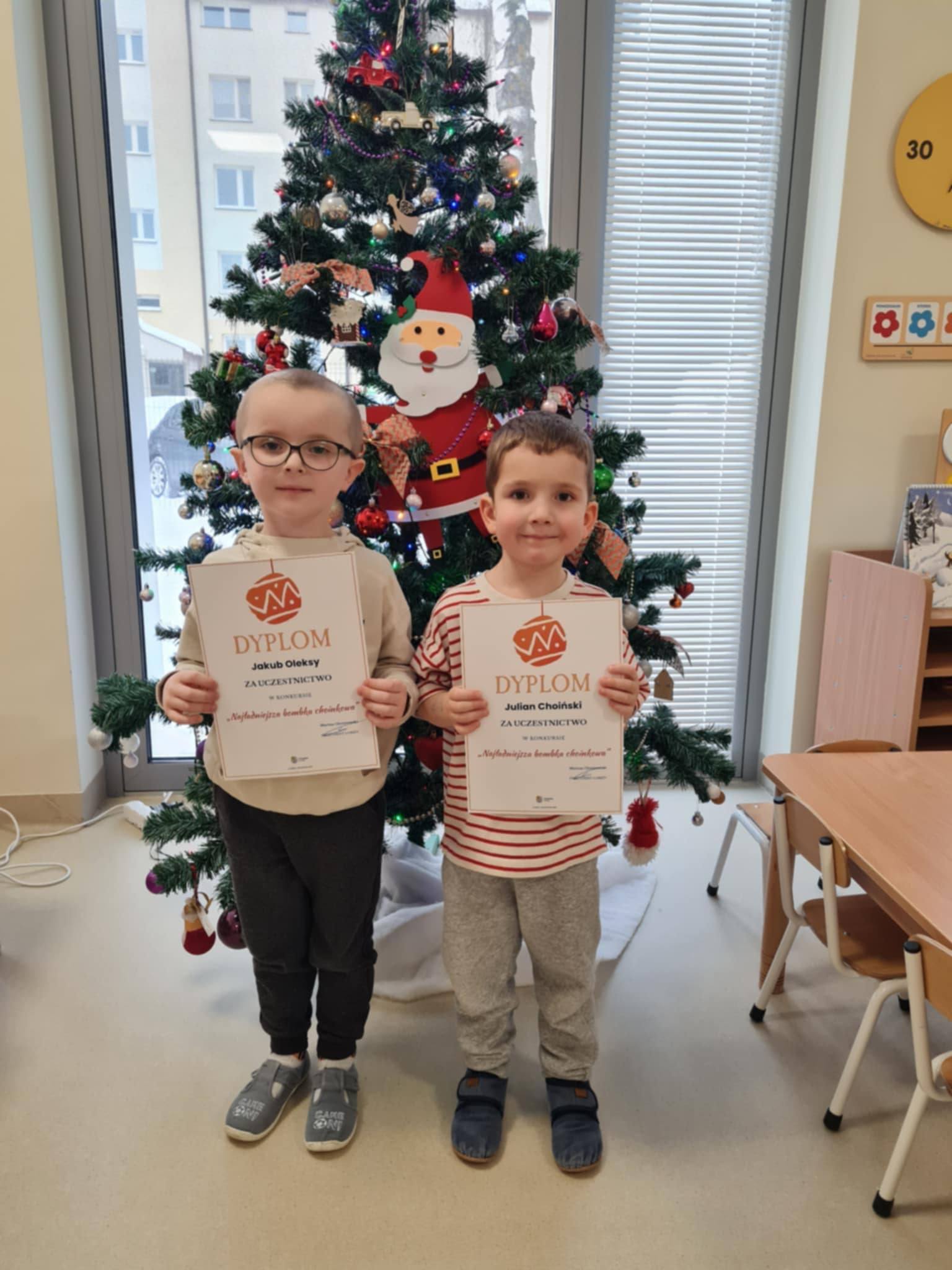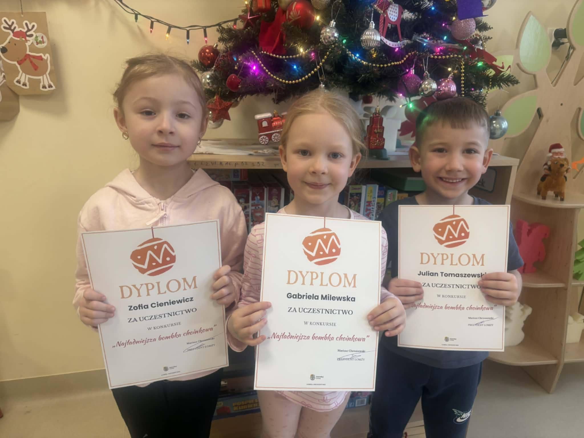 Dzieci z grupy III, IV, V i VII wzięły udział w konkursie plastycznym pt. „Najładniejsza bombka choinkowa” oraz „List do Świętego Mikołaja”, który został zorganizowany przez Prezydenta Miasta Łomża.