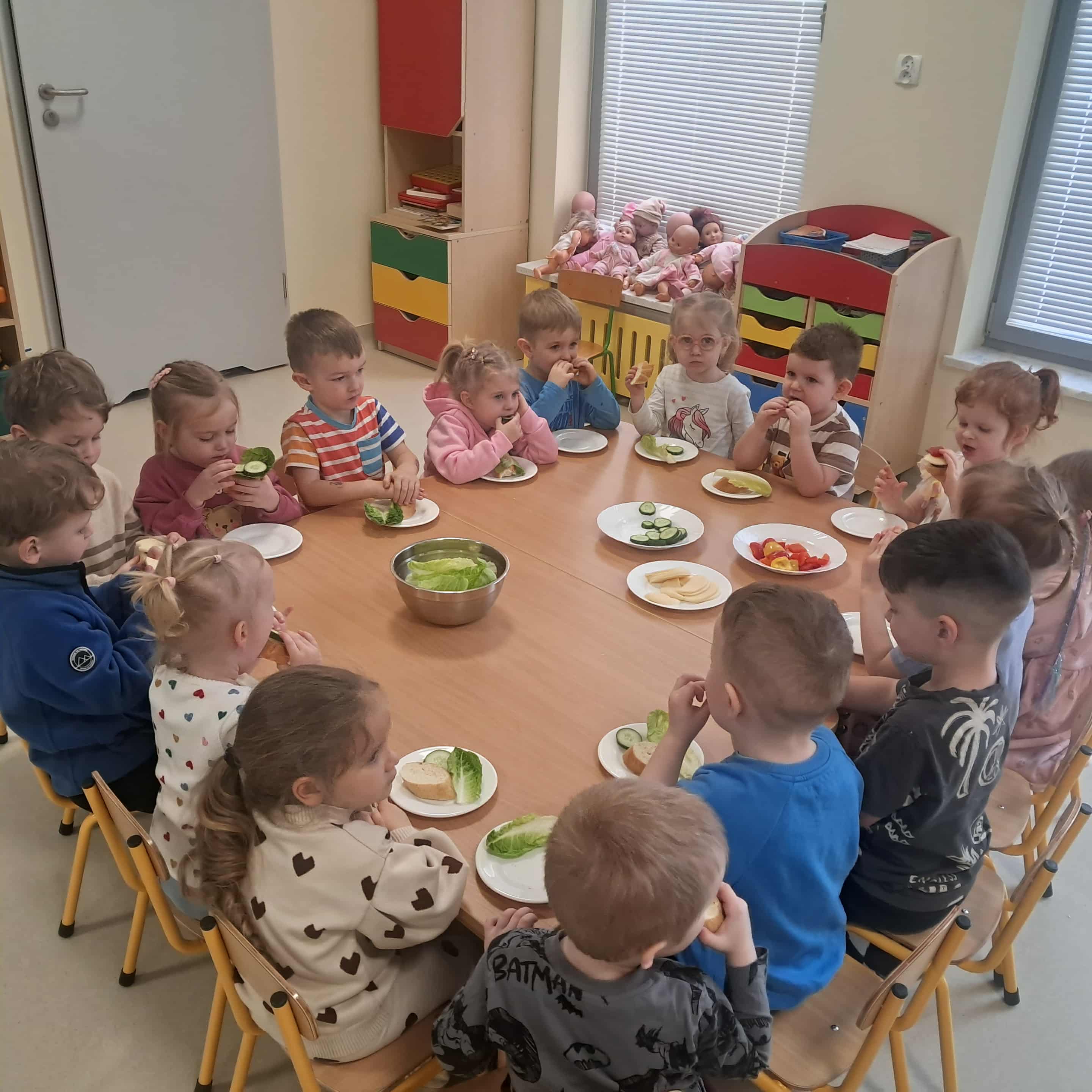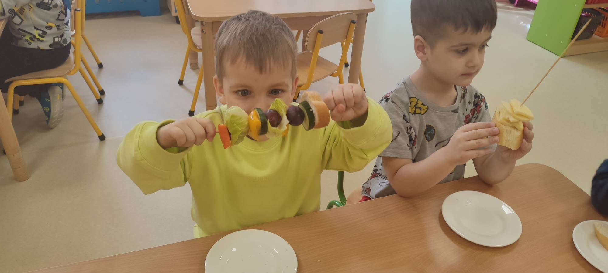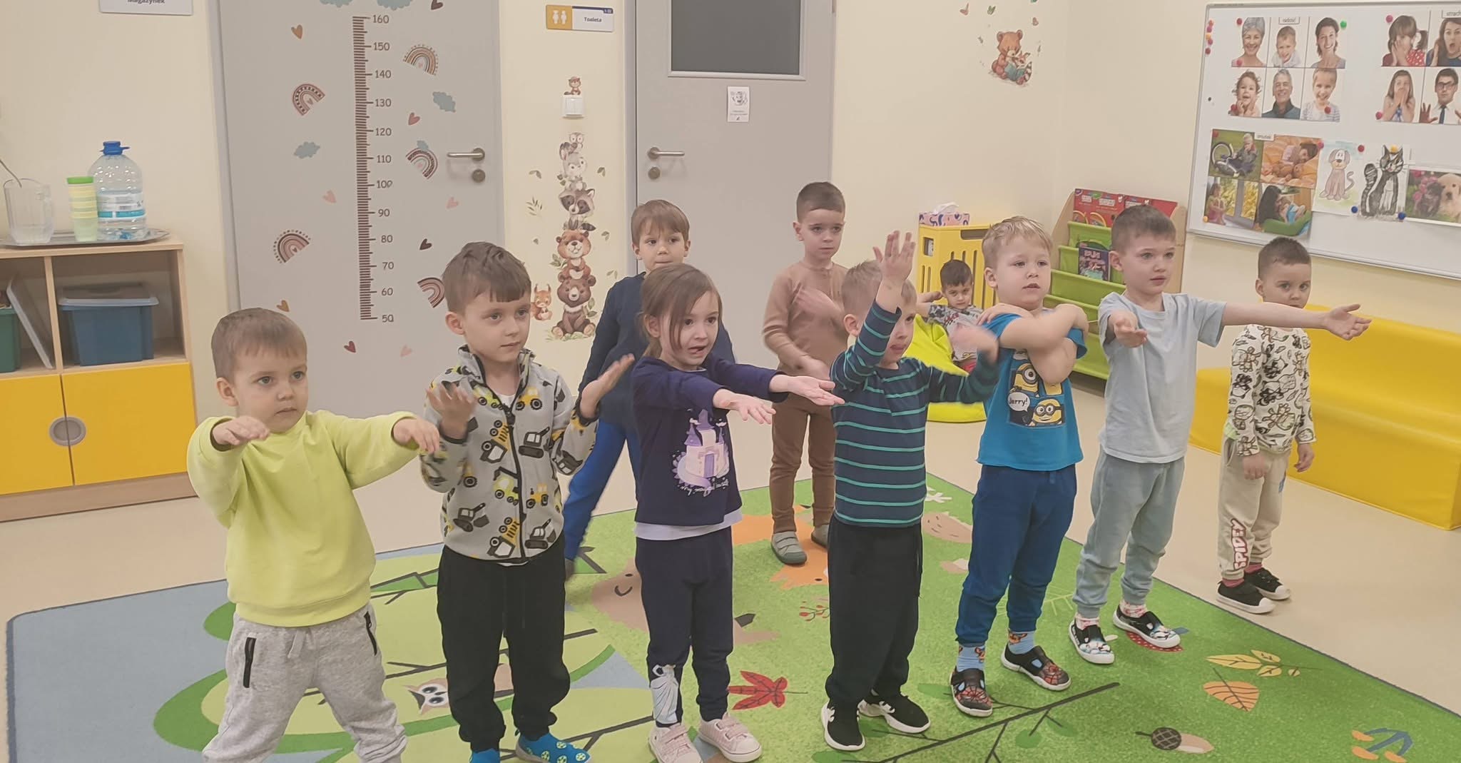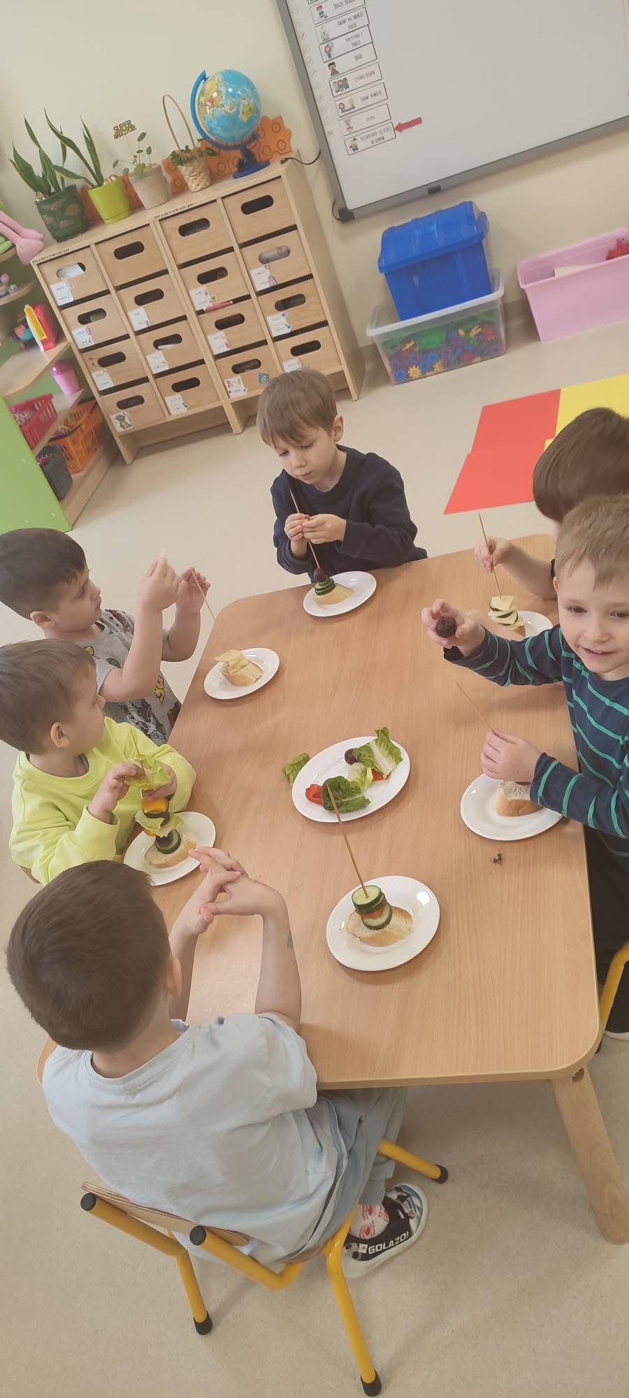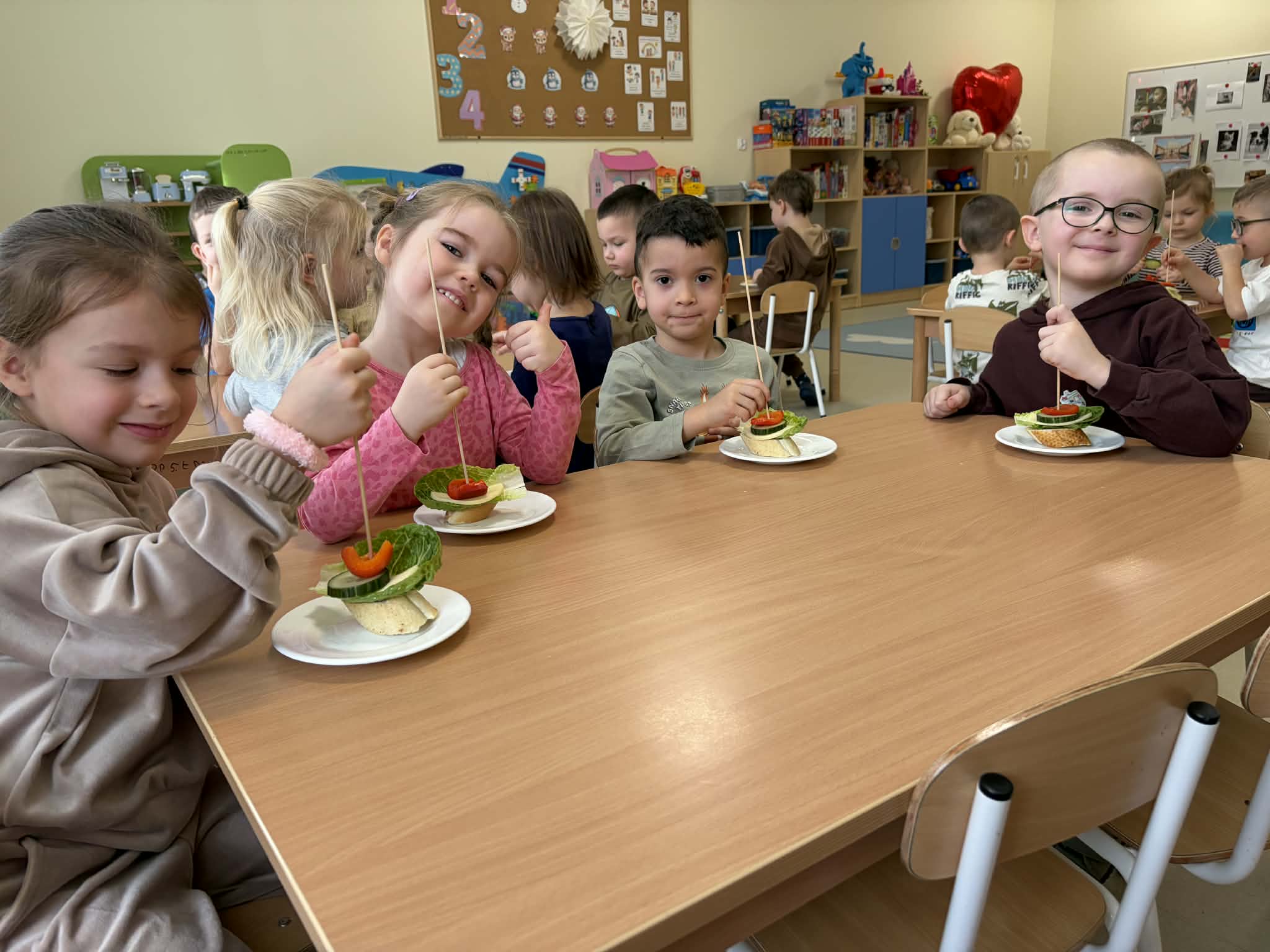 Tego dnia dzieci miały okazję uczestniczyć w wyjątkowych zajęciach pełnych kolorów, muzyki i radości. Przedszkolaki oglądały ciekawe prezentacje, dzięki którym poznały najważniejsze symbole, tradycje oraz ciekawostki związane z Hiszpanią. Nie zabrakło wspólnych zabaw ruchowych i aktywności inspirowanych hiszpańskim temperamentem. Odbyła się również wesoła „bitwa na pomidory” – nawiązująca do znanego święta La Tomatina.