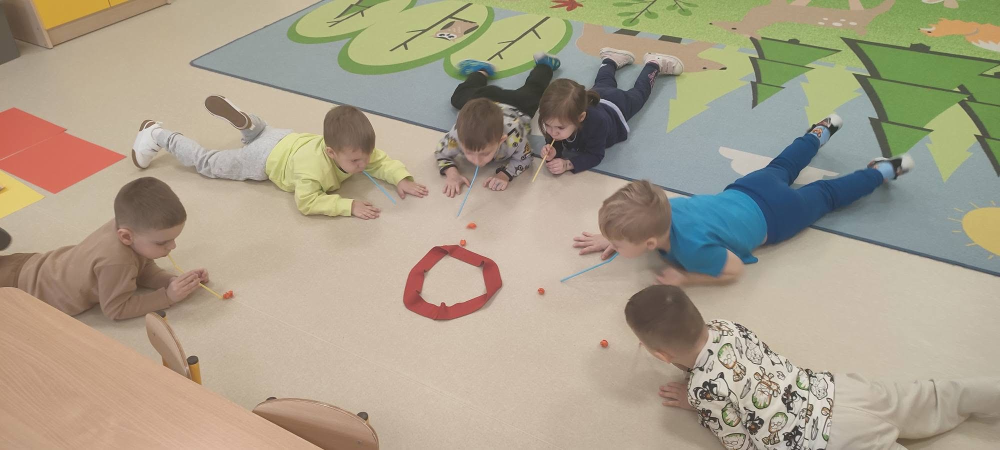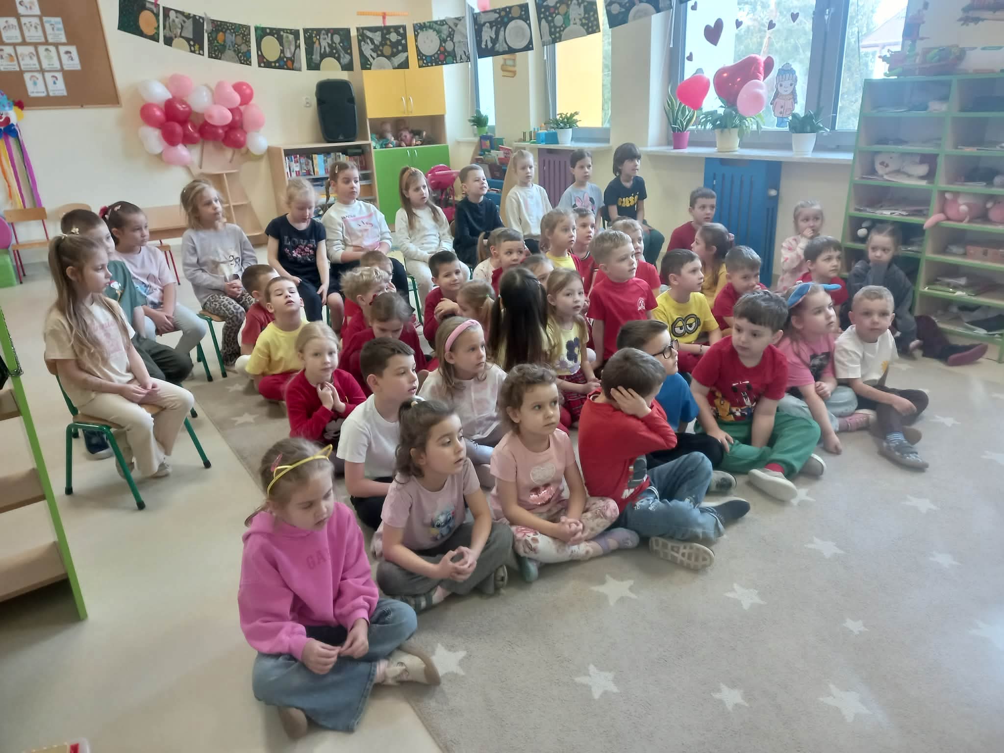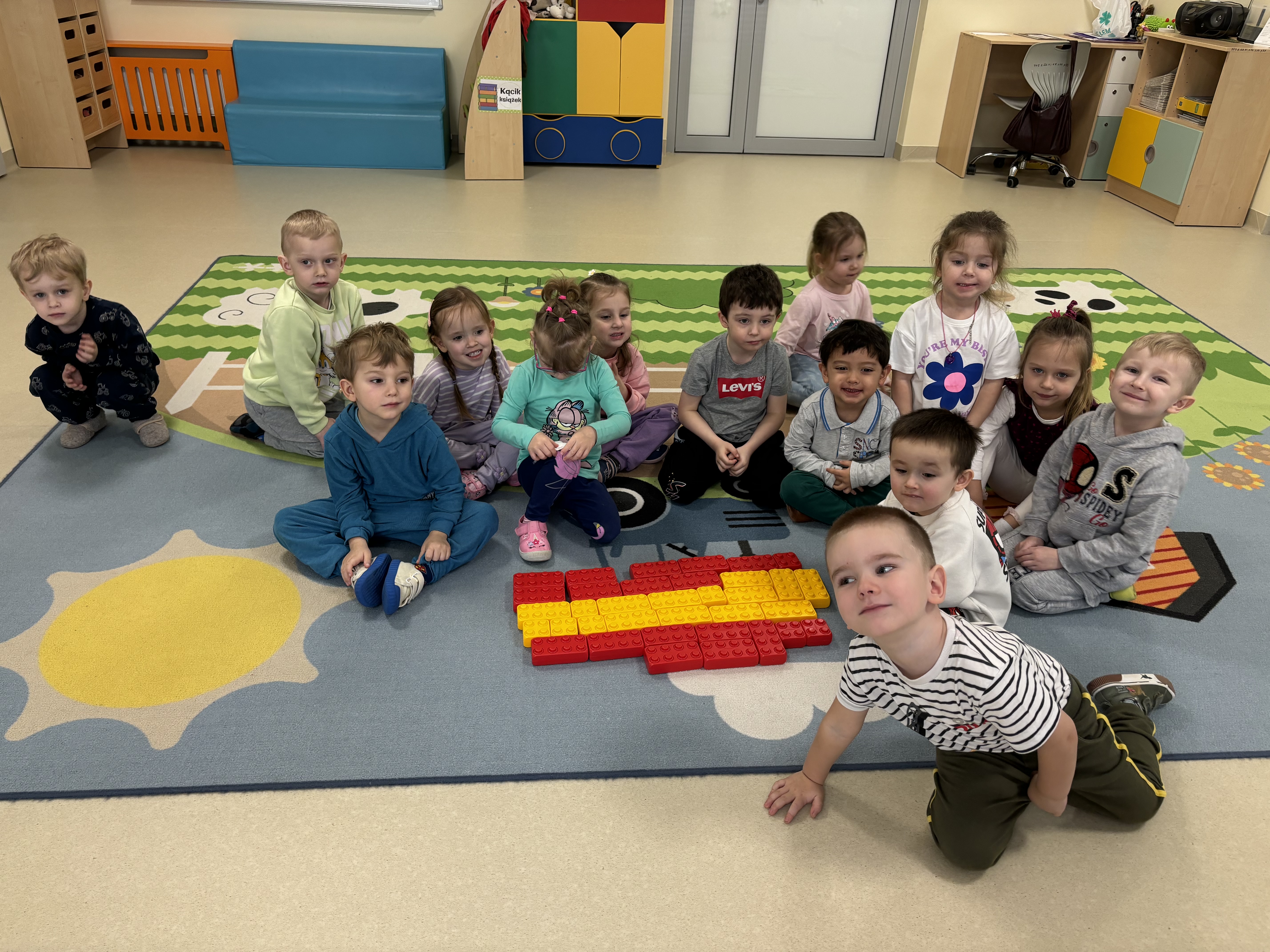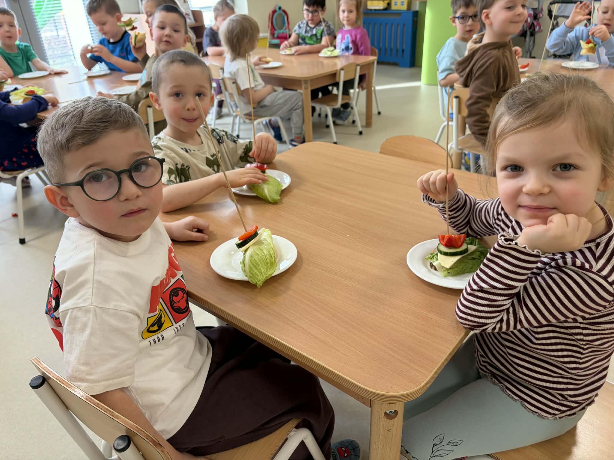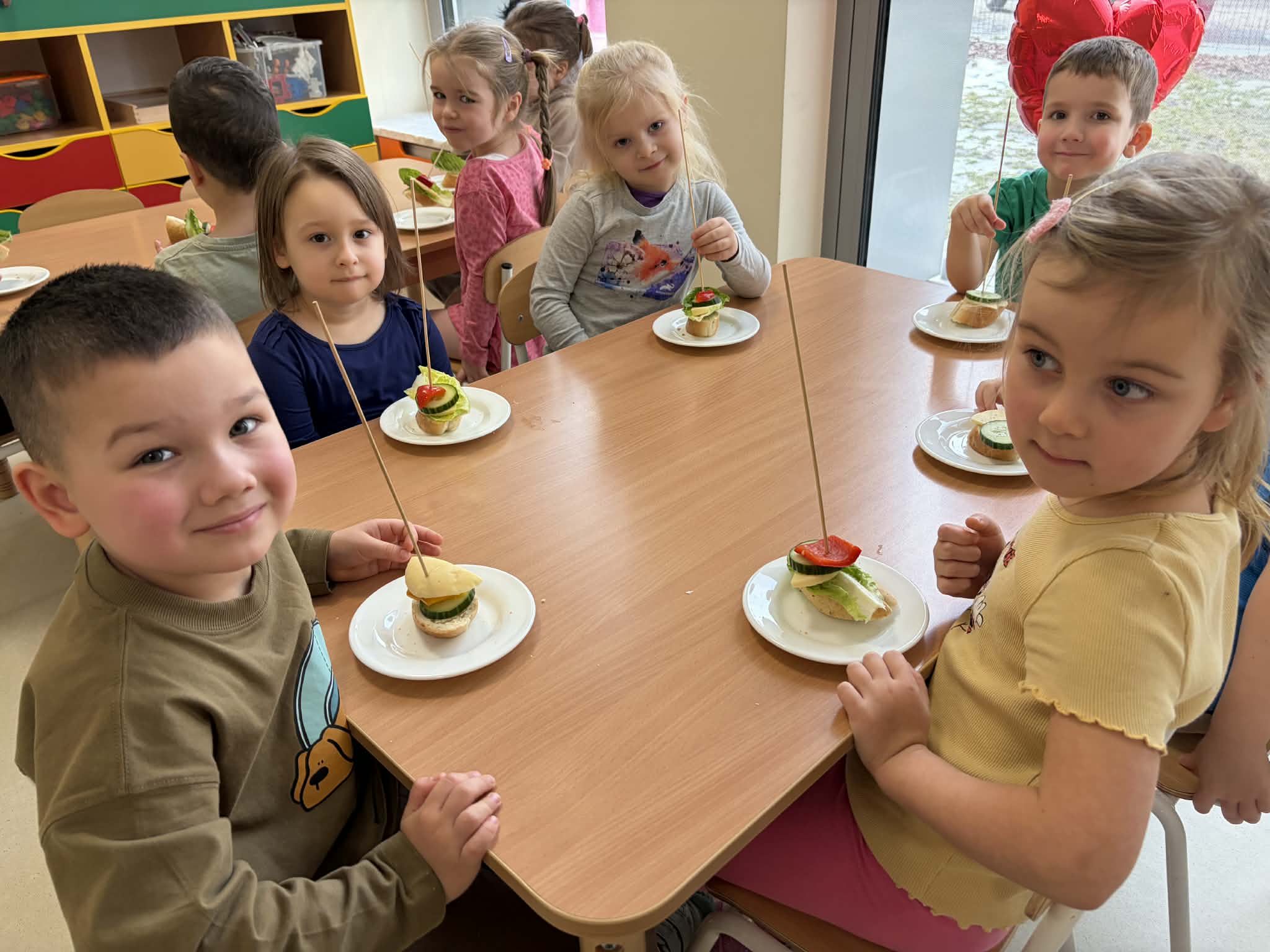 Tego dnia dzieci miały okazję uczestniczyć w wyjątkowych zajęciach pełnych kolorów, muzyki i radości. Przedszkolaki oglądały ciekawe prezentacje, dzięki którym poznały najważniejsze symbole, tradycje oraz ciekawostki związane z Hiszpanią. Nie zabrakło wspólnych zabaw ruchowych i aktywności inspirowanych hiszpańskim temperamentem. Odbyła się również wesoła „bitwa na pomidory” – nawiązująca do znanego święta La Tomatina.