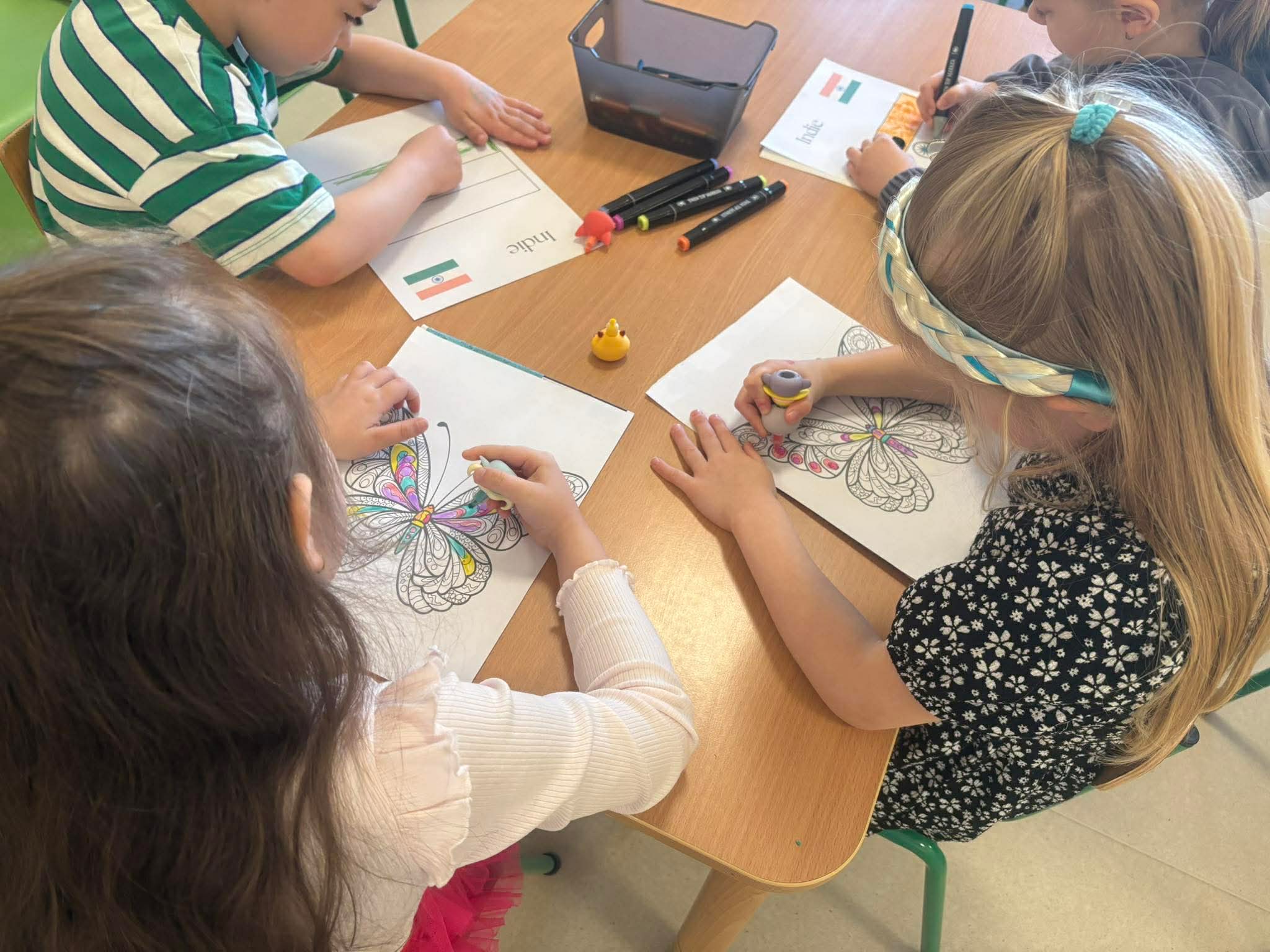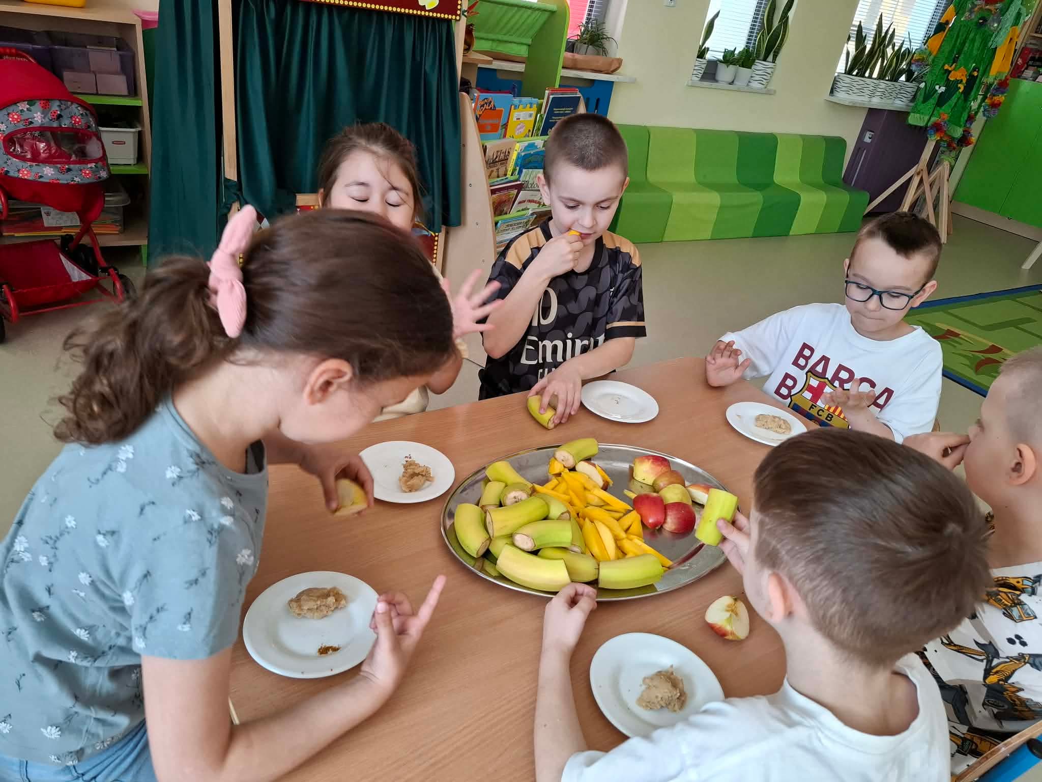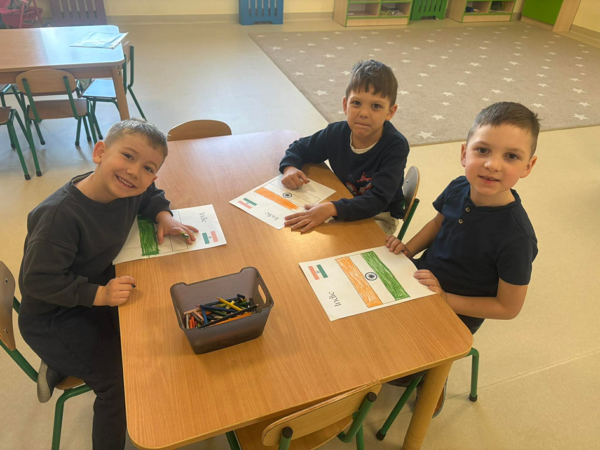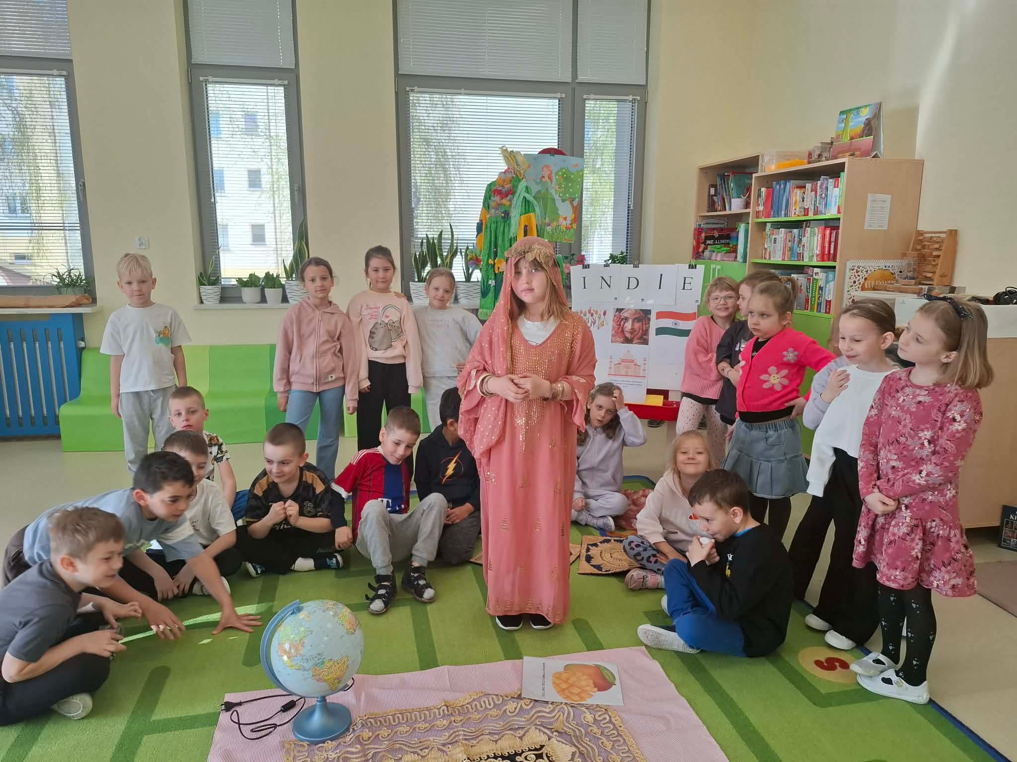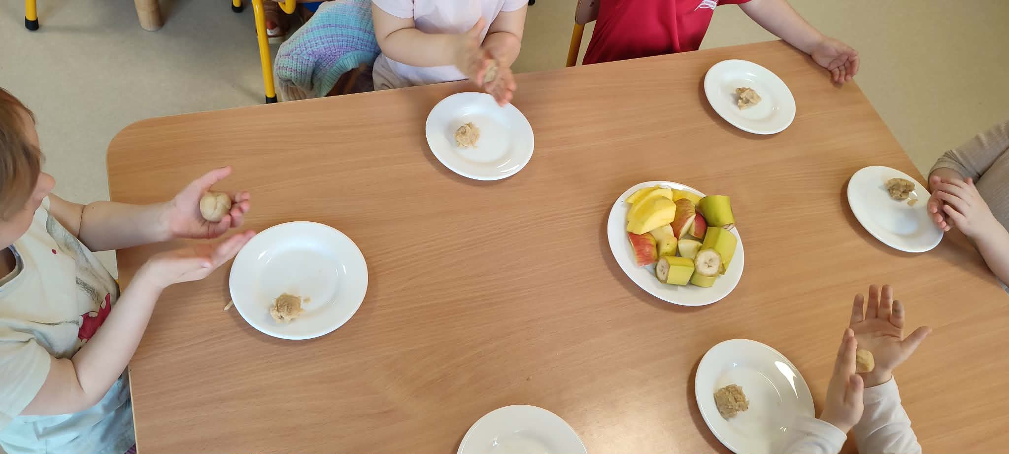 Podczas zajęć przedszkolaki dowiedziały się jak wygląda flaga Indii, jakie zwierzęta tam żyją oraz jakie potrawy są tam popularne. Nie zabrakło także aktywności praktycznych – dzieci słuchały indyjskiej muzyki, próbowały prostych ruchów tanecznych oraz wykonały kolorowe prace plastyczne inspirowane kulturą Indii. Głównym elementem dzisiejszego dnia była degustacja owoców oraz tworzenie przez dzieci indyjskich kulek z kaszy, znanych głównie jako Rava Laddu.
