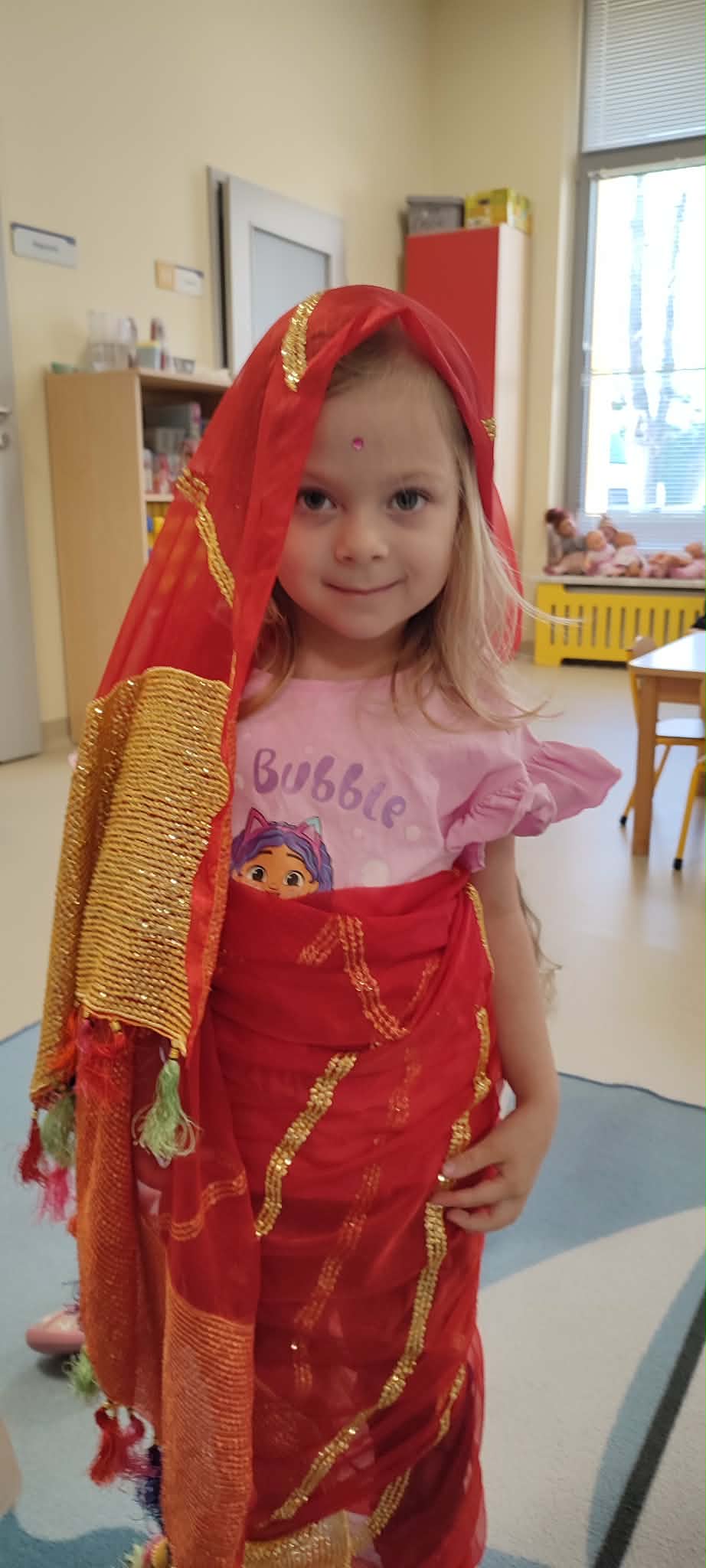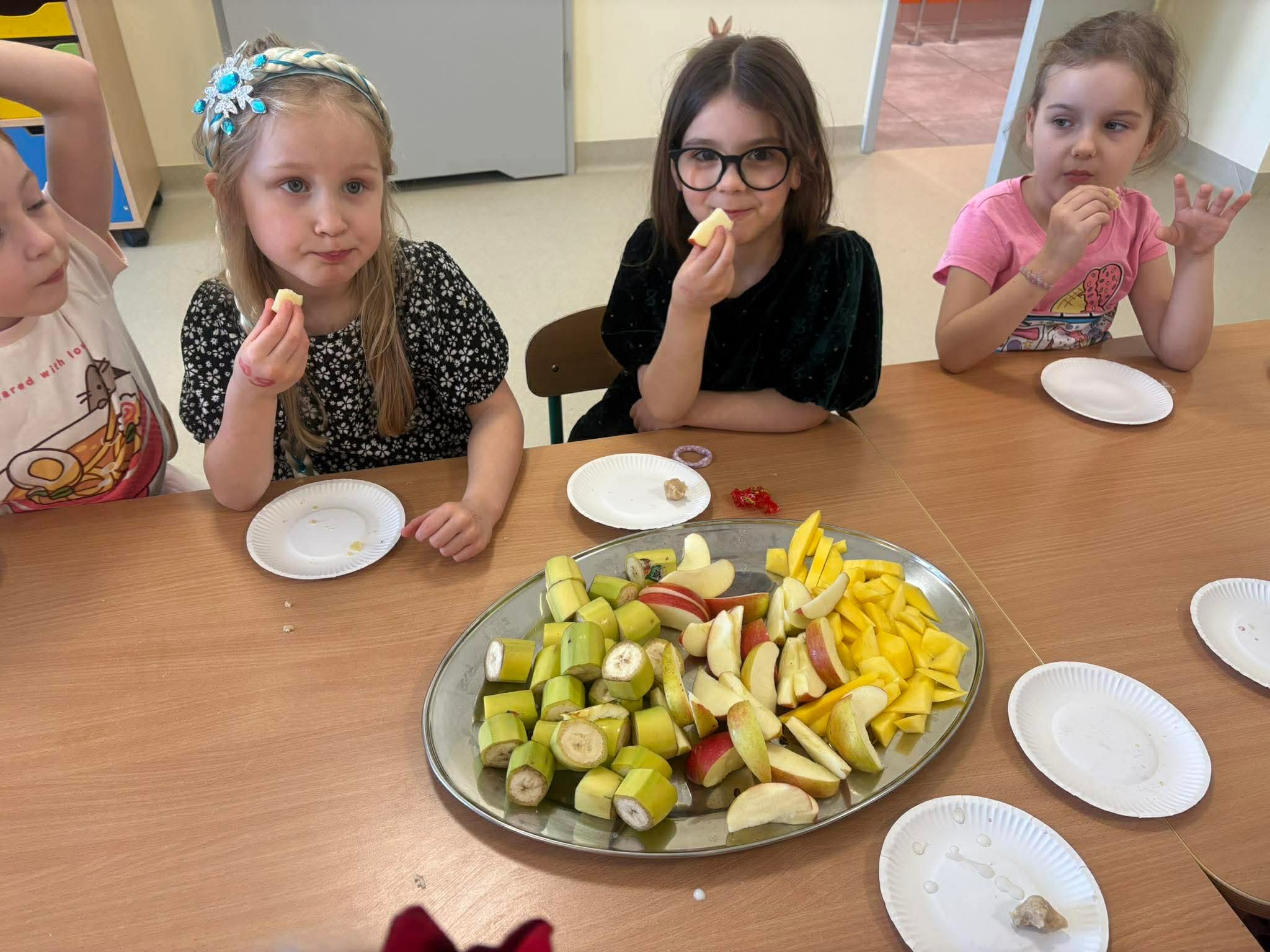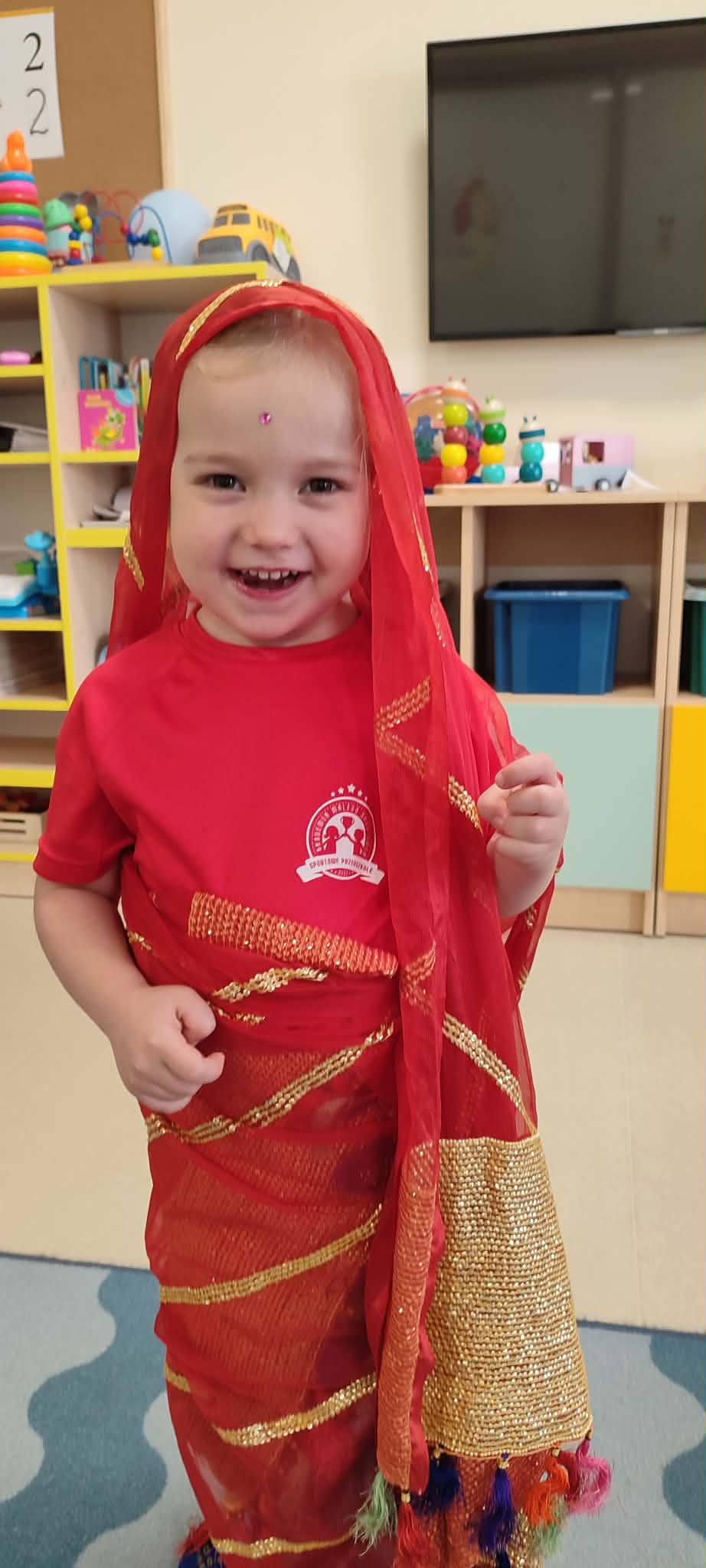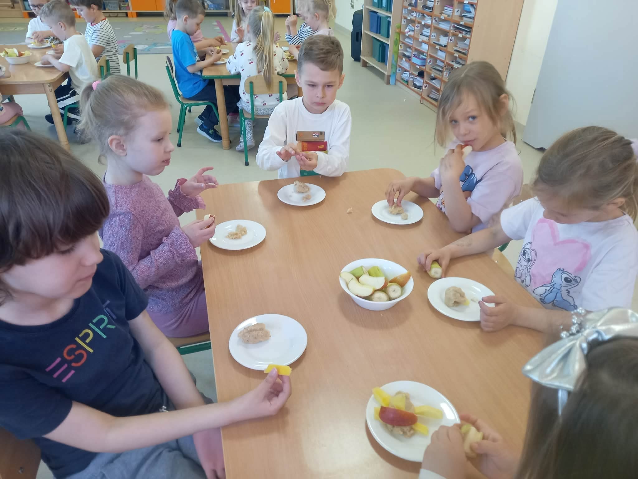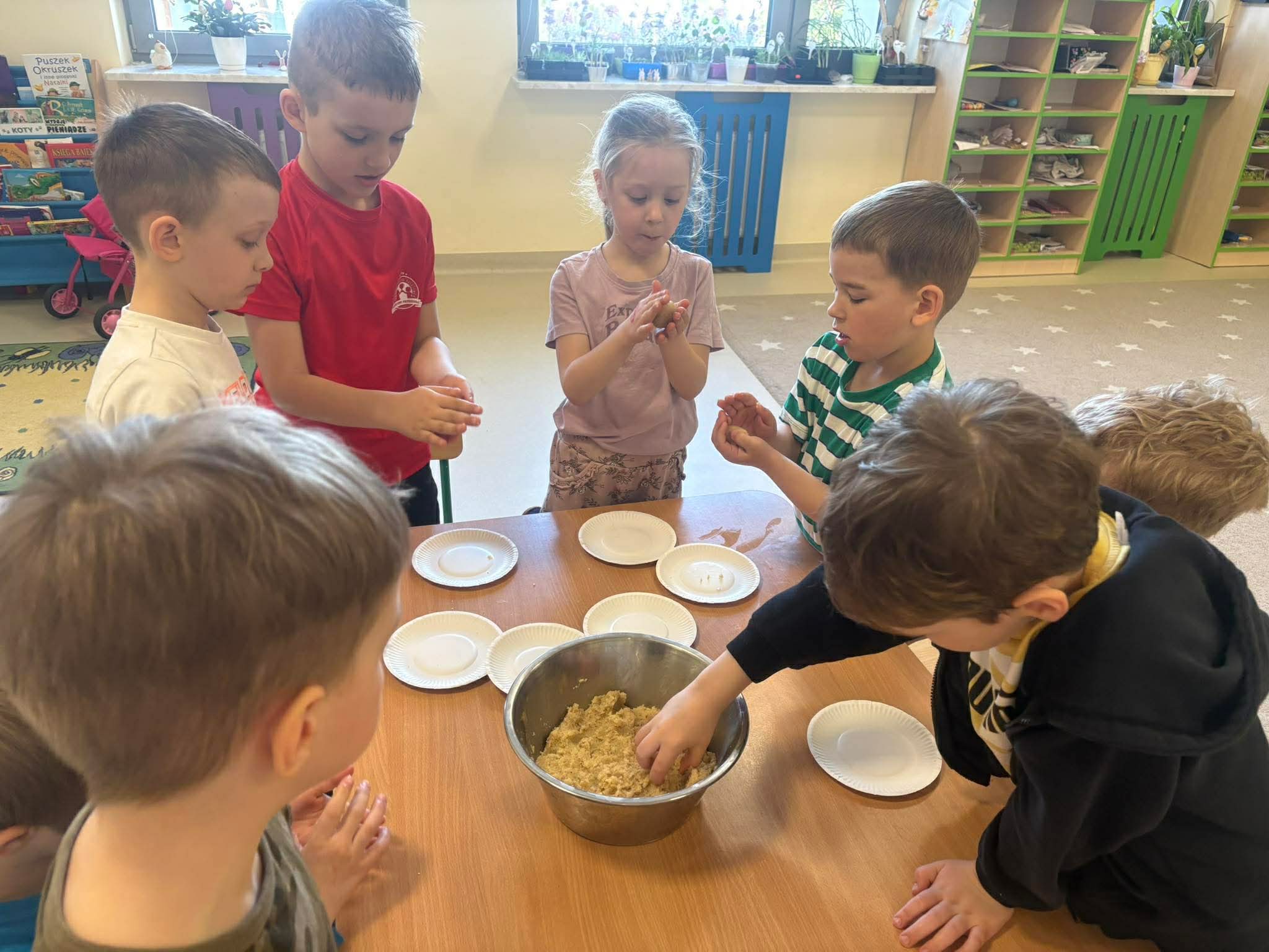 Podczas zajęć przedszkolaki dowiedziały się jak wygląda flaga Indii, jakie zwierzęta tam żyją oraz jakie potrawy są tam popularne. Nie zabrakło także aktywności praktycznych – dzieci słuchały indyjskiej muzyki, próbowały prostych ruchów tanecznych oraz wykonały kolorowe prace plastyczne inspirowane kulturą Indii. Głównym elementem dzisiejszego dnia była degustacja owoców oraz tworzenie przez dzieci indyjskich kulek z kaszy, znanych głównie jako Rava Laddu.