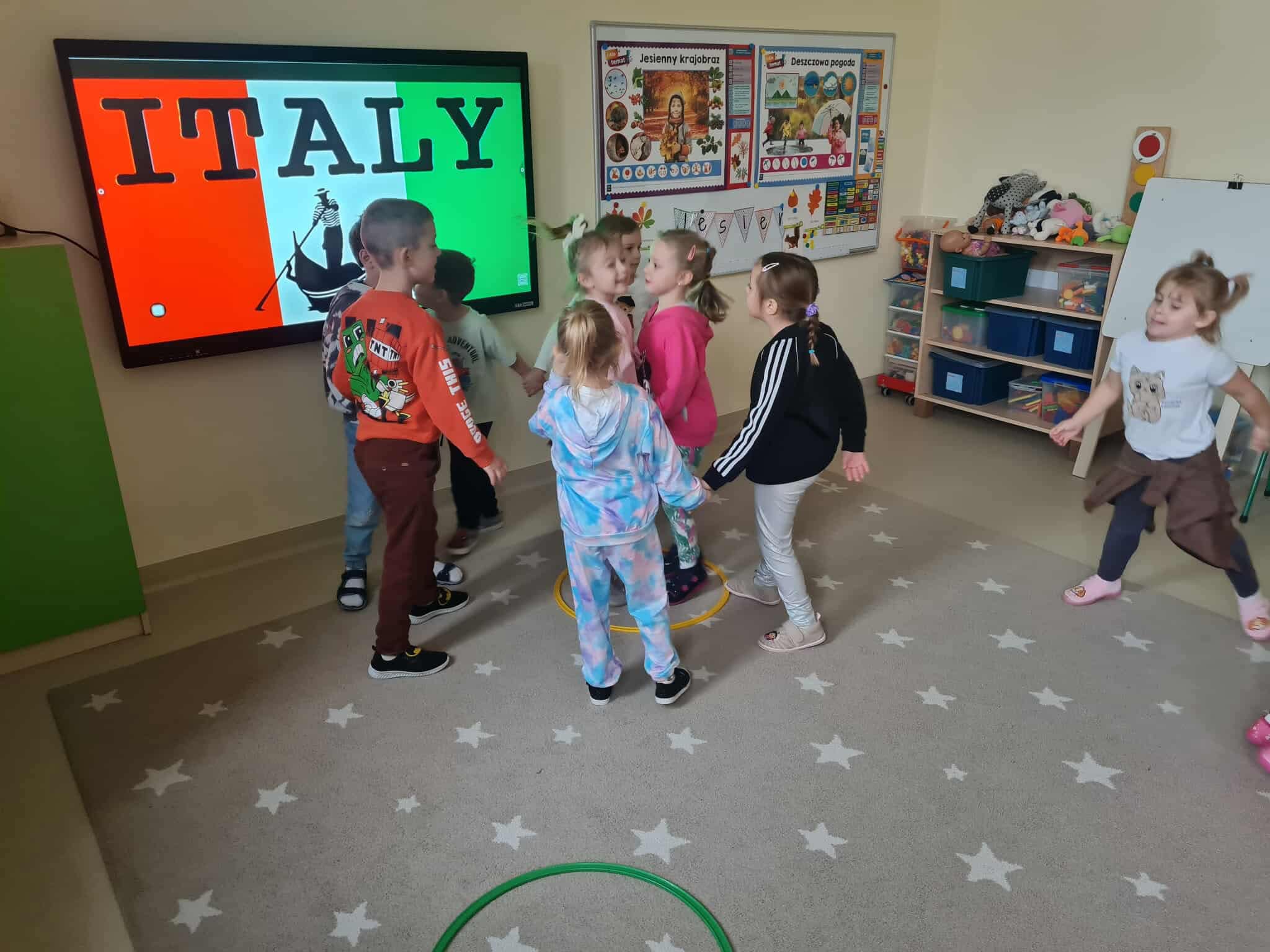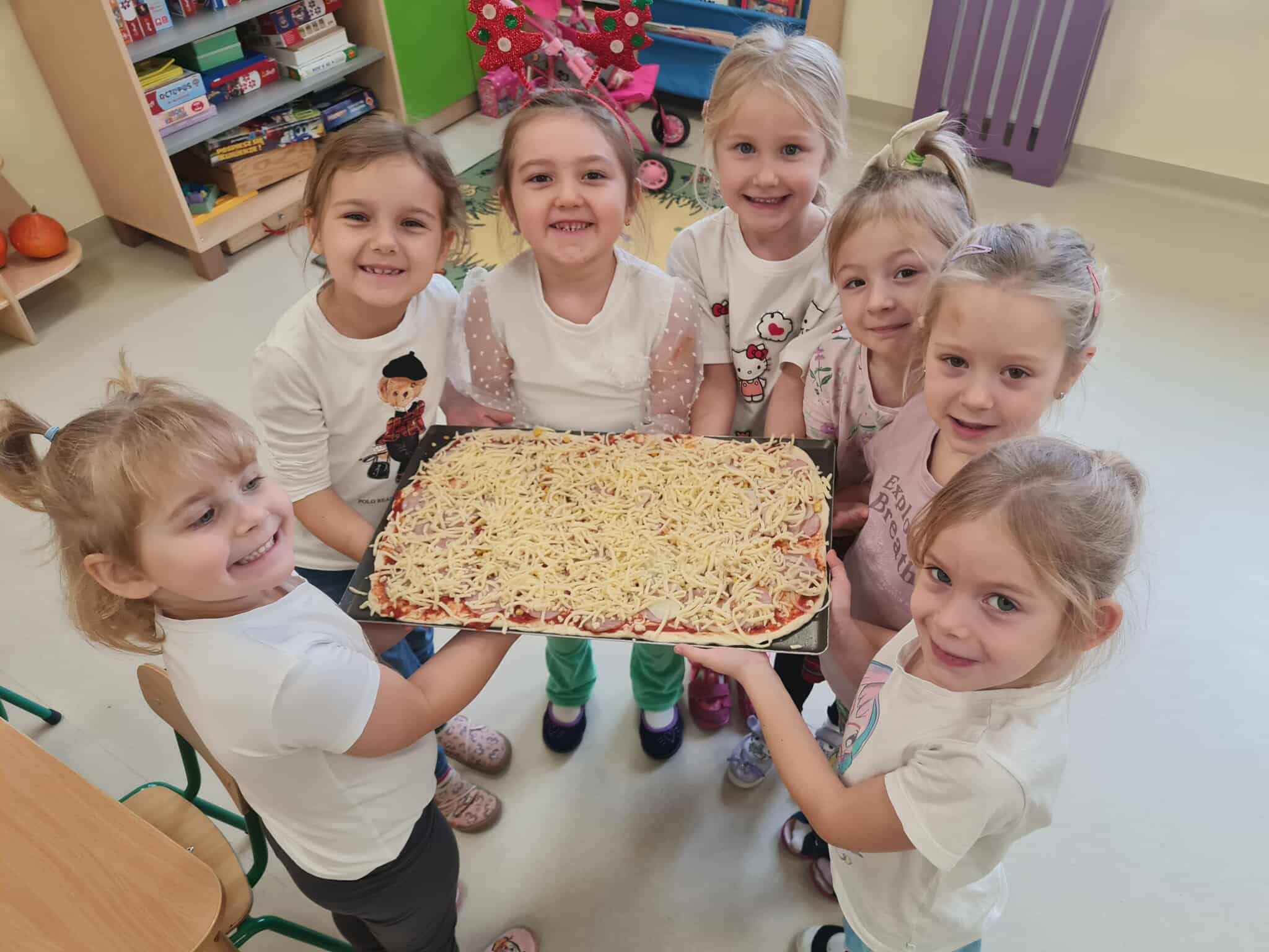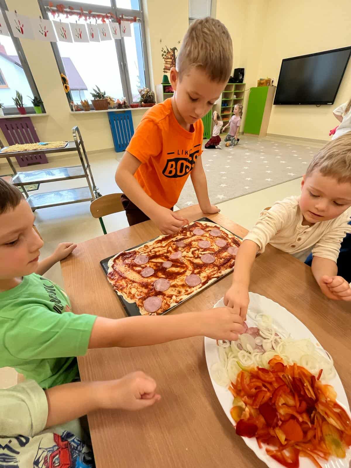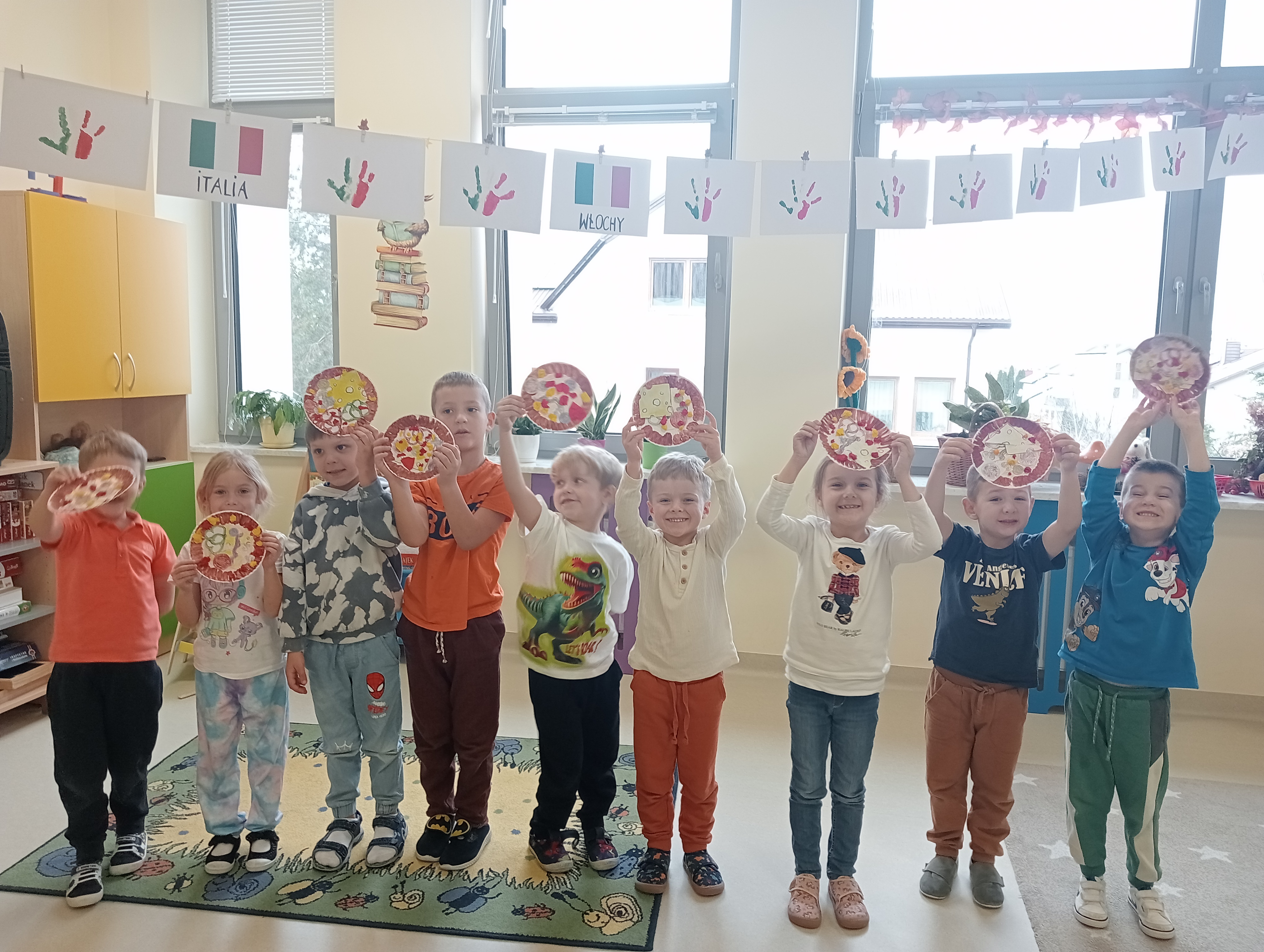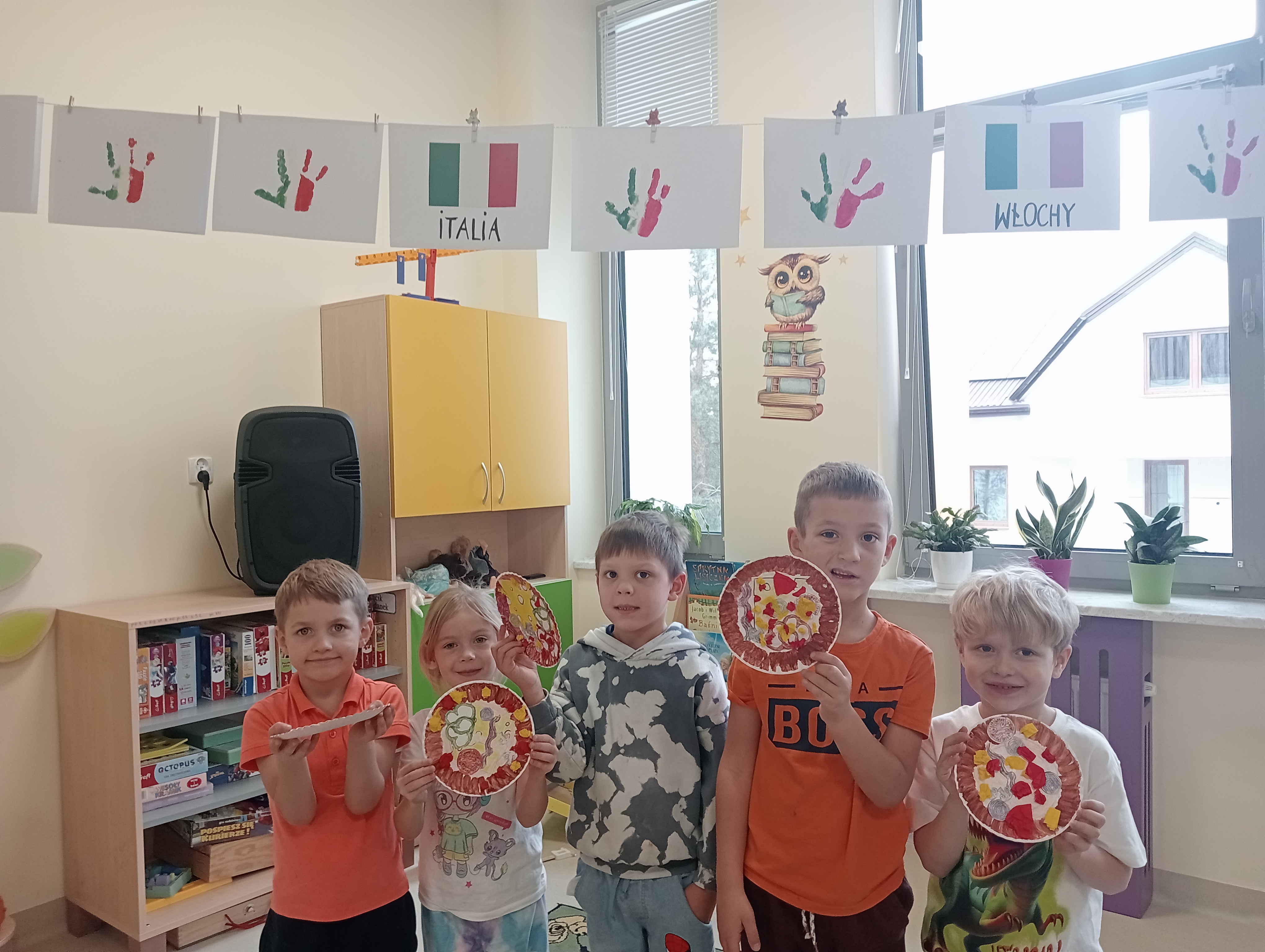 Dzieci już od rana mogły poczuć szczególny klimat dnia Włoskiego, ponieważ na śniadanie miały do degustacji składniki charakterystyczne dla kuchni włoskiej tj. ser mozzarella, oliwki. Przedszkolaki poznały włoskie zabytki oraz podstawowe zwroty w języku włoskim. Nie zabrakło zajęć plastycznych! Dzieci wykonywały włoską flagę, kolaż pizzę oraz paszport. Główną atrakcją dzisiejszego dnia było wykonanie pizzy. Dzieci samodzielnie dekorowały pizzę ulubionymi dodatkami, a następnie wszyscy wspólnie ją zjedli.