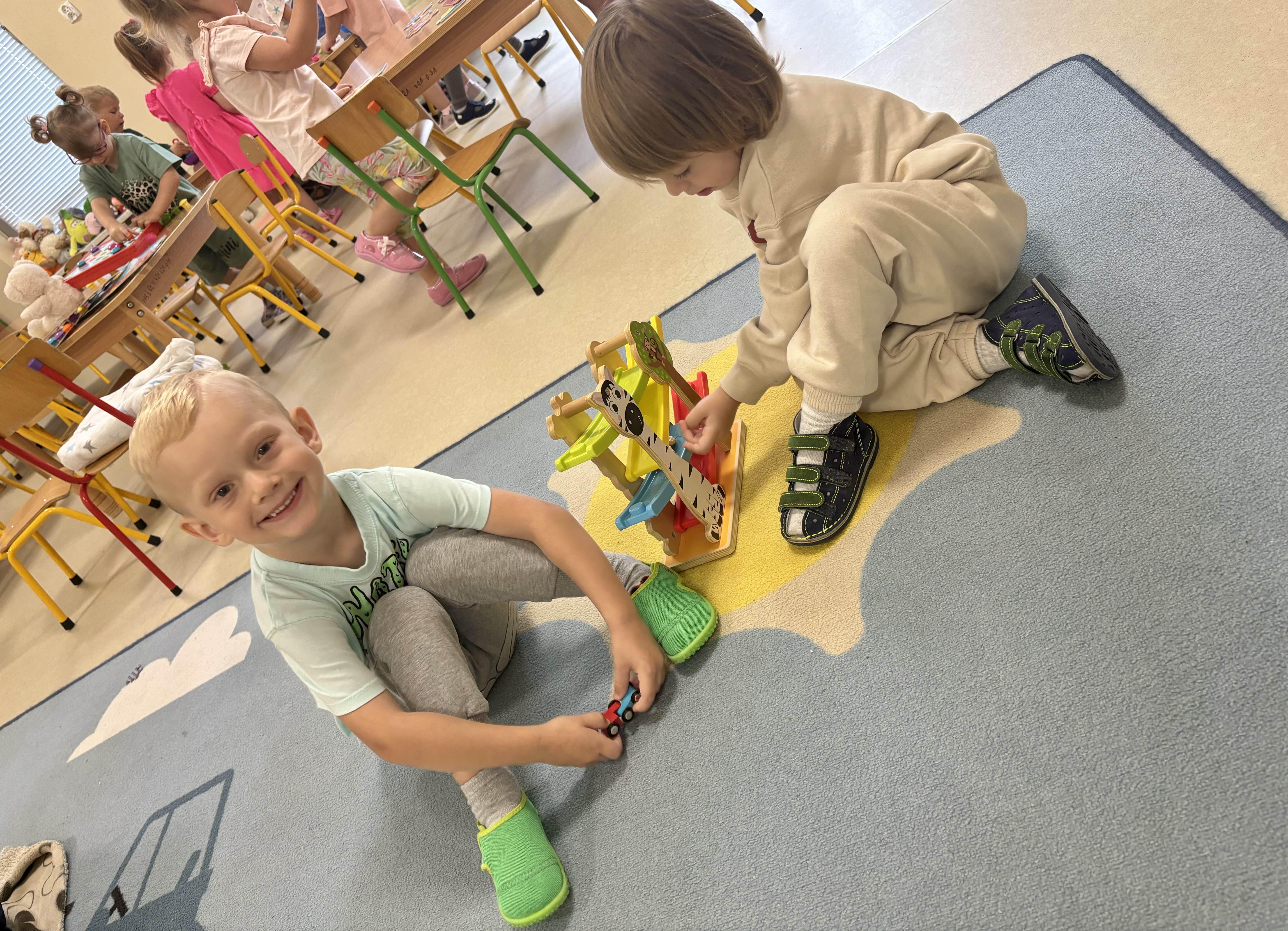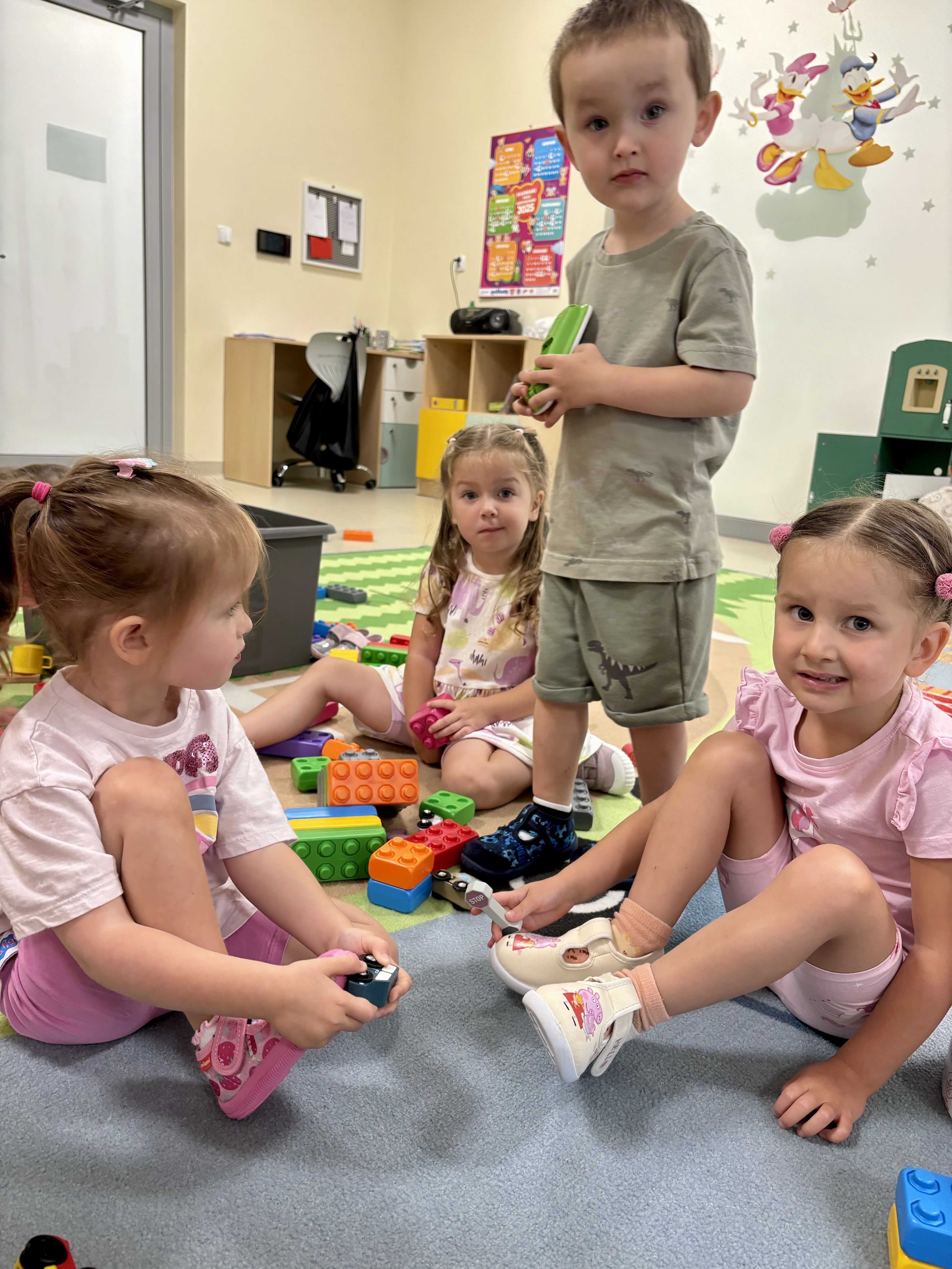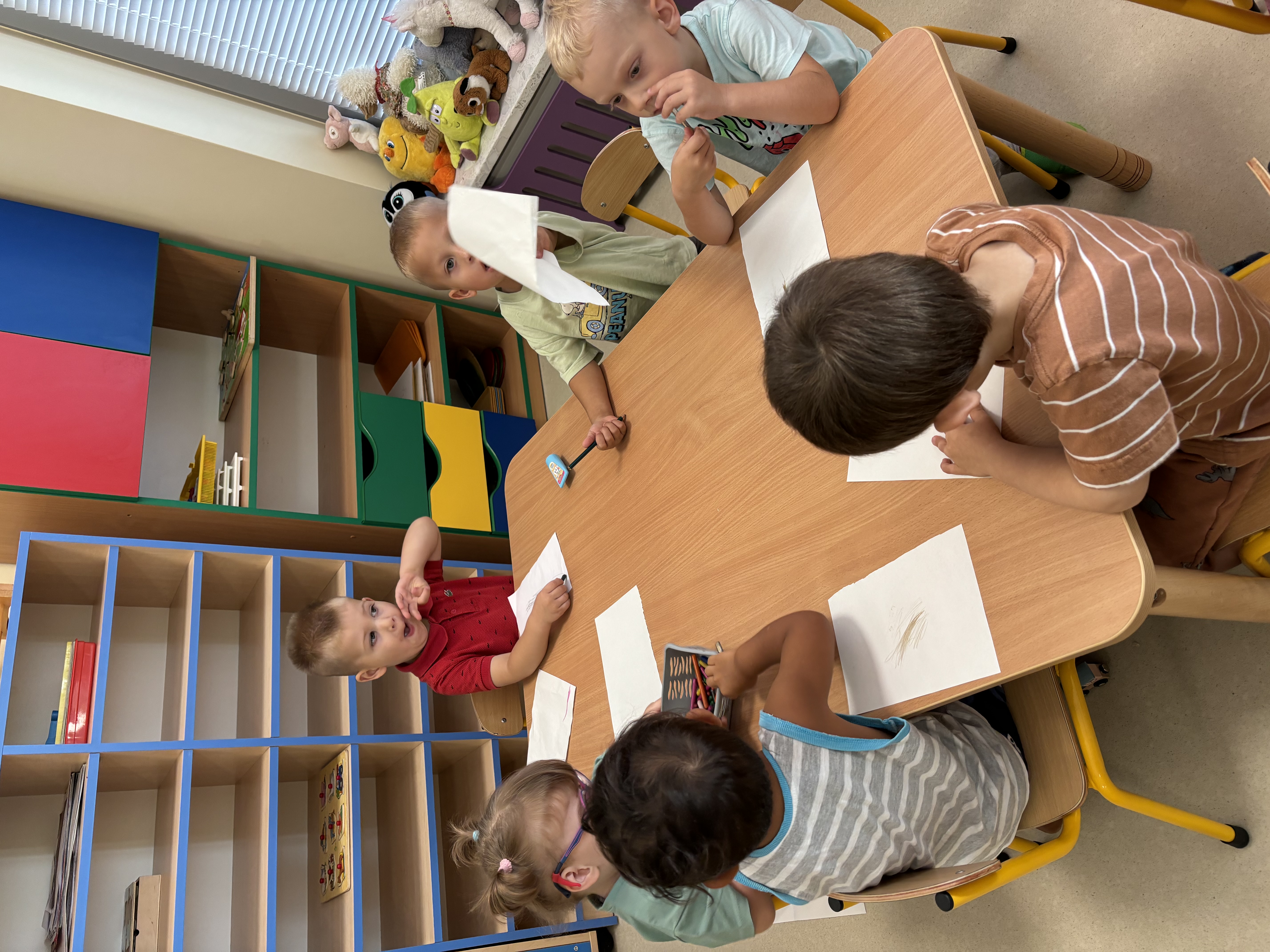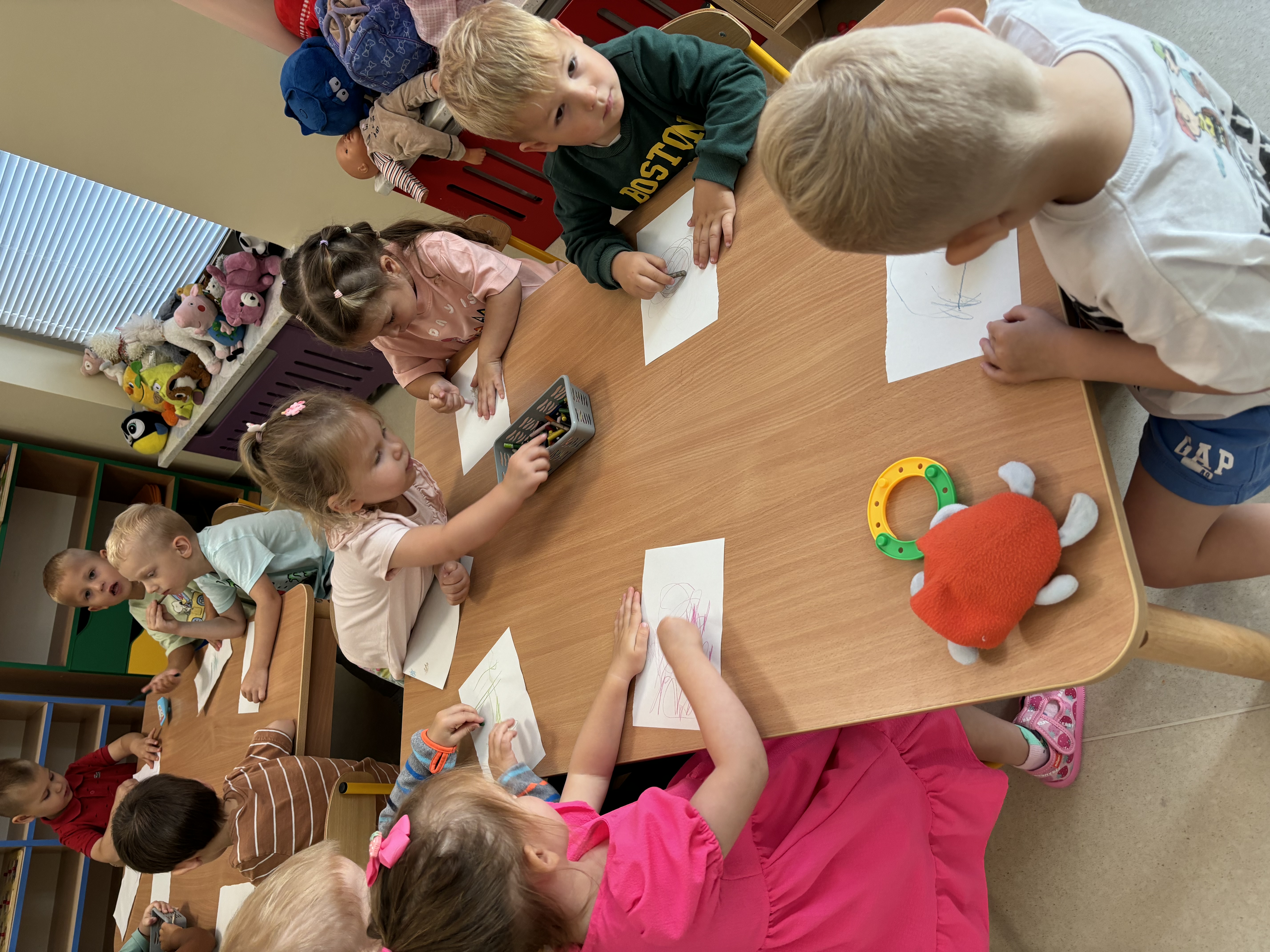 Dzieci radzą sobie coraz lepiej, poznały swoją salę, zabawki, tworzyły pierwszą pracę plastyczną, ale co najważniejsze... poznawały swoich kolegów, uczyły się wspólnej zabawy.