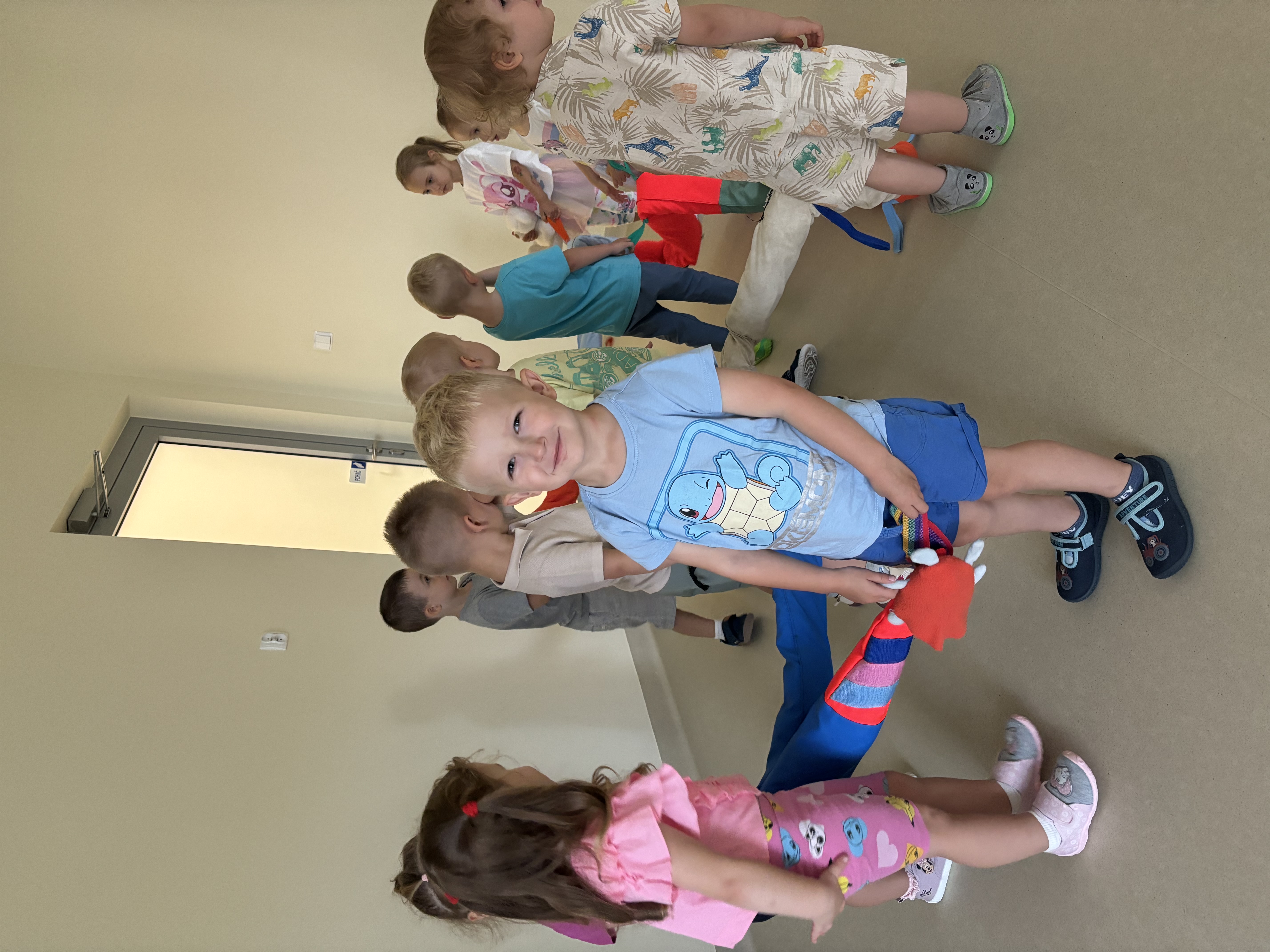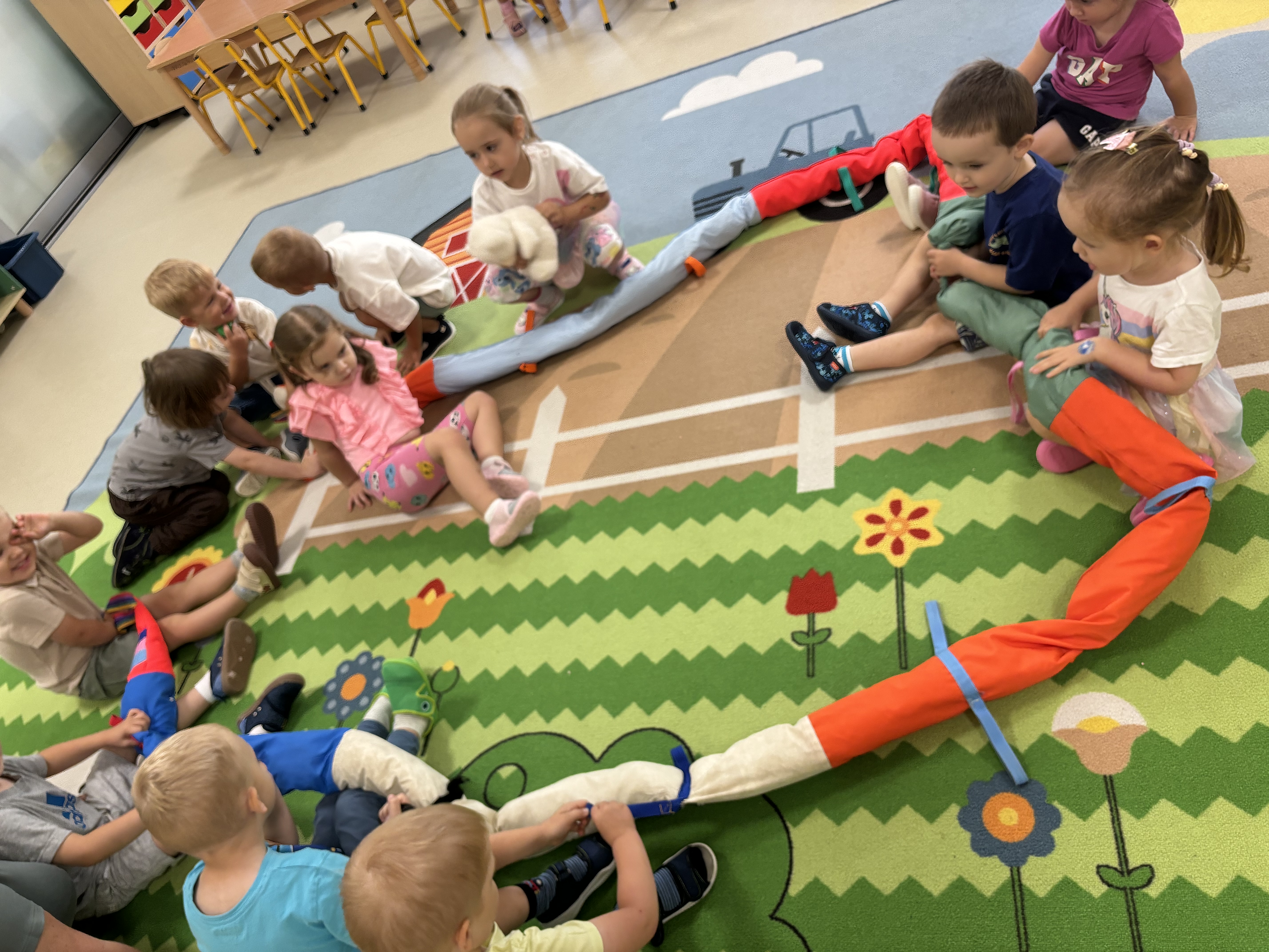 Dzieci zapoznały się również z maskotką węża spacerowego - z jego pomocą utrwaliły nazwy kolorów oraz udały się wraz z nim na spacer po przedszkolu.