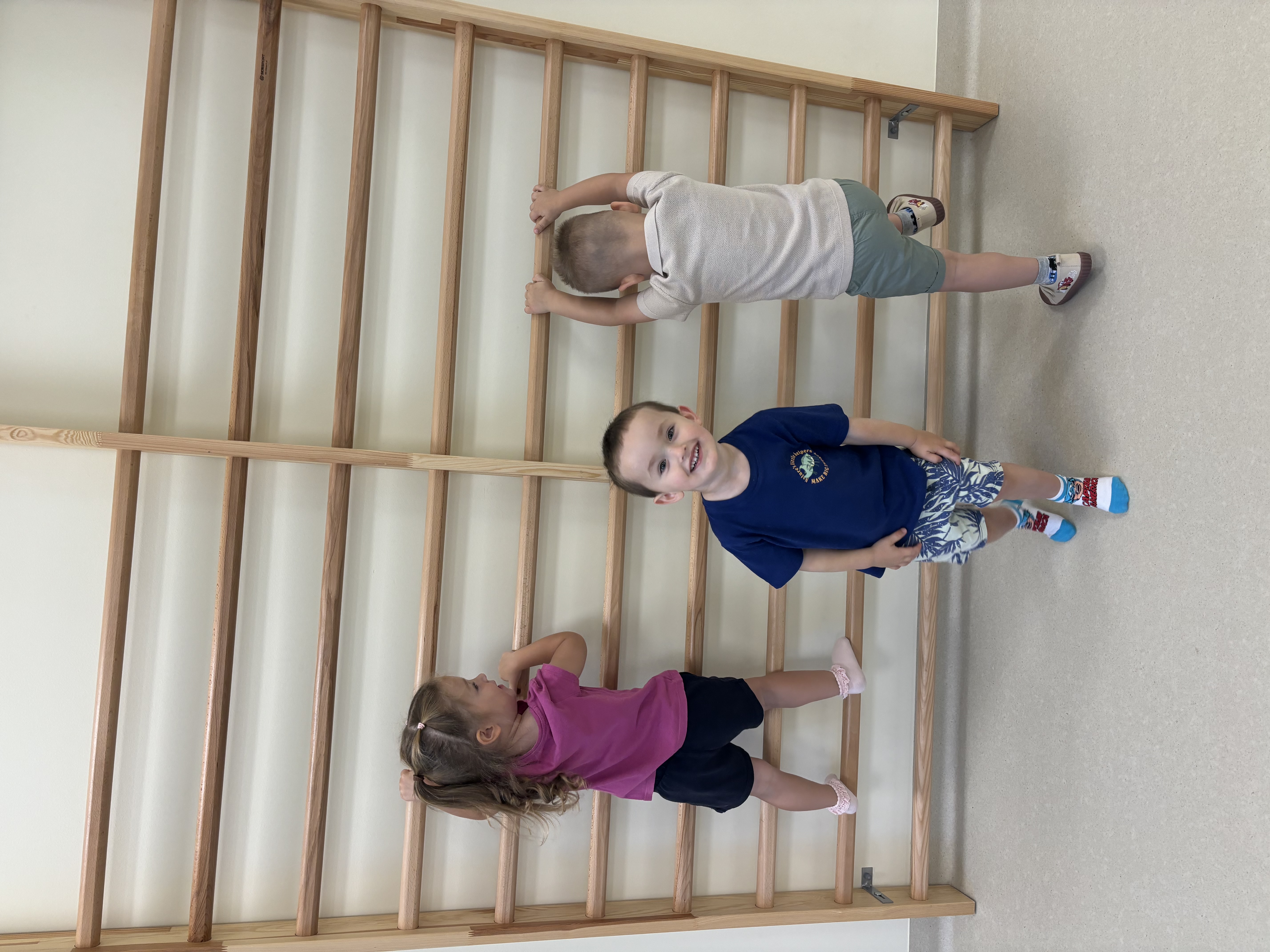 Spacer zakończył się wizytą na sali gimnastycznej, która sprawiła naszym przedszkolakom duuuużo frajdy!