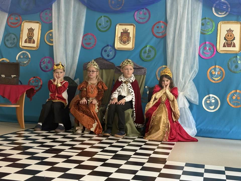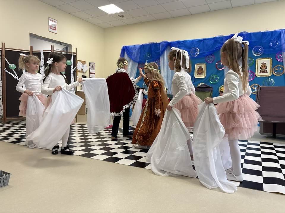 6 marca w naszym przedszkolu odbyło się wyjątkowe przedstawienie pt. „W Królestwie Emolandii”, które tym razem zostało zaprezentowane dla całej społeczności przedszkolnej. Było to niezwykłe wydarzenie pełne emocji, radości i dziecięcej kreatywności. Mali artyści z ogromnym zaangażowaniem wcielili się w swoje role, zabierając widzów w podróż do magicznego świata emocji. Podczas przedstawienia dzieci w piękny i zrozumiały sposób ukazały, jak ważne są uczucia takie jak radość, smutek, złość czy strach oraz jak można je rozpoznawać i wyrażać. Barwne stroje, piosenki, wiersze oraz elementy ruchowe sprawiły, że występ był niezwykle ciekawy i poruszający.