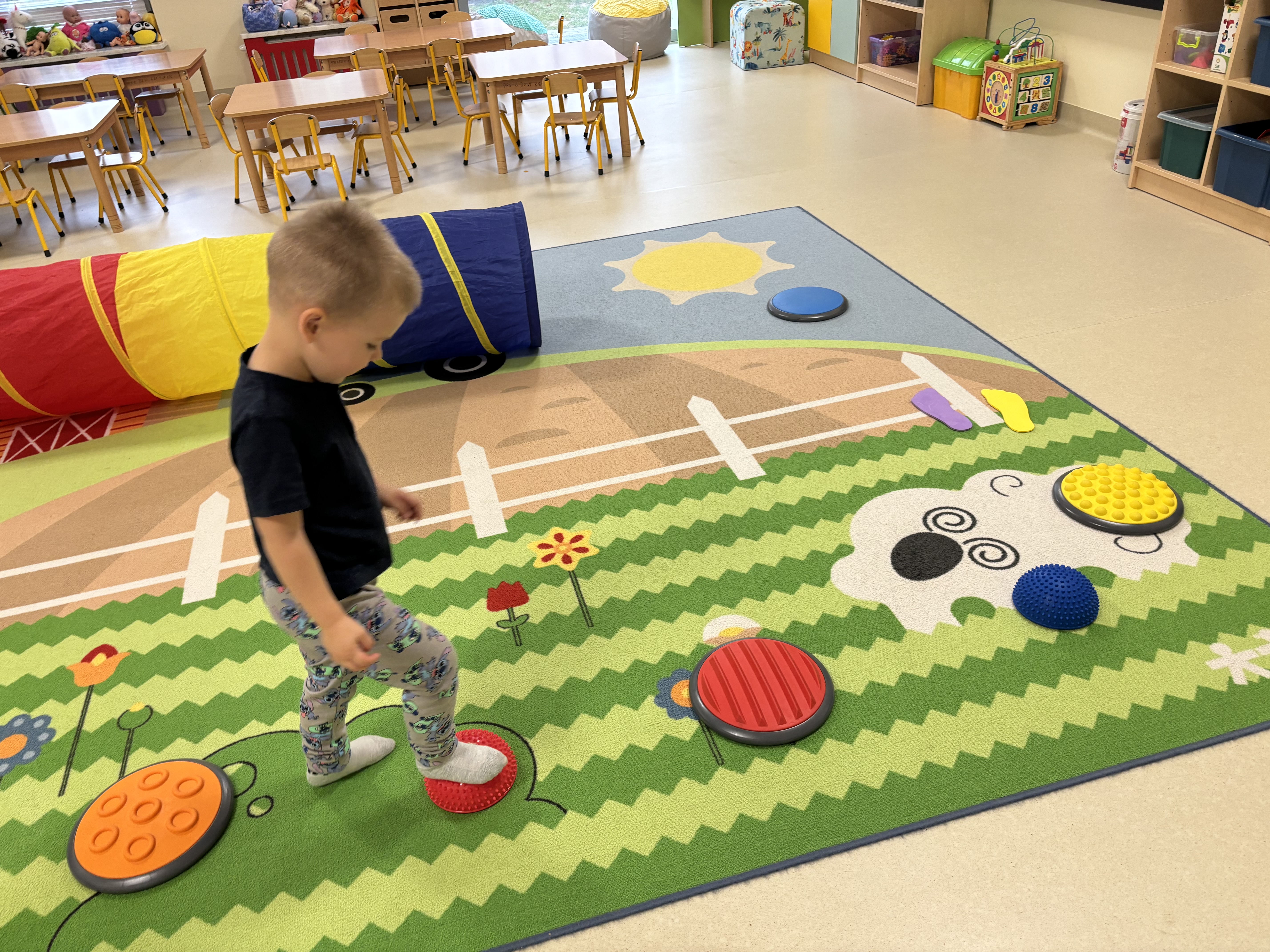 W naszym przedszkolu bardzo często uczymy się nowych rzeczy i próbujemy czegoś nowego. Ścieżka sensoryczna okazała się być świetnym pomysłem na zabawę – pobudza kreatywność i pozwala maluchom w bezpieczny sposób odkrywać otaczający go świat.
