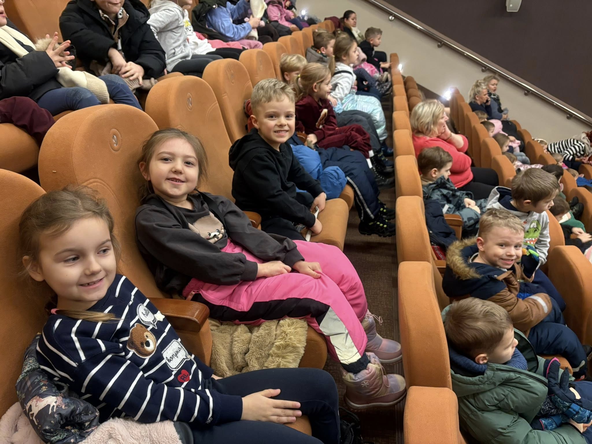 We wtorek 13.01. 2026 dzieci z gr. V, VI i VII wybrały się busem do Centrum Kultury w Łomży na spektakl pt. „Śnieżka” w wykonaniu Katolickiego Teatru Edukacji z Krakowa. Ta pełna emocji i wzruszeń adaptacja zachwyciła zarówno dzieci, jak i dorosłych, przenosząc nas w świat magii, przygód i głębokich wartości. „Śnieżka”, to nie tylko piękna opowieść o odwadze, przyjaźni i walce dobra ze złem, ale także wspaniała lekcja dla najmłodszych o tym, jak ważna jest dobroć, uczciwość i współczucie. Bajka uczy, że warto pomagać innym i przestrzega przed łatwowiernością w stosunku do obcych. Był to niezwykle wesoły oraz pouczający spektakl, który dostarczył dzieciom wielu pozytywnych wrażeń.