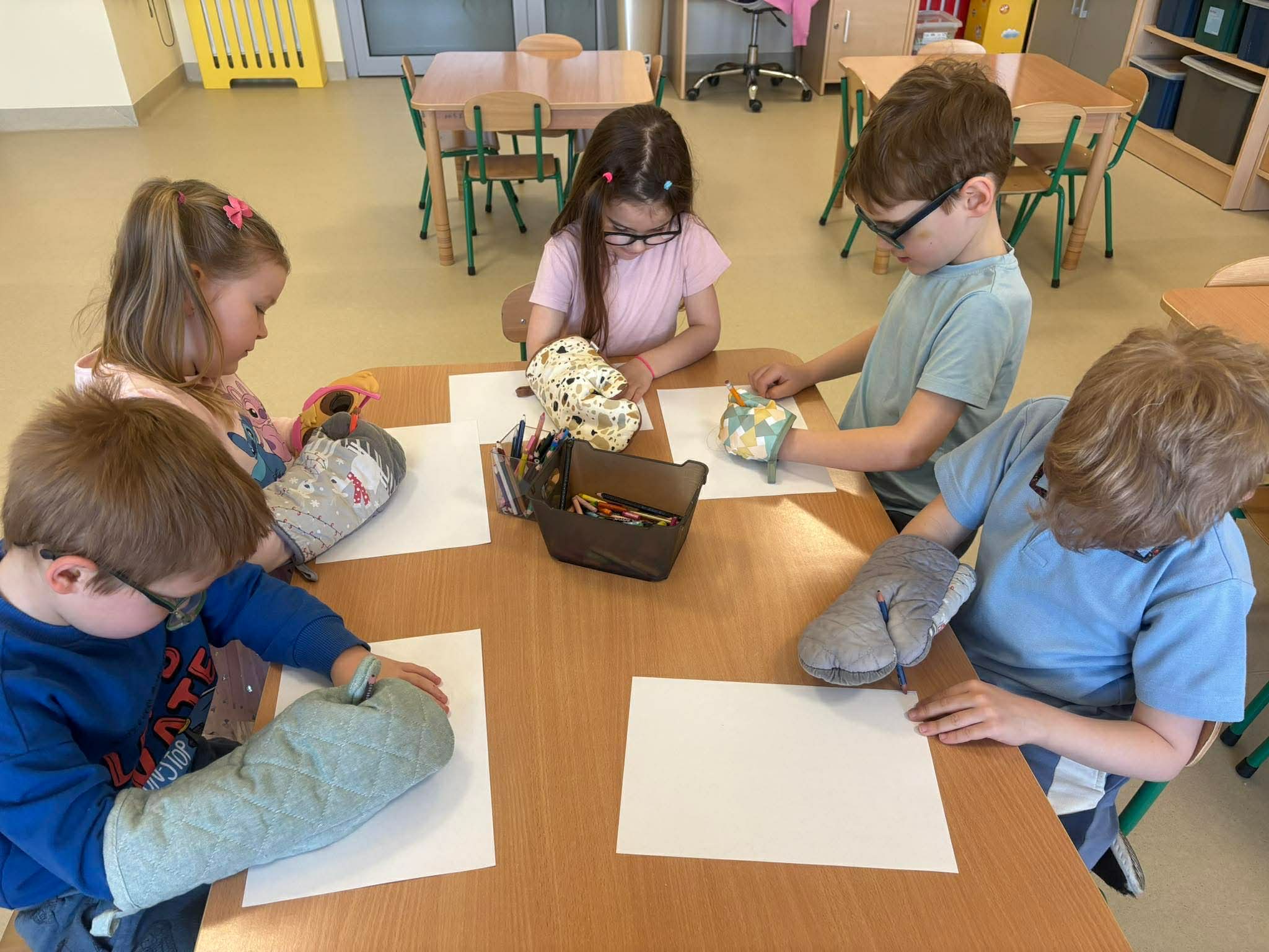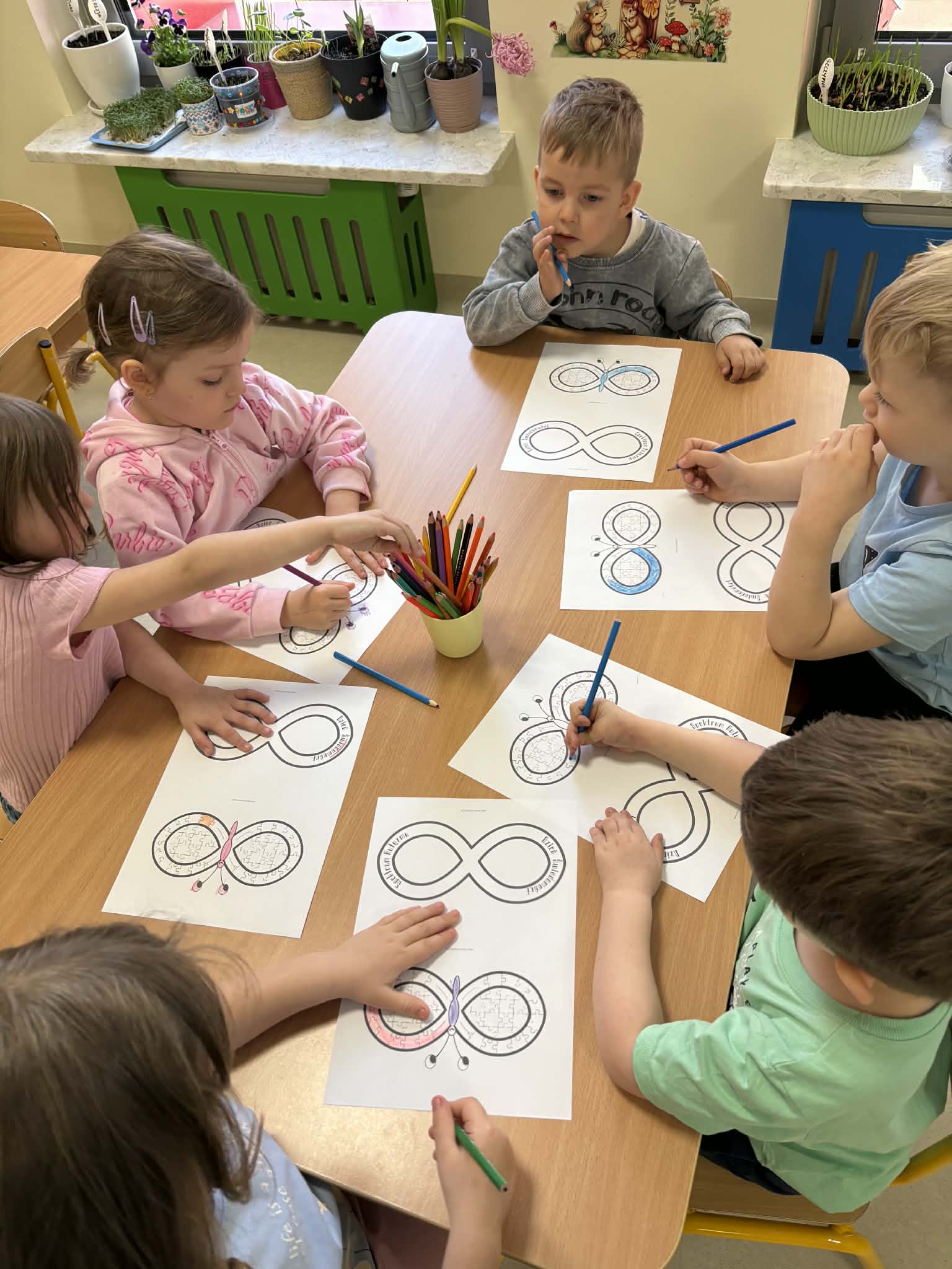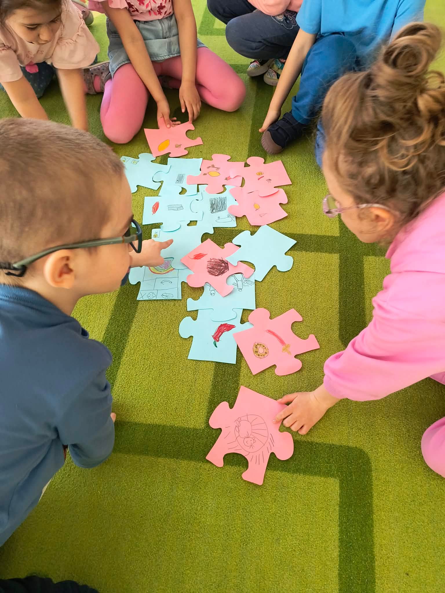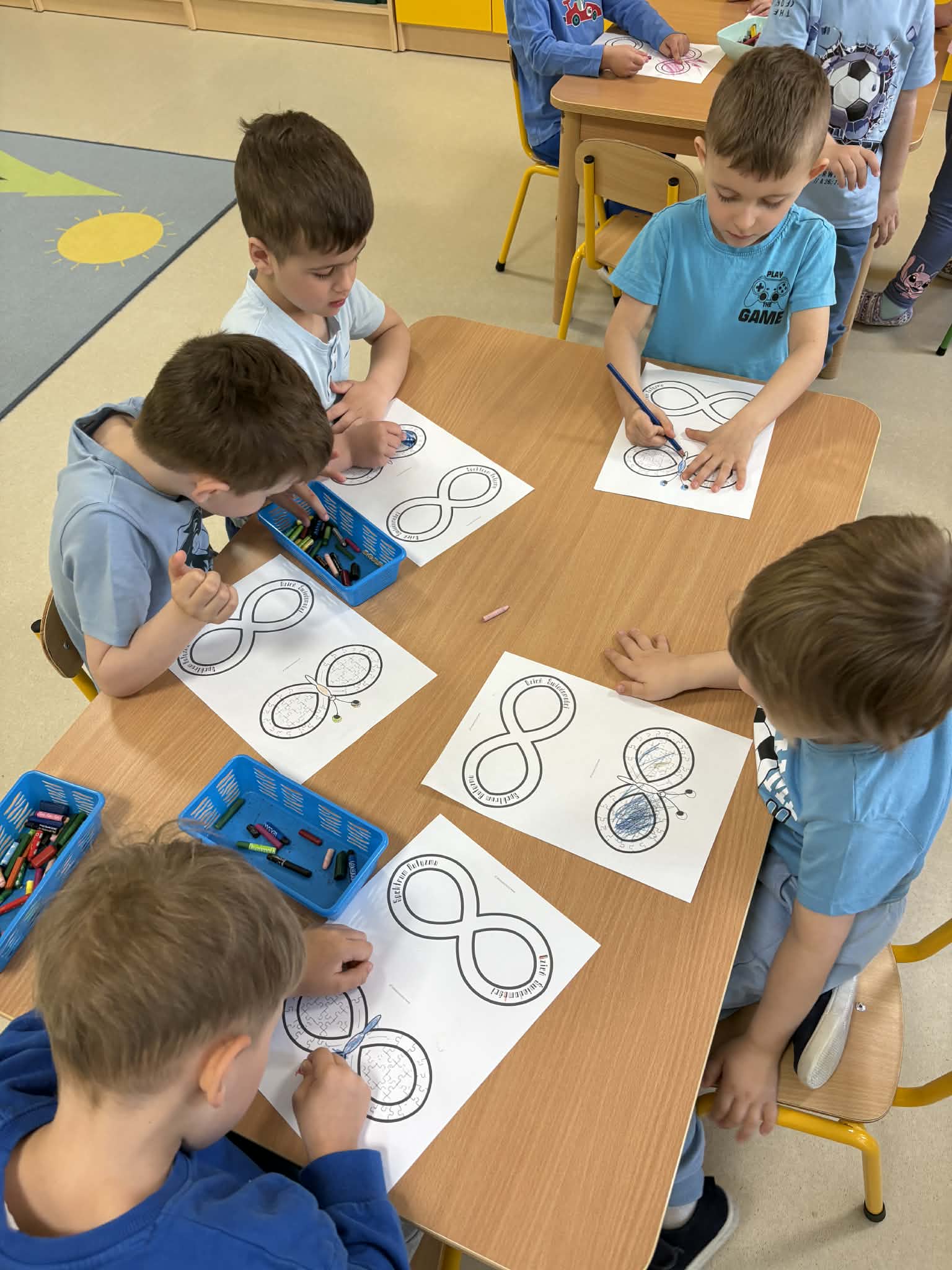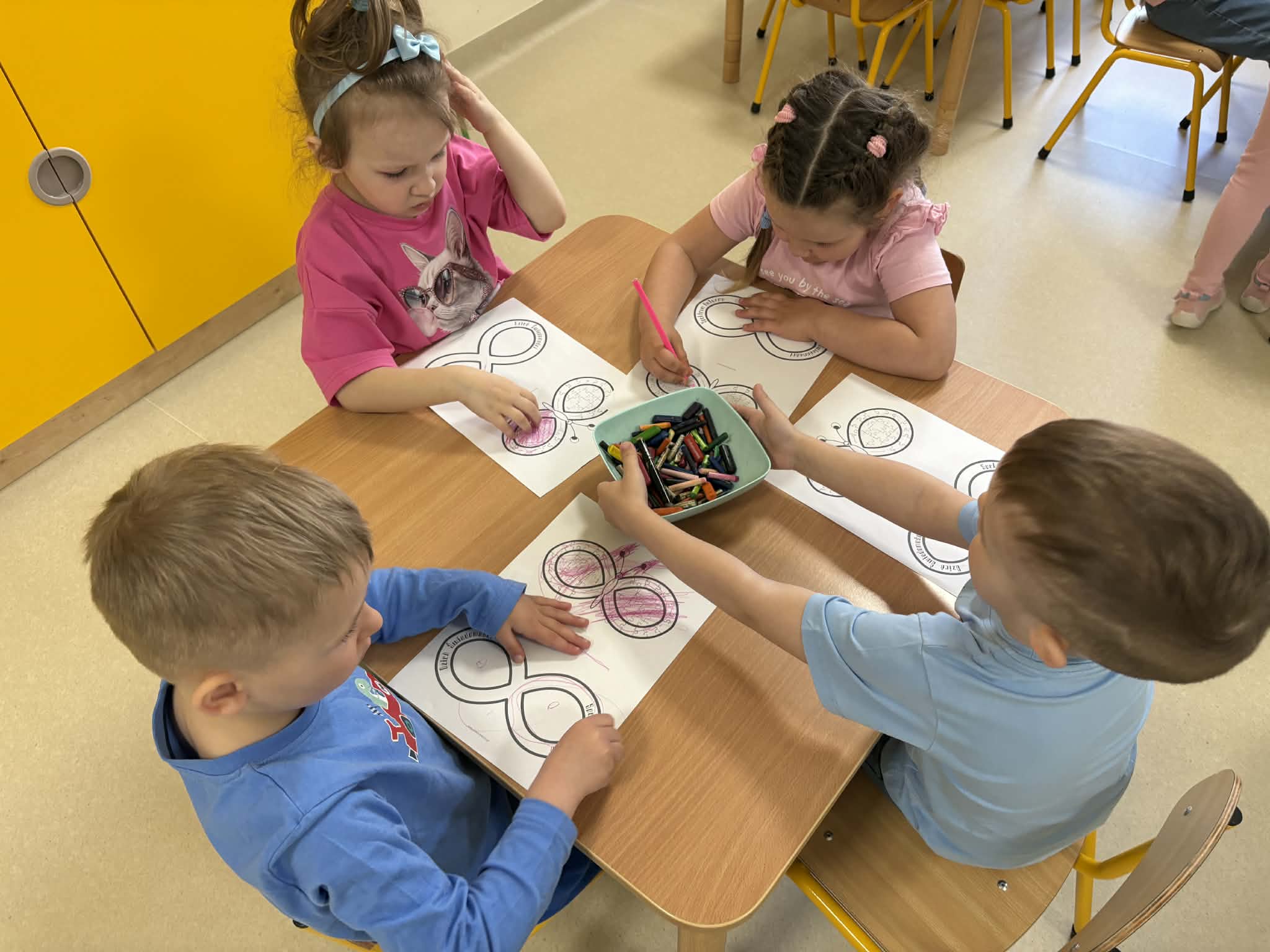 Przedszkolaki brały udział w aktywnościach plastycznych – kolorowały tematyczne ilustracje oraz układały puzzle. Tego dnia dzieci przyszły ubrane na niebiesko i różowo, okazując w ten sposób solidarność i wsparcie. Wspólne działania sprzyjały integracji, rozwijaniu wrażliwości społecznej oraz kształtowaniu postawy szacunku wobec drugiego człowieka.