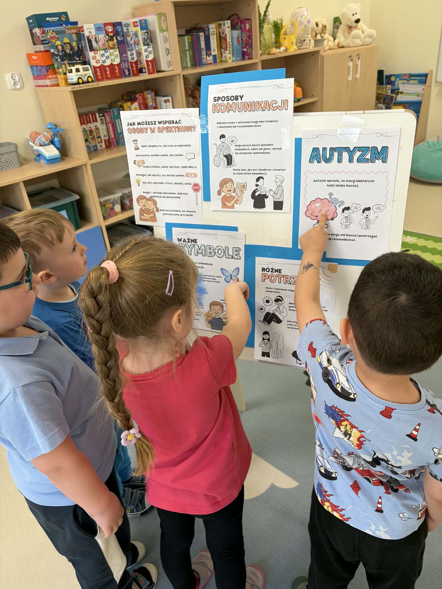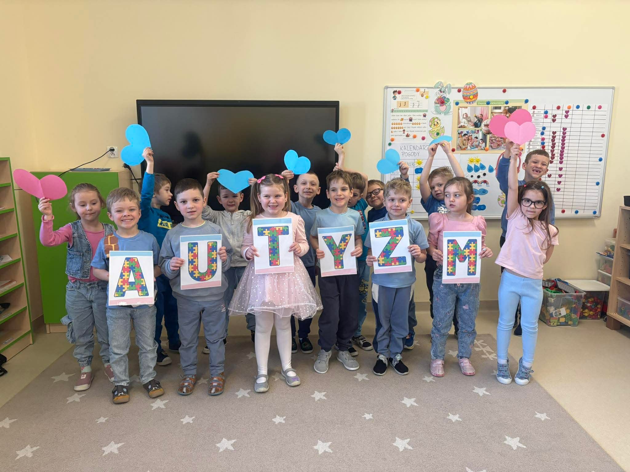 Z okazji Światowego Dnia Świadomości Autyzmu 2 kwietnia w naszym przedszkolu odbyły się zajęcia mające na celu rozwijanie empatii i zrozumienia dla różnorodności. Dzieci rozmawiały o tym, że każdy jest inny i wyjątkowy, a także oglądały krótkie filmiki edukacyjne przybliżające temat autyzmu.