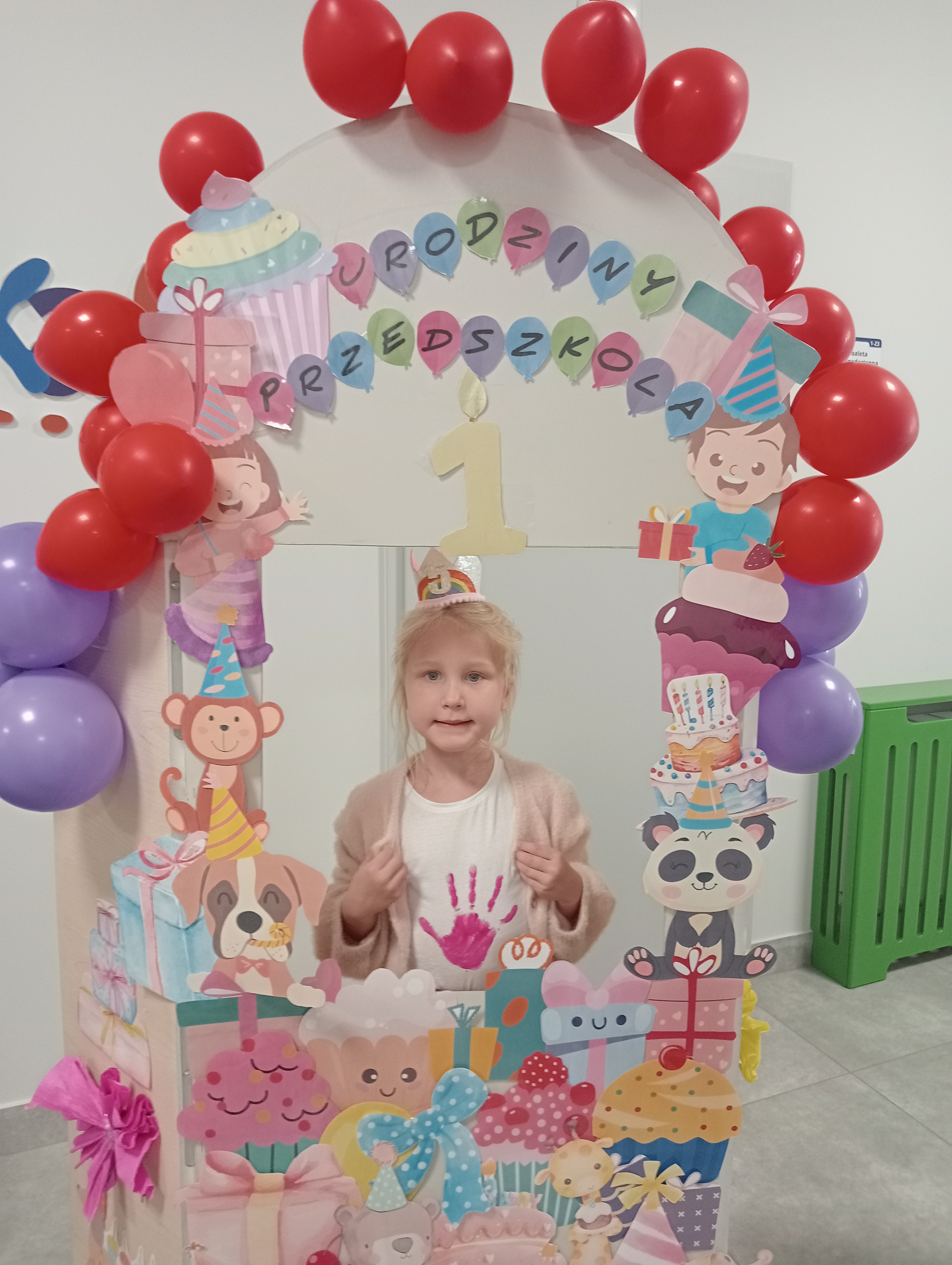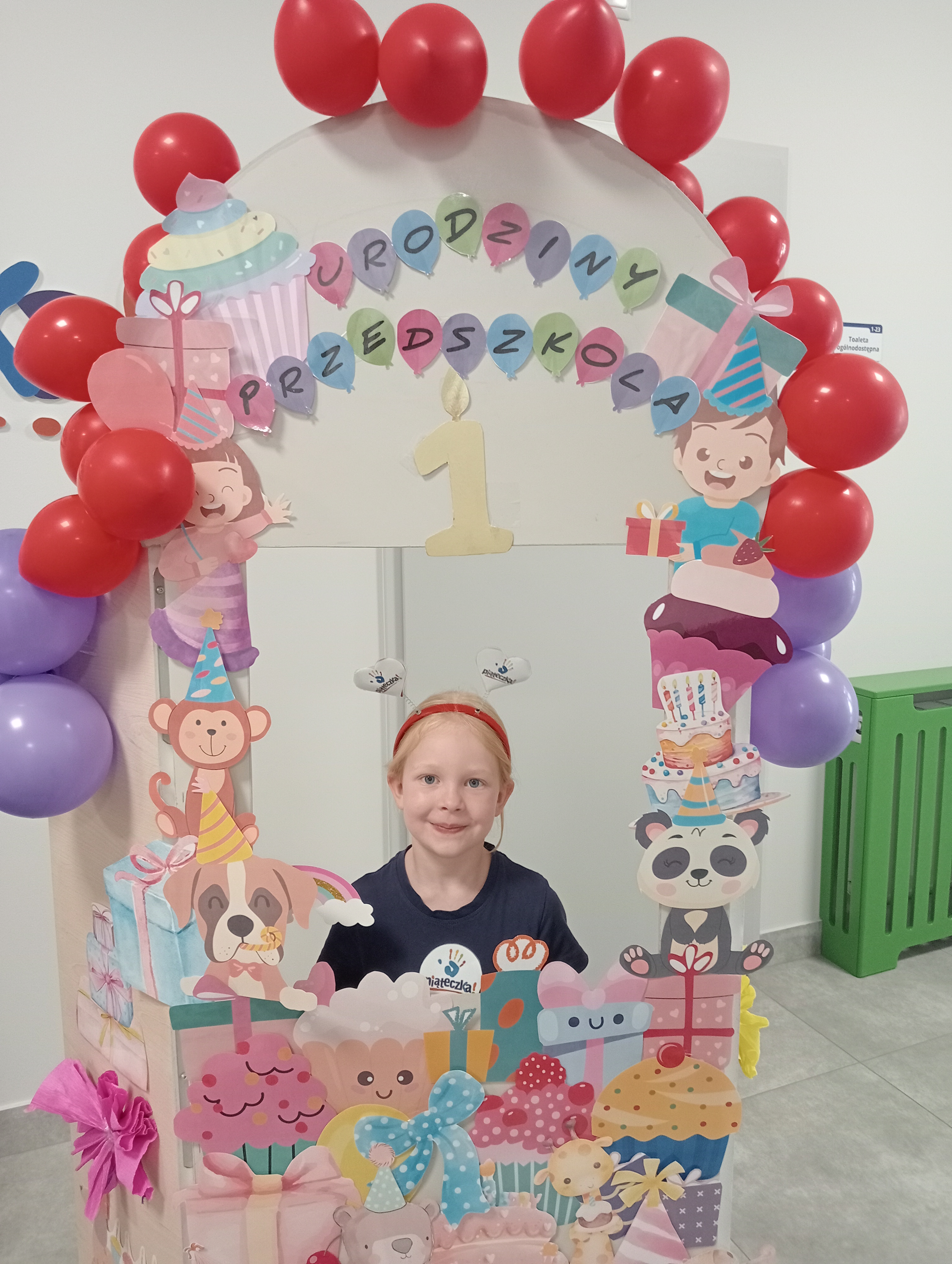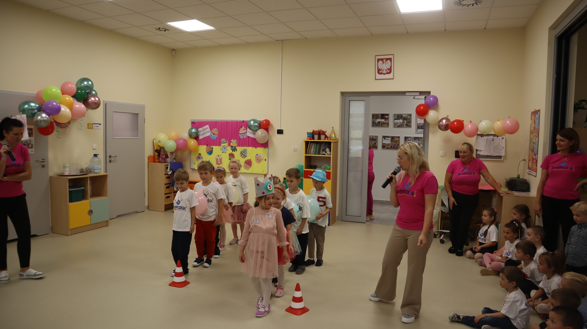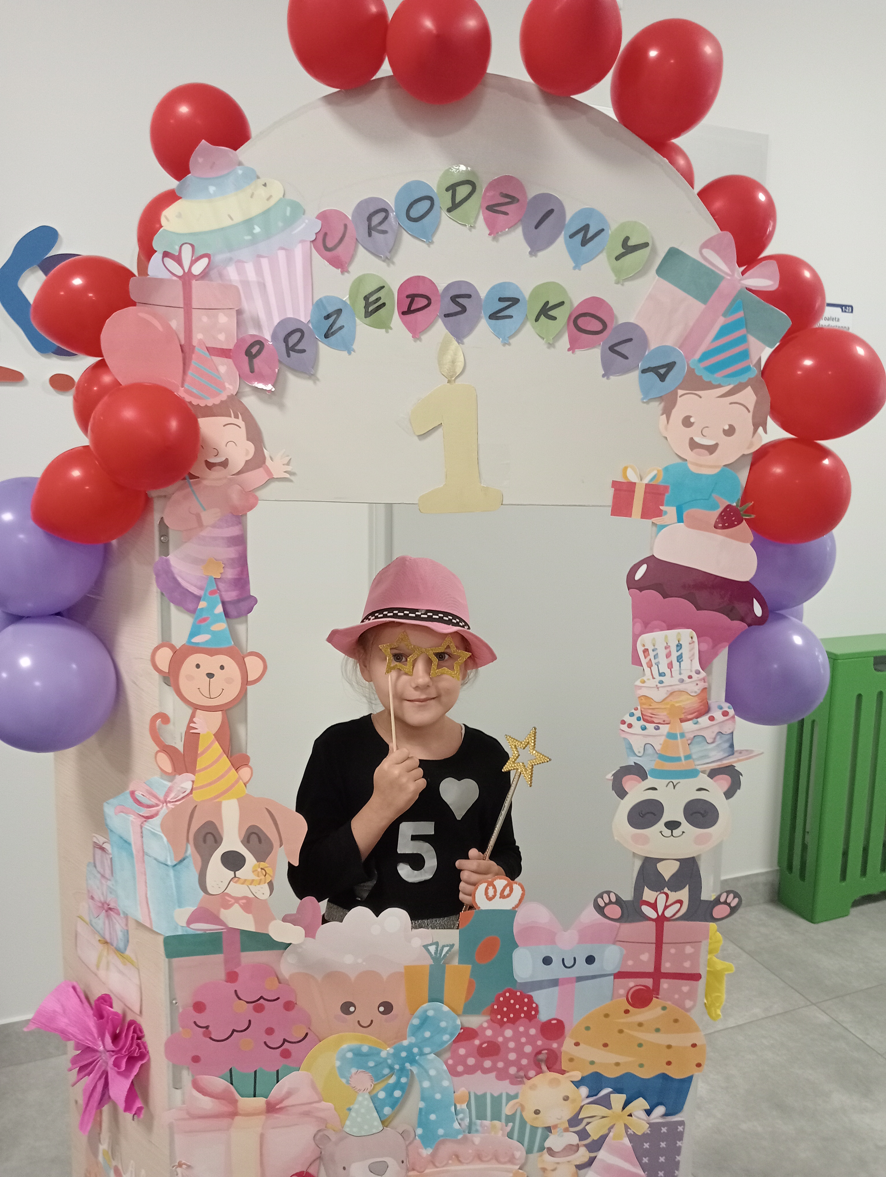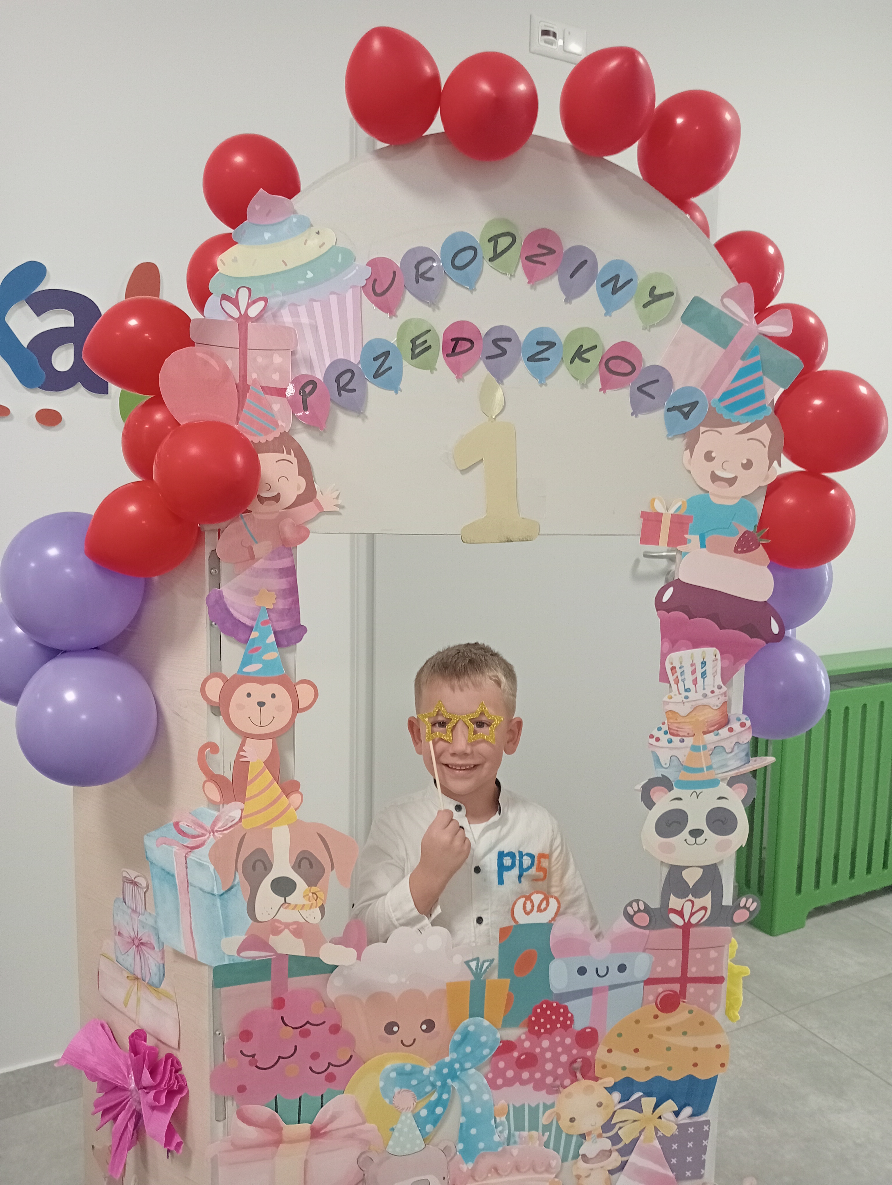 10 października to wyjątkowa data dla naszej placówki, gdyż tego dnia obchodzimy rocznicę otwarcia nowego budynku przedszkola. Z tej okazji od samego rana na wszystkie dzieci ubrane w imprezowe stroje z elementami „Piąteczki” czekało mnóstwo atrakcji. Przedszkolaki miały możliwość wykonania zdjęcia w fotobudce, brały udział w loterii oraz zabawie tanecznej. Urodzinowe przyjęcie rozpoczęła Pani Dyrektor, która przywitała dzieci