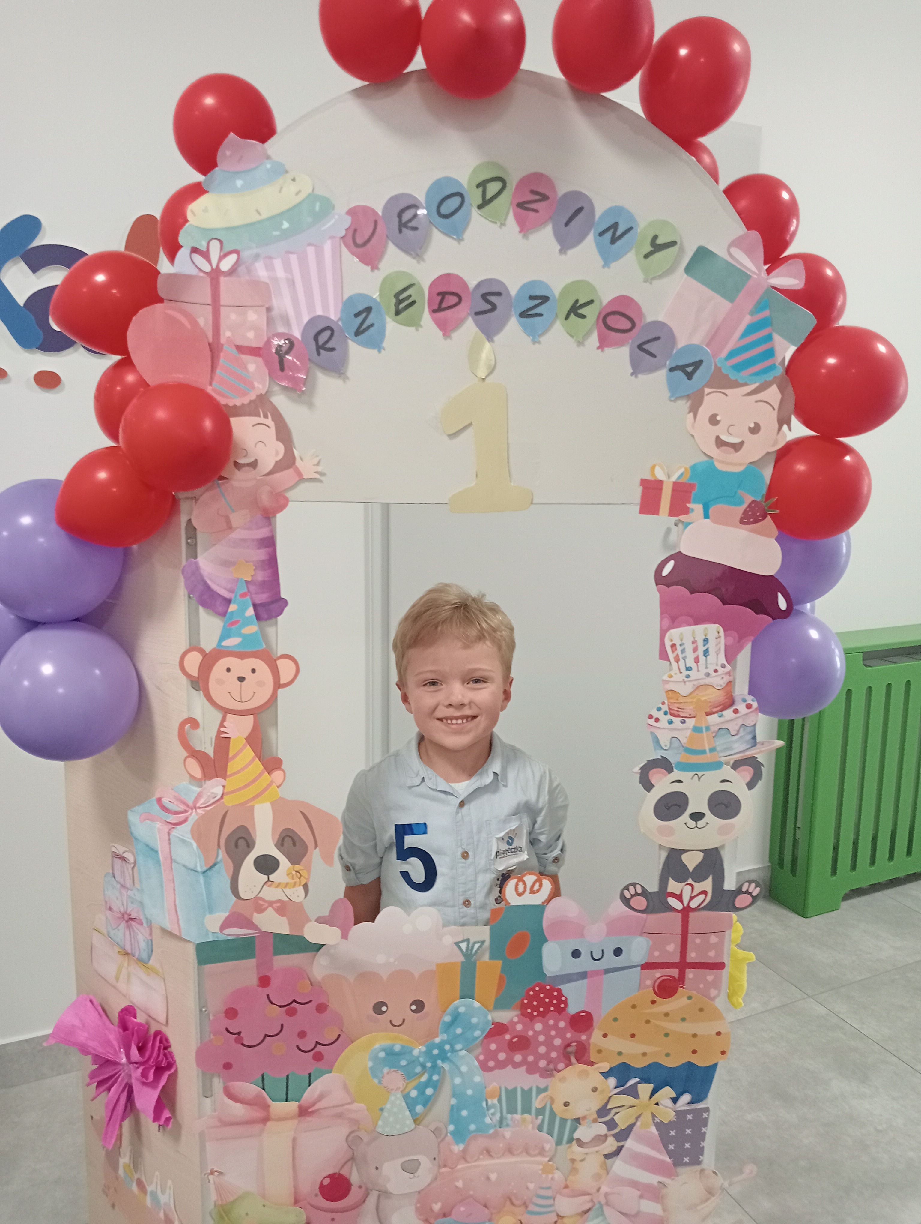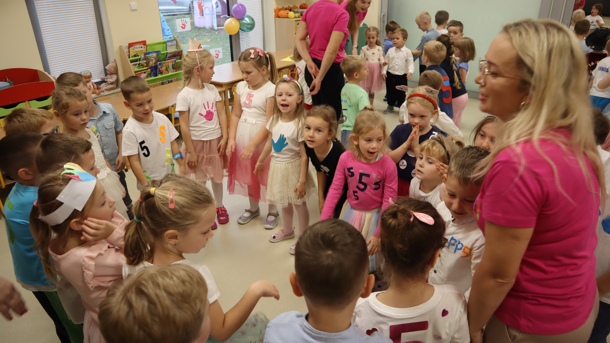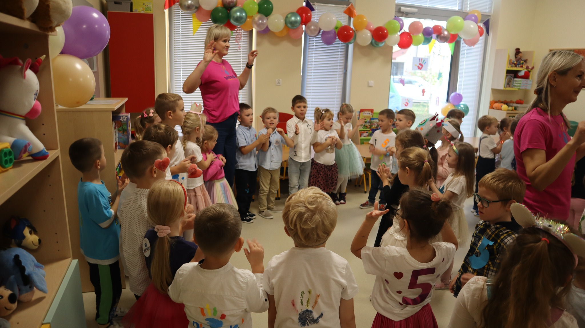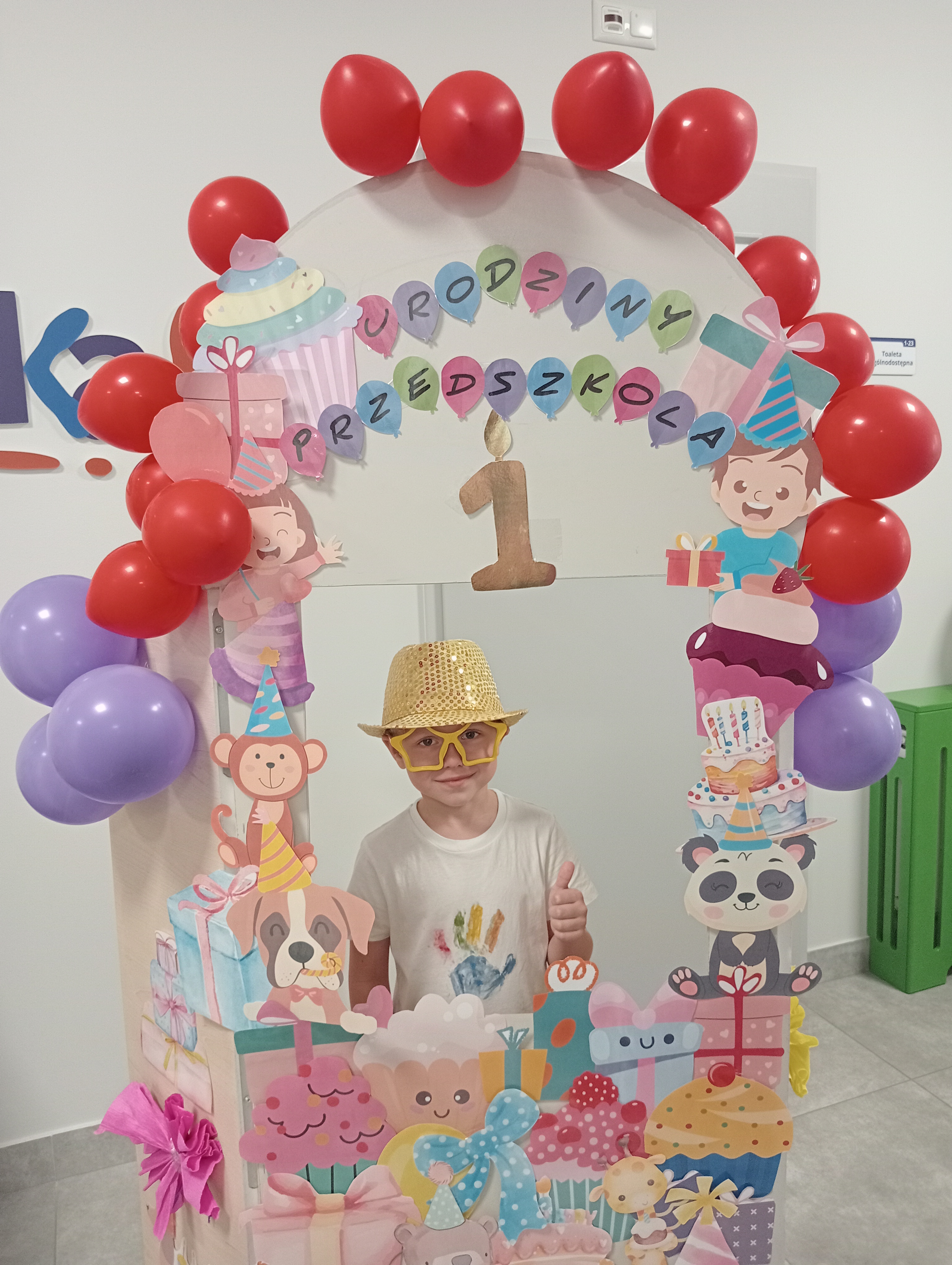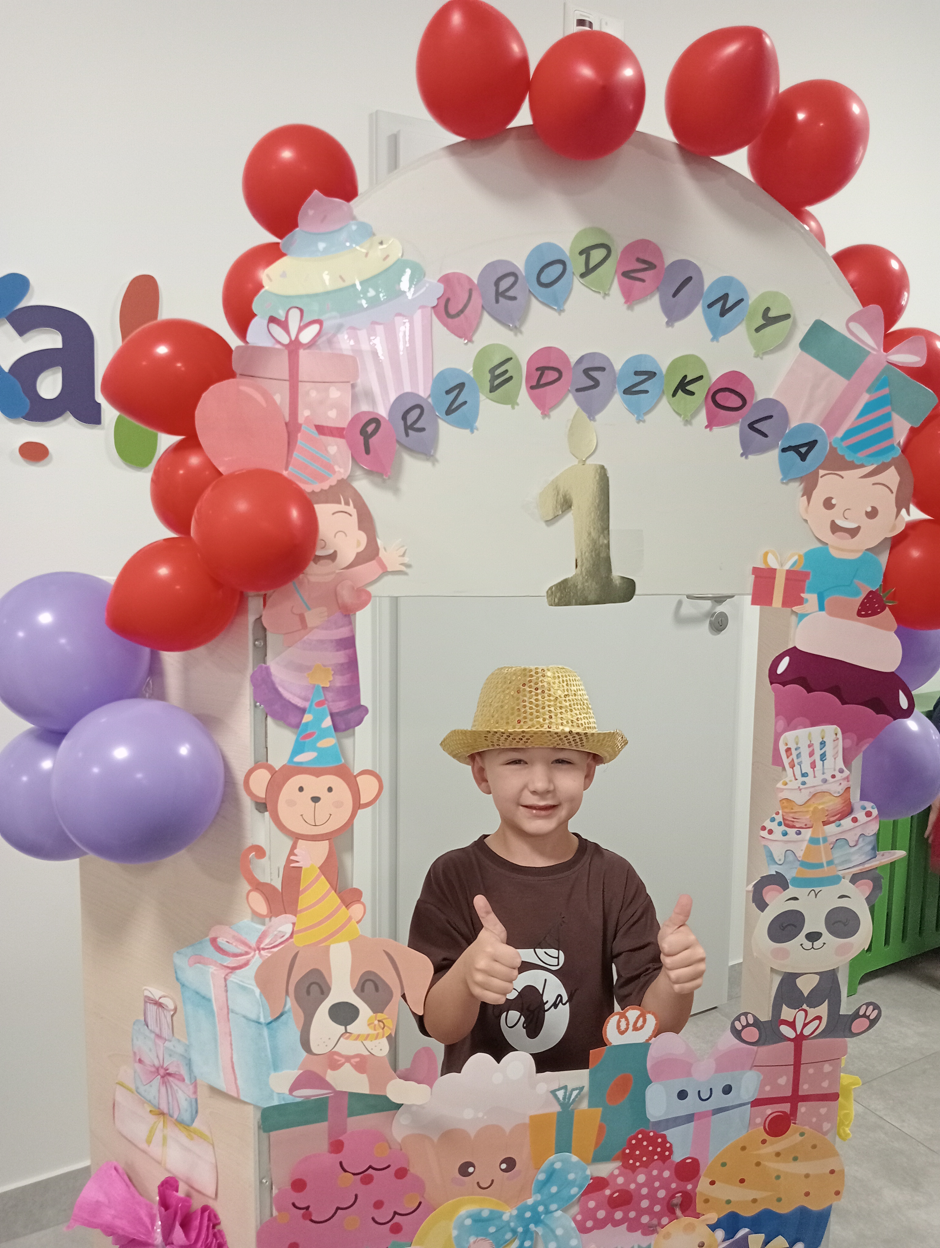 10 października to wyjątkowa data dla naszej placówki, gdyż tego dnia obchodzimy rocznicę otwarcia nowego budynku przedszkola. Z tej okazji od samego rana na wszystkie dzieci ubrane w imprezowe stroje z elementami „Piąteczki” czekało mnóstwo atrakcji. Przedszkolaki miały możliwość wykonania zdjęcia w fotobudce, brały udział w loterii oraz zabawie tanecznej. Urodzinowe przyjęcie rozpoczęła Pani Dyrektor, która przywitała dzieci