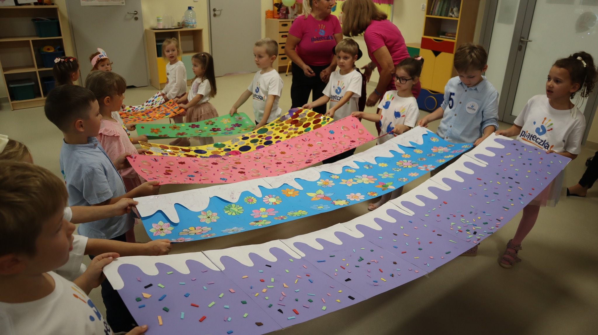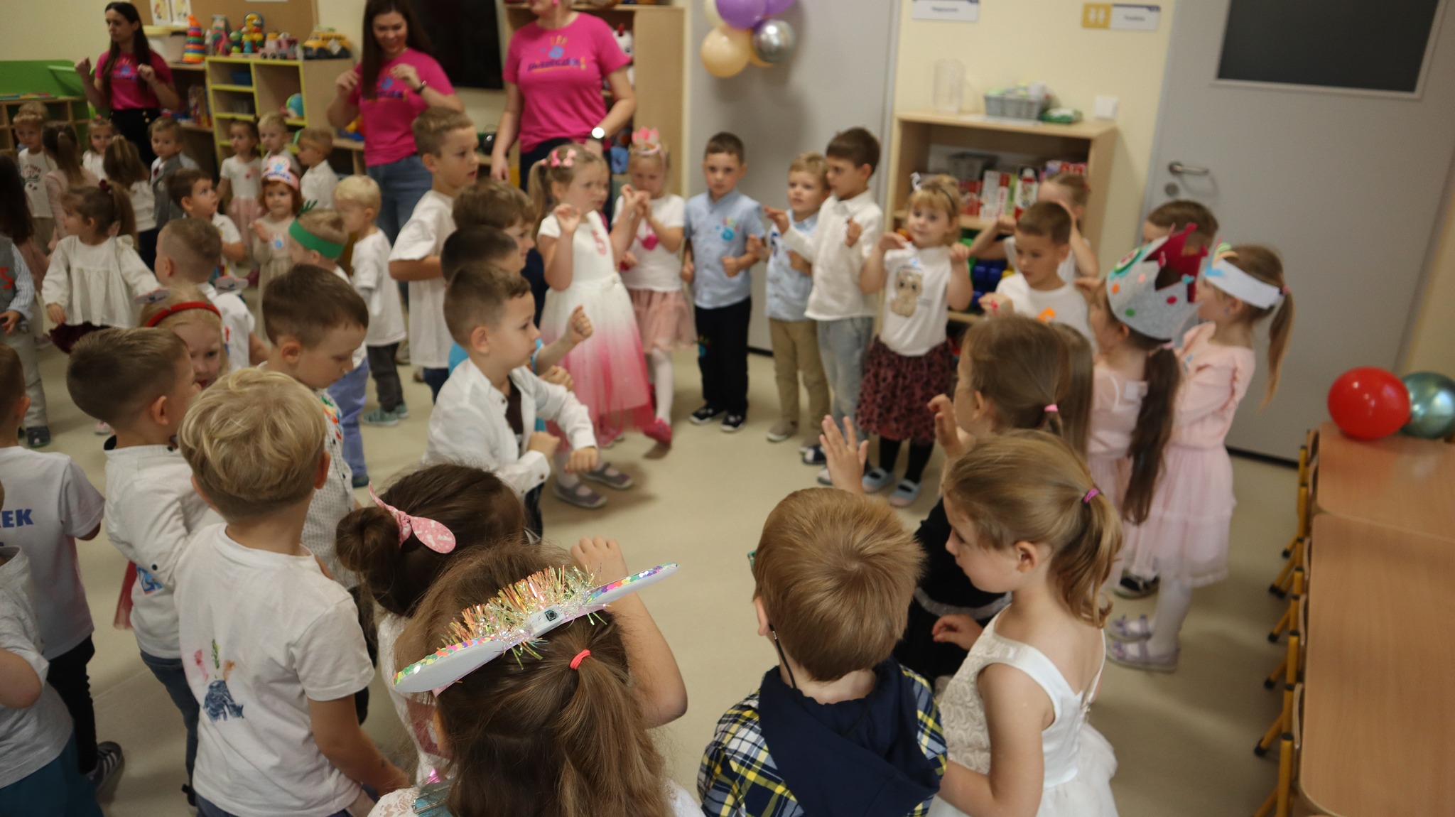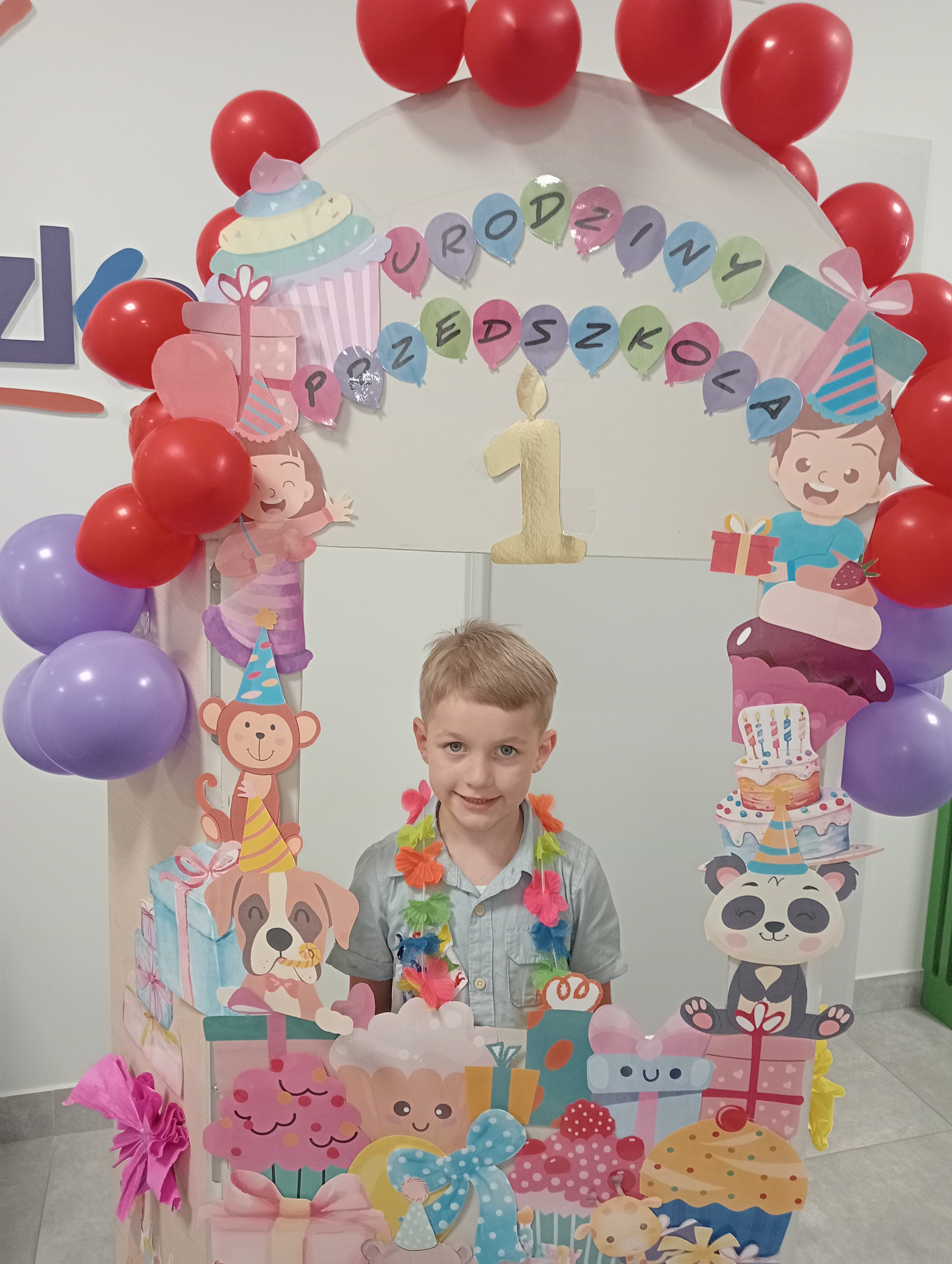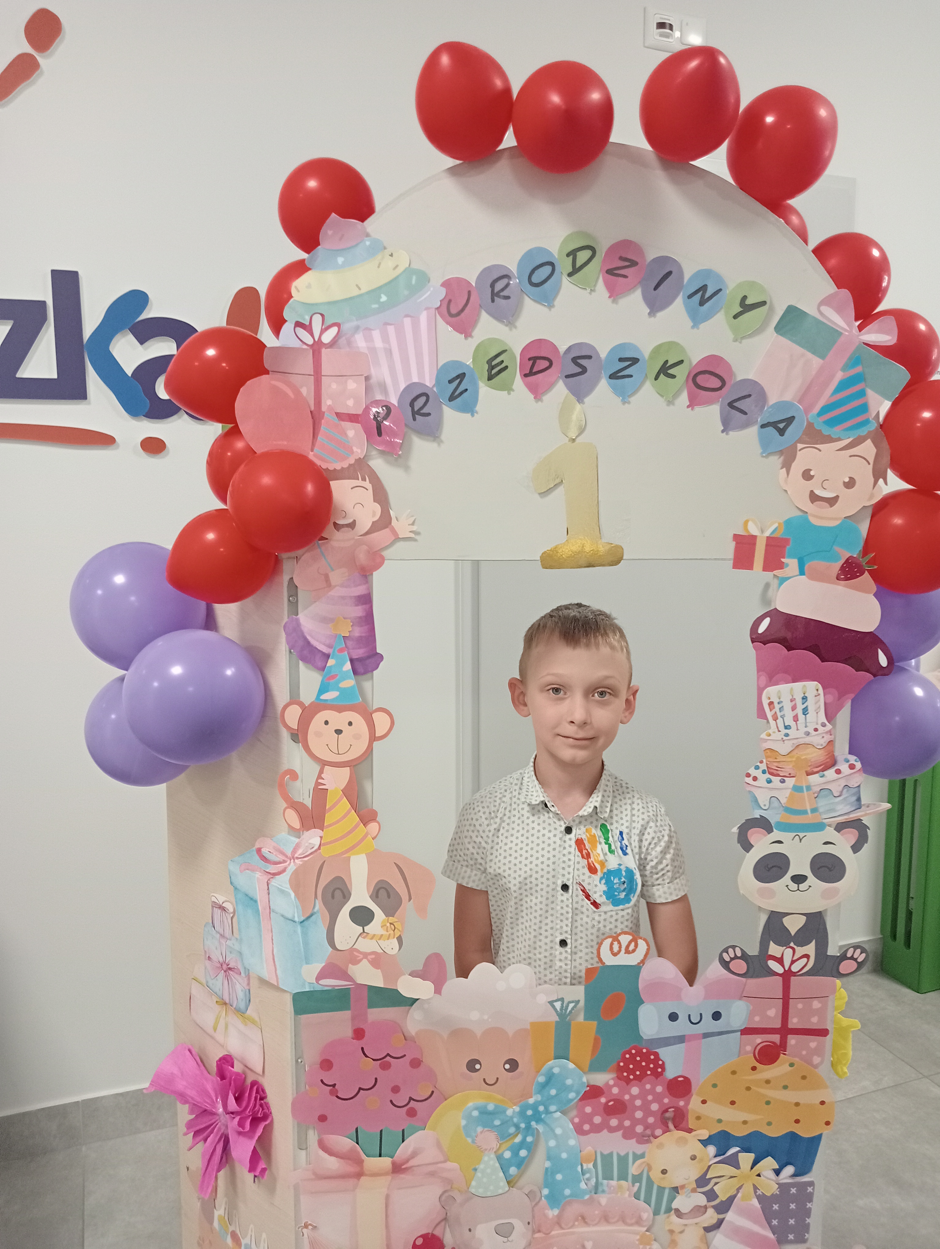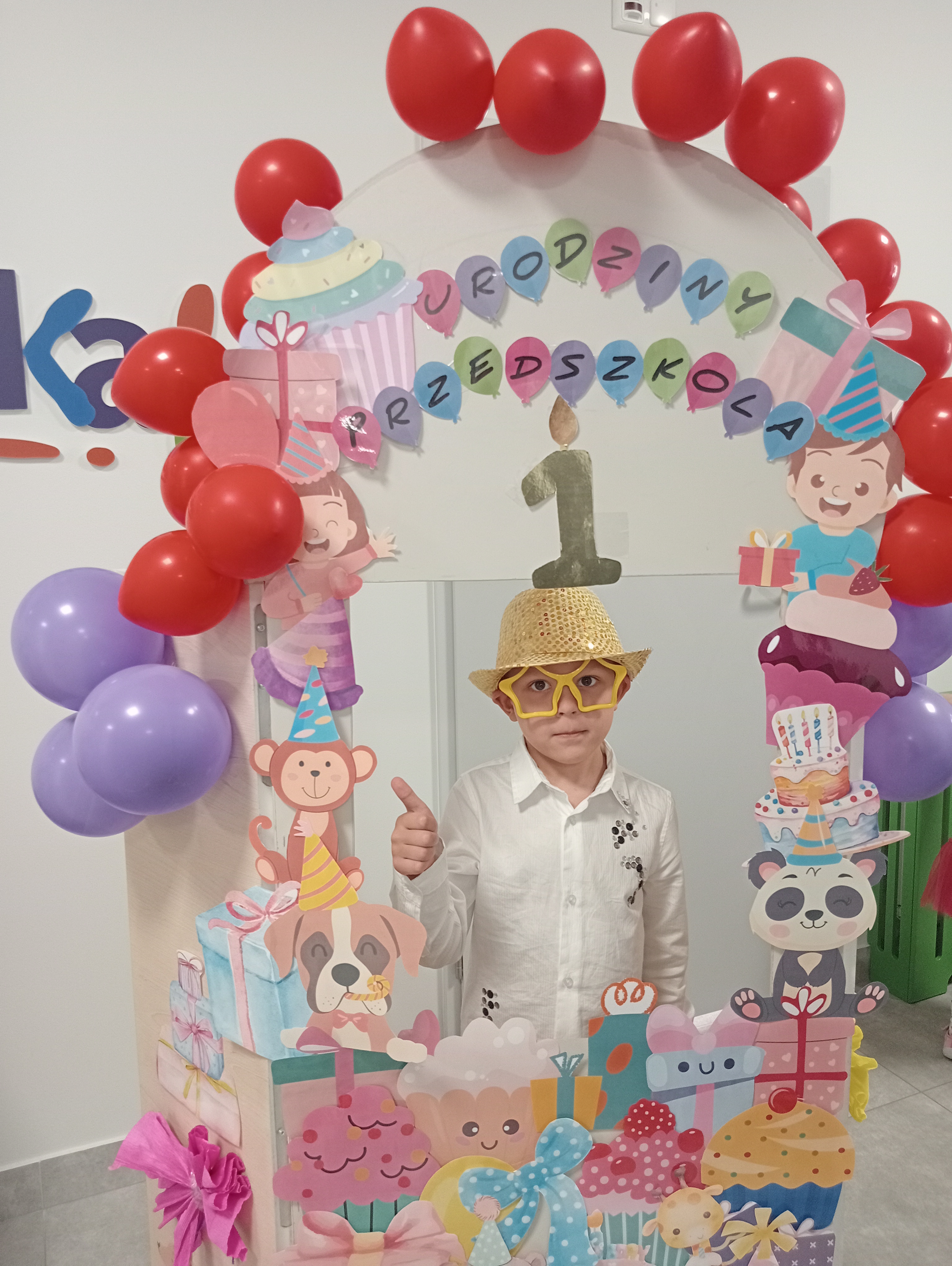 10 października to wyjątkowa data dla naszej placówki, gdyż tego dnia obchodzimy rocznicę otwarcia nowego budynku przedszkola. Z tej okazji od samego rana na wszystkie dzieci ubrane w imprezowe stroje z elementami „Piąteczki” czekało mnóstwo atrakcji. Przedszkolaki miały możliwość wykonania zdjęcia w fotobudce, brały udział w loterii oraz zabawie tanecznej. Urodzinowe przyjęcie rozpoczęła Pani Dyrektor, która przywitała dzieci