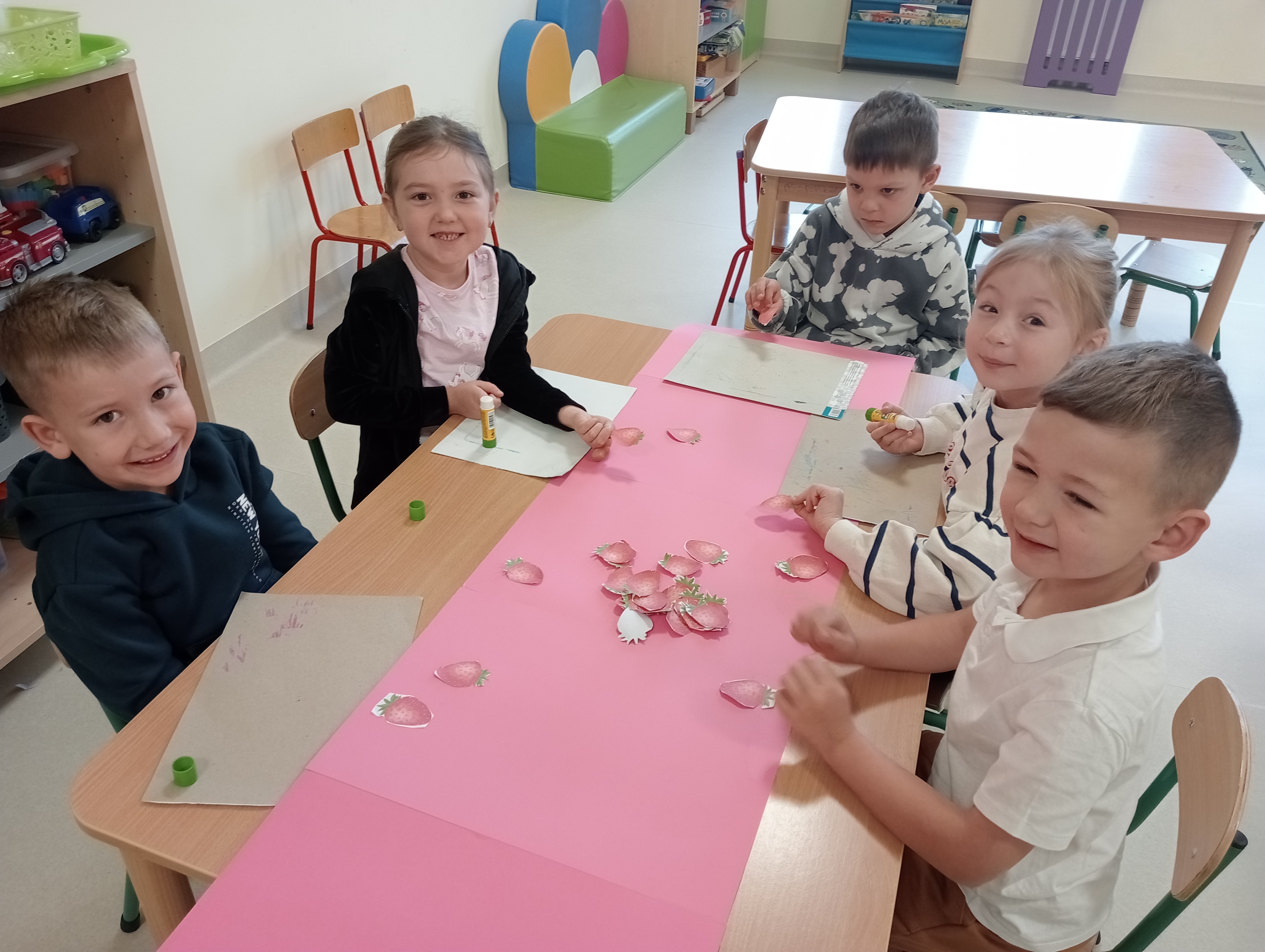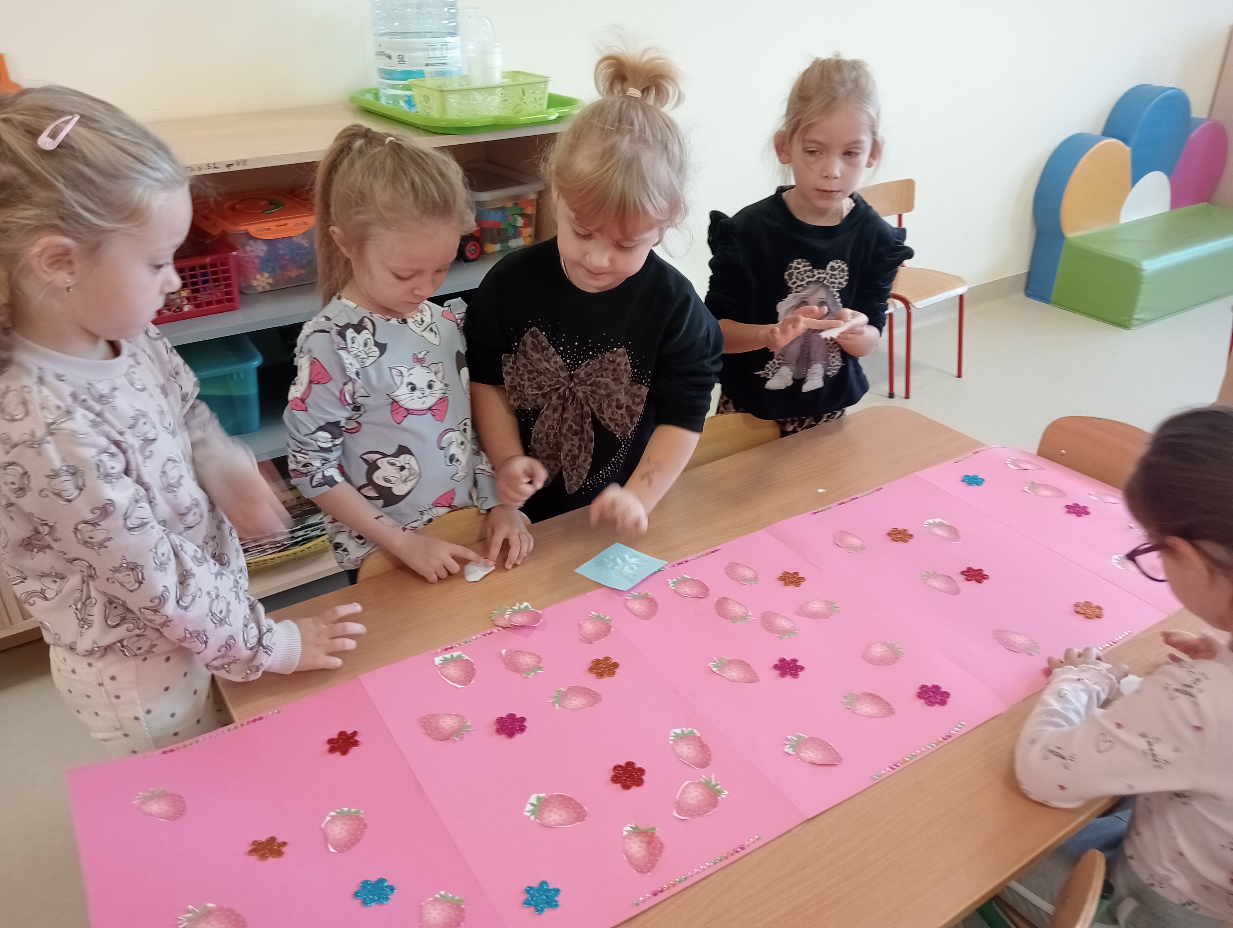 i otworzyła prezent – pudełko pełne kolorowych balonów. Następnie przedszkolaki uczestniczyły w różnorodnych konkursach oraz tańcach, a także układały tort z własnoręcznie ozdobionych arkuszy papieru. Na zakończenie każde dziecko otrzymało balonik. To był dzień pełen wrażeń i wspaniałej zabawy. Dzisiejsza uroczystość na długo pozostanie w naszej pamięci.