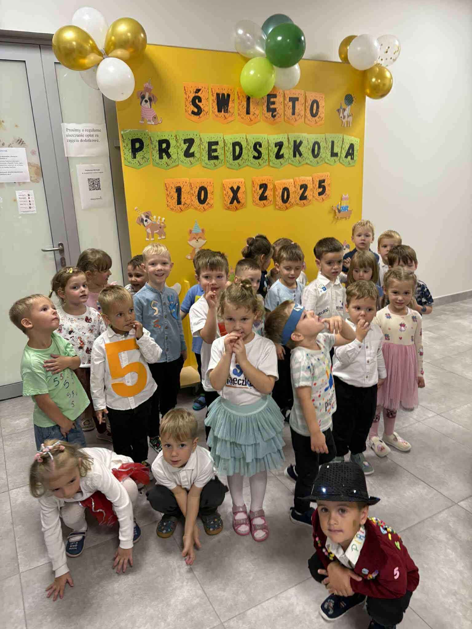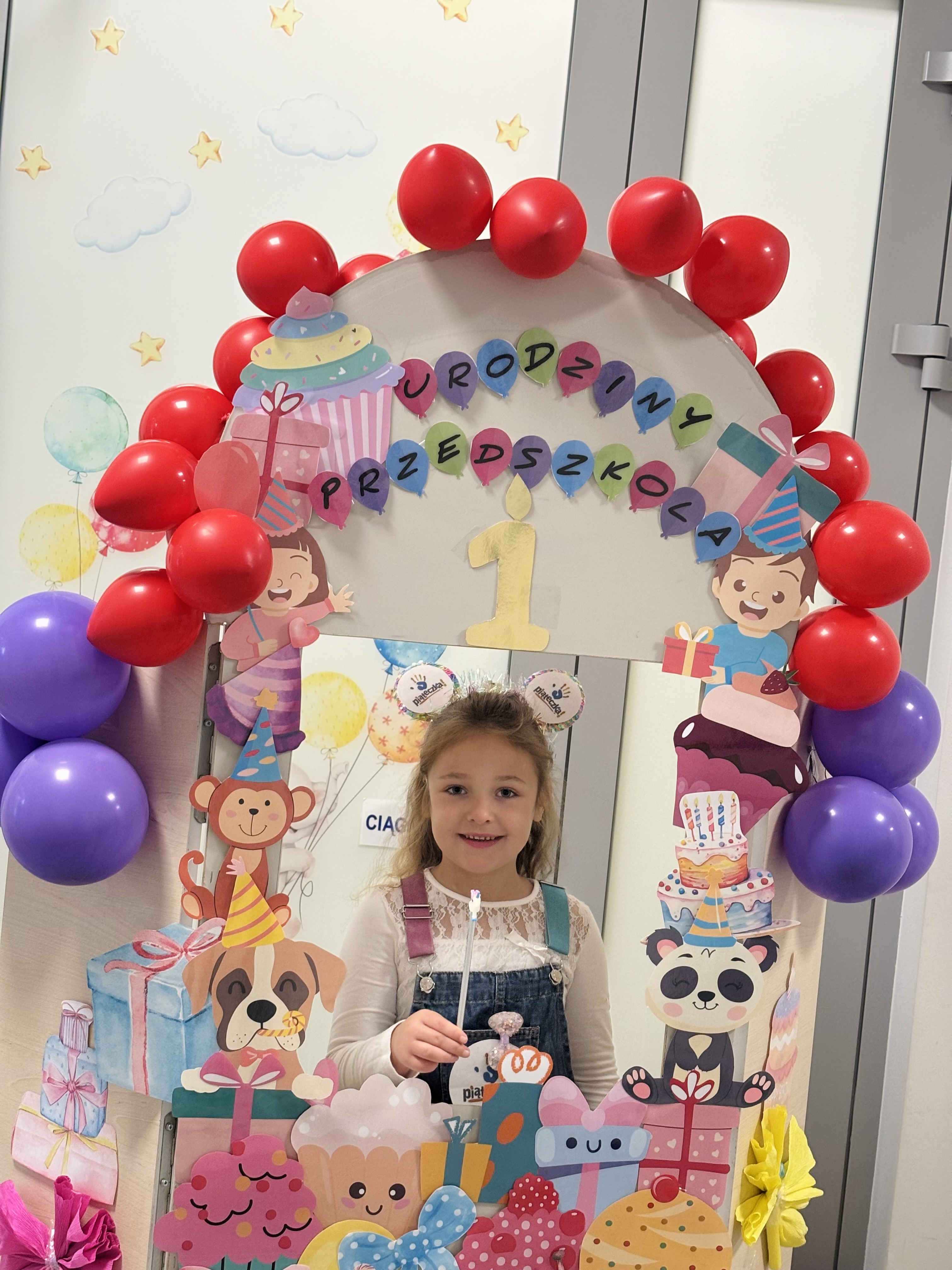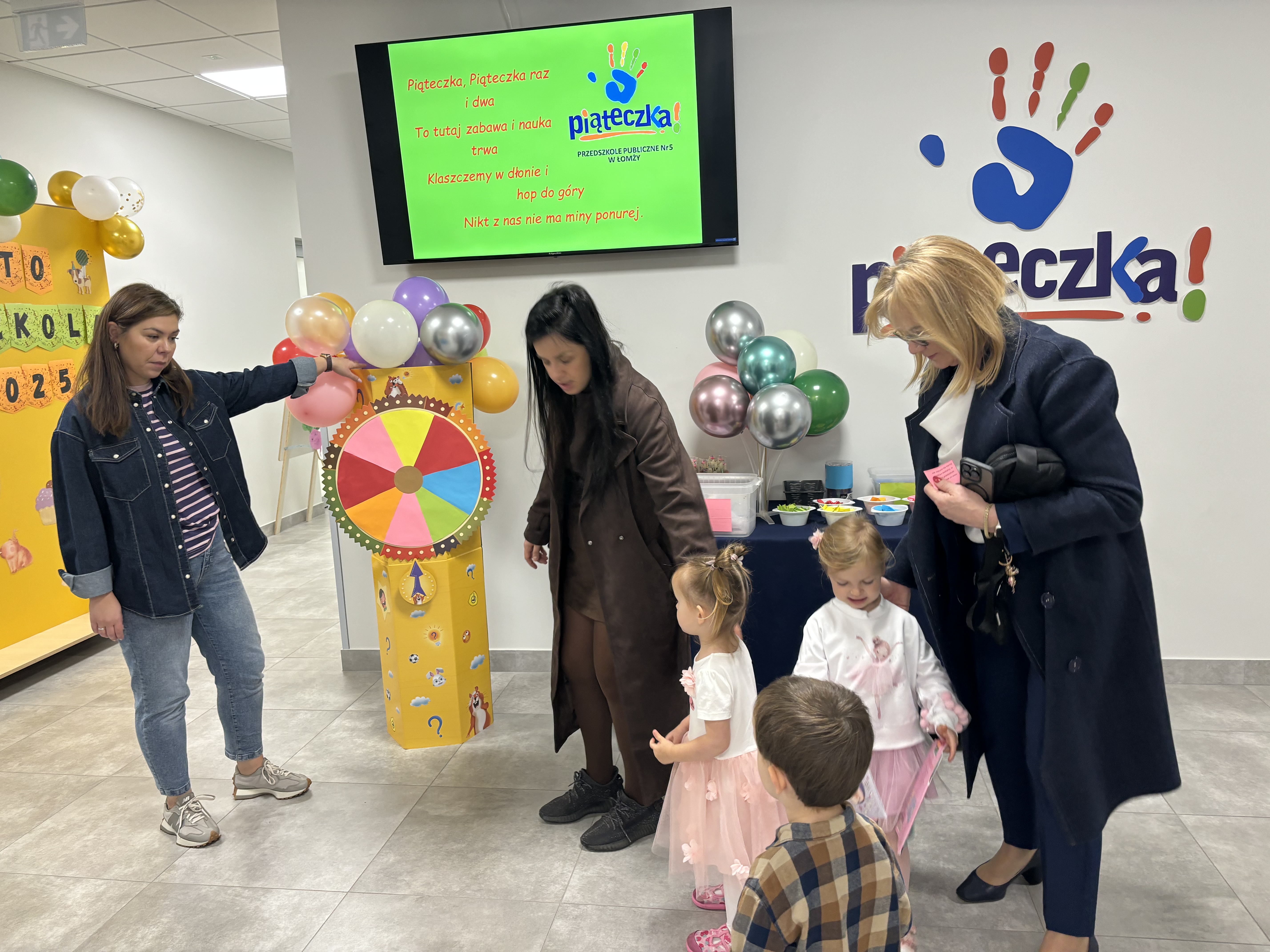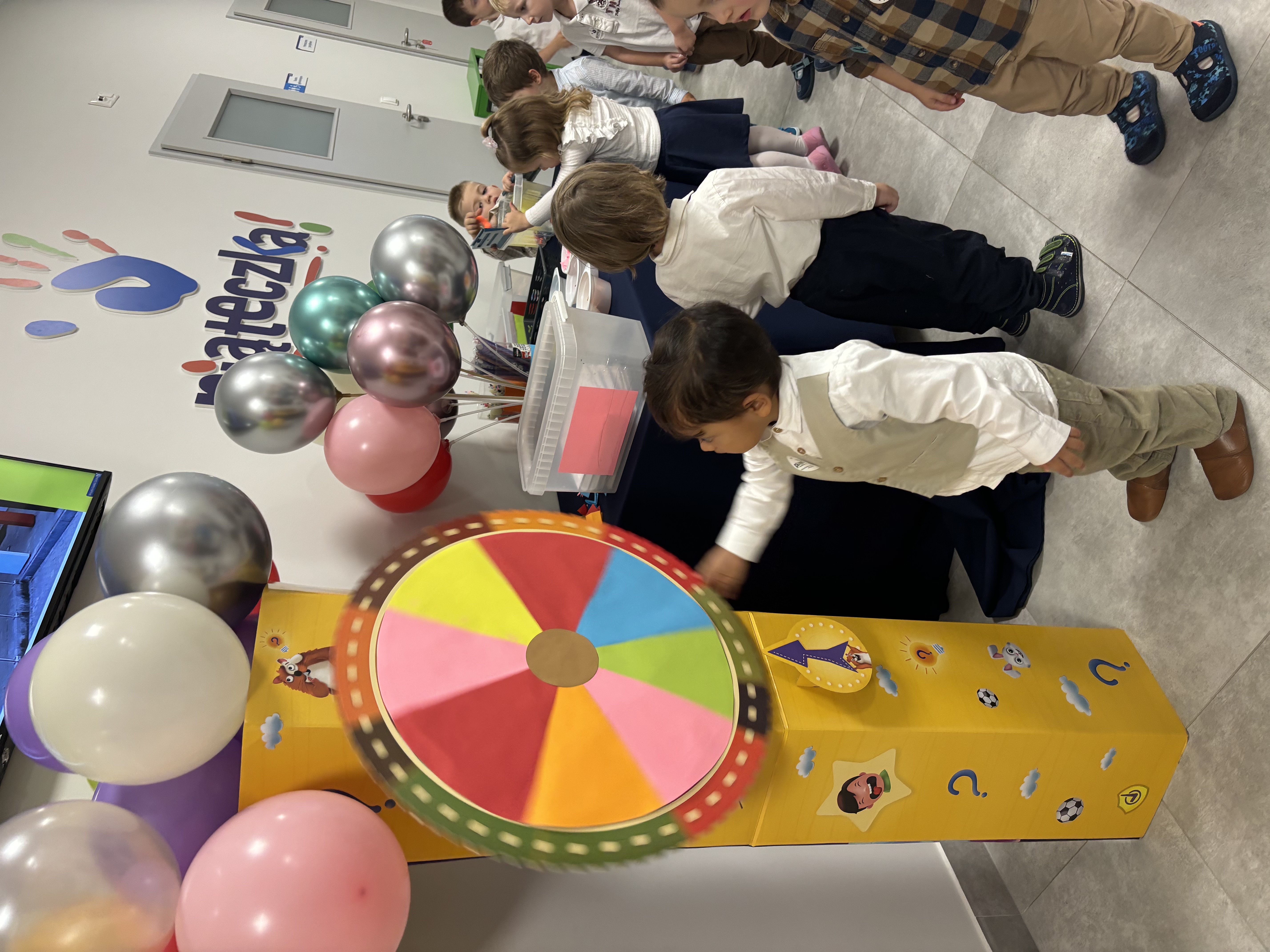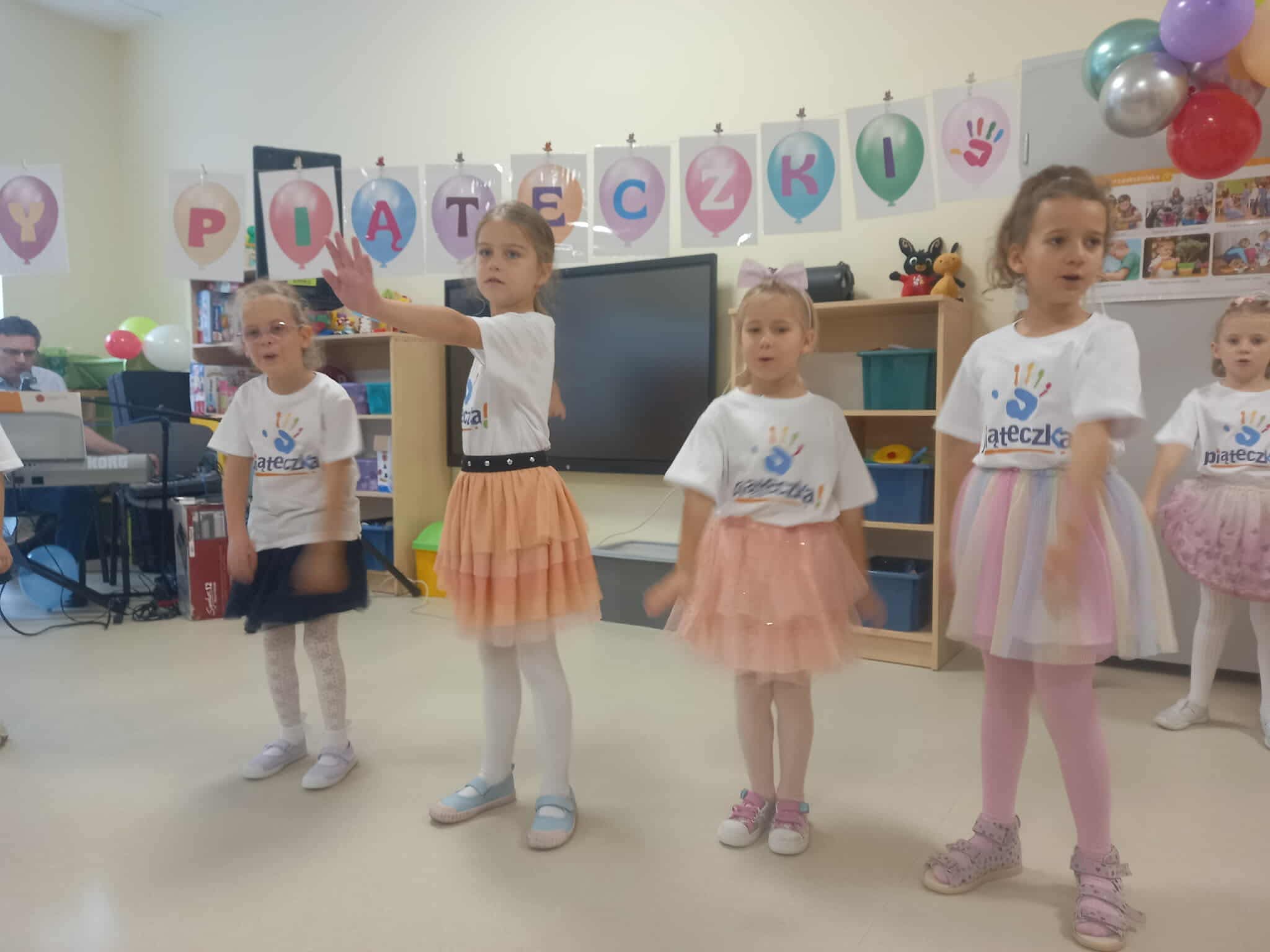 10 października to wyjątkowa data dla naszej placówki, gdyż tego dnia obchodzimy rocznicę otwarcia nowego budynku przedszkola. Z tej okazji od samego rana na wszystkie dzieci ubrane w imprezowe stroje z elementami „Piąteczki” czekało mnóstwo atrakcji. Przedszkolaki miały możliwość wykonania zdjęcia w fotobudce, brały udział w loterii oraz zabawie tanecznej. Urodzinowe przyjęcie rozpoczęła Pani Dyrektor, która przywitała dzieci