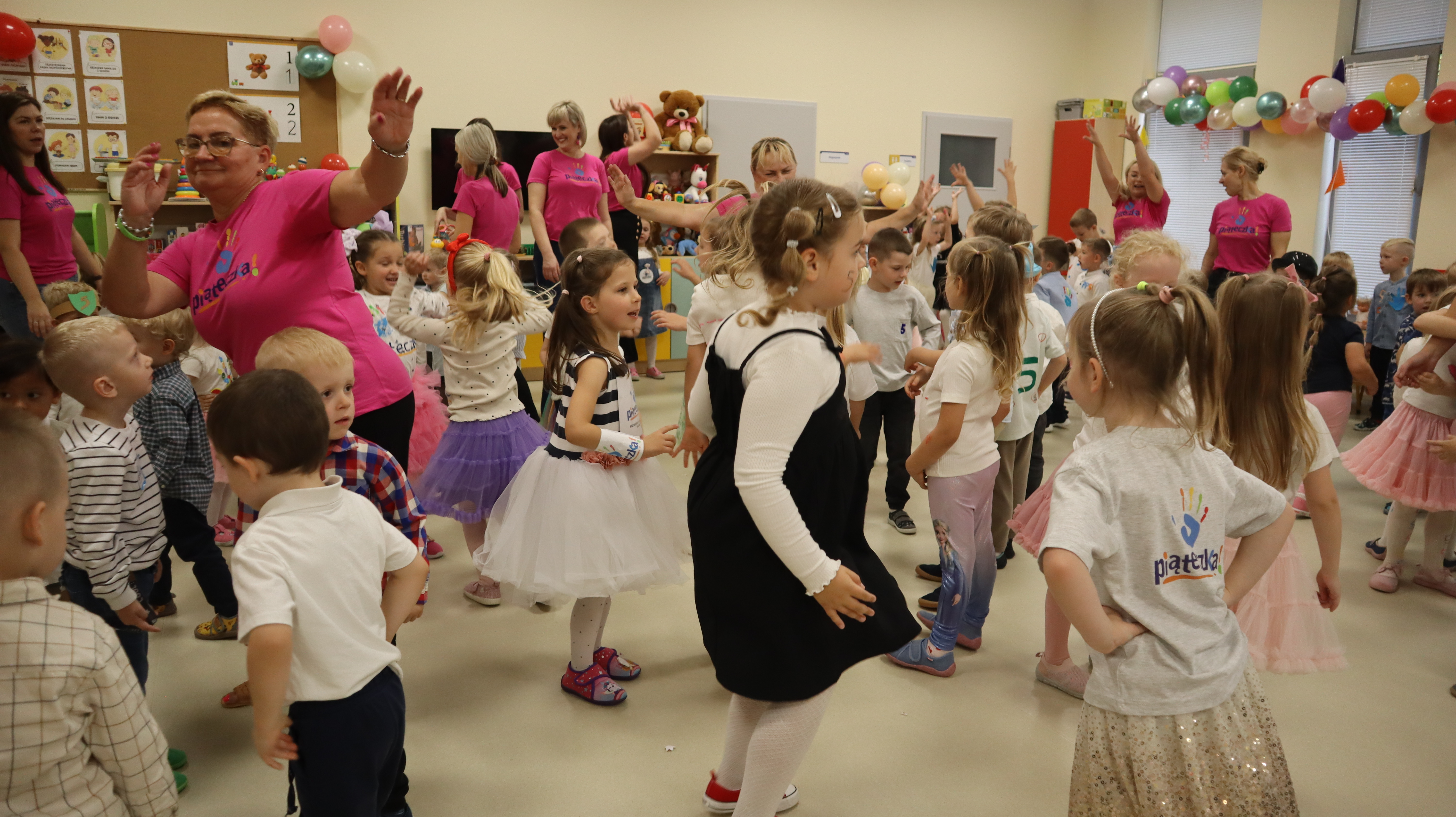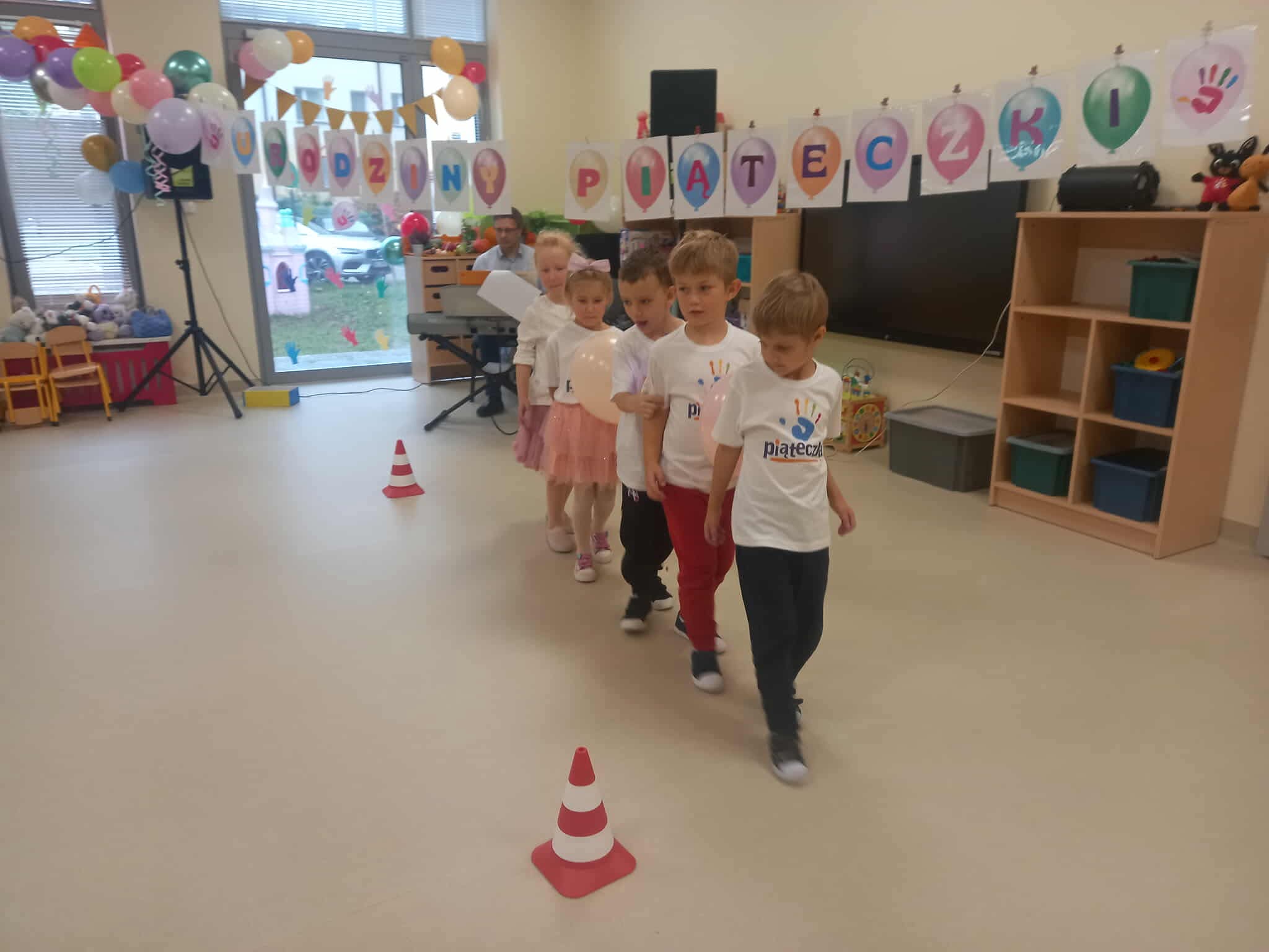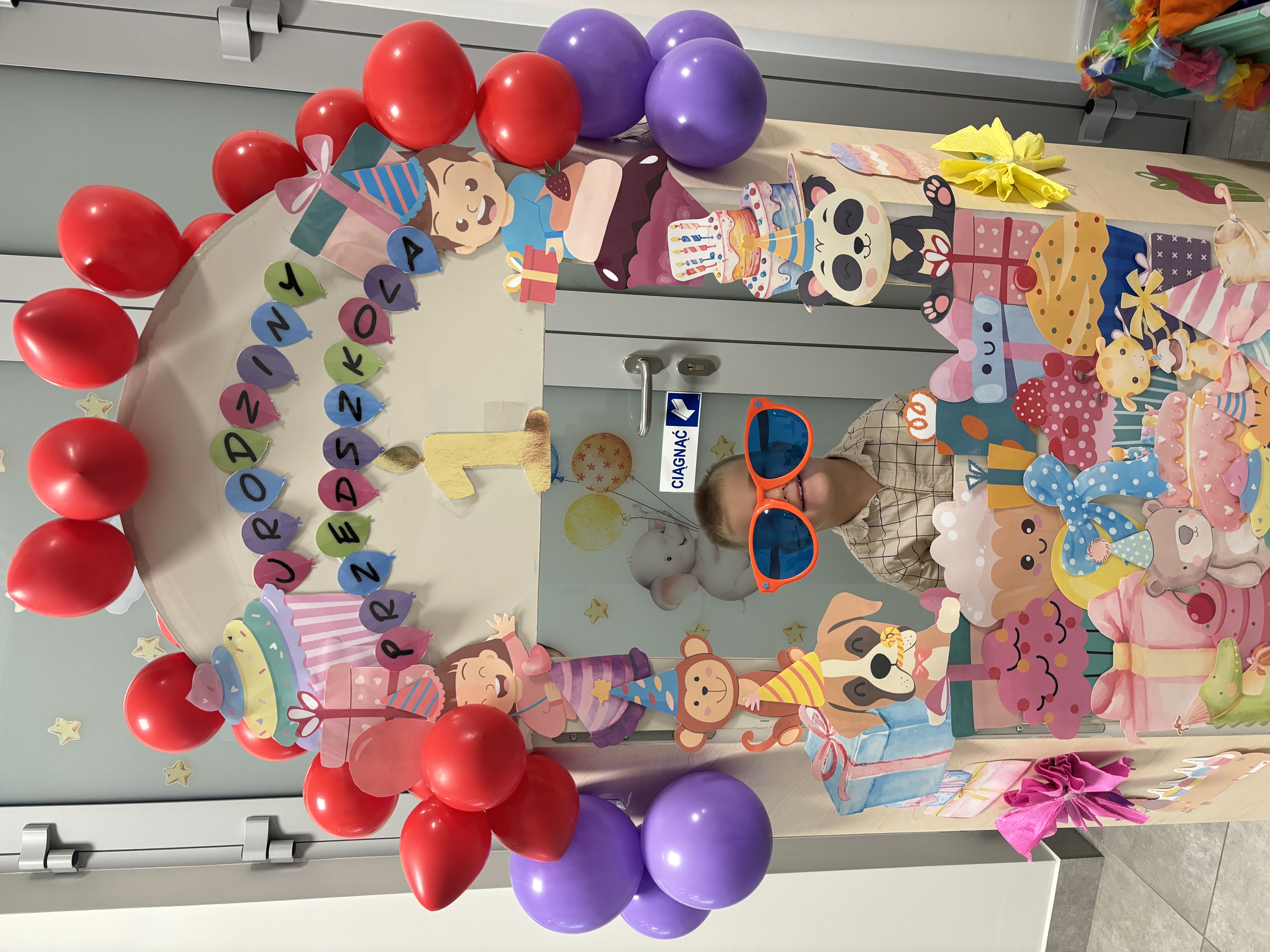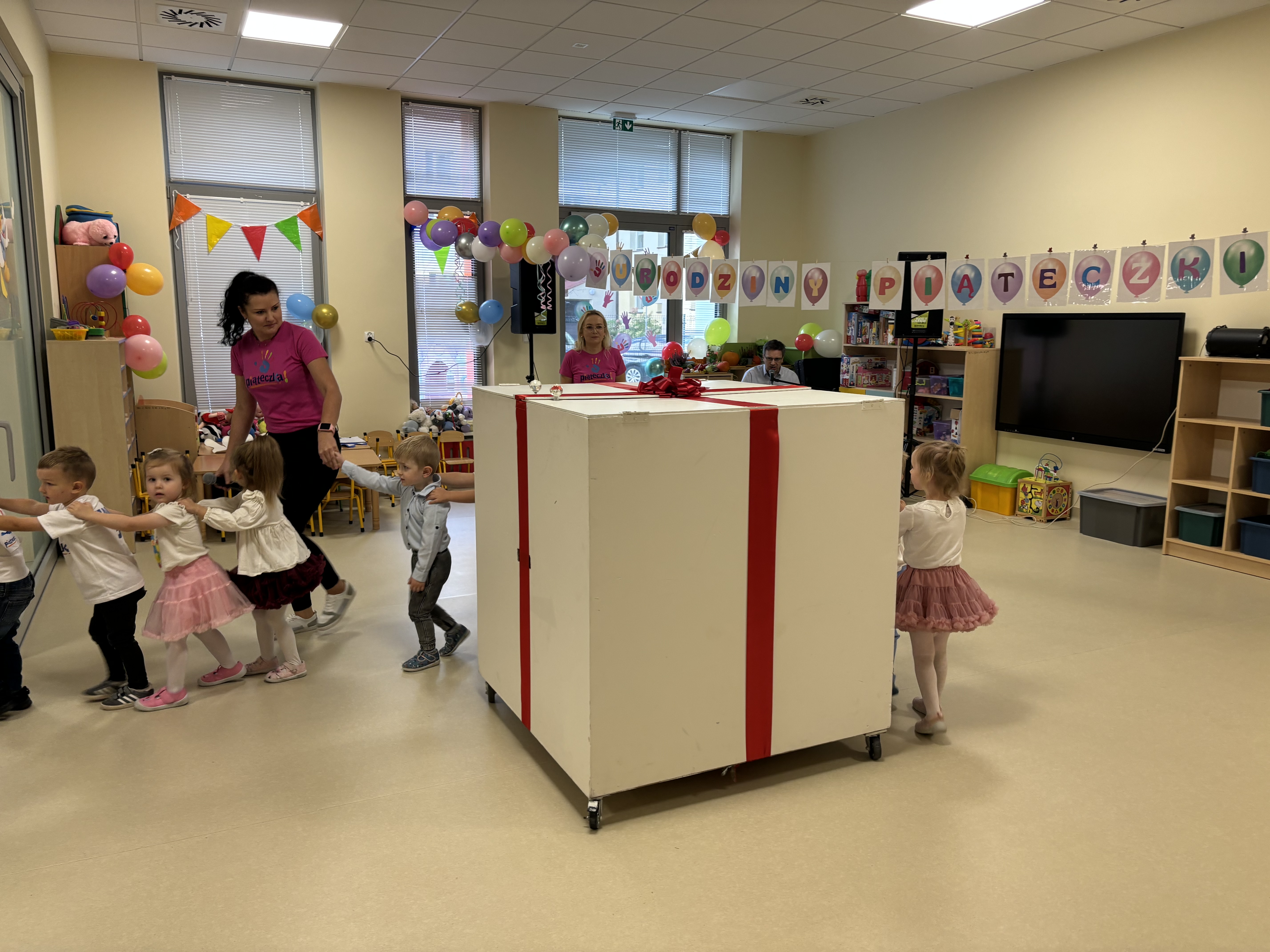 10 października to wyjątkowa data dla naszej placówki, gdyż tego dnia obchodzimy rocznicę otwarcia nowego budynku przedszkola. Z tej okazji od samego rana na wszystkie dzieci ubrane w imprezowe stroje z elementami „Piąteczki” czekało mnóstwo atrakcji. Przedszkolaki miały możliwość wykonania zdjęcia w fotobudce, brały udział w loterii oraz zabawie tanecznej. Urodzinowe przyjęcie rozpoczęła Pani Dyrektor, która przywitała dzieci