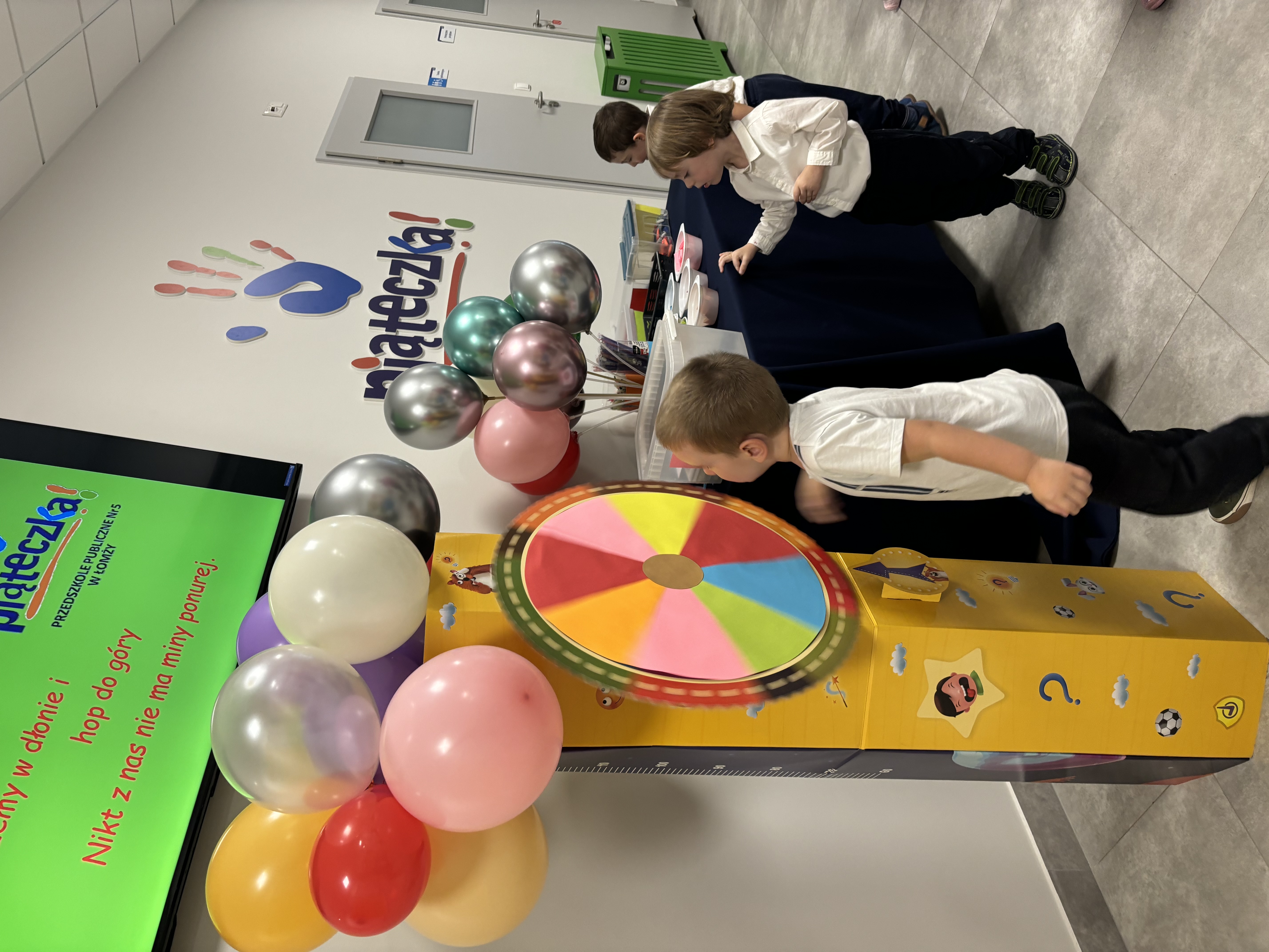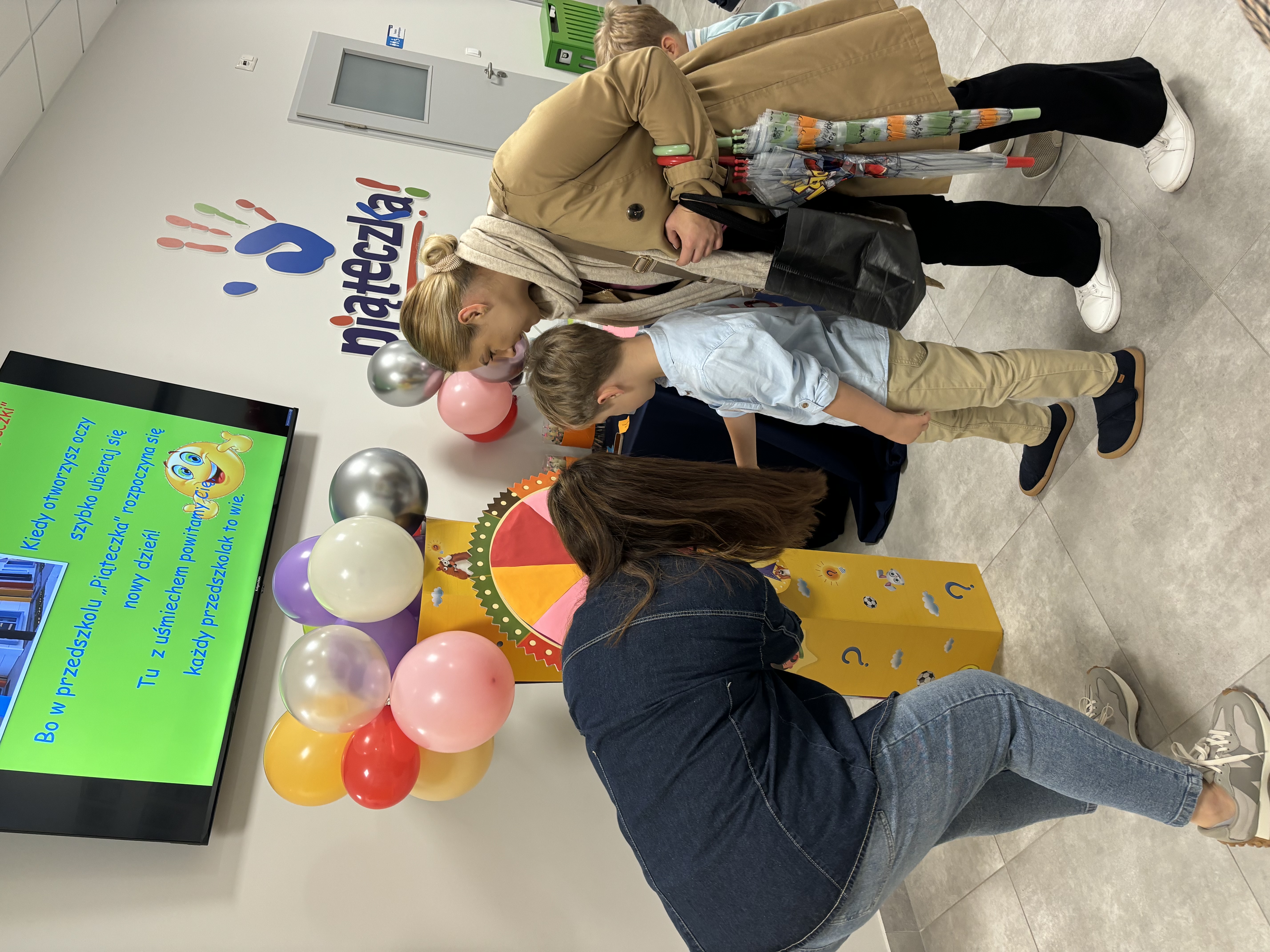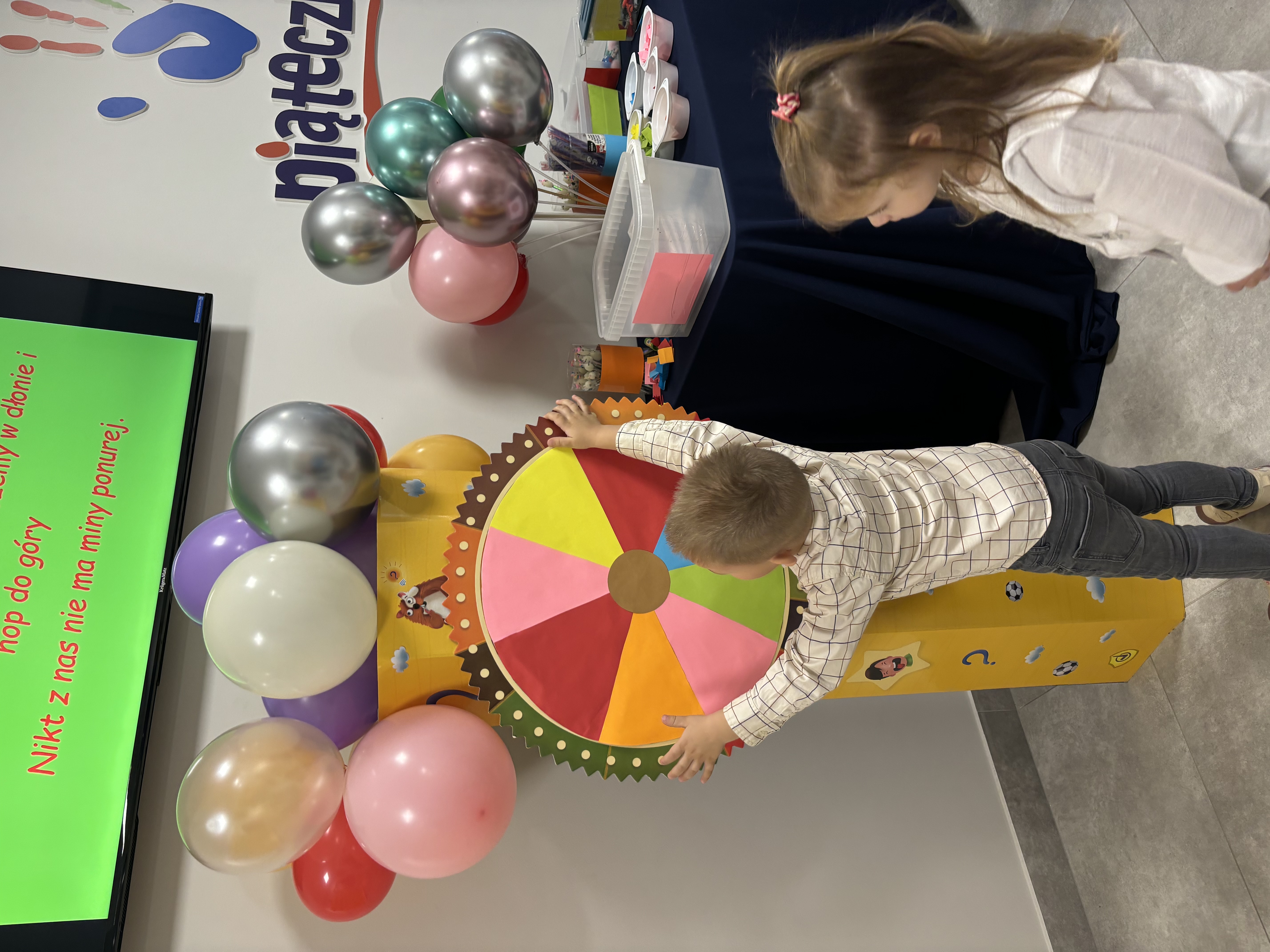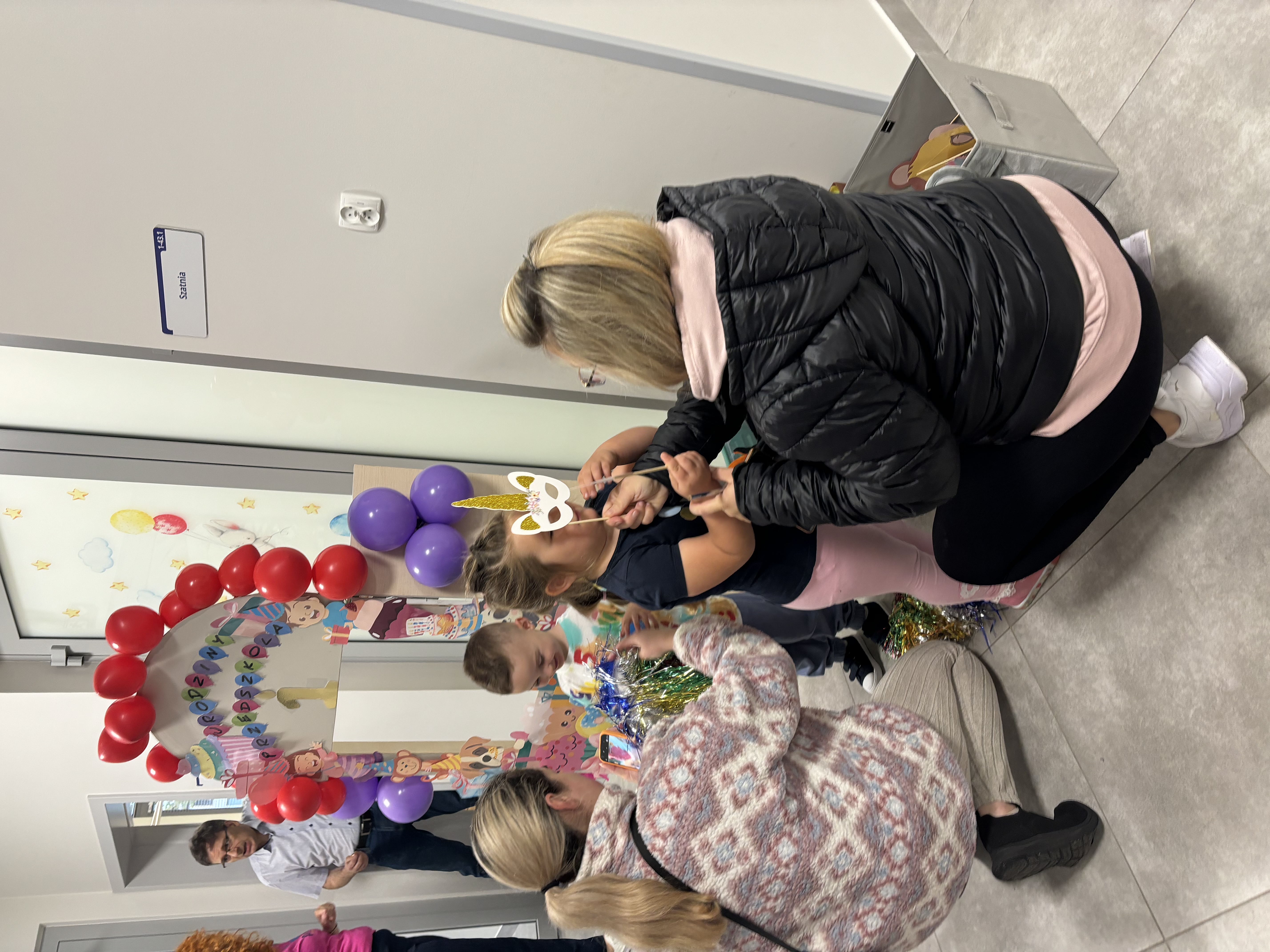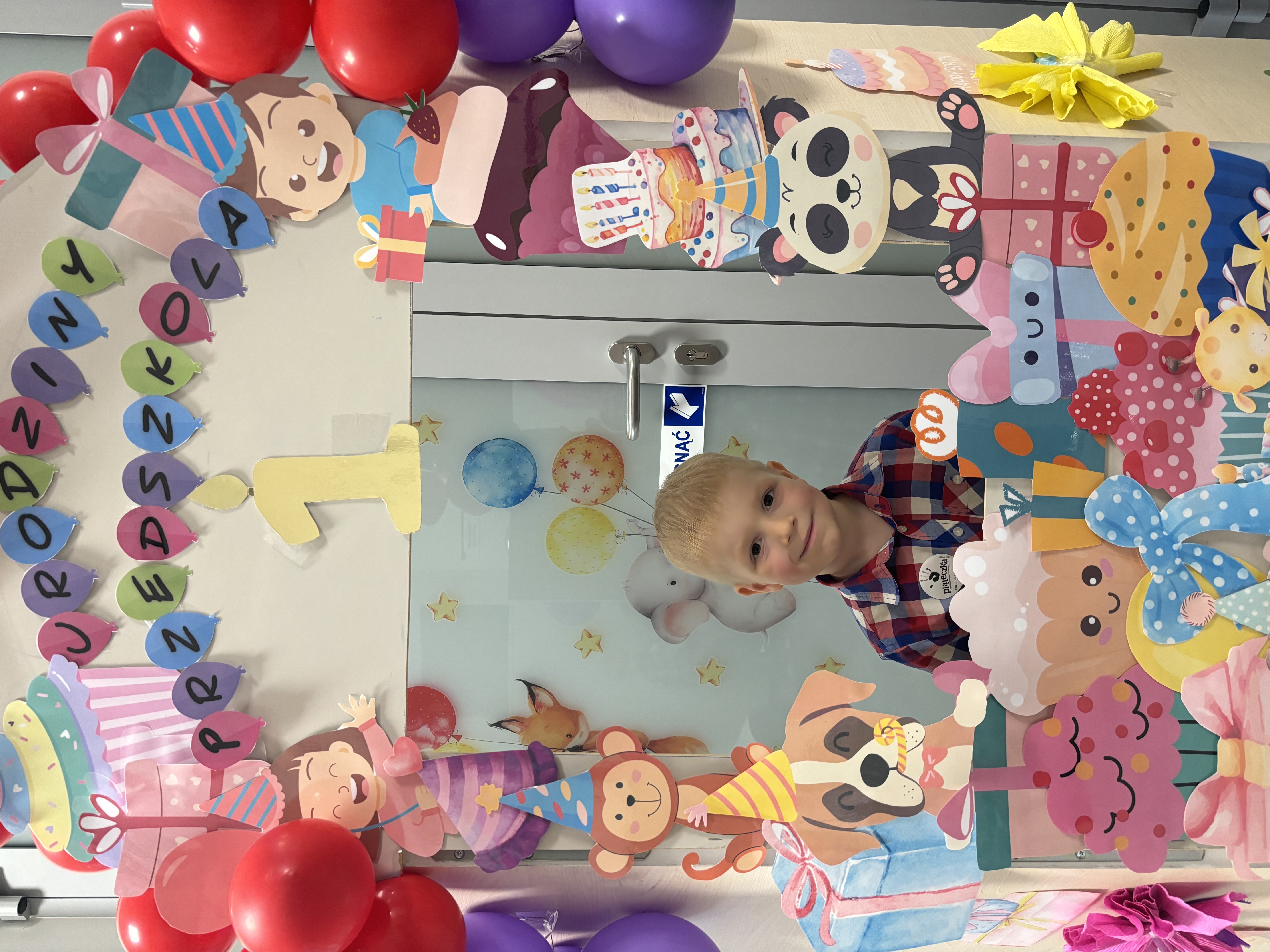 10 października to wyjątkowa data dla naszej placówki, gdyż tego dnia obchodzimy rocznicę otwarcia nowego budynku przedszkola. Z tej okazji od samego rana na wszystkie dzieci ubrane w imprezowe stroje z elementami „Piąteczki” czekało mnóstwo atrakcji. Przedszkolaki miały możliwość wykonania zdjęcia w fotobudce, brały udział w loterii oraz zabawie tanecznej. Urodzinowe przyjęcie rozpoczęła Pani Dyrektor, która przywitała dzieci