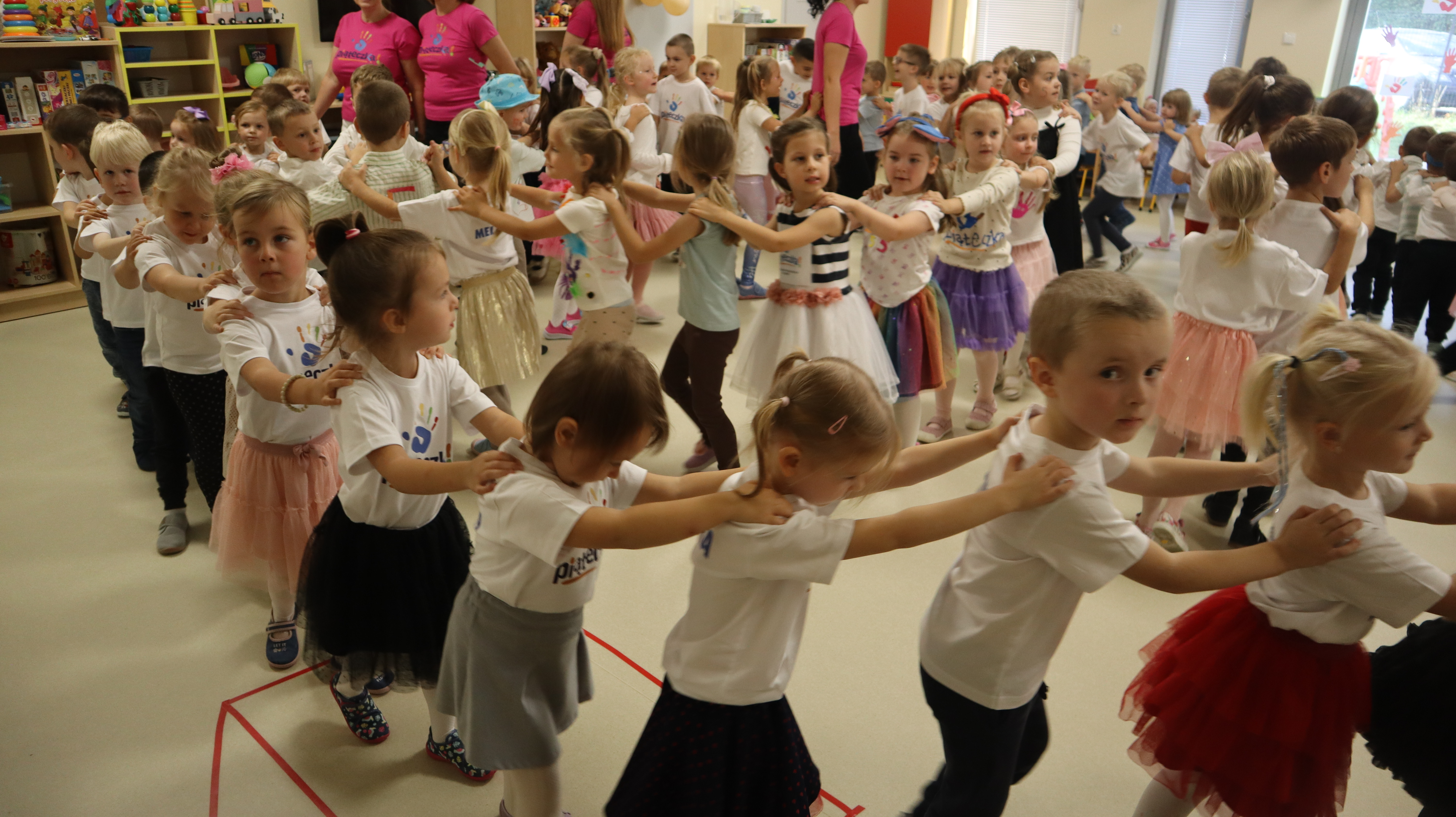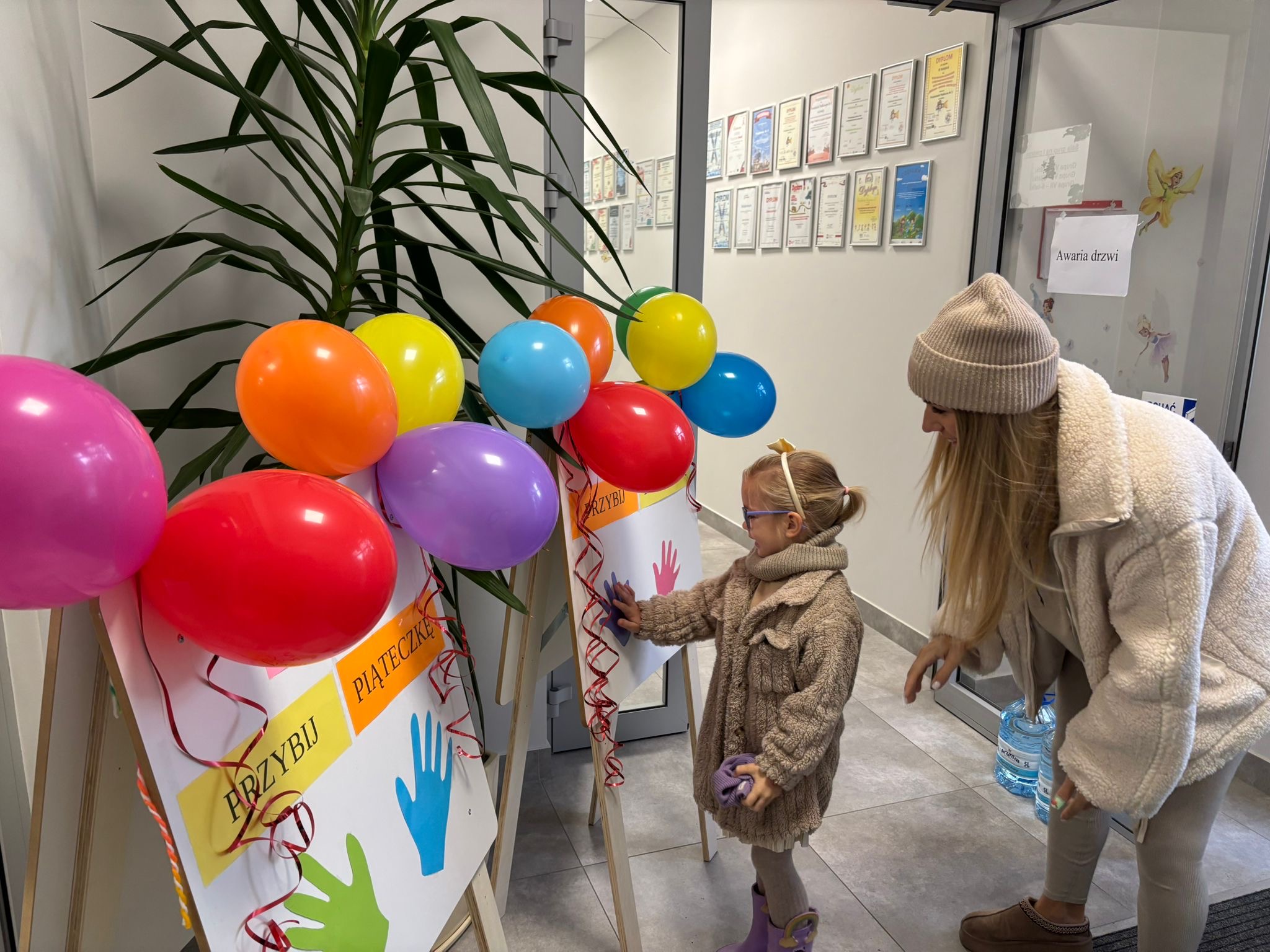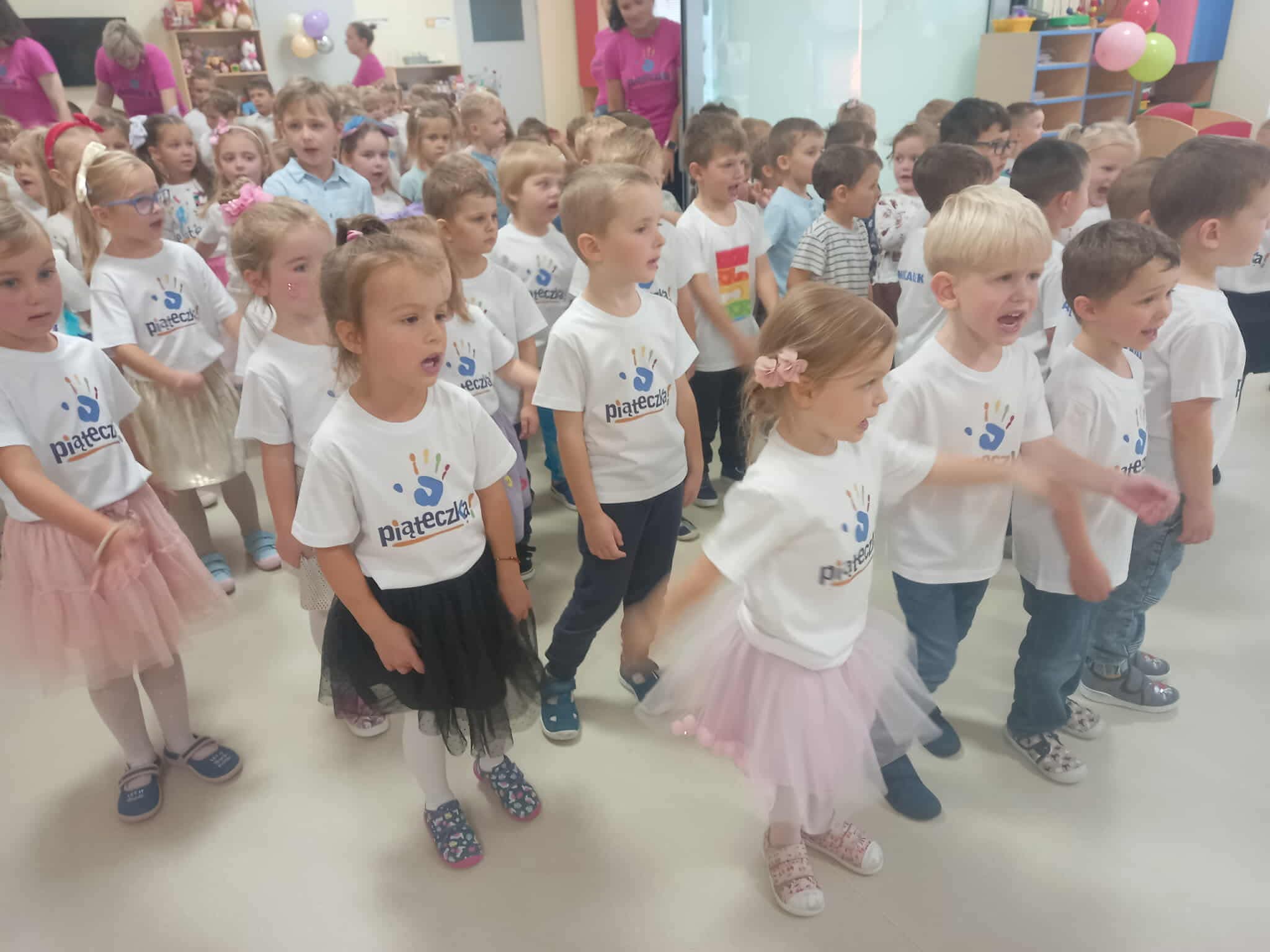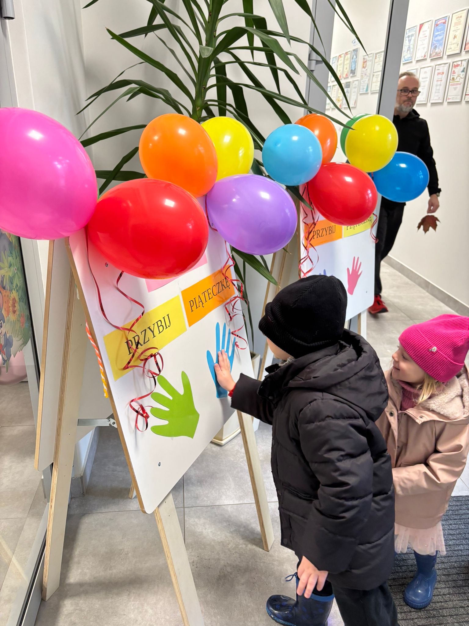10 października to wyjątkowa data dla naszej placówki, gdyż tego dnia obchodzimy rocznicę otwarcia nowego budynku przedszkola. Z tej okazji od samego rana na wszystkie dzieci ubrane w imprezowe stroje z elementami „Piąteczki” czekało mnóstwo atrakcji. Przedszkolaki miały możliwość wykonania zdjęcia w fotobudce, brały udział w loterii oraz zabawie tanecznej. Urodzinowe przyjęcie rozpoczęła Pani Dyrektor, która przywitała dzieci