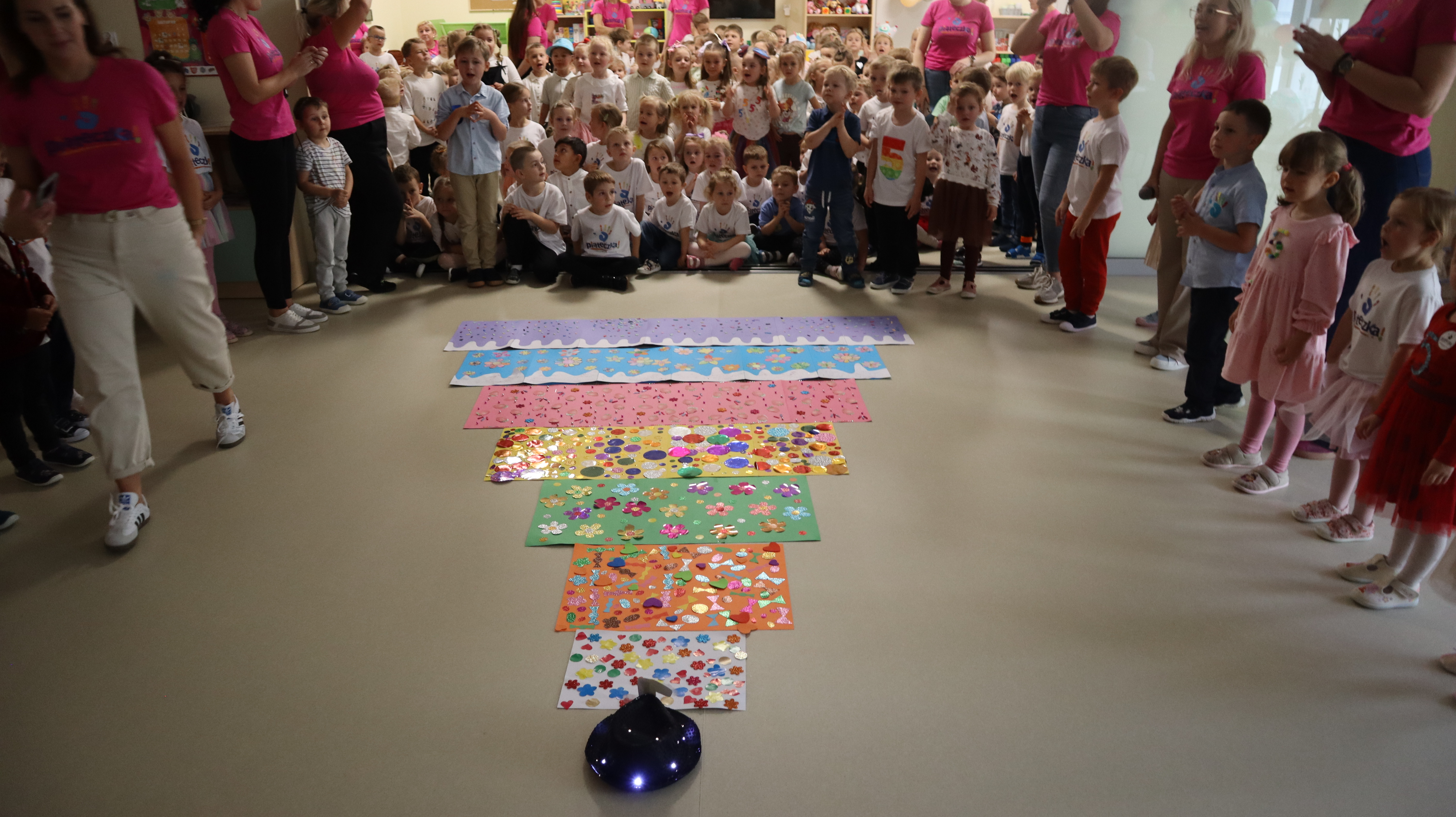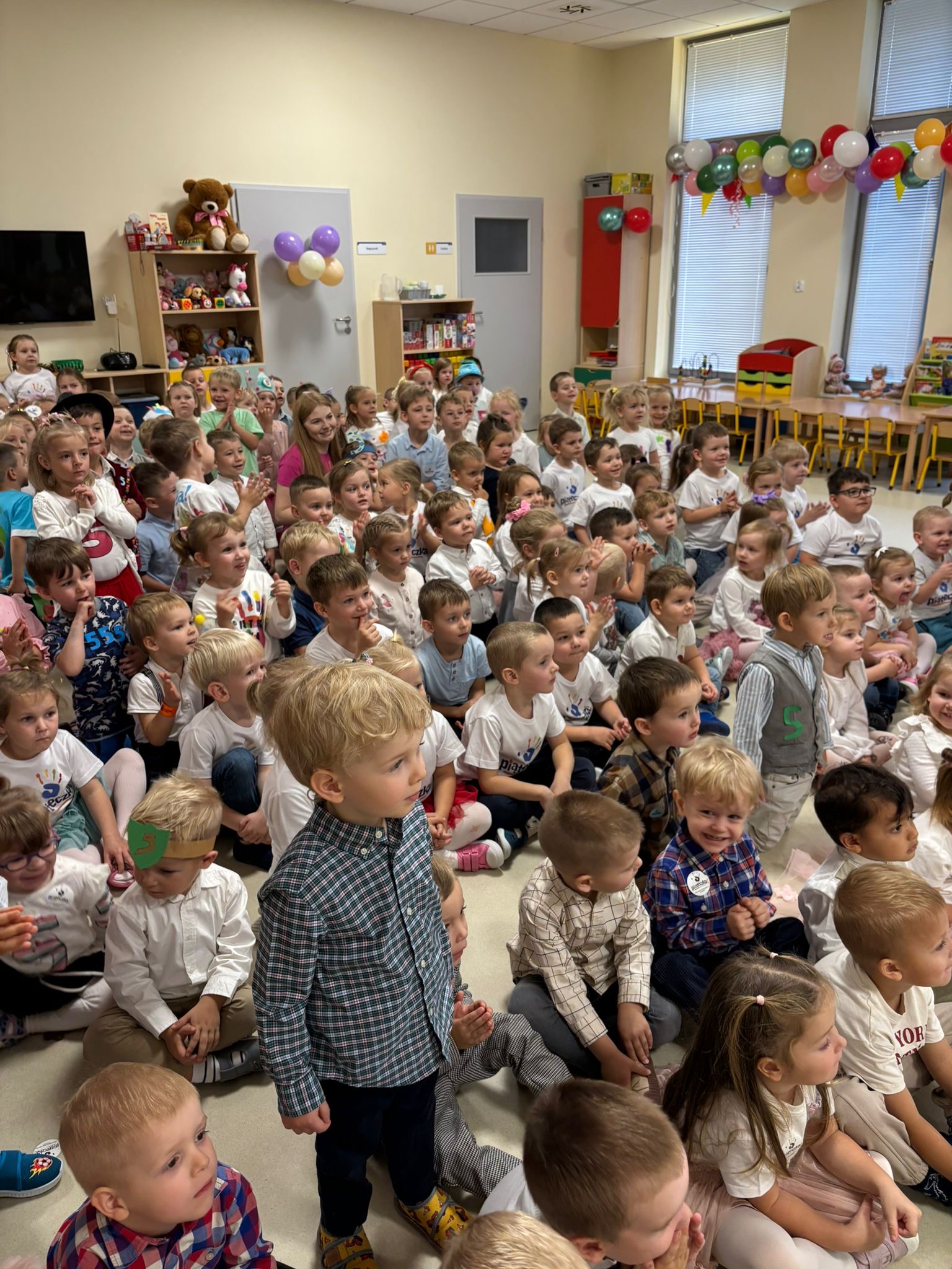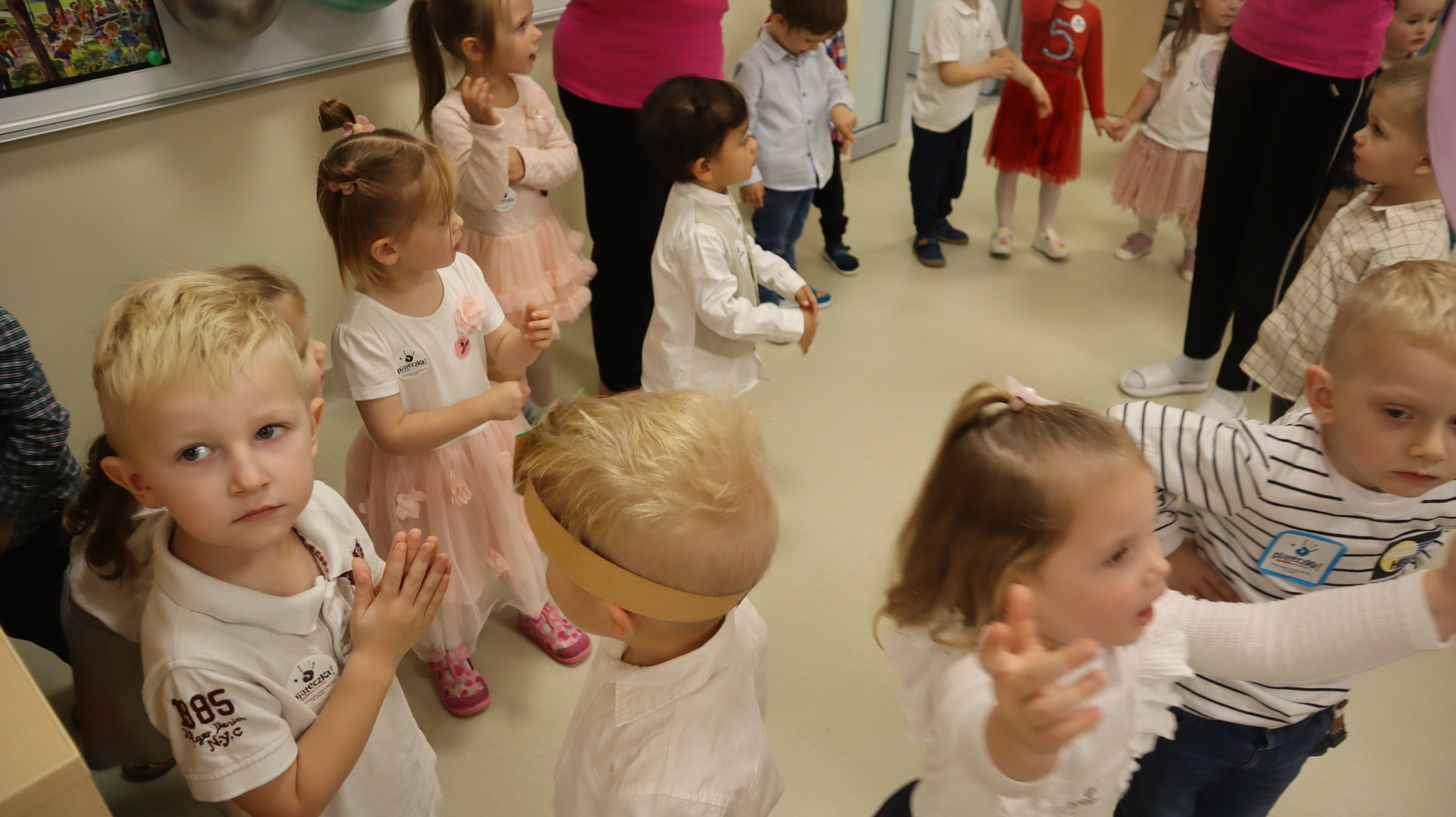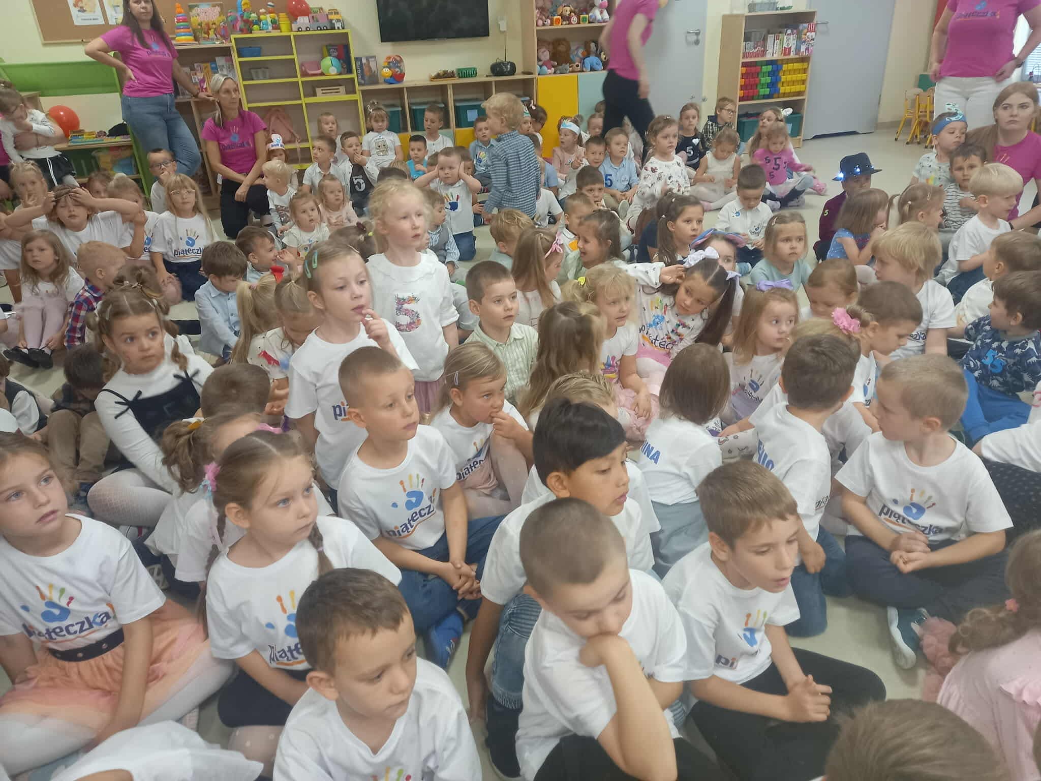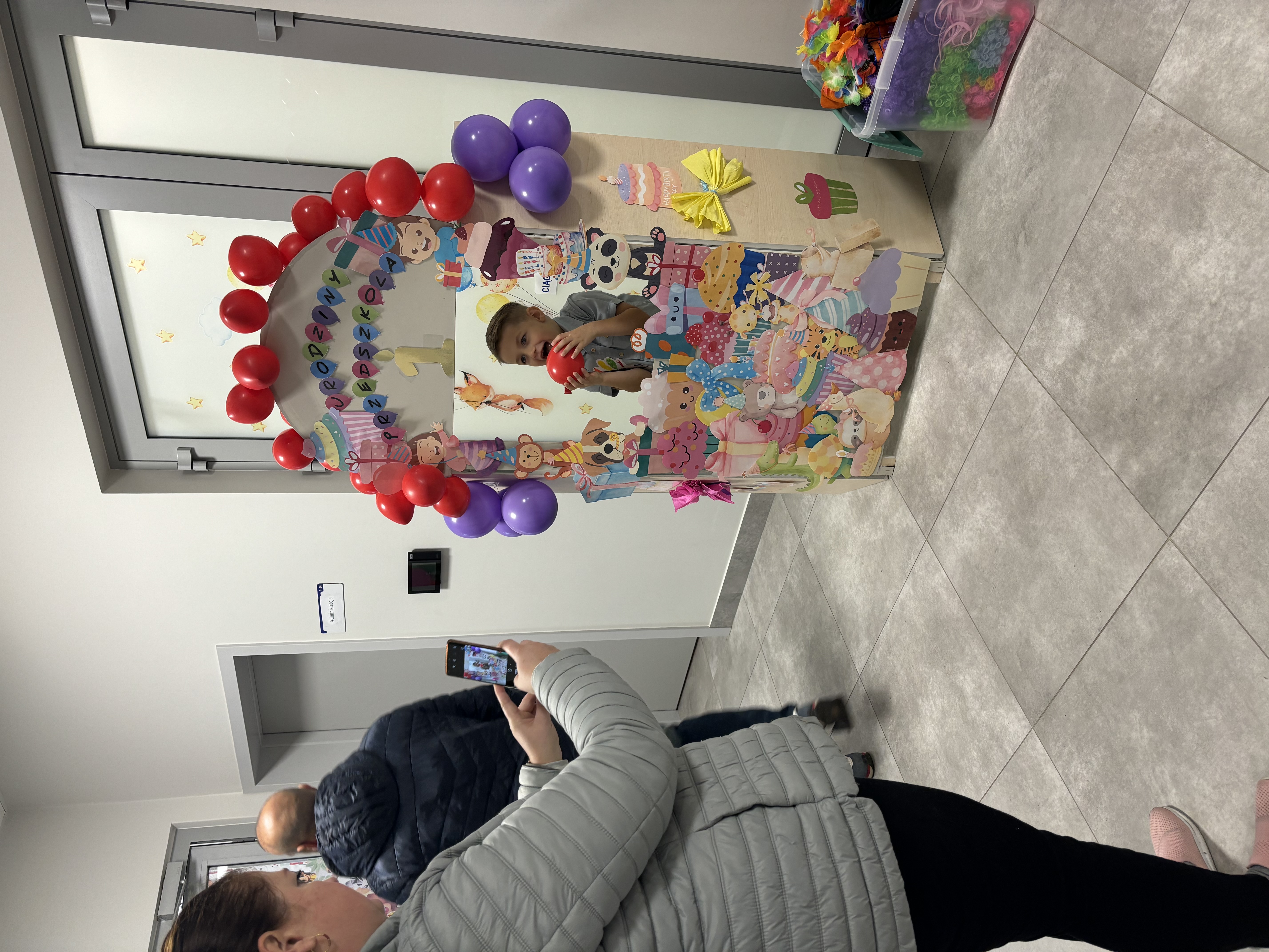 i otworzyła prezent – pudełko pełne kolorowych balonów. Następnie przedszkolaki uczestniczyły w różnorodnych konkursach oraz tańcach, a także układały tort z własnoręcznie ozdobionych arkuszy papieru. Na zakończenie każde dziecko otrzymało balonik. To był dzień pełen wrażeń i wspaniałej zabawy. Dzisiejsza uroczystość na długo pozostanie w naszej pamięci.
