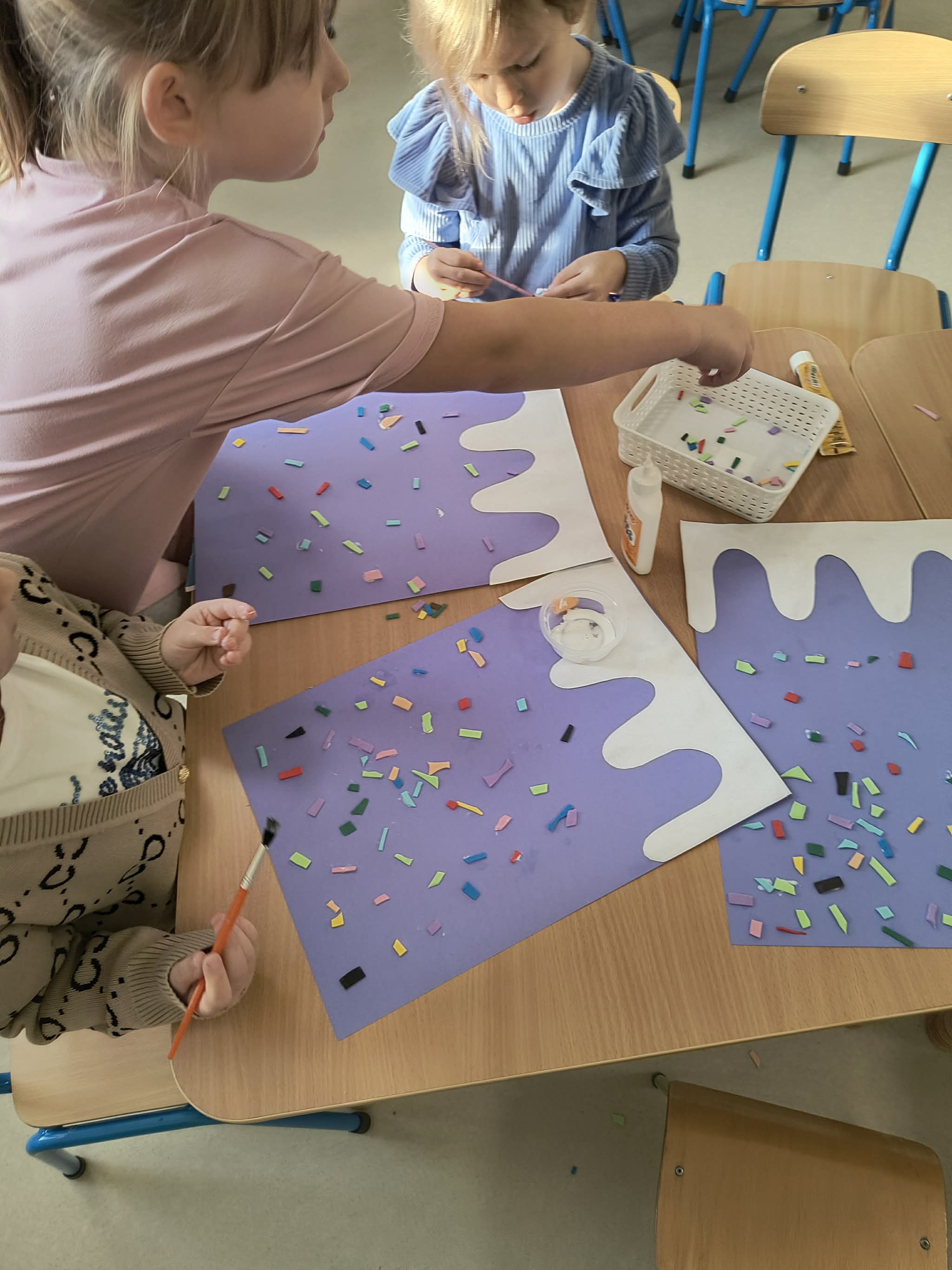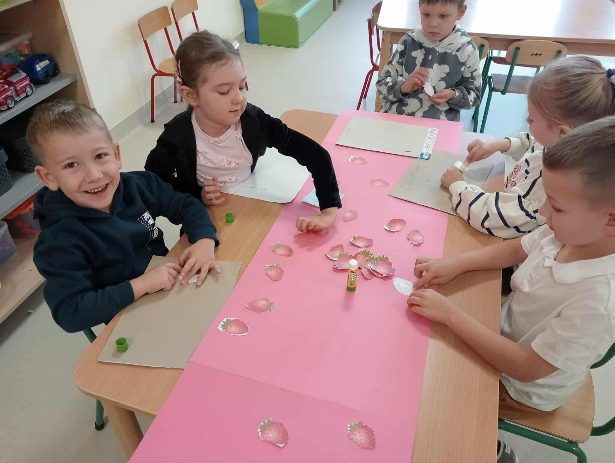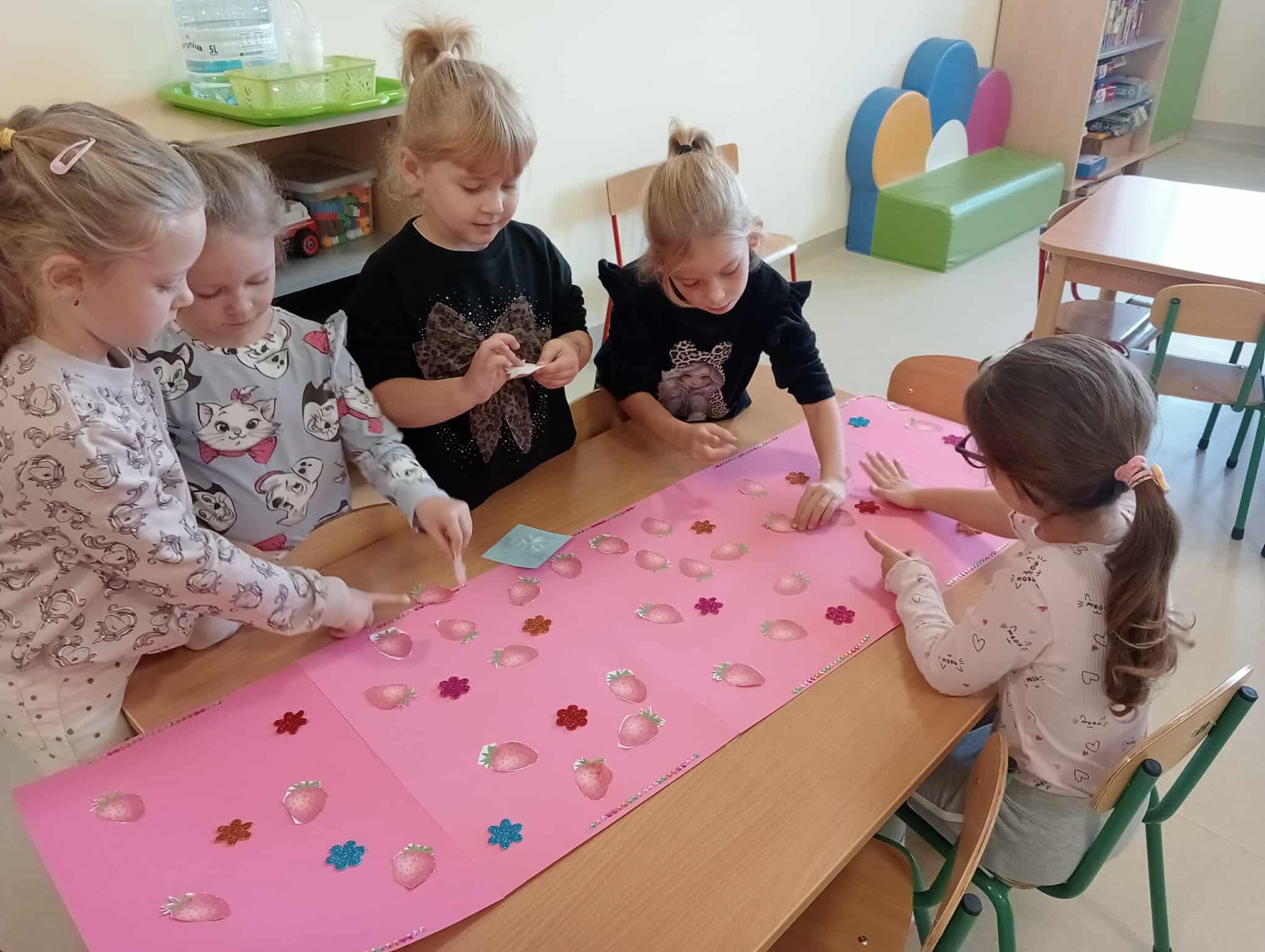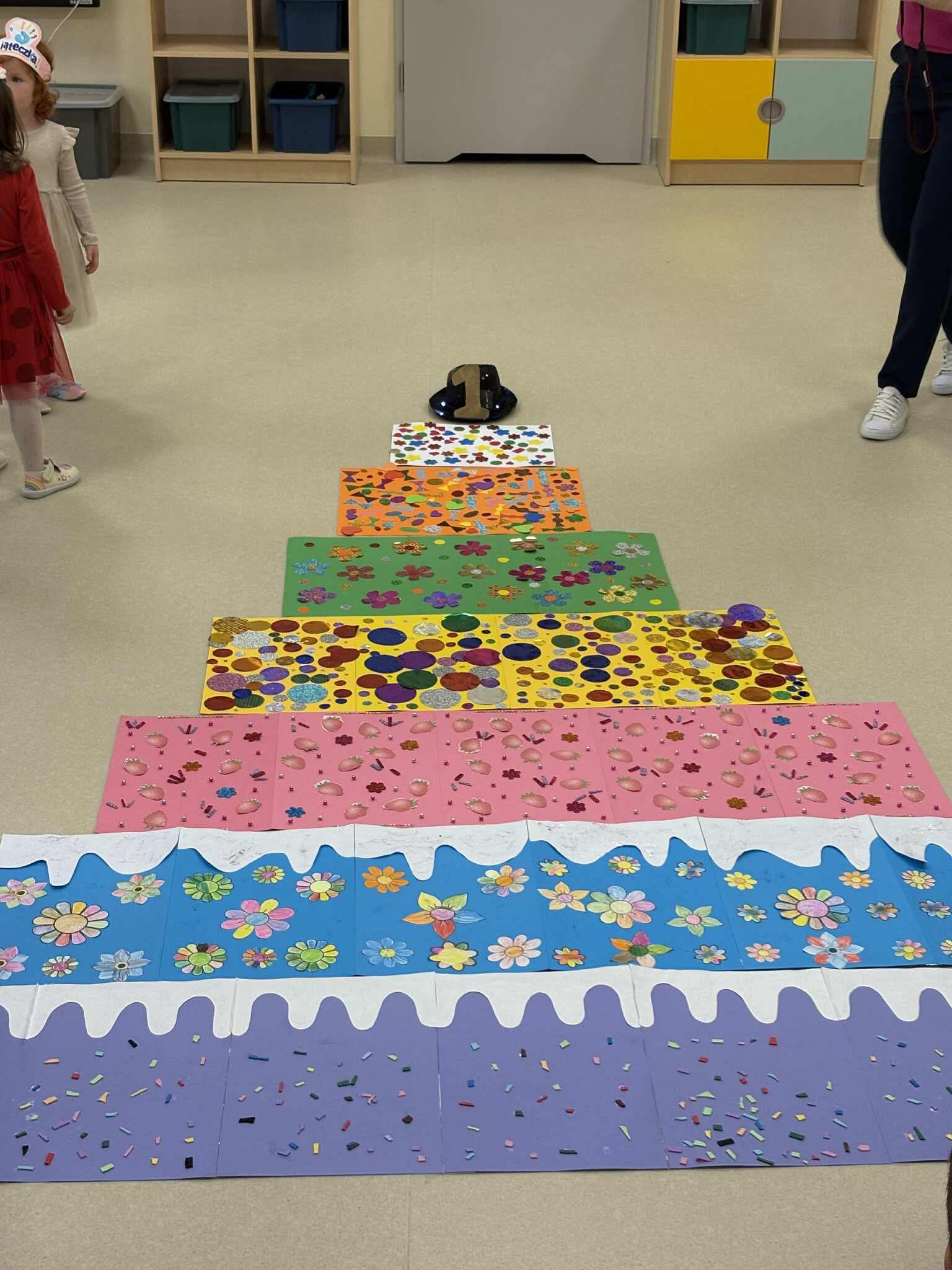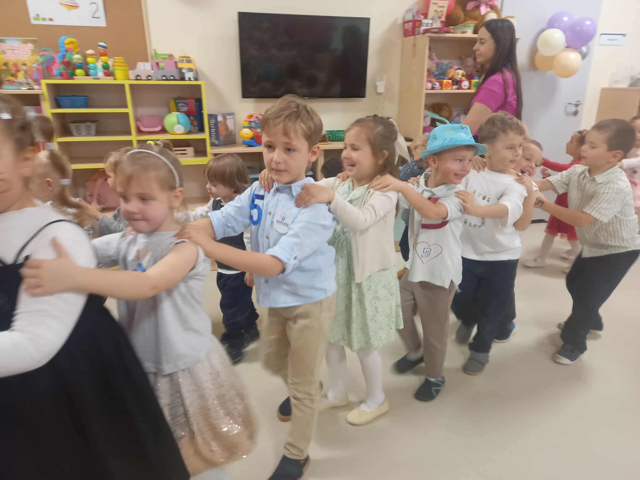 i otworzyła prezent – pudełko pełne kolorowych balonów. Następnie przedszkolaki uczestniczyły w różnorodnych konkursach oraz tańcach, a także układały tort z własnoręcznie ozdobionych arkuszy papieru. Na zakończenie każde dziecko otrzymało balonik. To był dzień pełen wrażeń i wspaniałej zabawy. Dzisiejsza uroczystość na długo pozostanie w naszej pamięci.