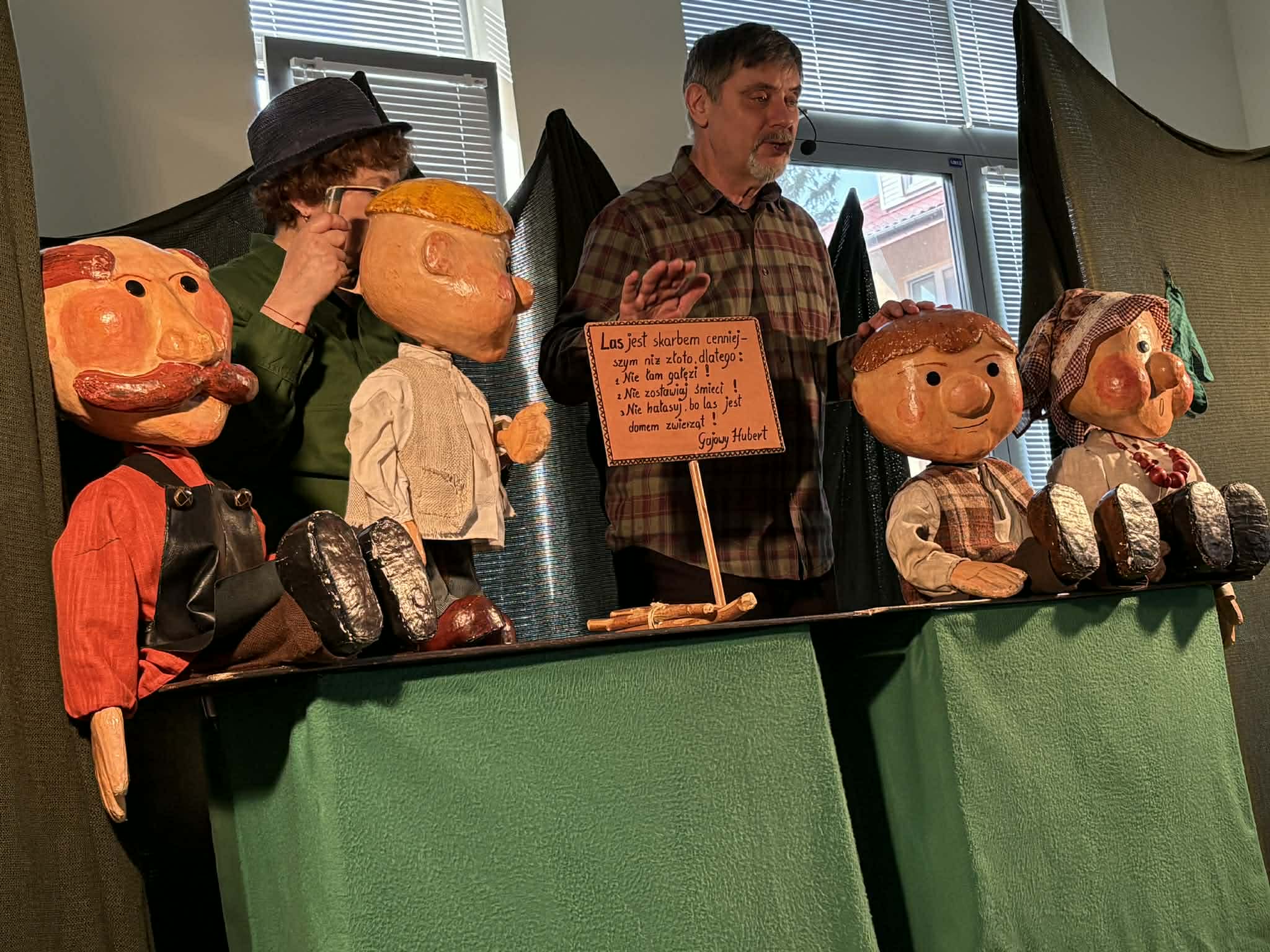 Była to bajka ekologiczna. Dzieci obejrzały przedstawienie, które w ciekawy sposób pokazuje potrzebę troski o przyrodę. Opowiada o mieszkańcach wioski położonej w lesie, których zżera żądza bogactwa. W celu szybkiego wzbogacenia się wycinają wszystkie pobliskie drzewa.Podczas oglądania przedstawienia dzieci otrzymały bardzo ważny przekaz. Przekonały się, że żadne pieniądze nie zastąpią nam bliskości z naturą. Las jest bardzo łatwo wyciąć, ale na nowe drzewa trzeba czekać całymi latami.