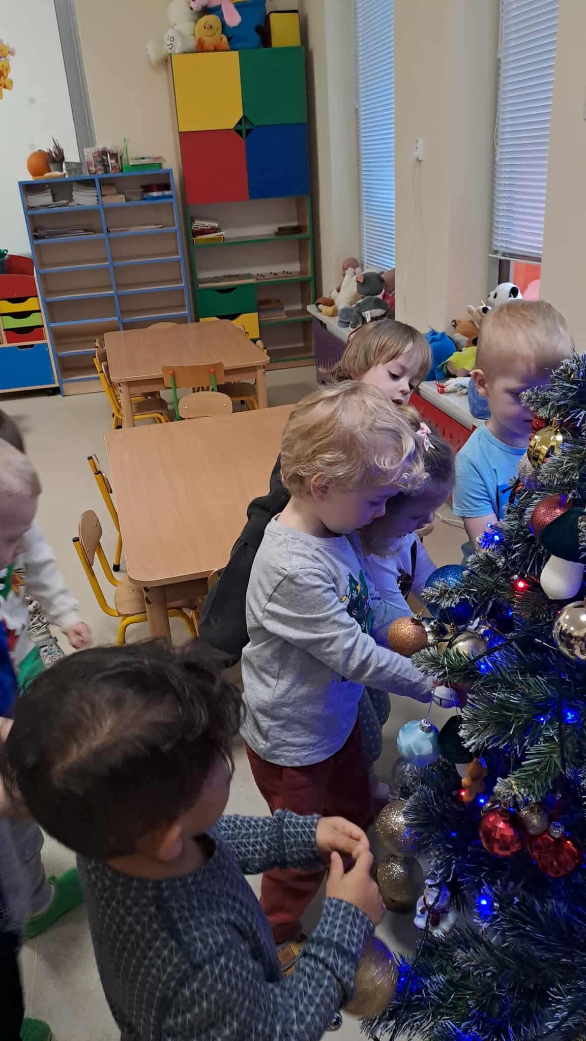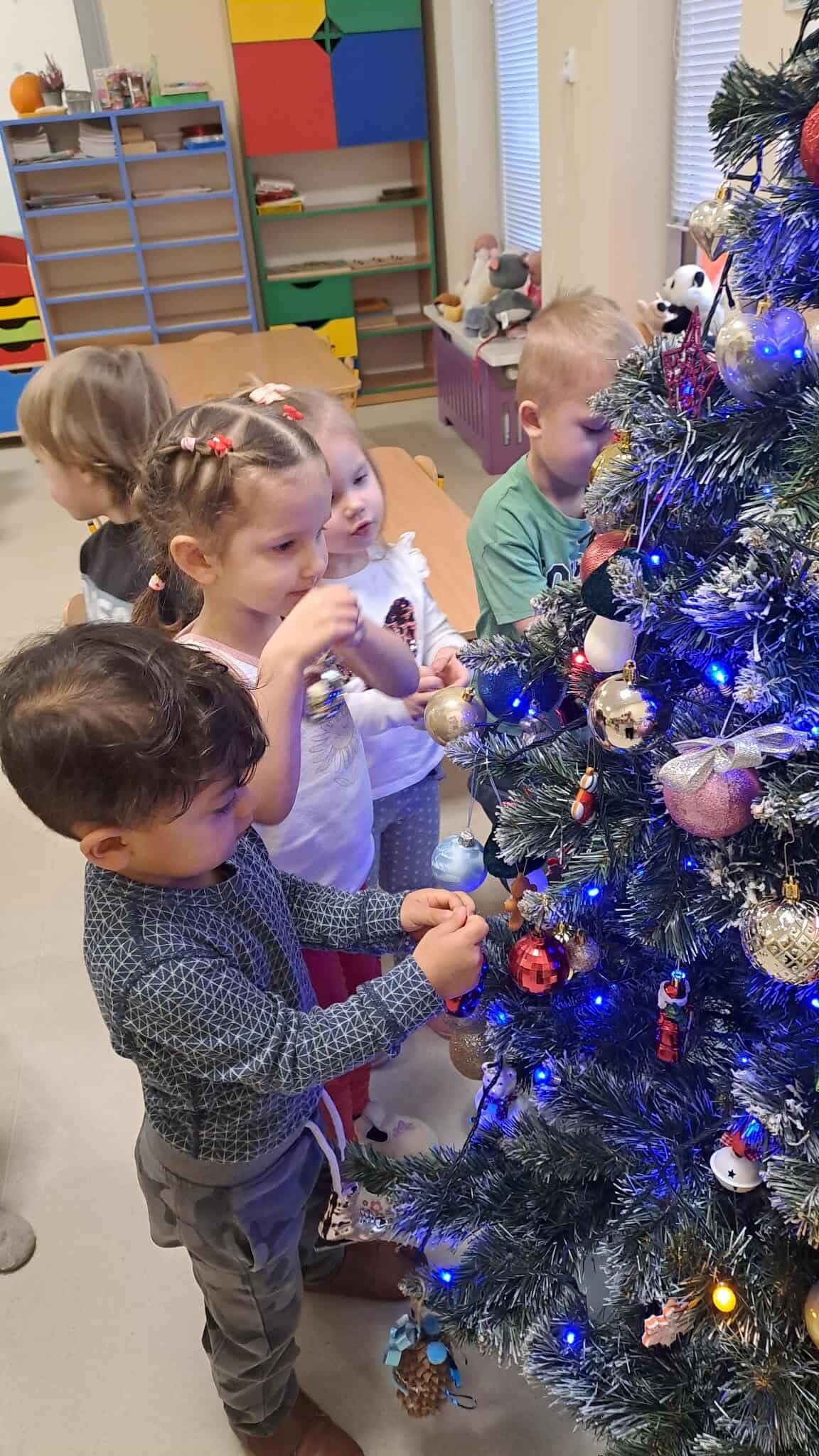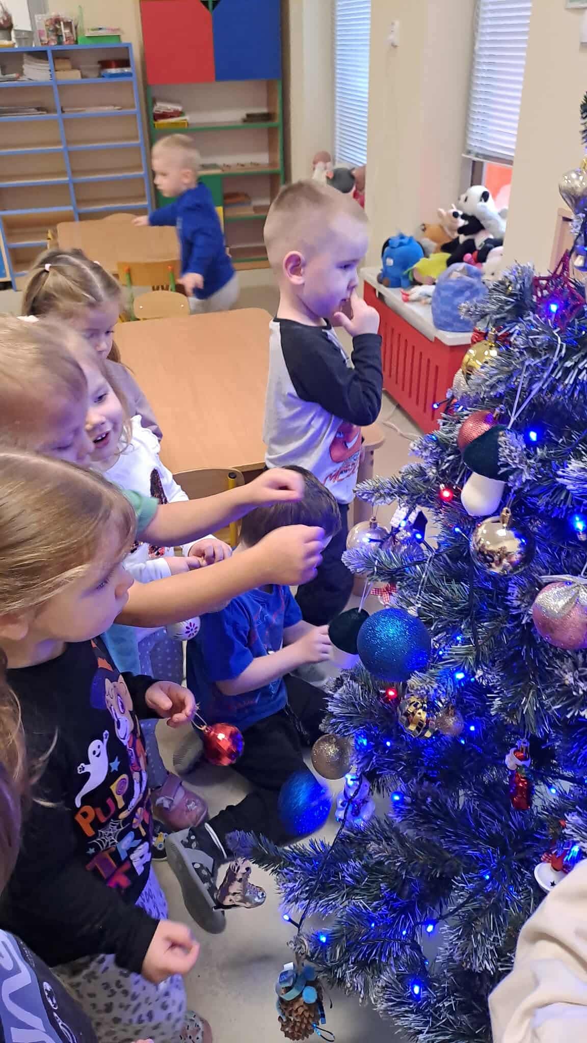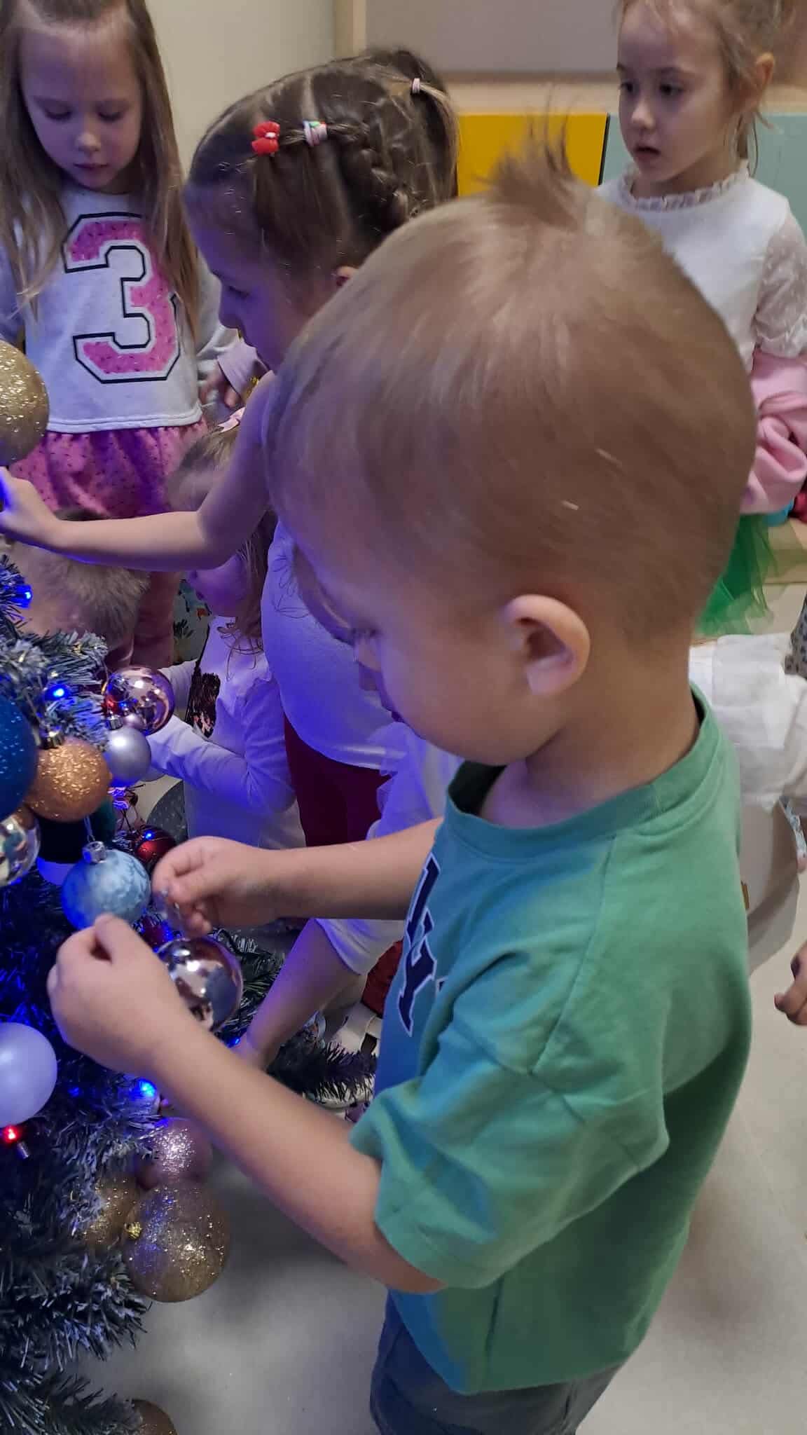 Z radością wspólnie dekorowały choinkę, zawieszały różnorodne ozdoby, światełka, łańcuchy.