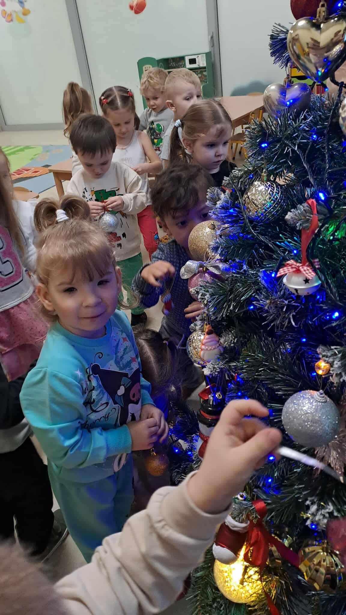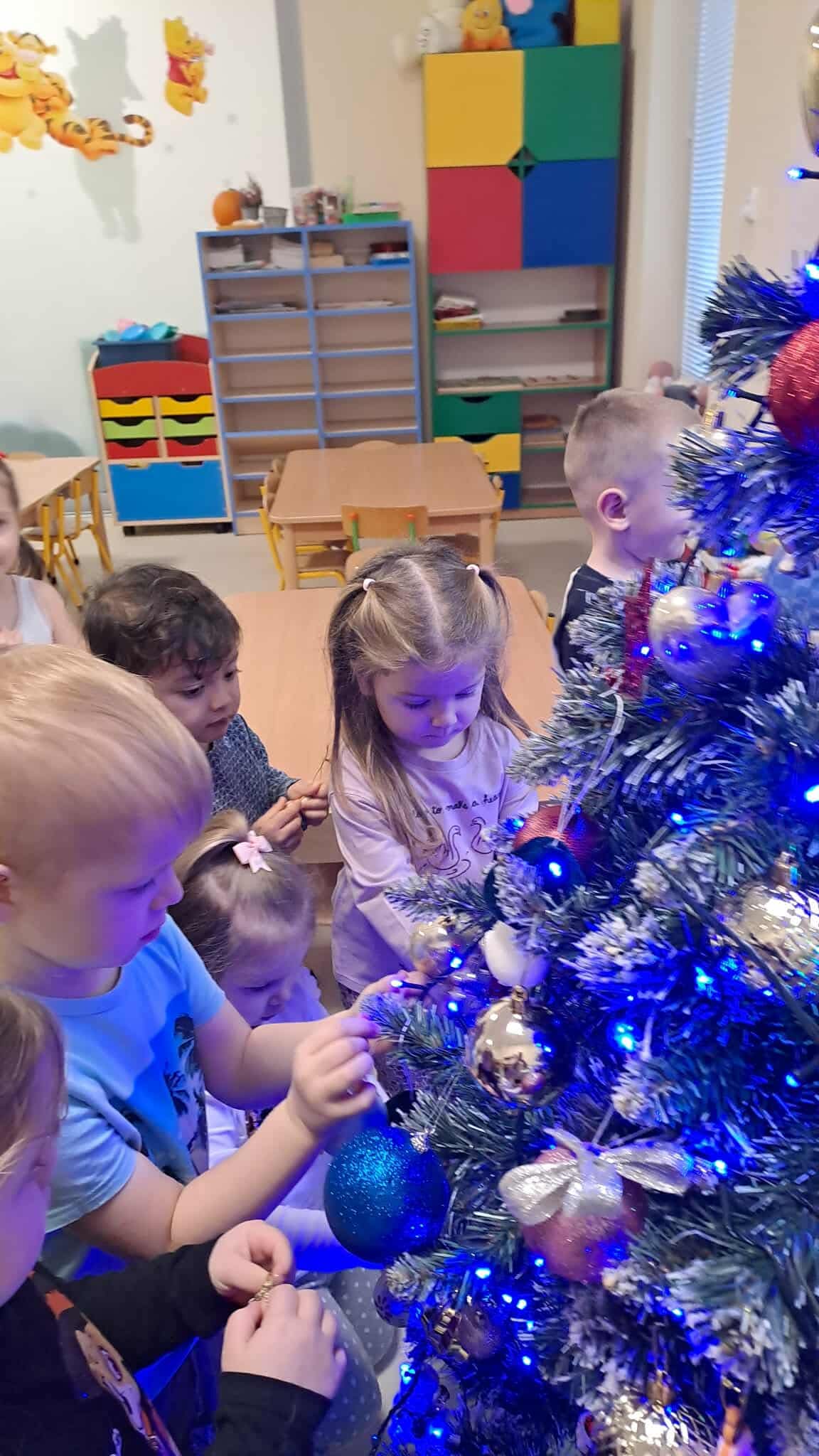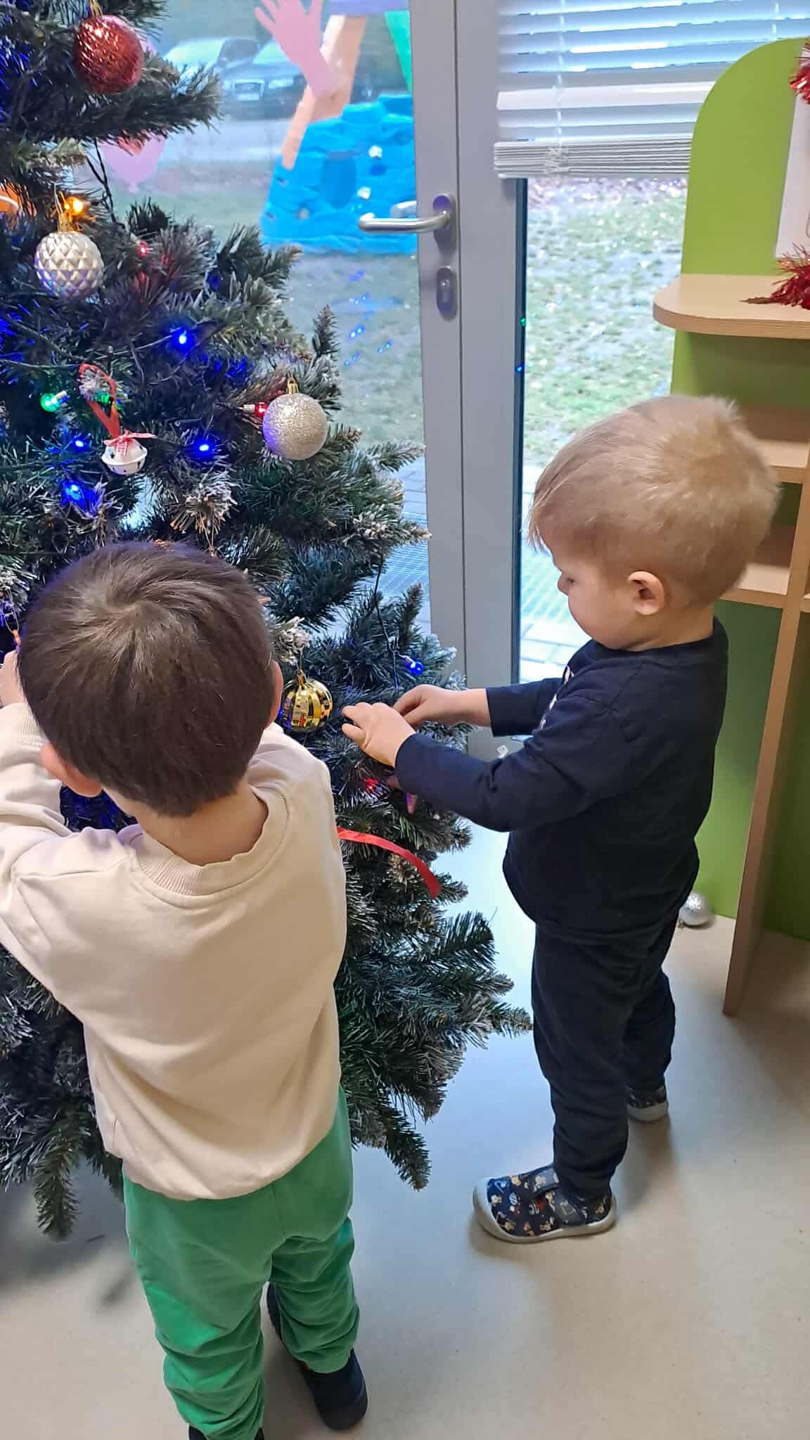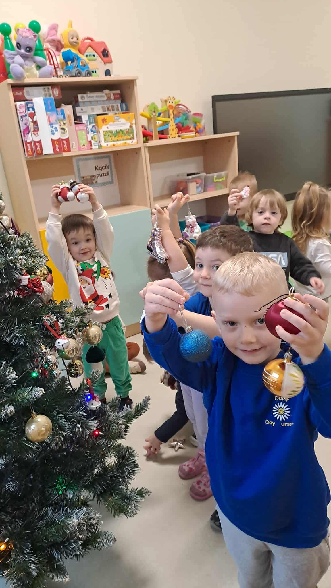 Z radością wspólnie dekorowały choinkę, zawieszały różnorodne ozdoby, światełka, łańcuchy.