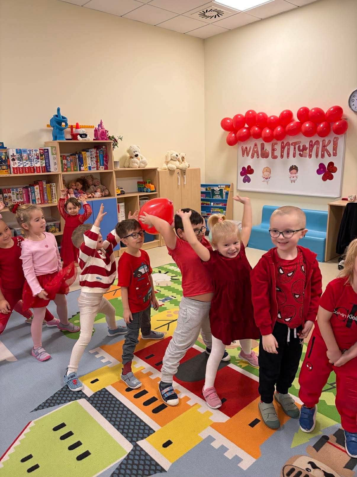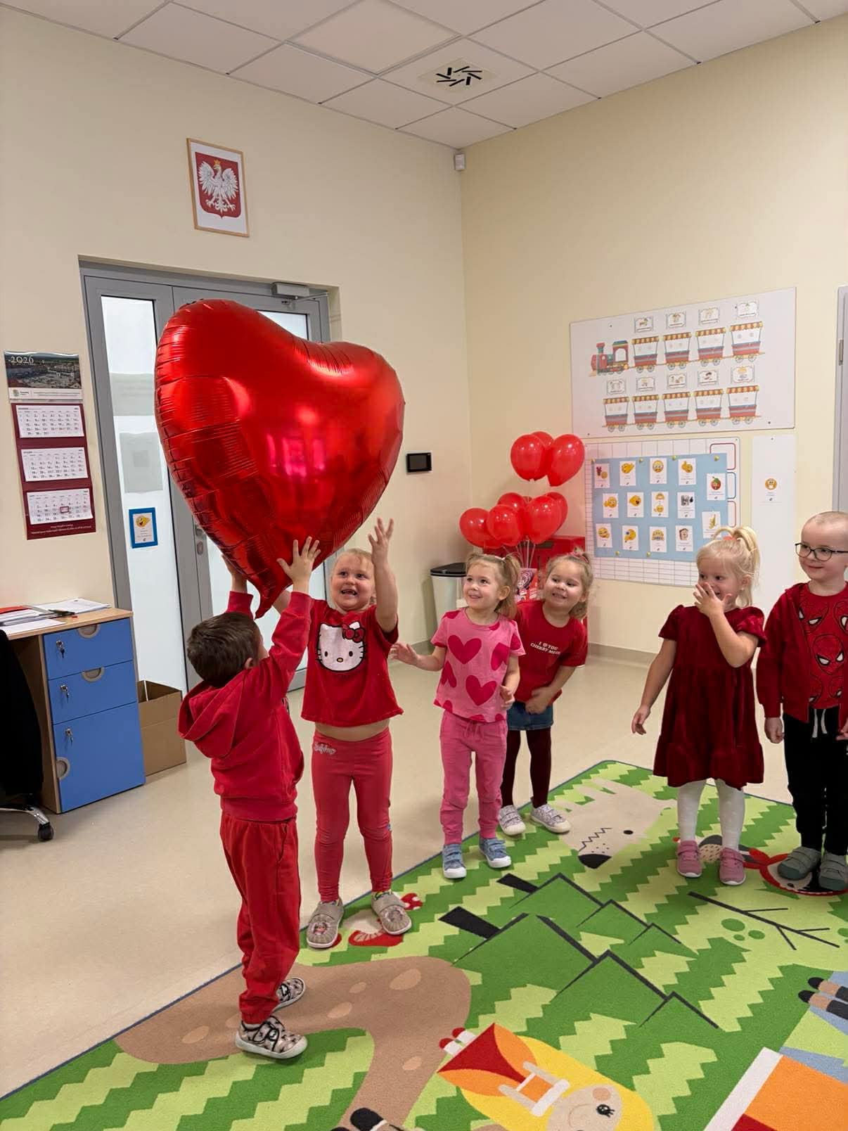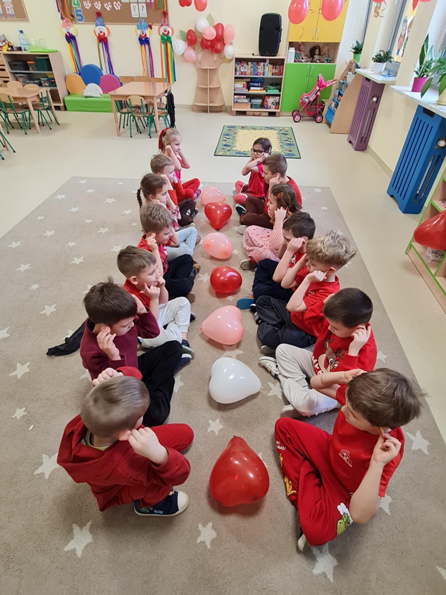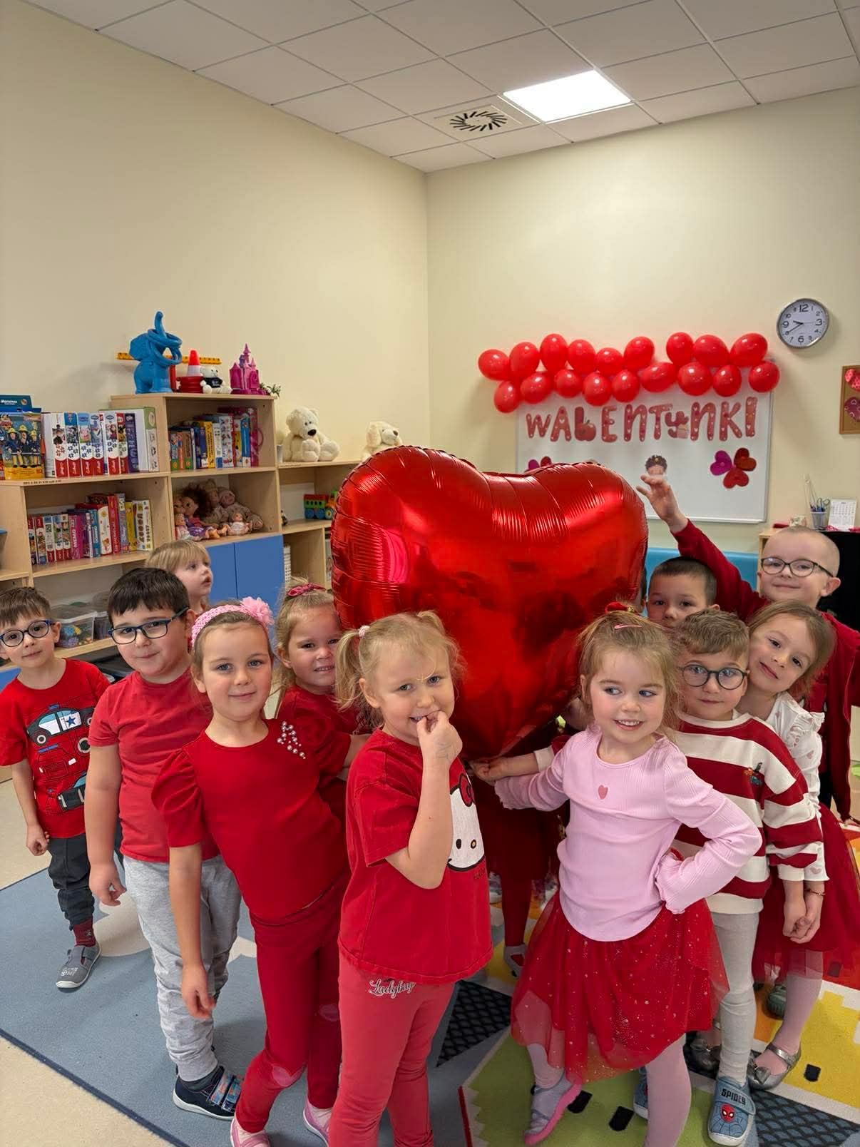 Dziś w naszym przedszkolu panowała prawdziwie walentynkowa atmosfera! Dzieci od samego rana z radością uczestniczyły w przygotowaniach. Sale przedszkolne zamieniły się w kolorową krainę serduszek i balonów, gdzie każdy mógł poczuć magię tego wyjątkowego dnia.
