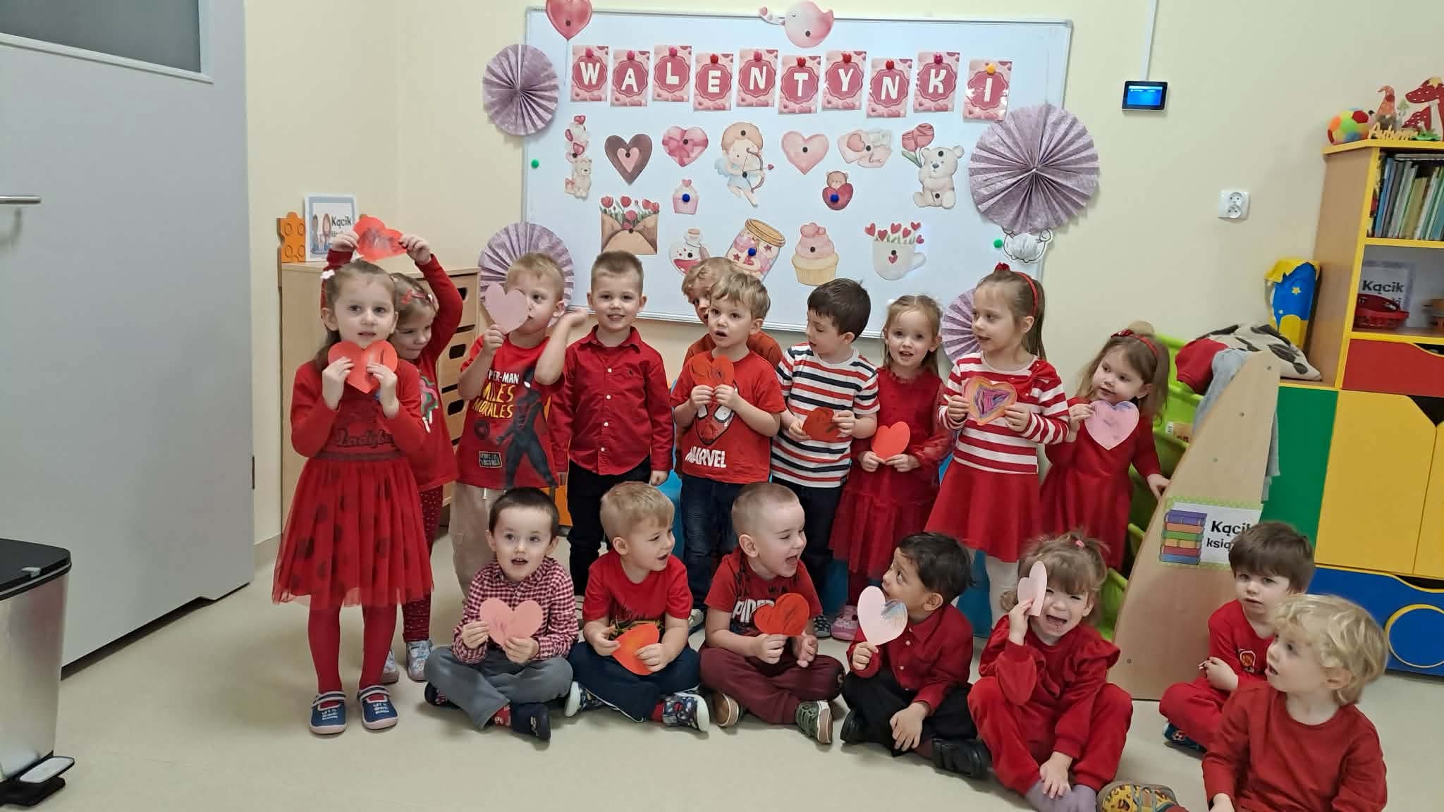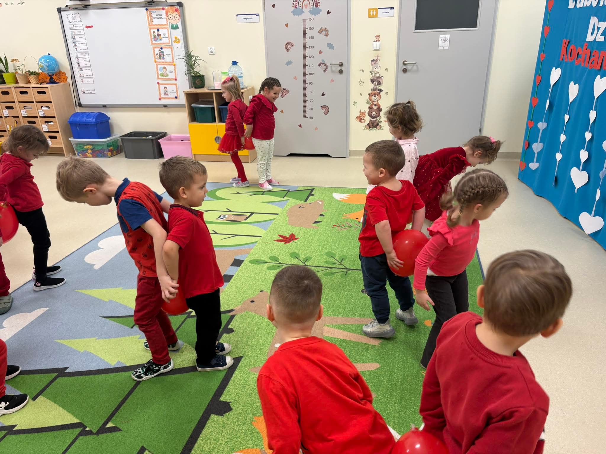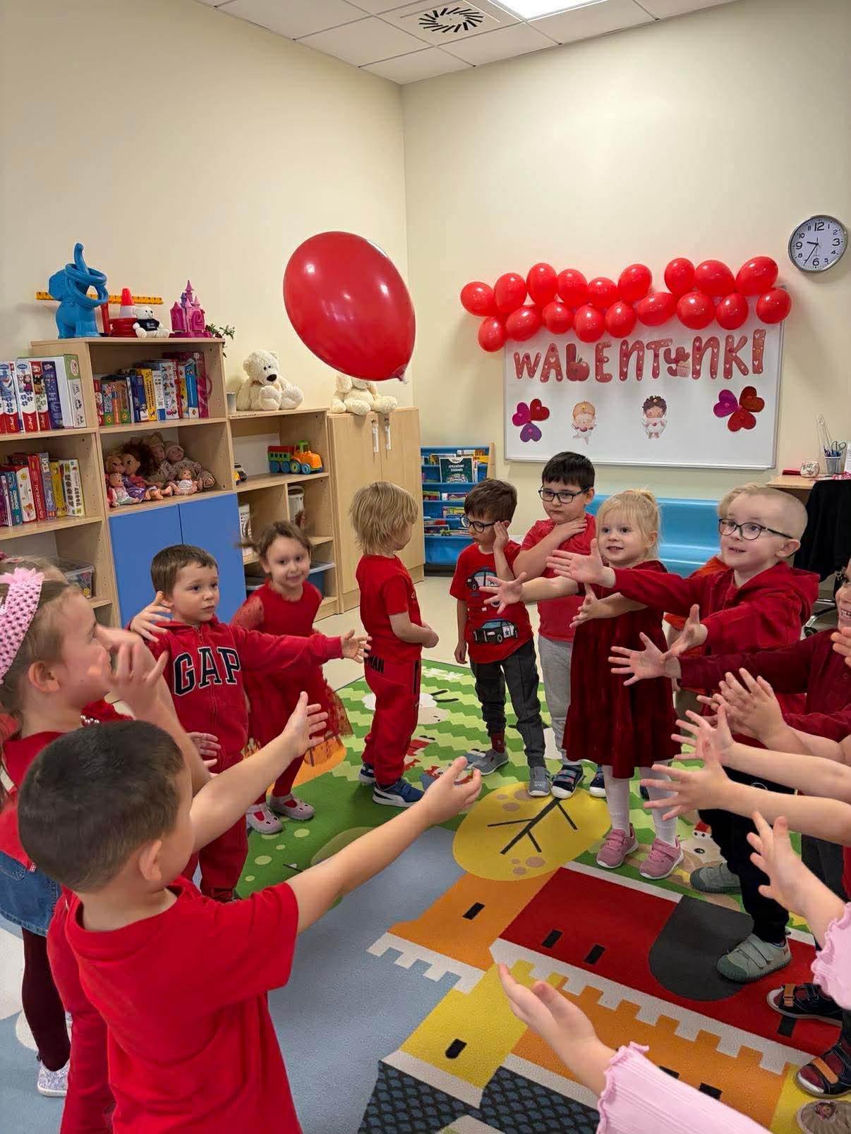 Dziś w naszym przedszkolu panowała prawdziwie walentynkowa atmosfera! Dzieci od samego rana z radością uczestniczyły w przygotowaniach. Sale przedszkolne zamieniły się w kolorową krainę serduszek i balonów, gdzie każdy mógł poczuć magię tego wyjątkowego dnia.