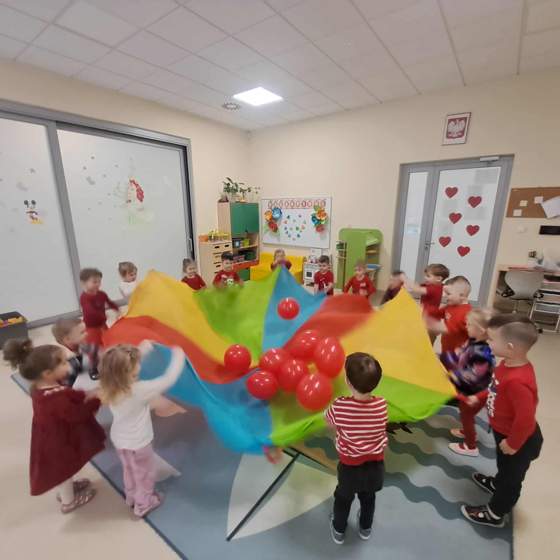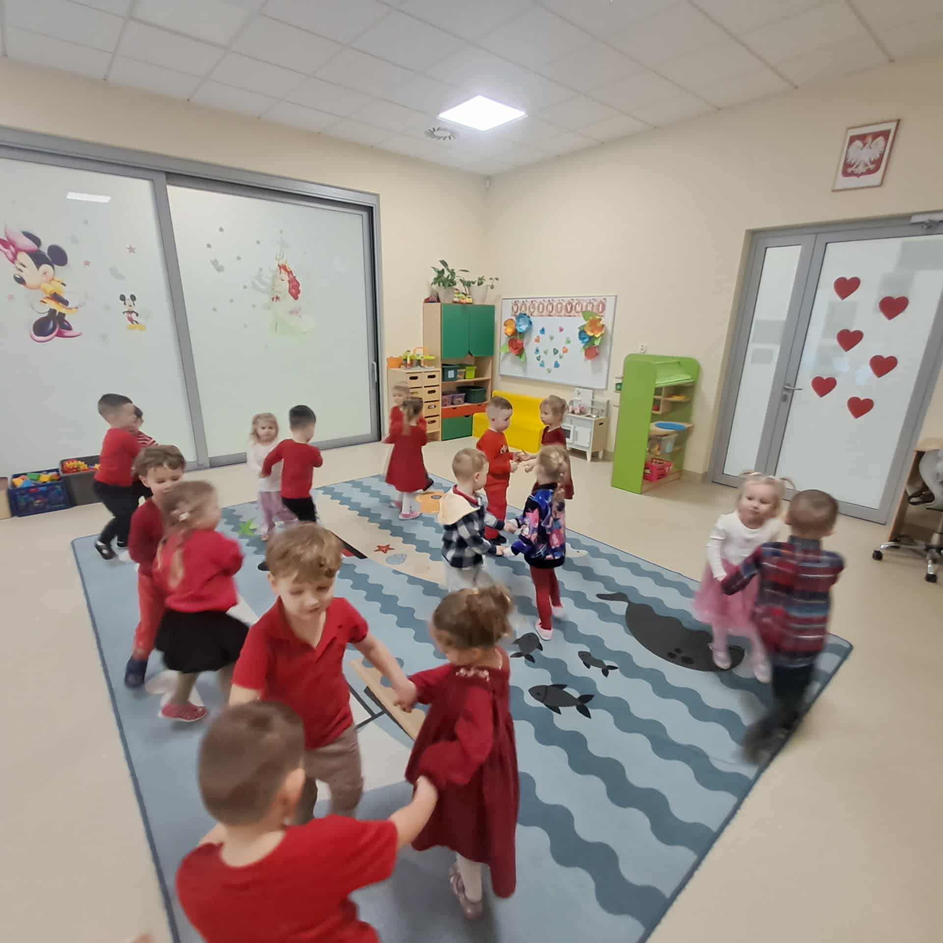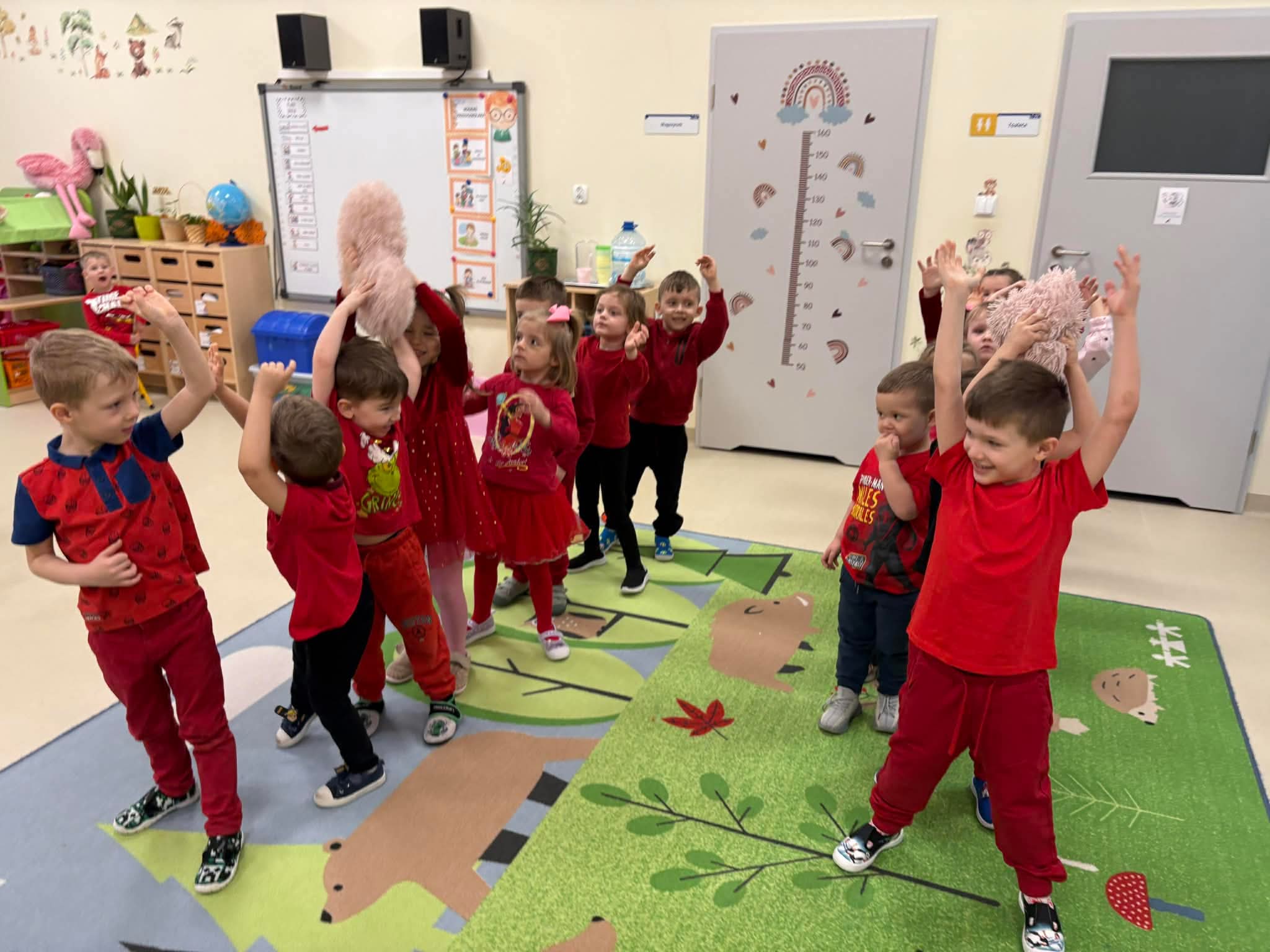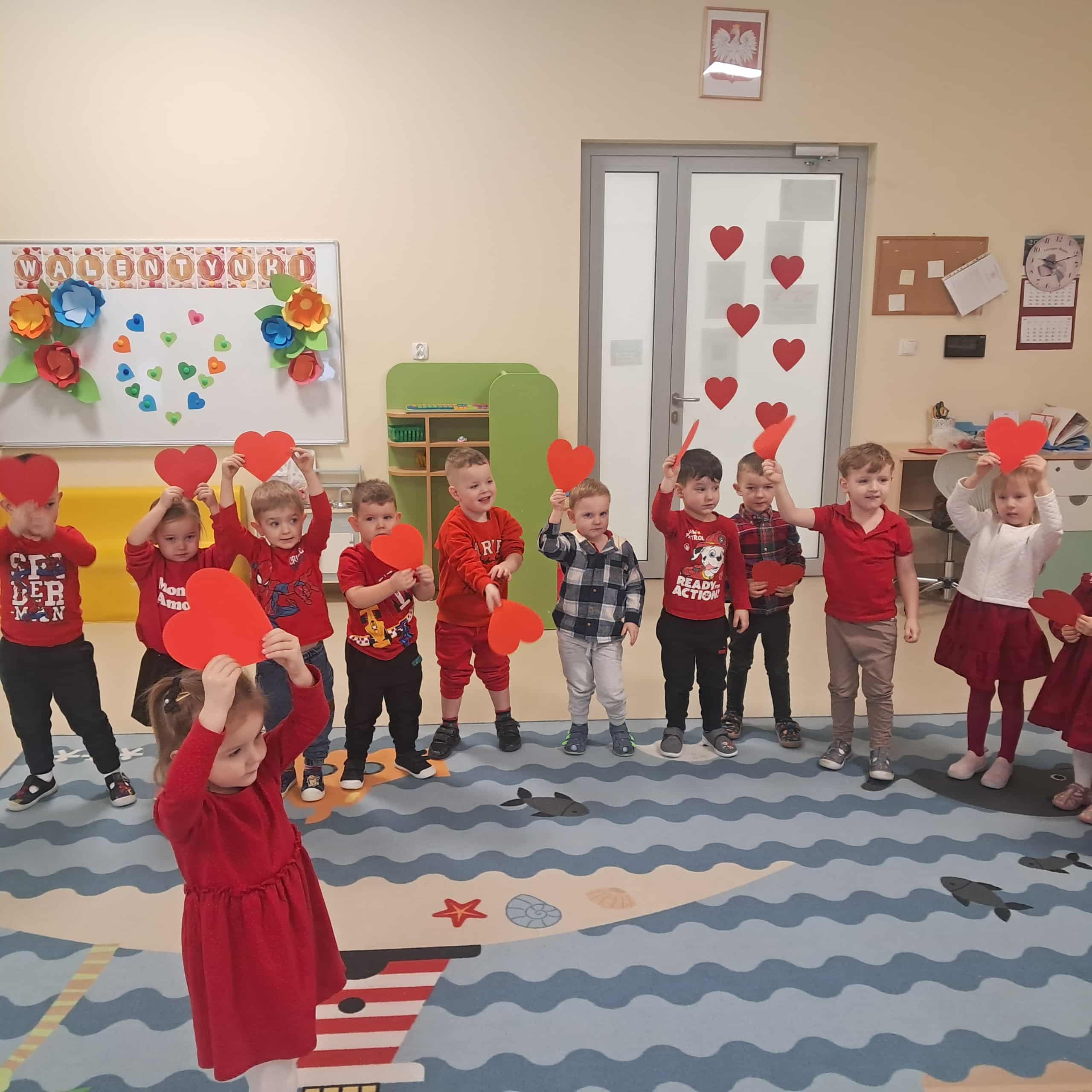 Dziś w naszym przedszkolu panowała prawdziwie walentynkowa atmosfera! Dzieci od samego rana z radością uczestniczyły w przygotowaniach. Sale przedszkolne zamieniły się w kolorową krainę serduszek i balonów, gdzie każdy mógł poczuć magię tego wyjątkowego dnia.