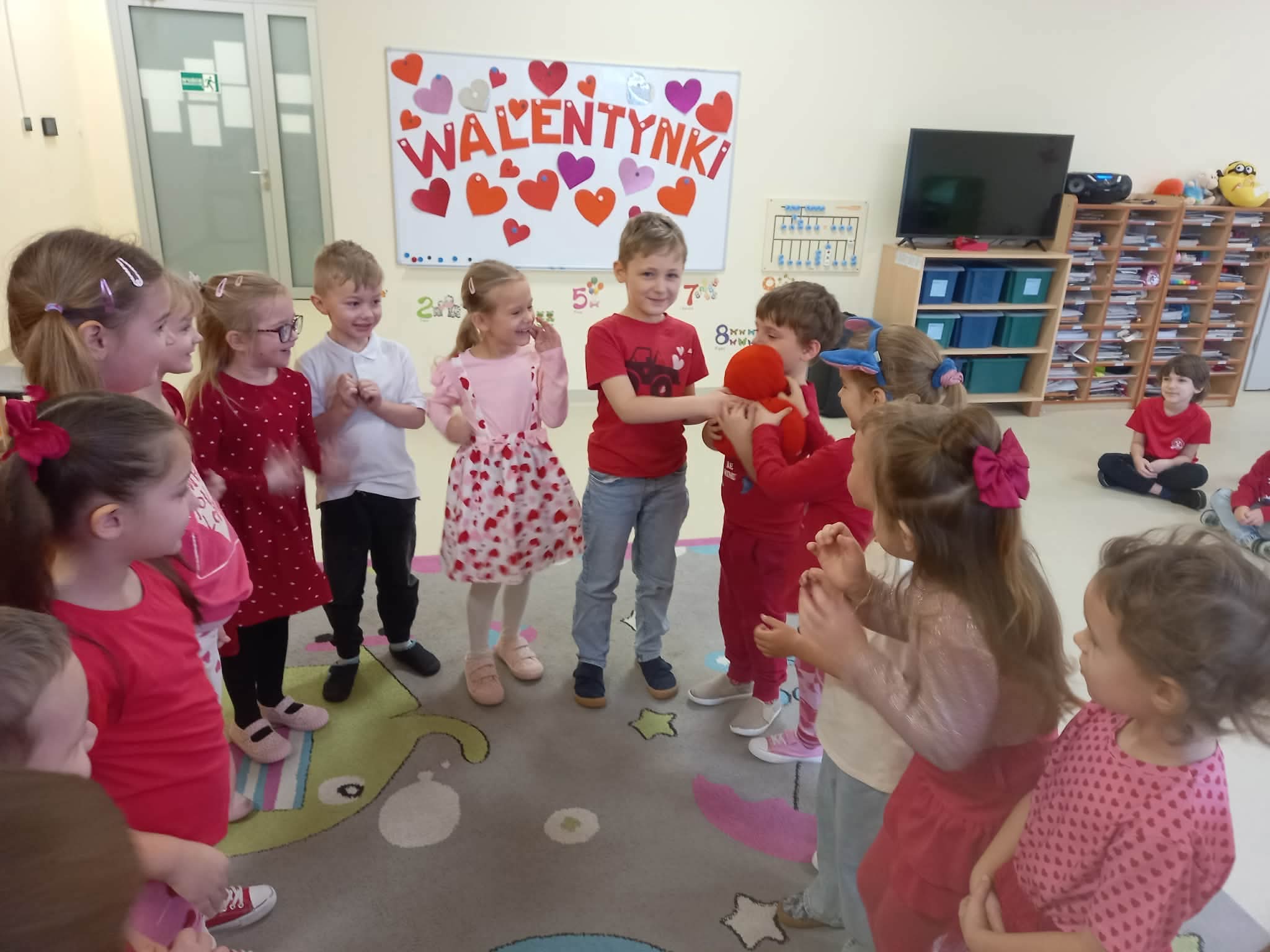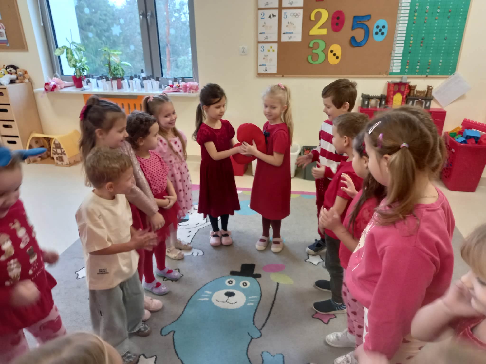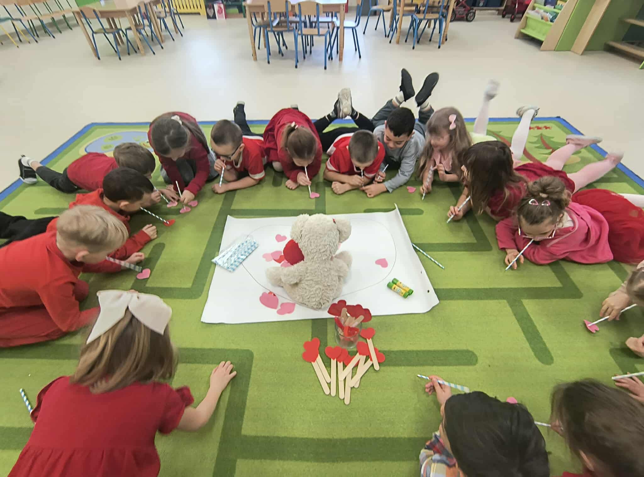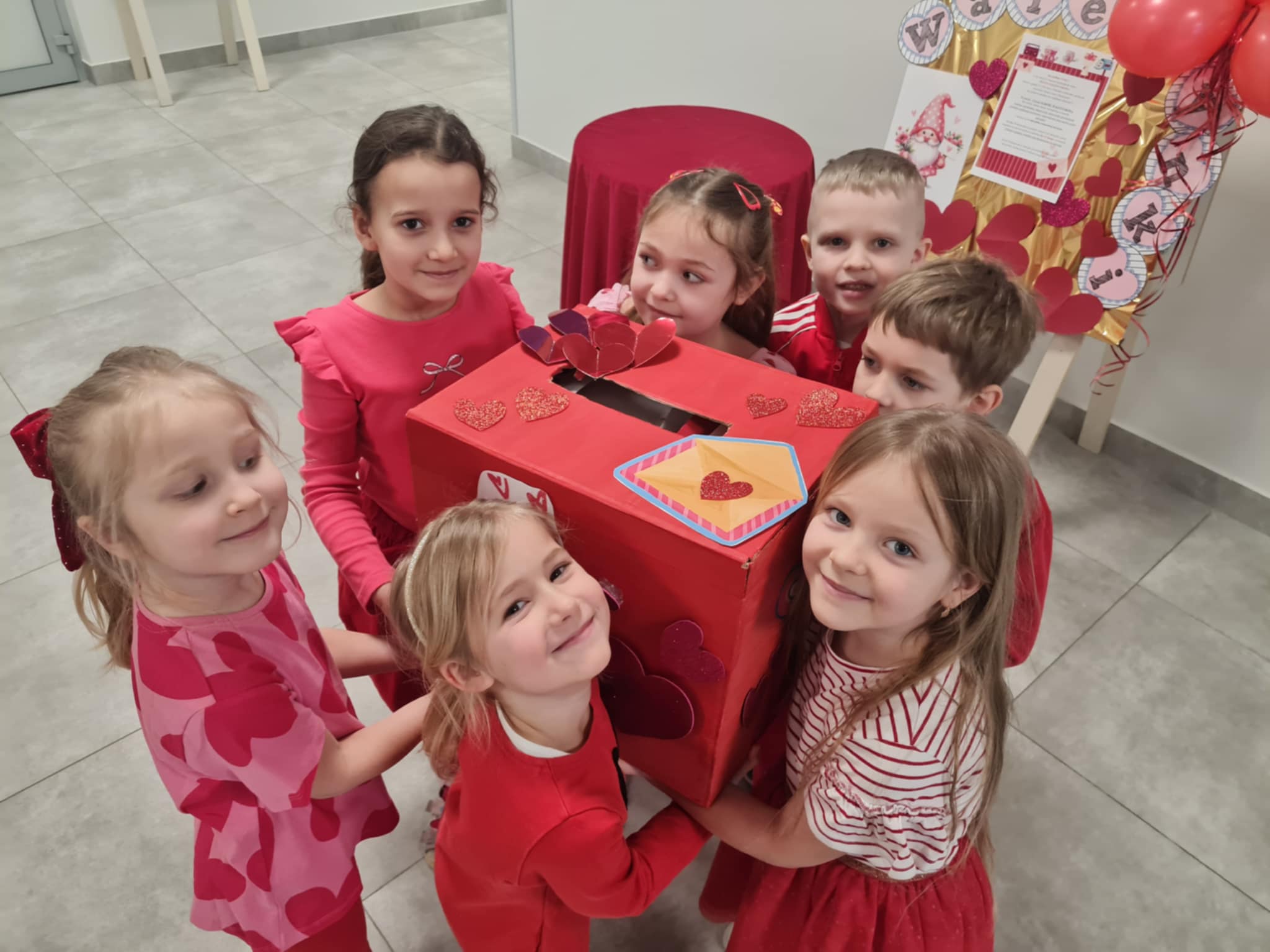 Dużym zainteresowaniem cieszyła się poczta walentynkowa – każde dziecko mogło przygotować własną kartkę lub liścik, by wrzucić ją do specjalnej skrzynki i obdarować kolegów i koleżanki serdecznymi słowami. Wymiana walentynek wywołała mnóstwo uśmiechów i radości!
