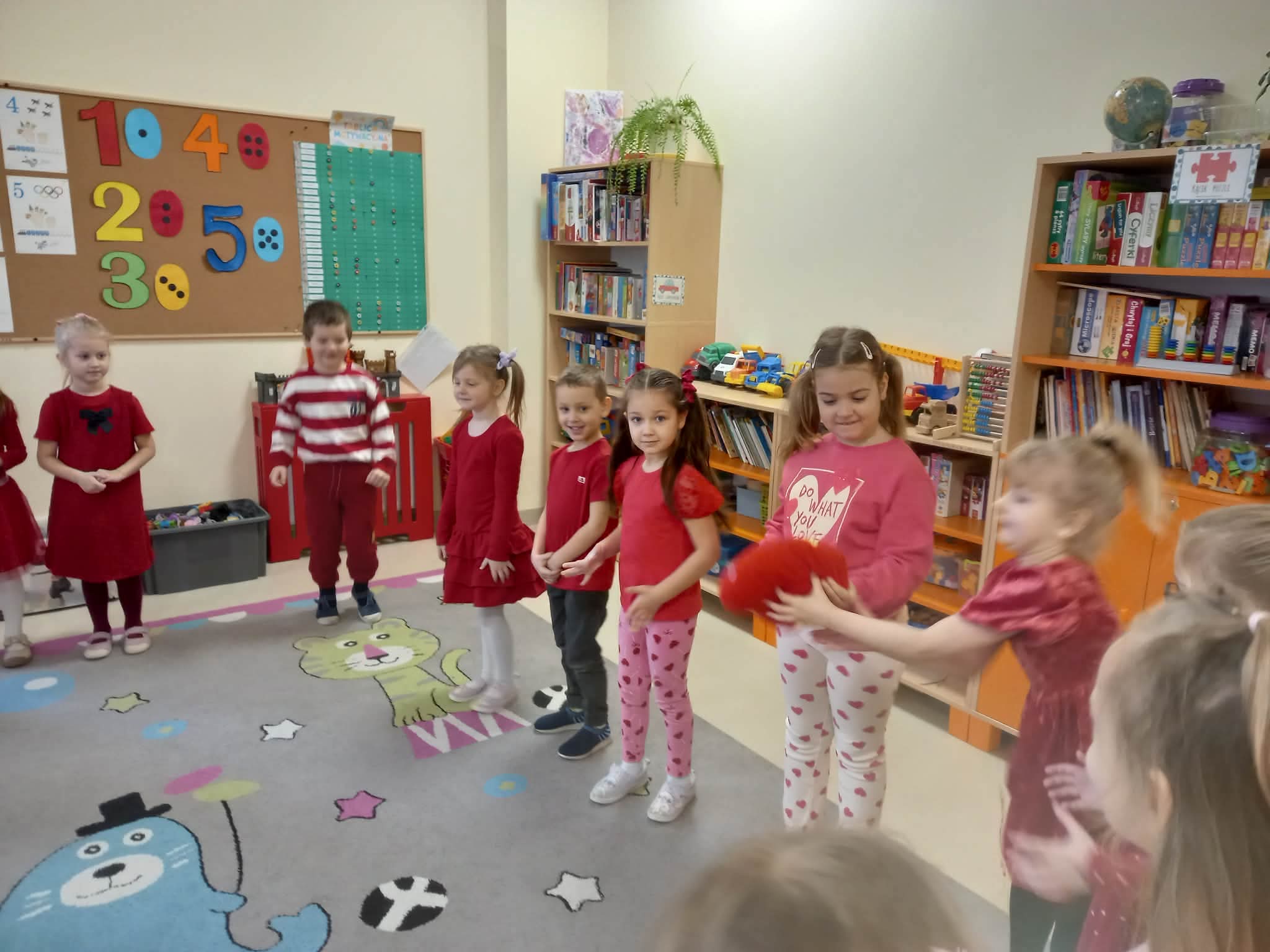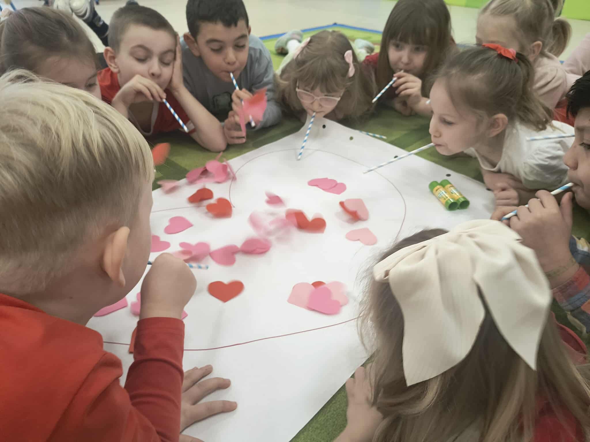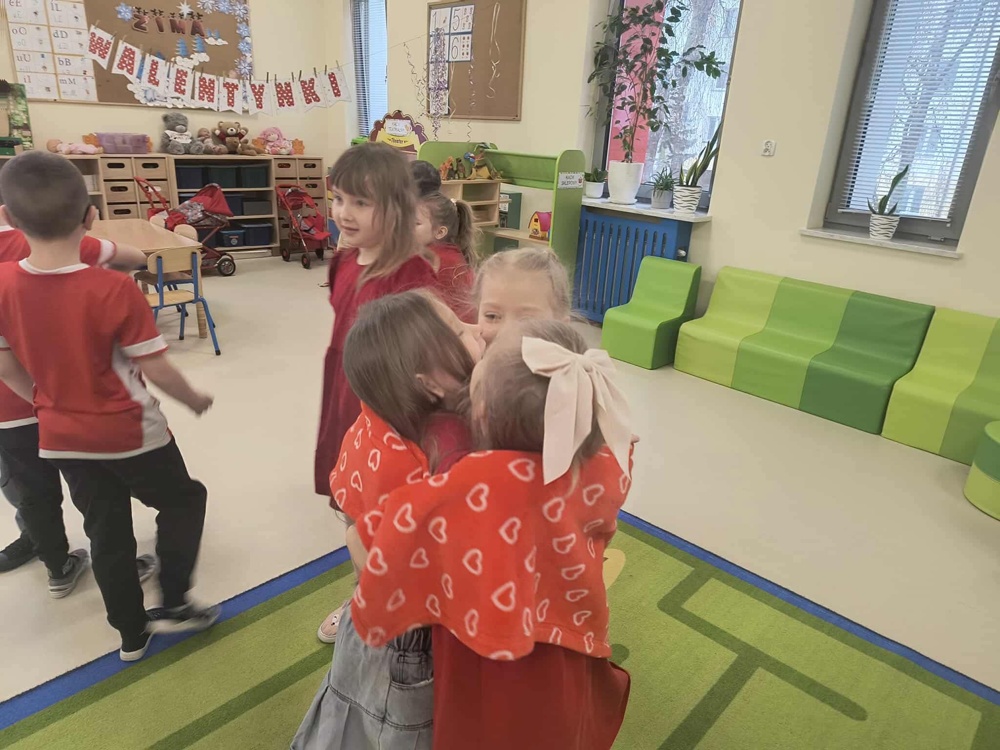Dużym zainteresowaniem cieszyła się poczta walentynkowa – każde dziecko mogło przygotować własną kartkę lub liścik, by wrzucić ją do specjalnej skrzynki i obdarować kolegów i koleżanki serdecznymi słowami. Wymiana walentynek wywołała mnóstwo uśmiechów i radości!