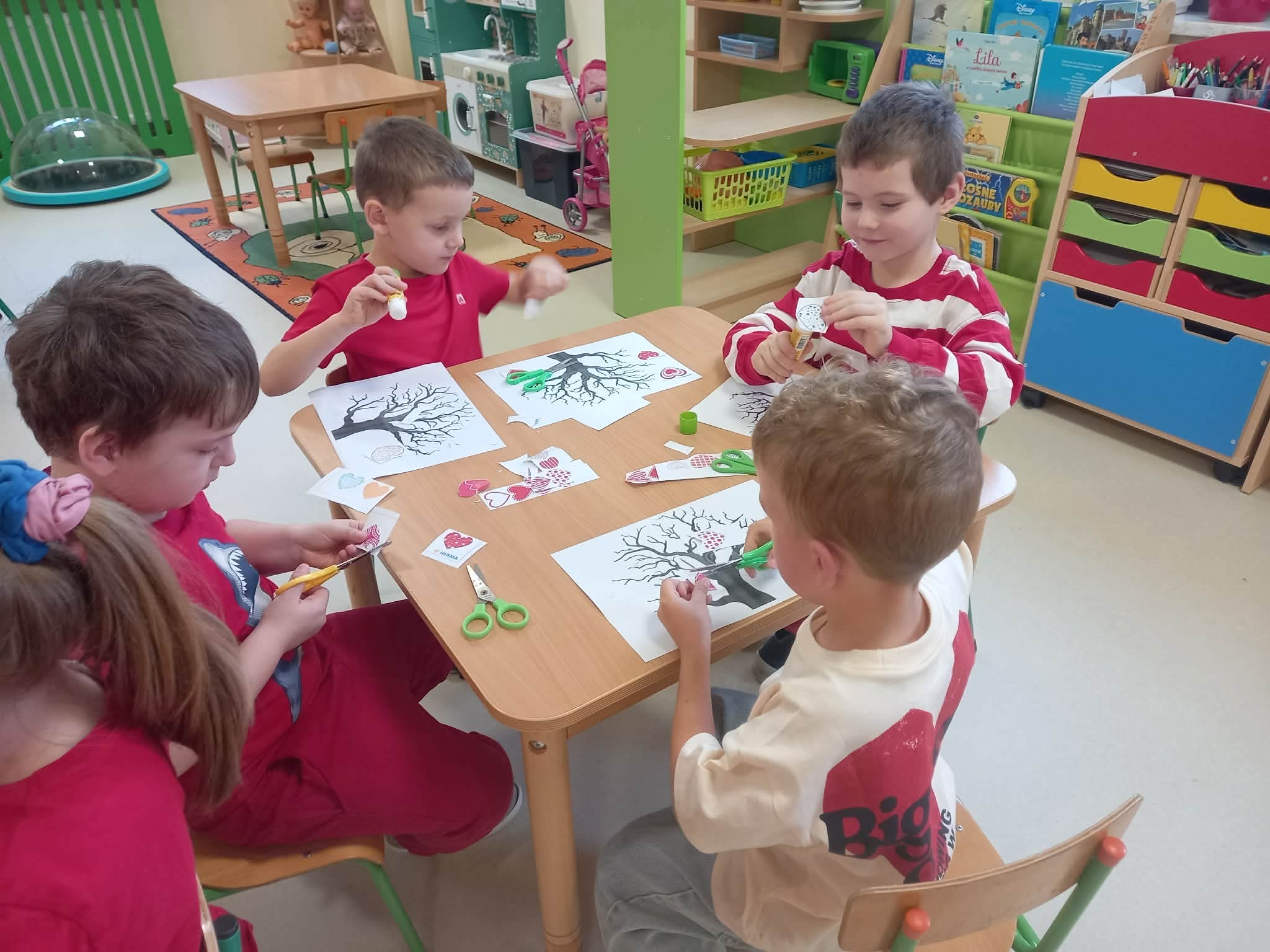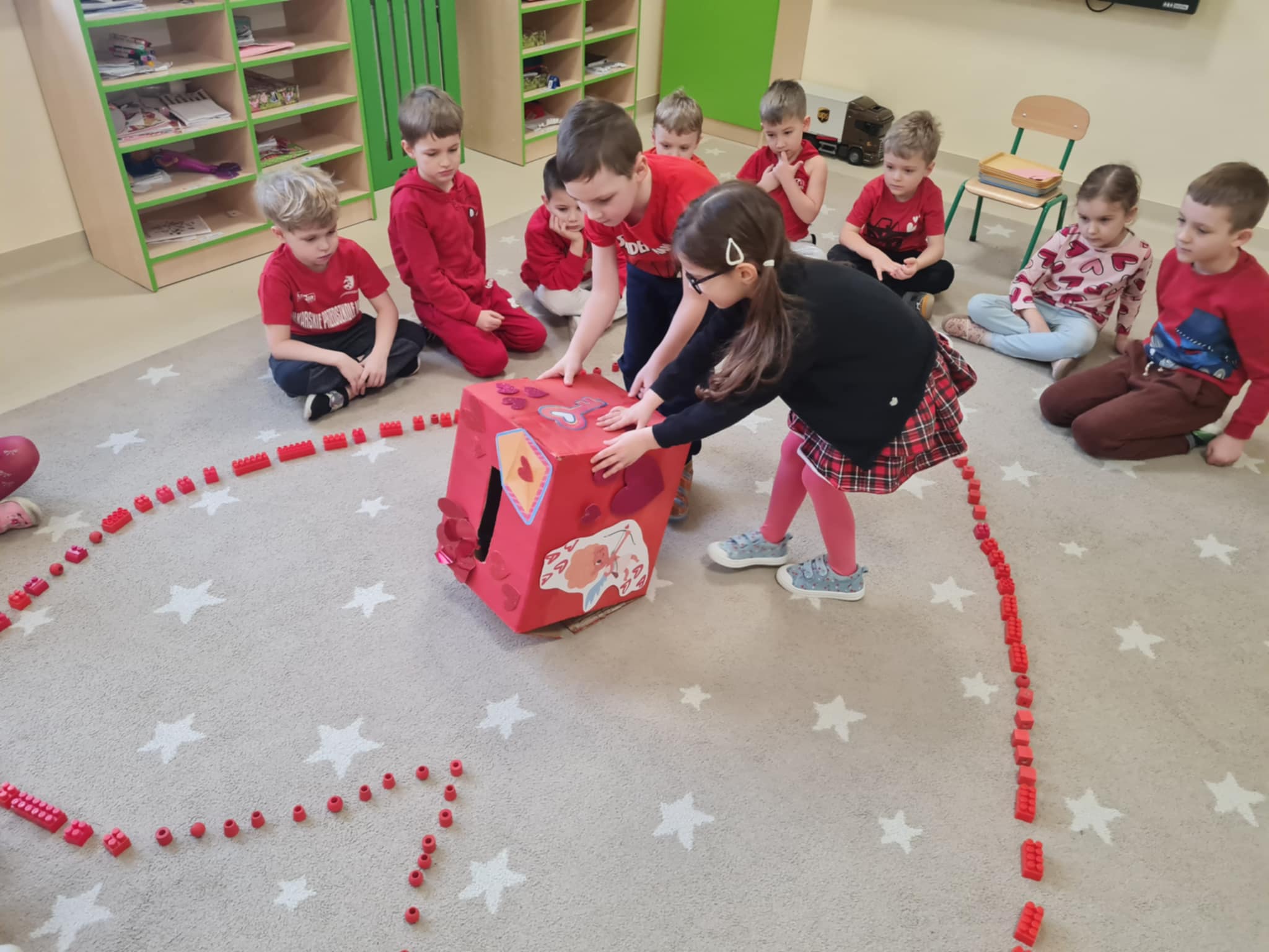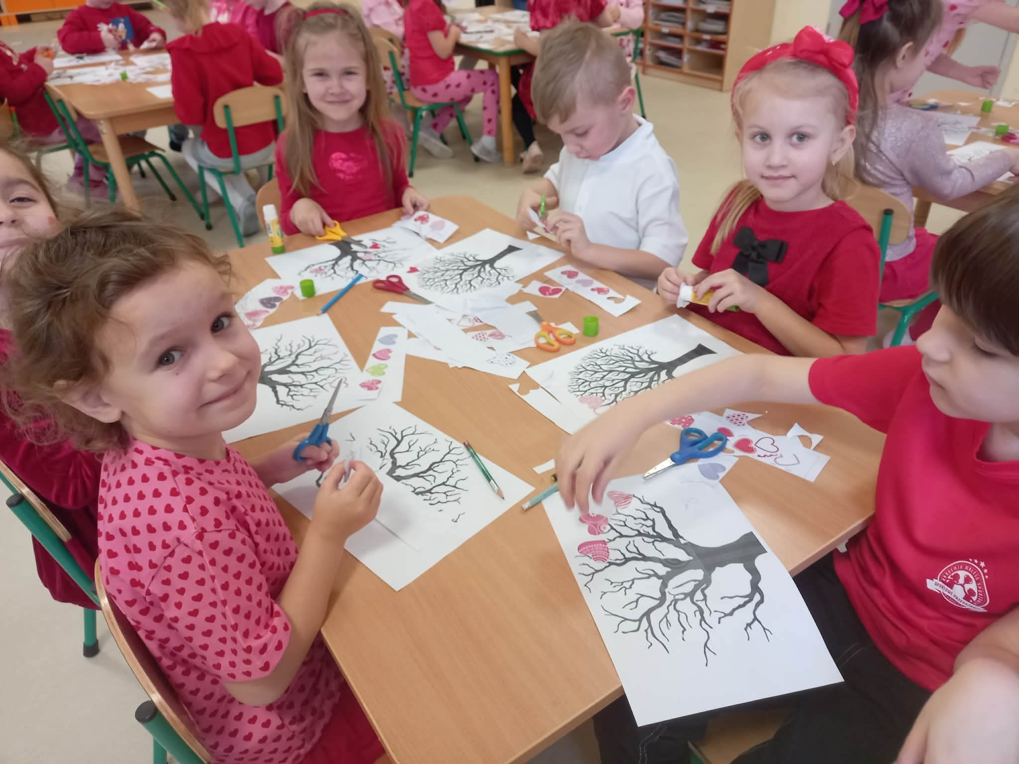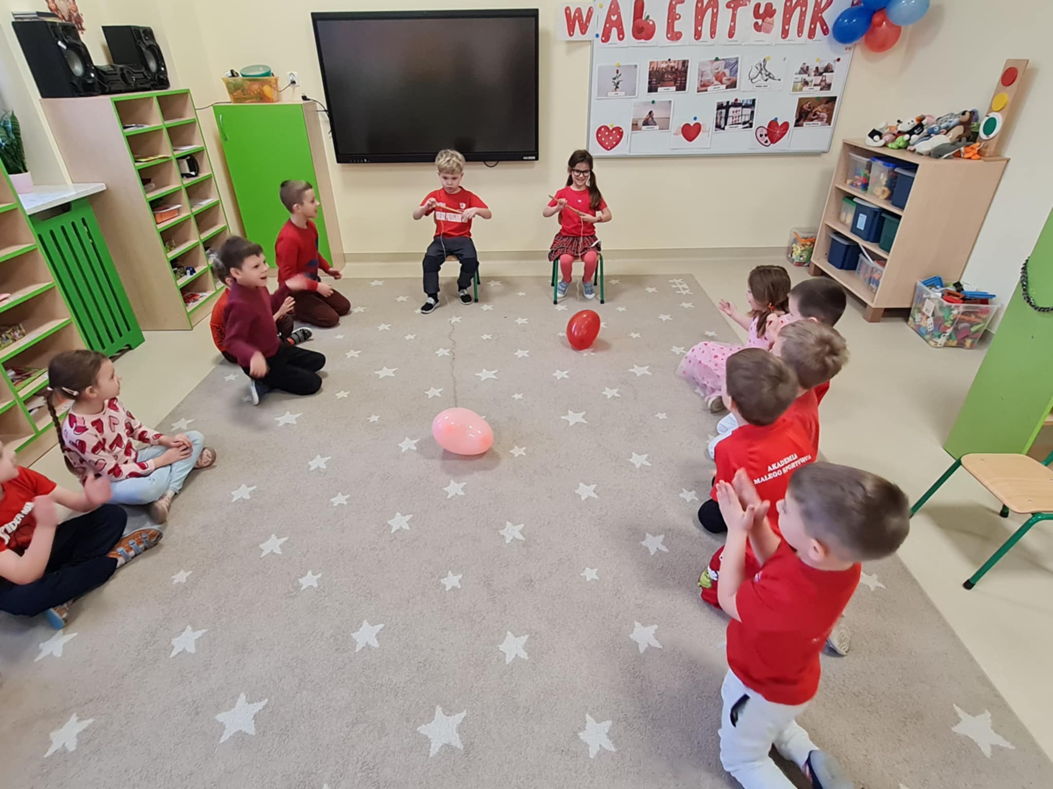 Dużym zainteresowaniem cieszyła się poczta walentynkowa – każde dziecko mogło przygotować własną kartkę lub liścik, by wrzucić ją do specjalnej skrzynki i obdarować kolegów i koleżanki serdecznymi słowami. Wymiana walentynek wywołała mnóstwo uśmiechów i radości!