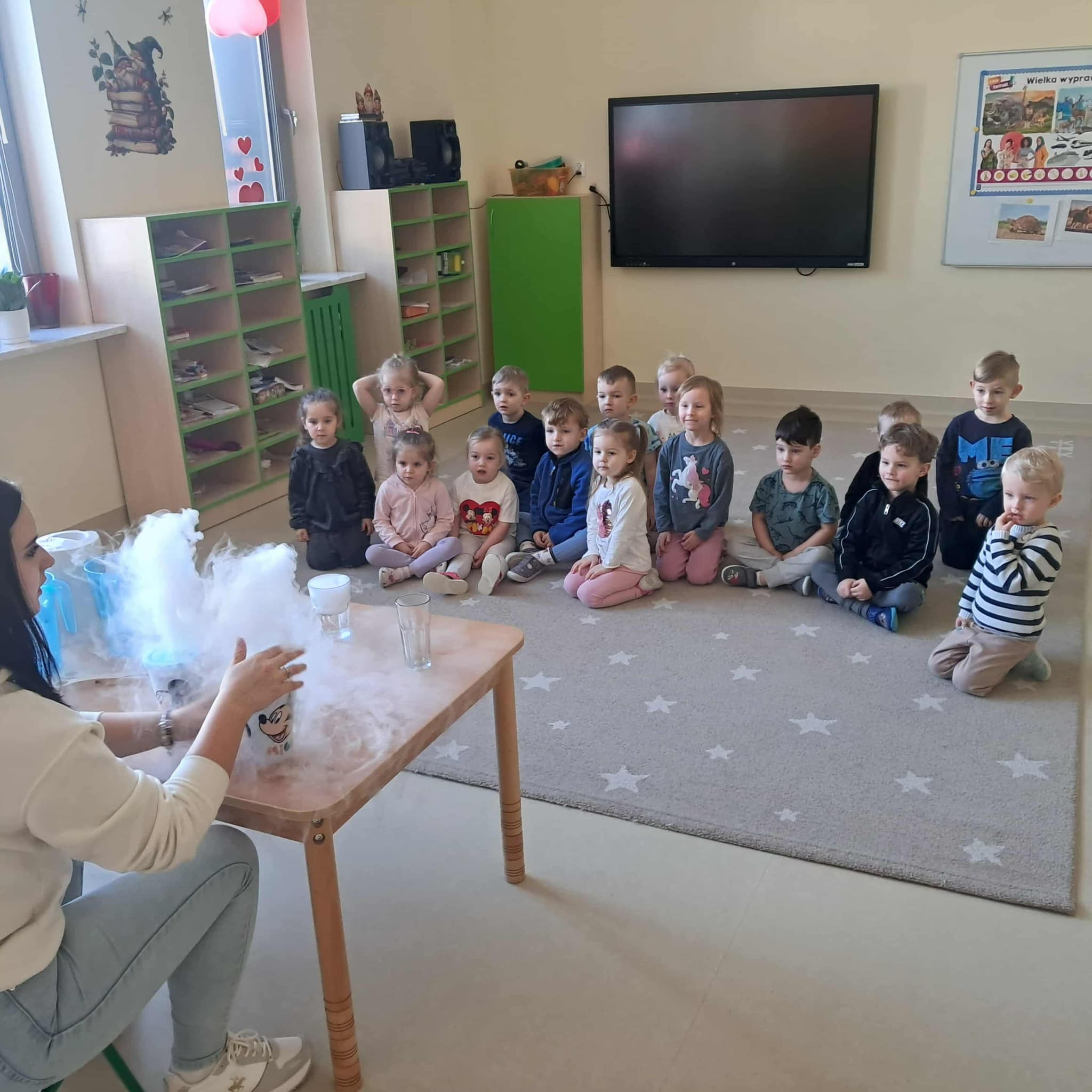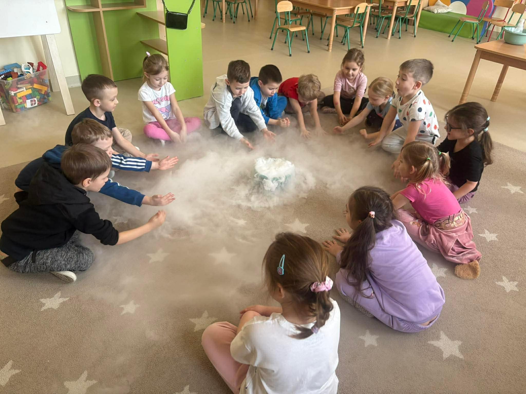 Dziś nasze przedszkolaki uczestniczyły w warsztatach, podczas których mogły obserwować eksperymenty z wykorzystaniem suchego lodu. Poznały odpowiedzi na pytania : Co to jest suchy lód i dlaczego nazywamy go suchym? Jaka jest jego temperatura? Czy może sie on topić jak prawdziwy lód?