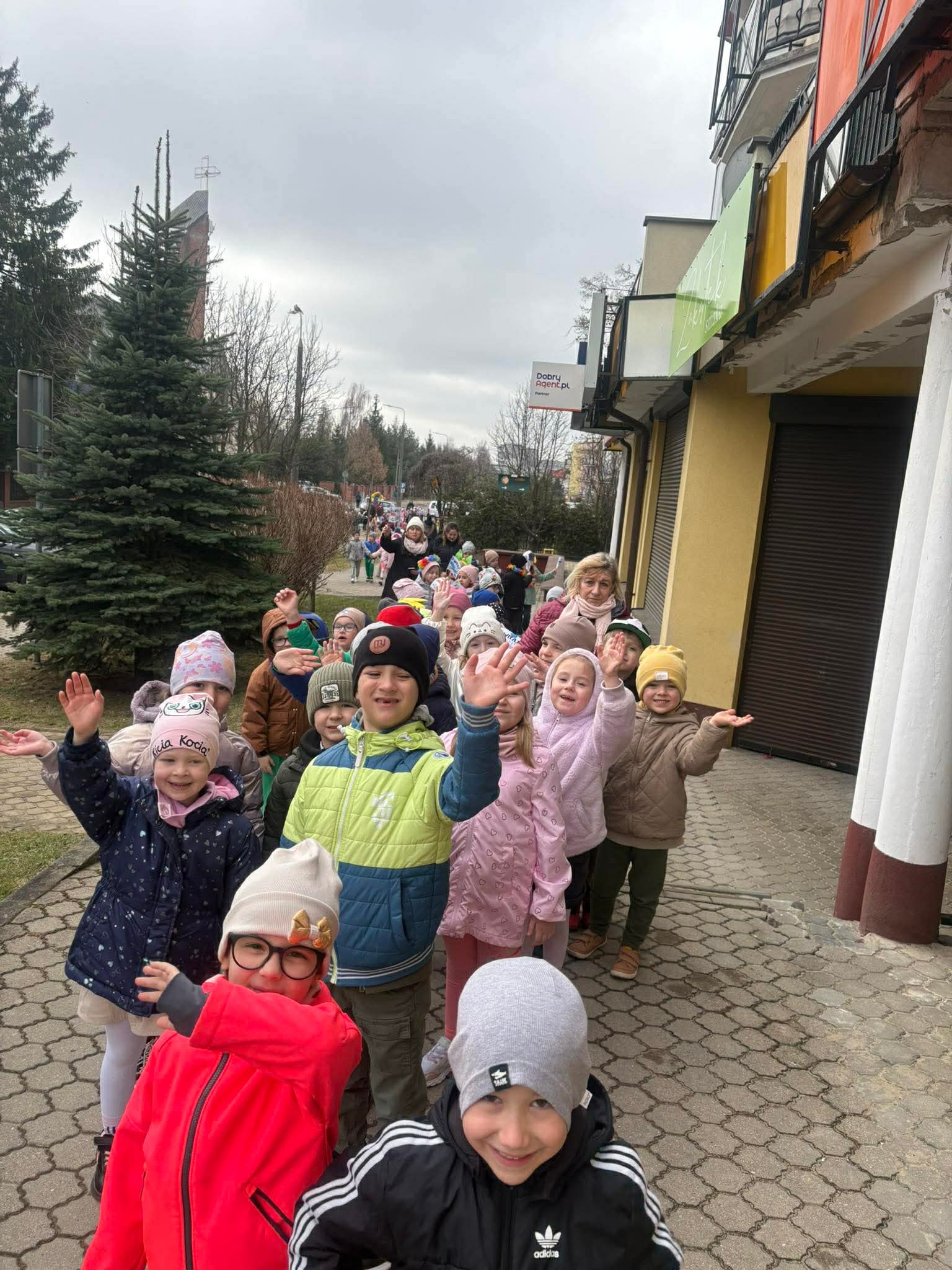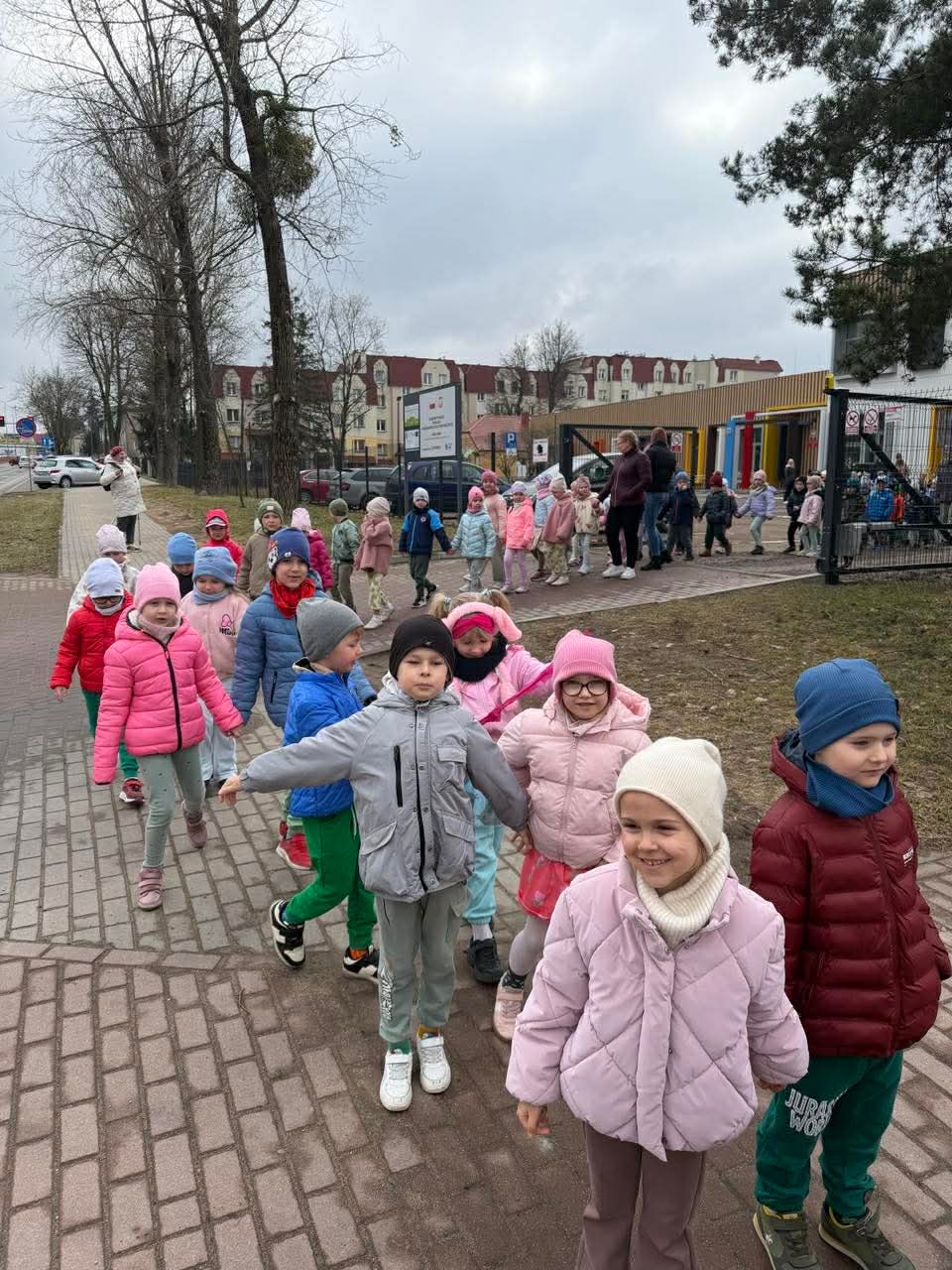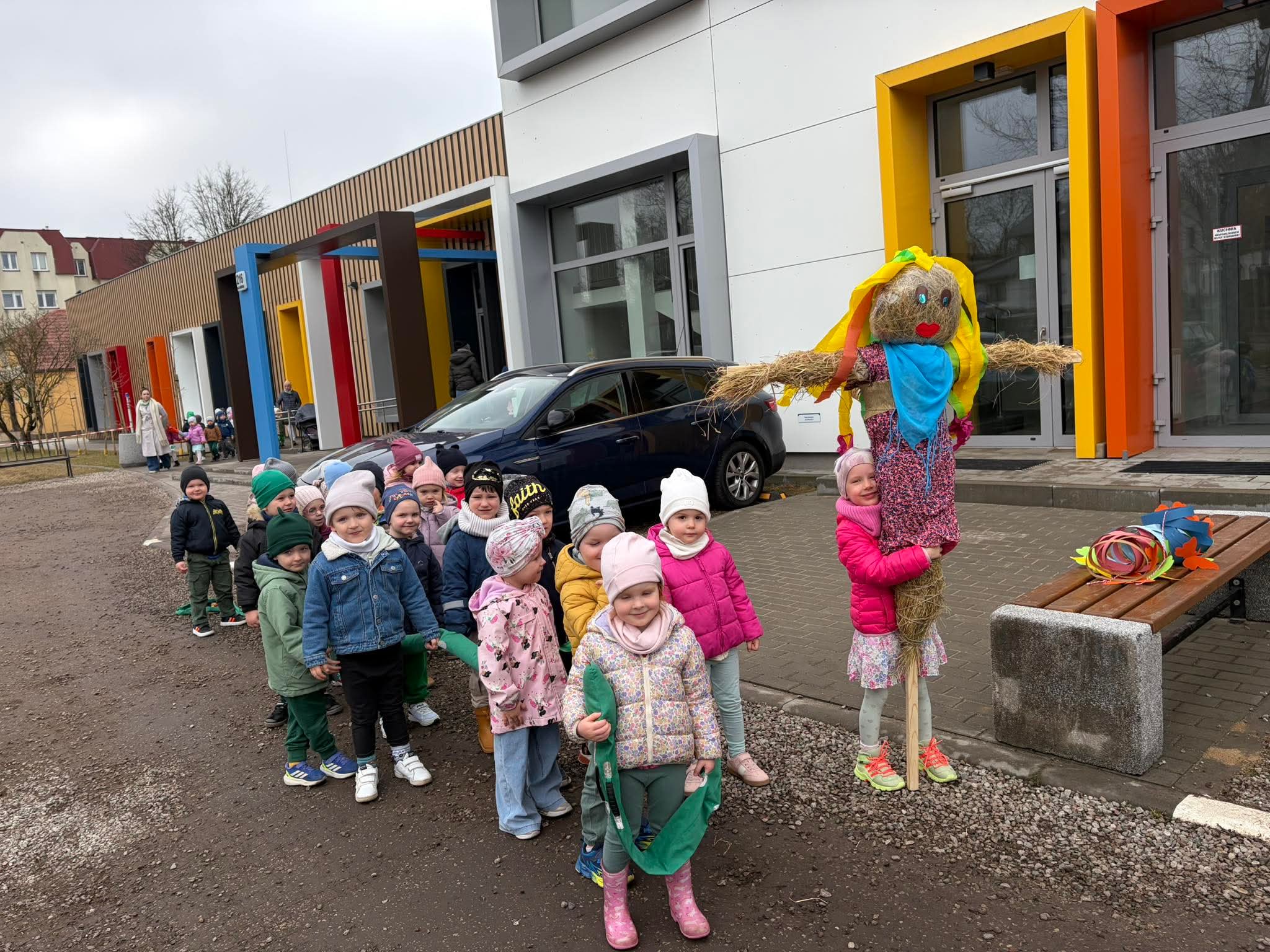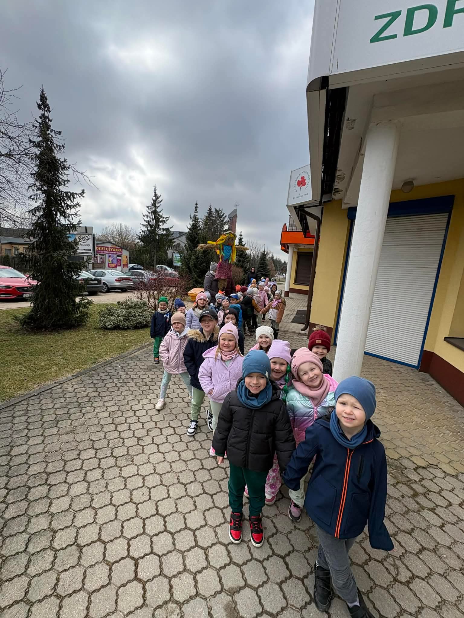 20 marca przedszkolaki ze wszystkich grup radośnie powitały pierwszy dzień wiosny. Wyruszyliśmy na spacer z Marzanną. Dzieci maszerowały ulicami naszego miasta, śpiewając wiosenne piosenki i ciesząc się wspólnym czasem na świeżym powietrzu.