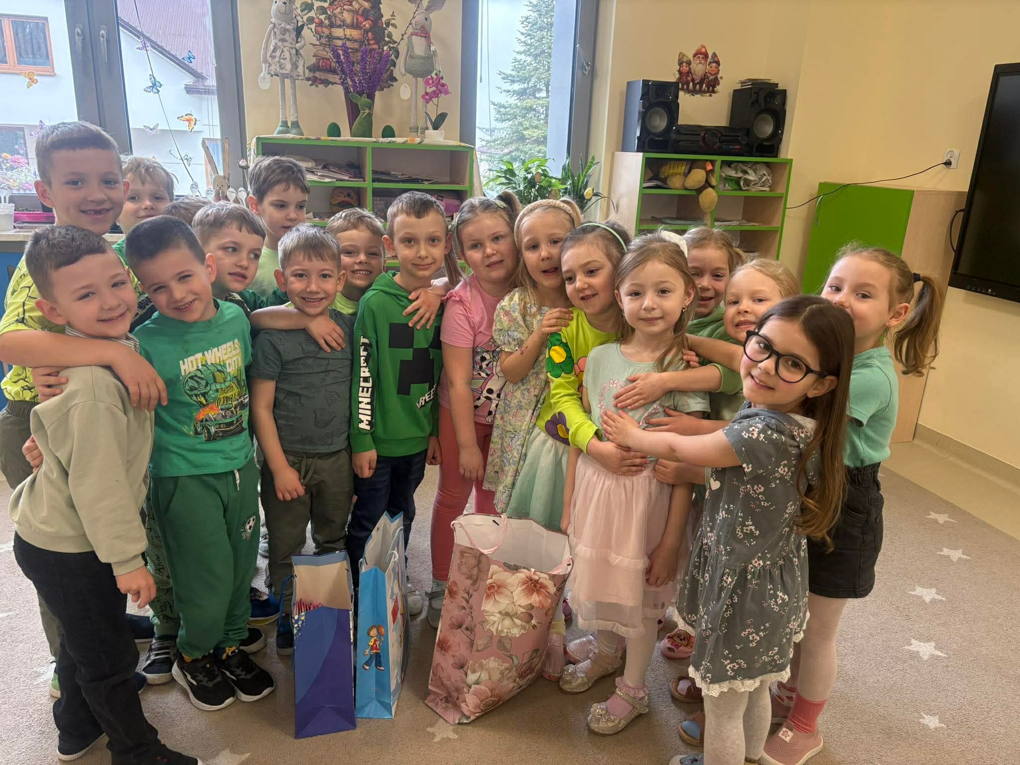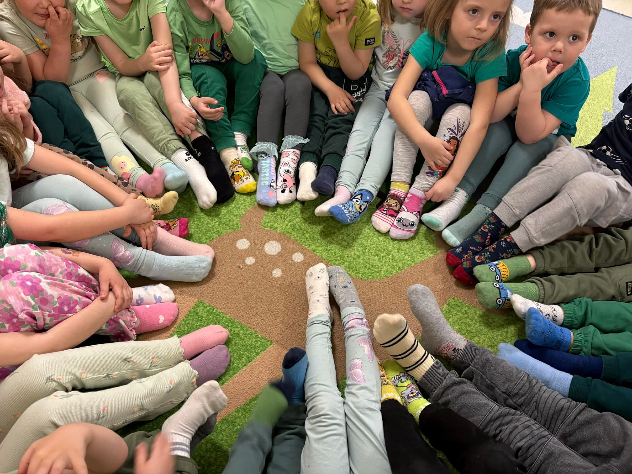 Tego dnia obchodziliśmy także Światowy Dzień Zespołu Downa. To wyjątkowa okazja, aby zwiększać świadomość społeczną, okazywać wsparcie oraz podkreślać, jak ważna jest akceptacja i równość. Na znak solidarności dzieci przyszły do przedszkola w dwóch różnych, kolorowych skarpetkach.