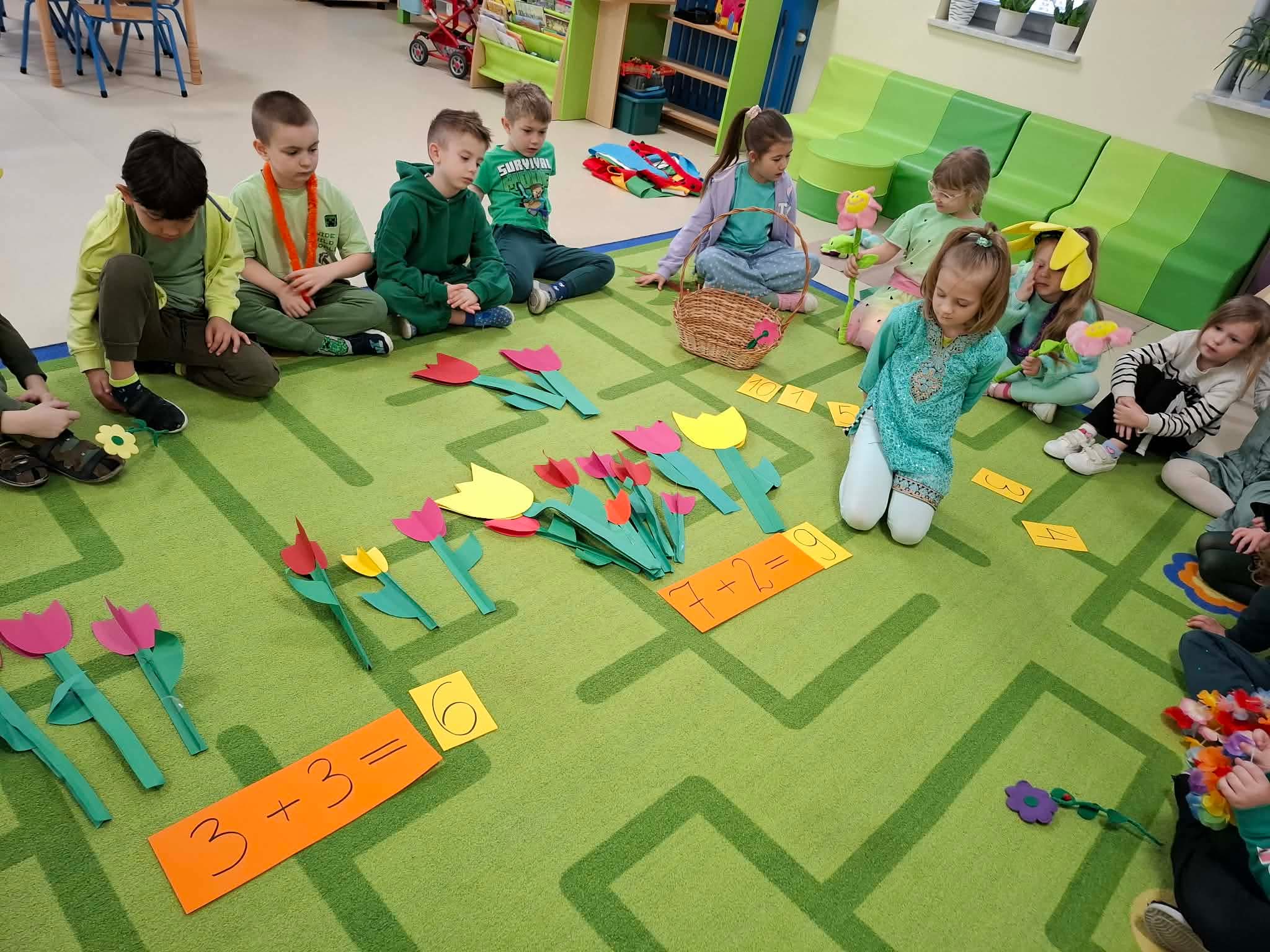 Każda grupa wzięła również udział w ciekawych grach i zabawach matematycznych. „Matematyczny I Dzień Wiosny” był jednym z zadań projektowych “Zakodowana piąteczka”. Projekt ten jest organizowany i finansowany przez mFundację w ramach programu grantowego “Rosnę z matematyką”.