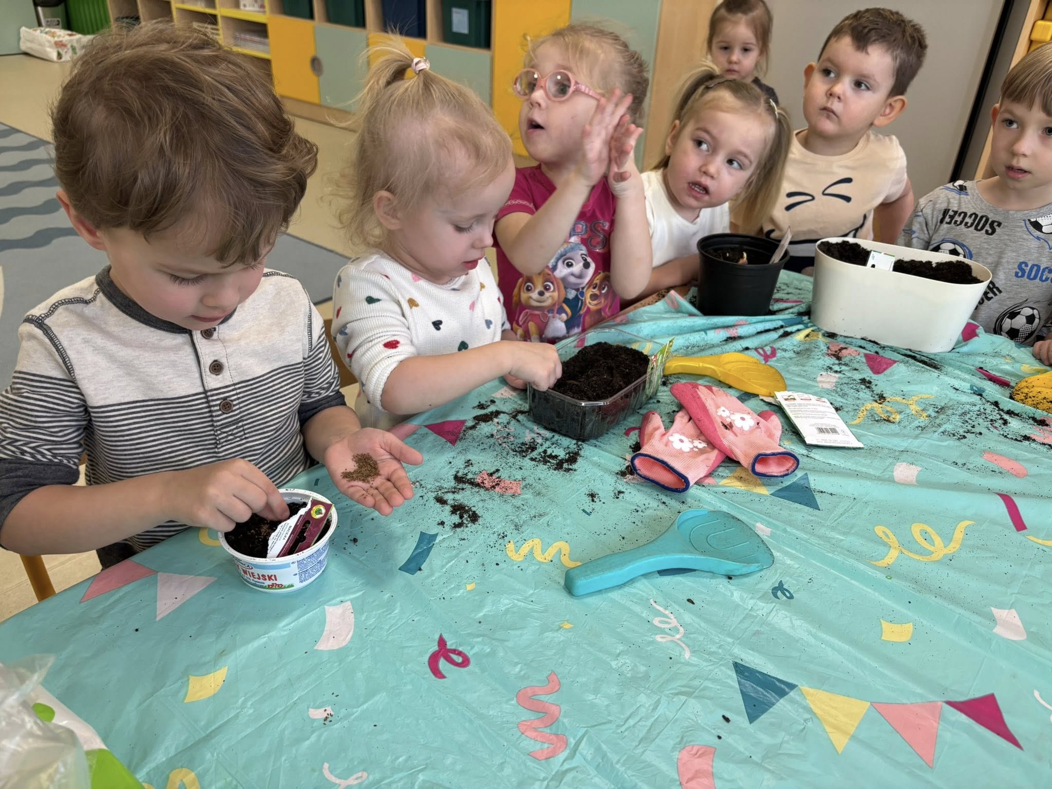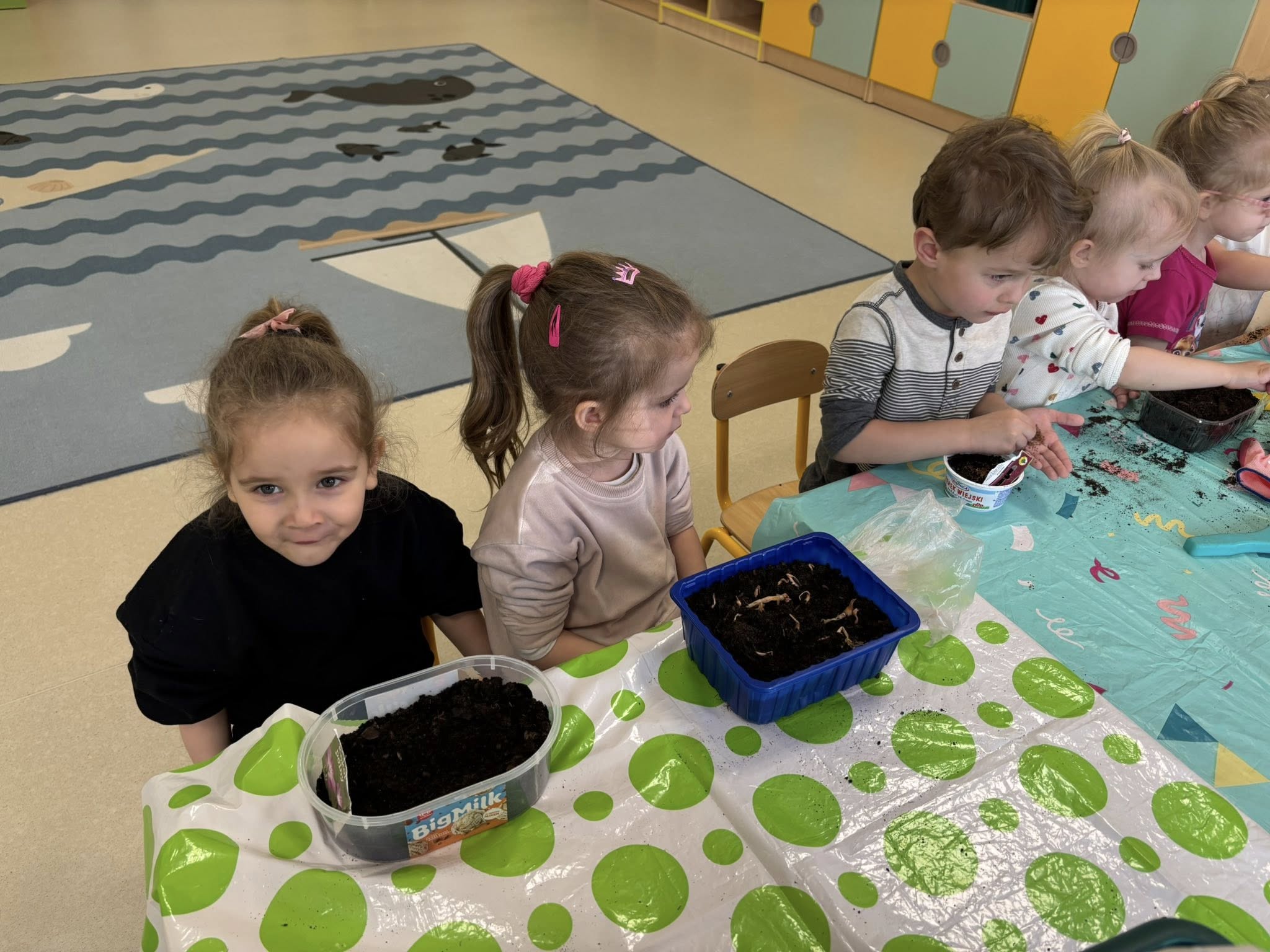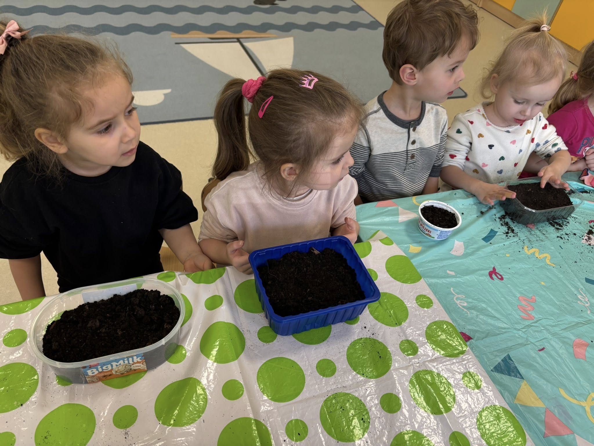 Największym odkryciem było to, że roślinki nie wyrastają od razu. Teraz codziennie będziemy je obserwować, podlewać i cierpliwie czekać, aż pojawią się pierwsze zielone listki. Ciekawe, co z nich wyrośnie!