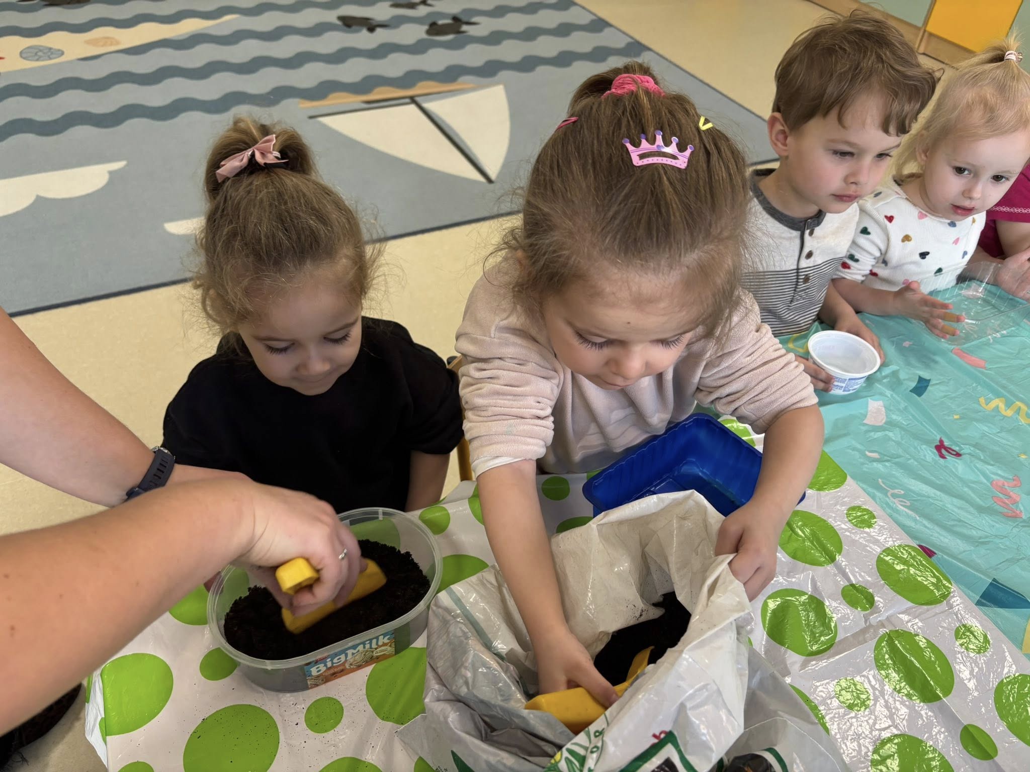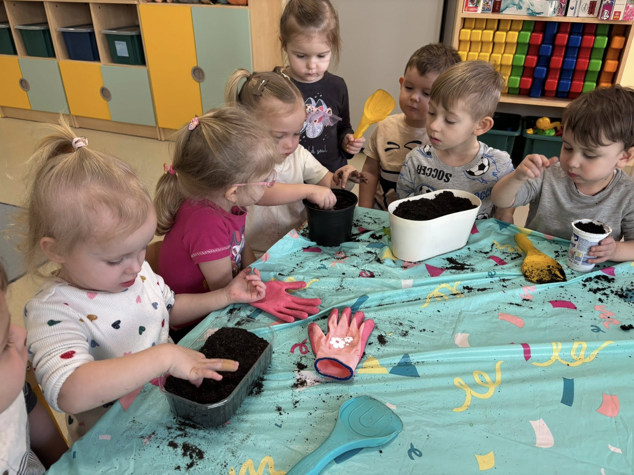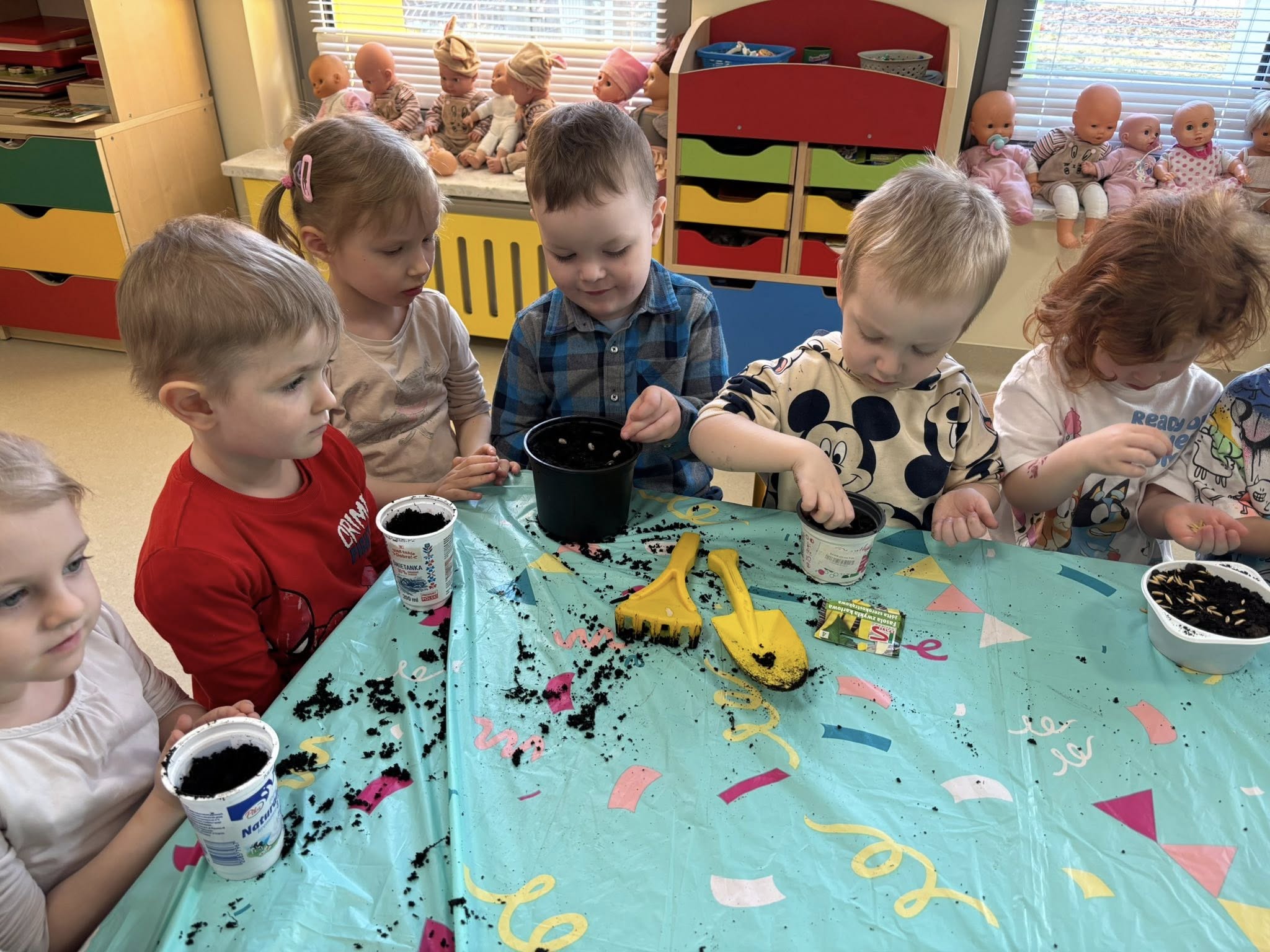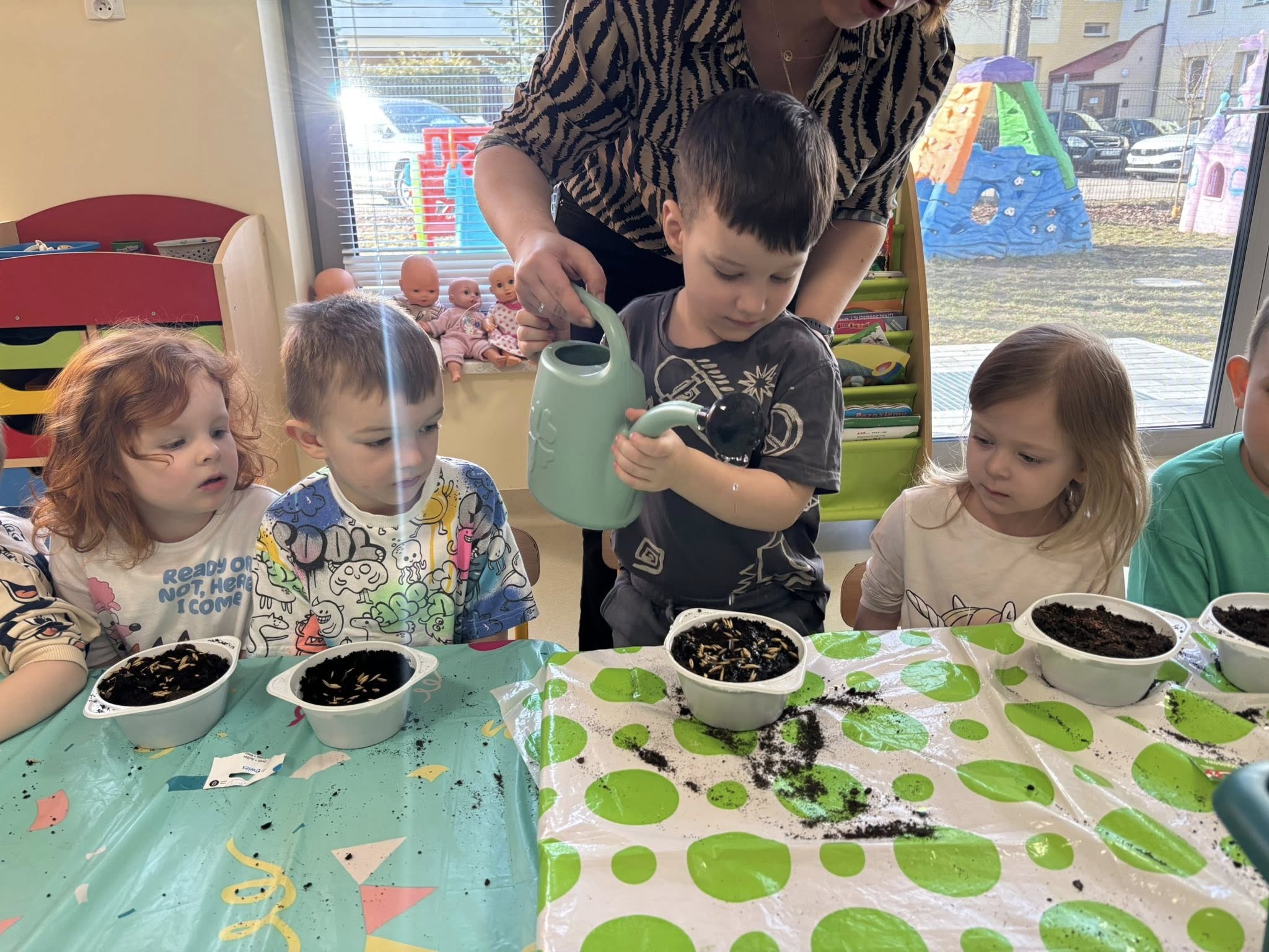 Największym odkryciem było to, że roślinki nie wyrastają od razu. Teraz codziennie będziemy je obserwować, podlewać i cierpliwie czekać, aż pojawią się pierwsze zielone listki. Ciekawe, co z nich wyrośnie!